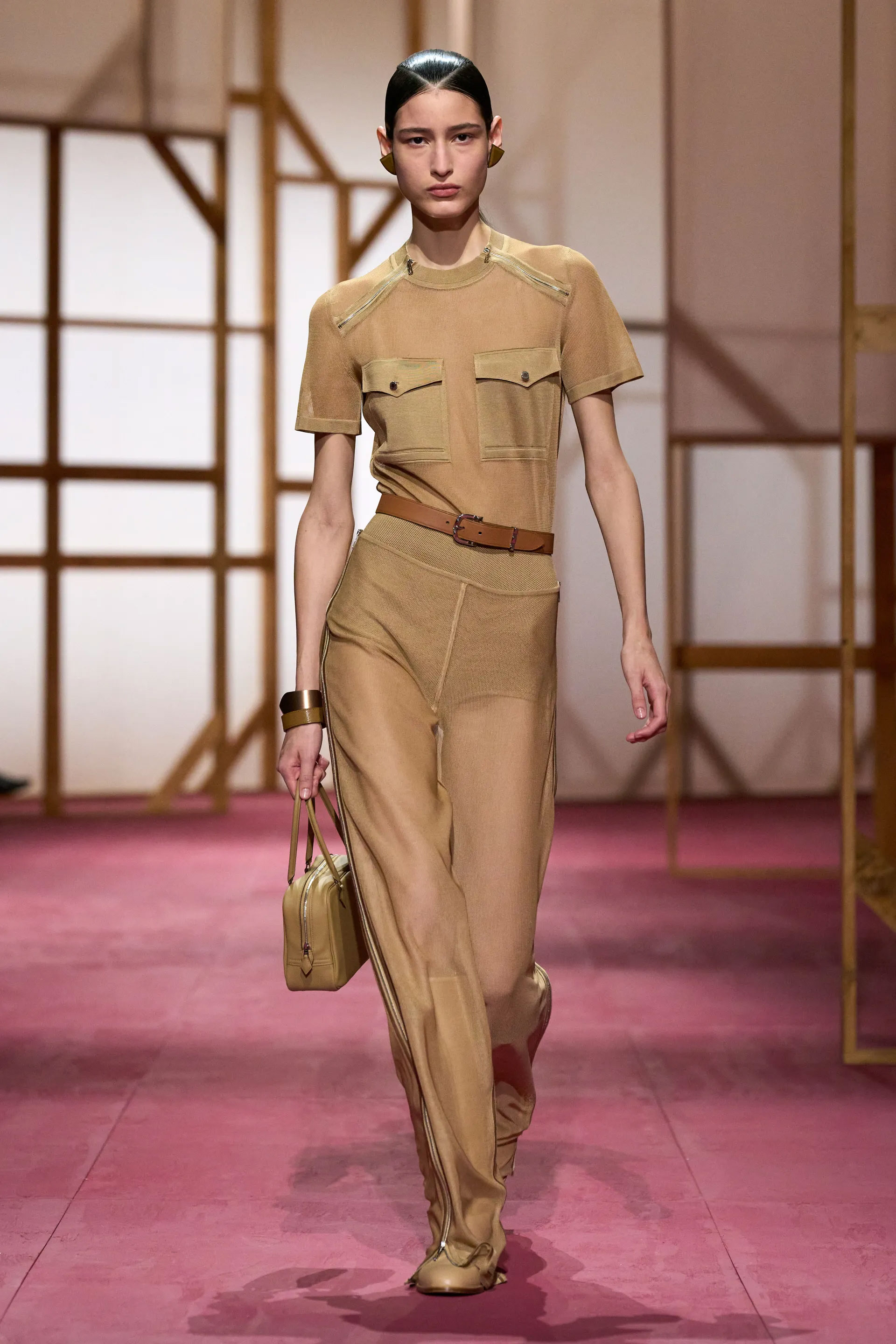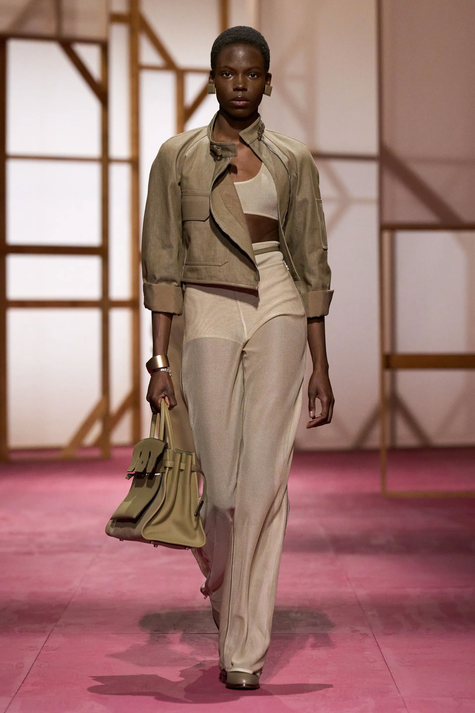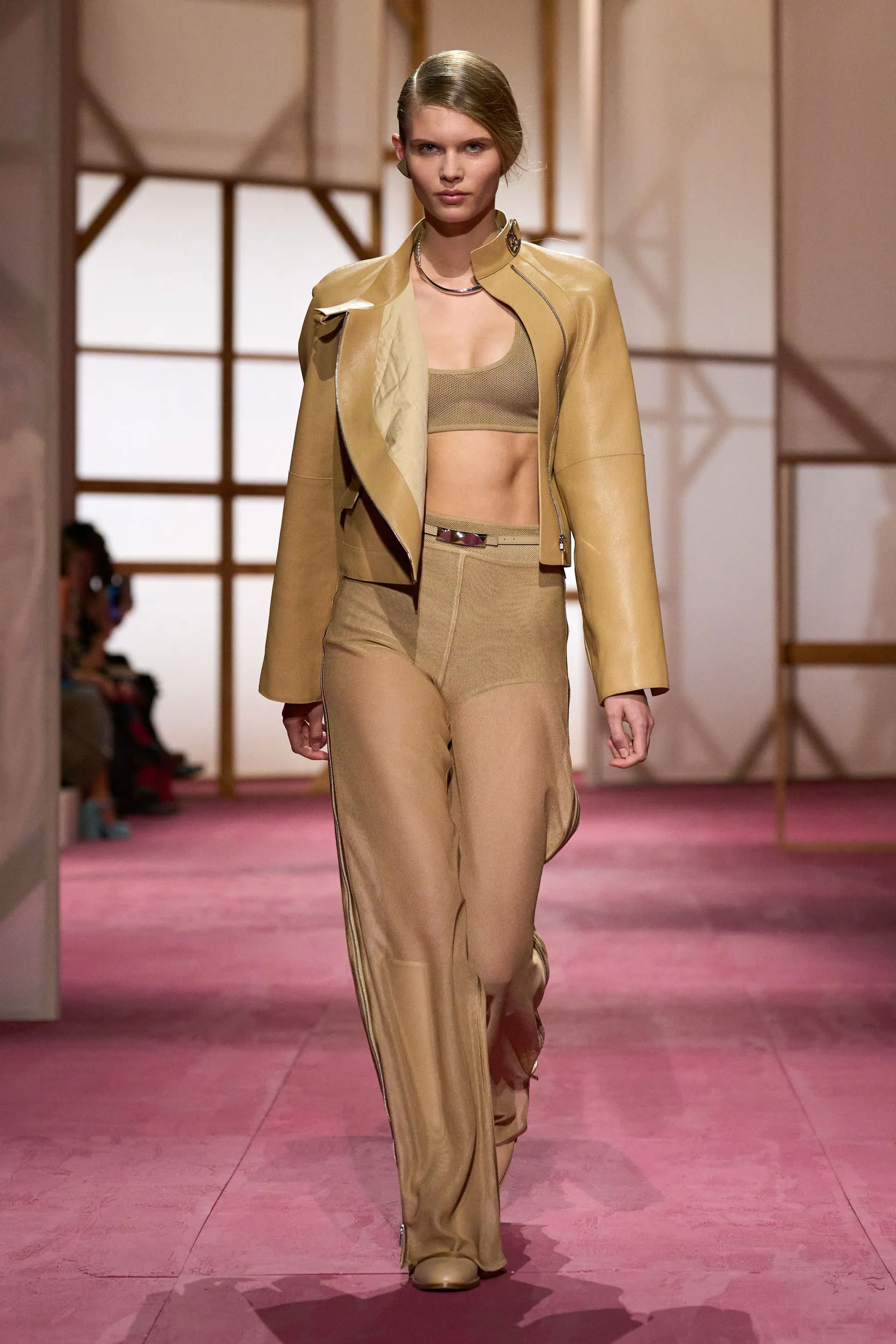 Навіть Hermes були серед тих, хто в сезоні spring-summer — 2025 поверталися до максималізму. Щоправда, у властивому для себе вишуканому стилі. Тренд на прозорість, який не покидає подіуми вже декілька сезонів поспіль, Hermes поєднали зі шкірою. У кольоровій палітрі колекції переважали нейтральні кольори, а яскравості шоу додавала серія образів у пильному рожевому відтінку.