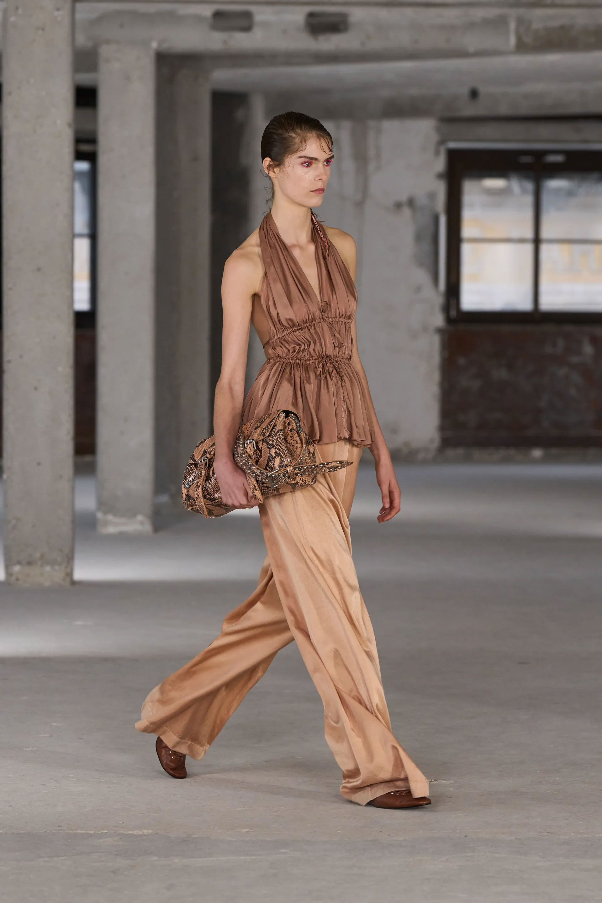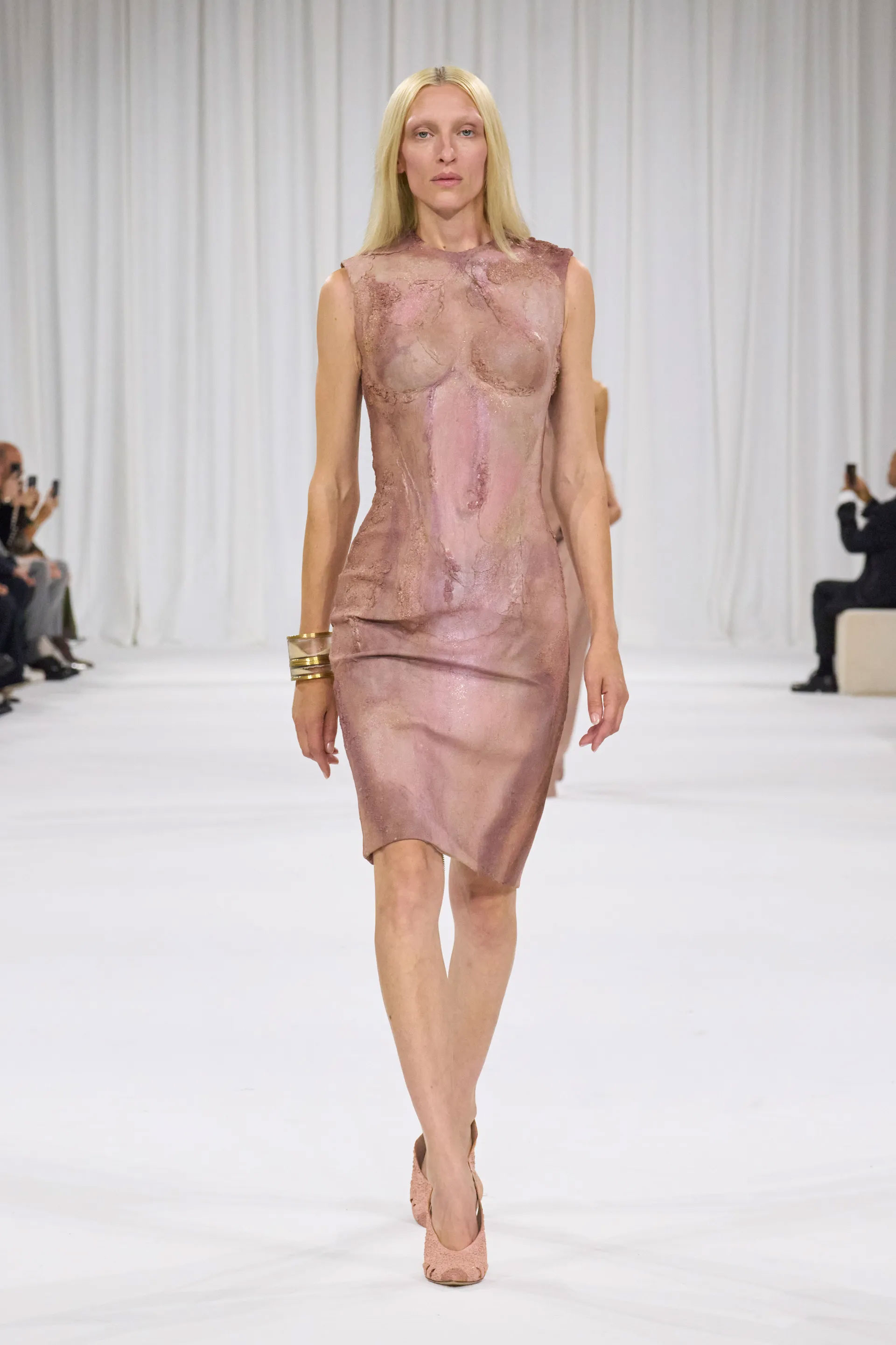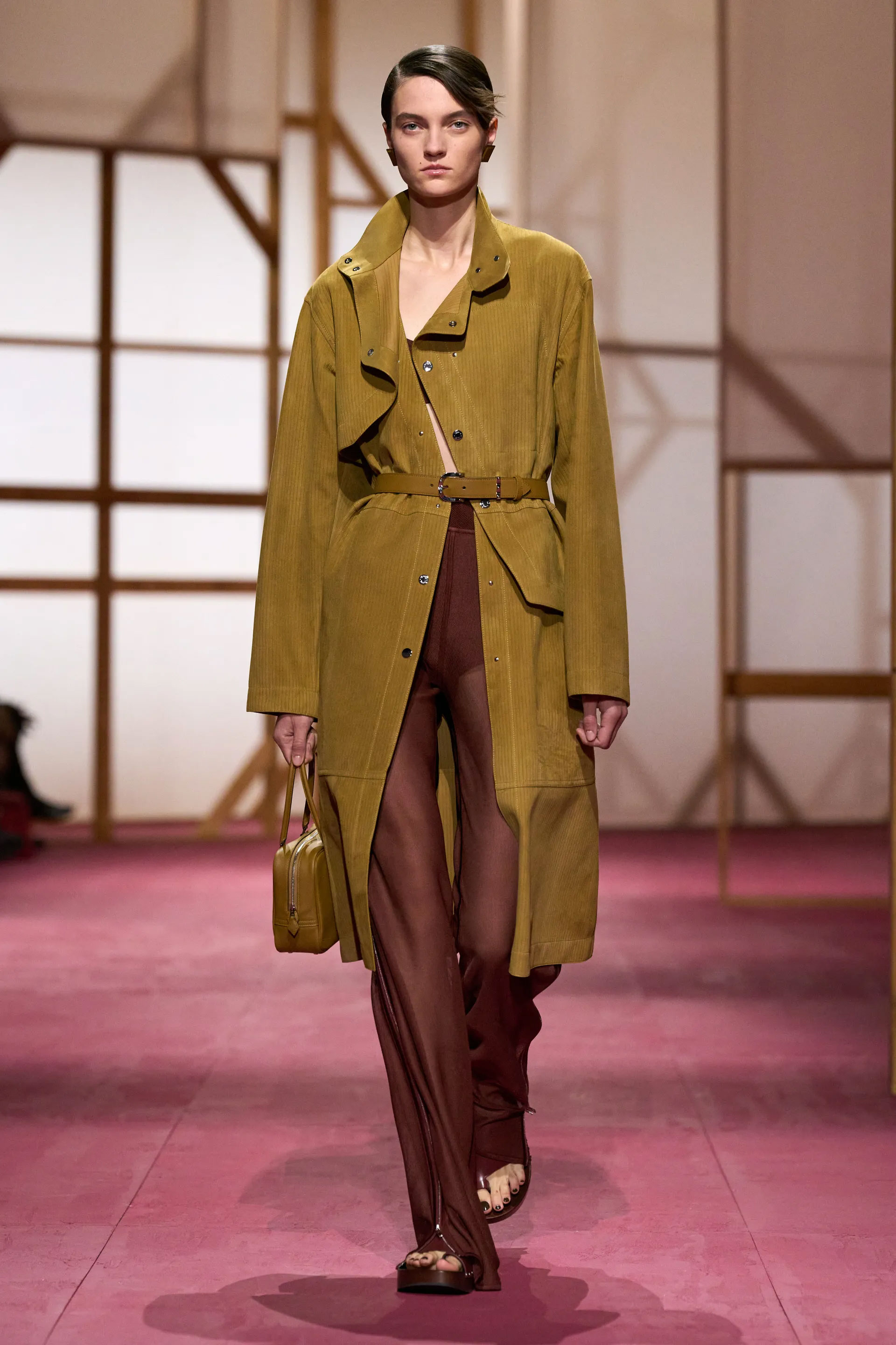Навіть Hermes були серед тих, хто в сезоні spring-summer — 2025 поверталися до максималізму. Щоправда, у властивому для себе вишуканому стилі. Тренд на прозорість, який не покидає подіуми вже декілька сезонів поспіль, Hermes поєднали зі шкірою. У кольоровій палітрі колекції переважали нейтральні кольори, а яскравості шоу додавала серія образів у пильному рожевому відтінку.