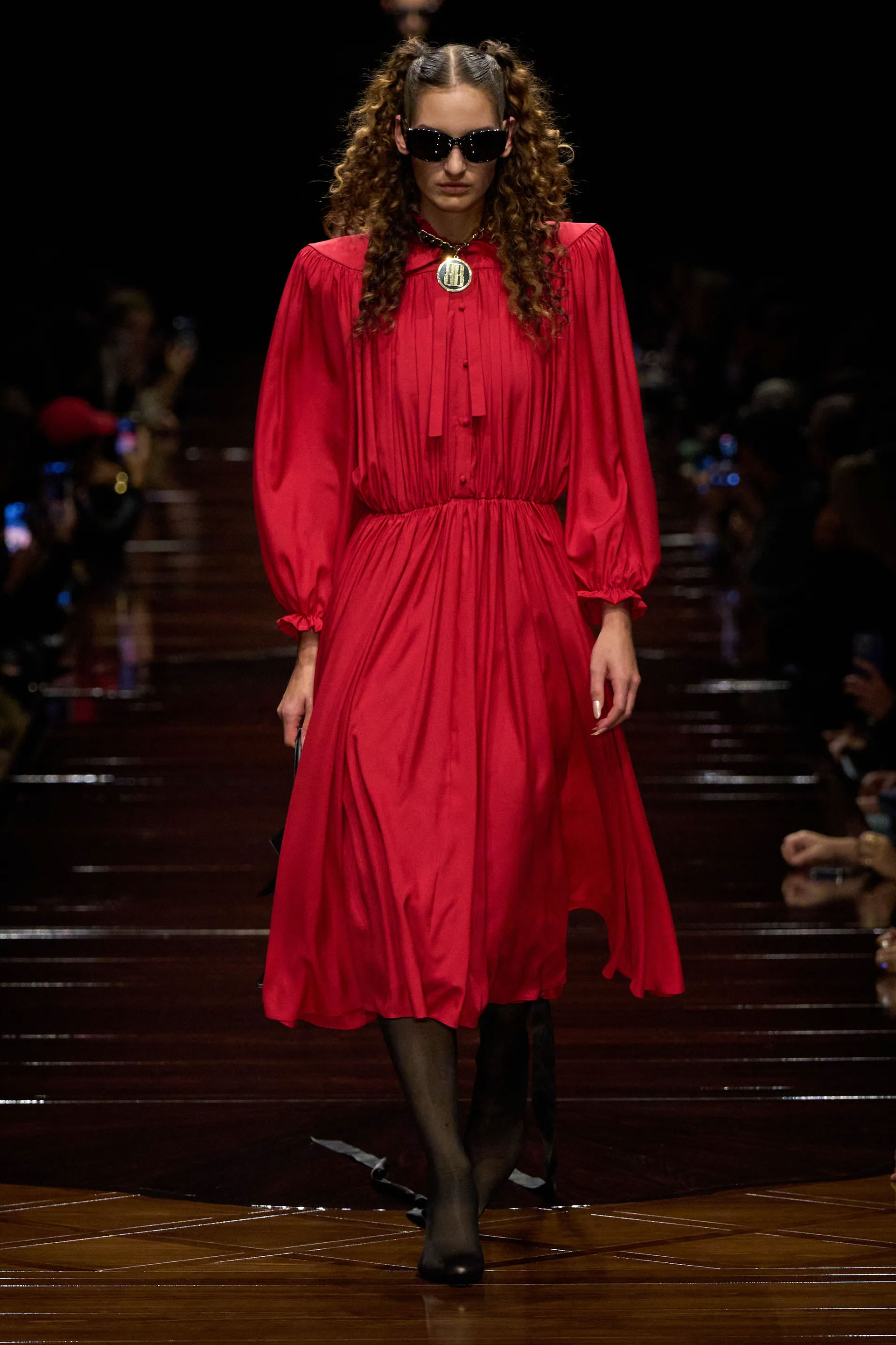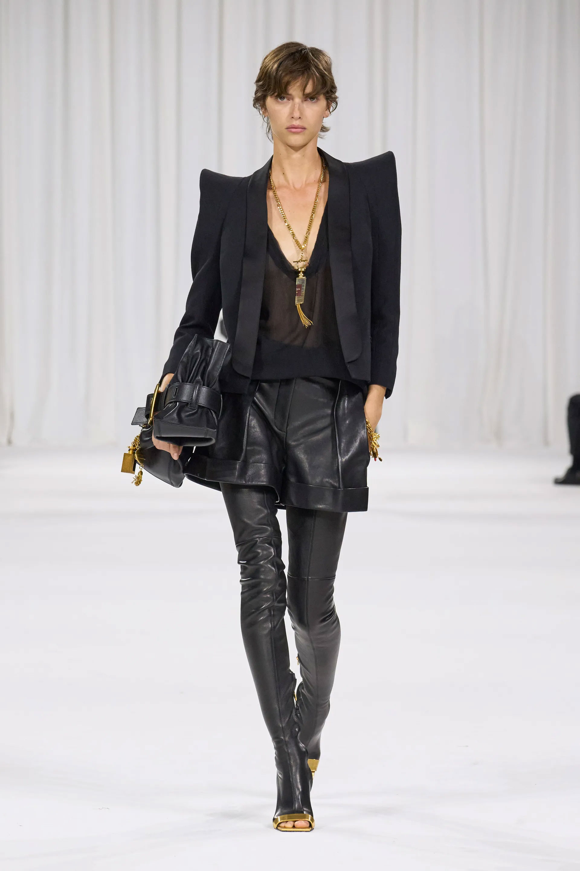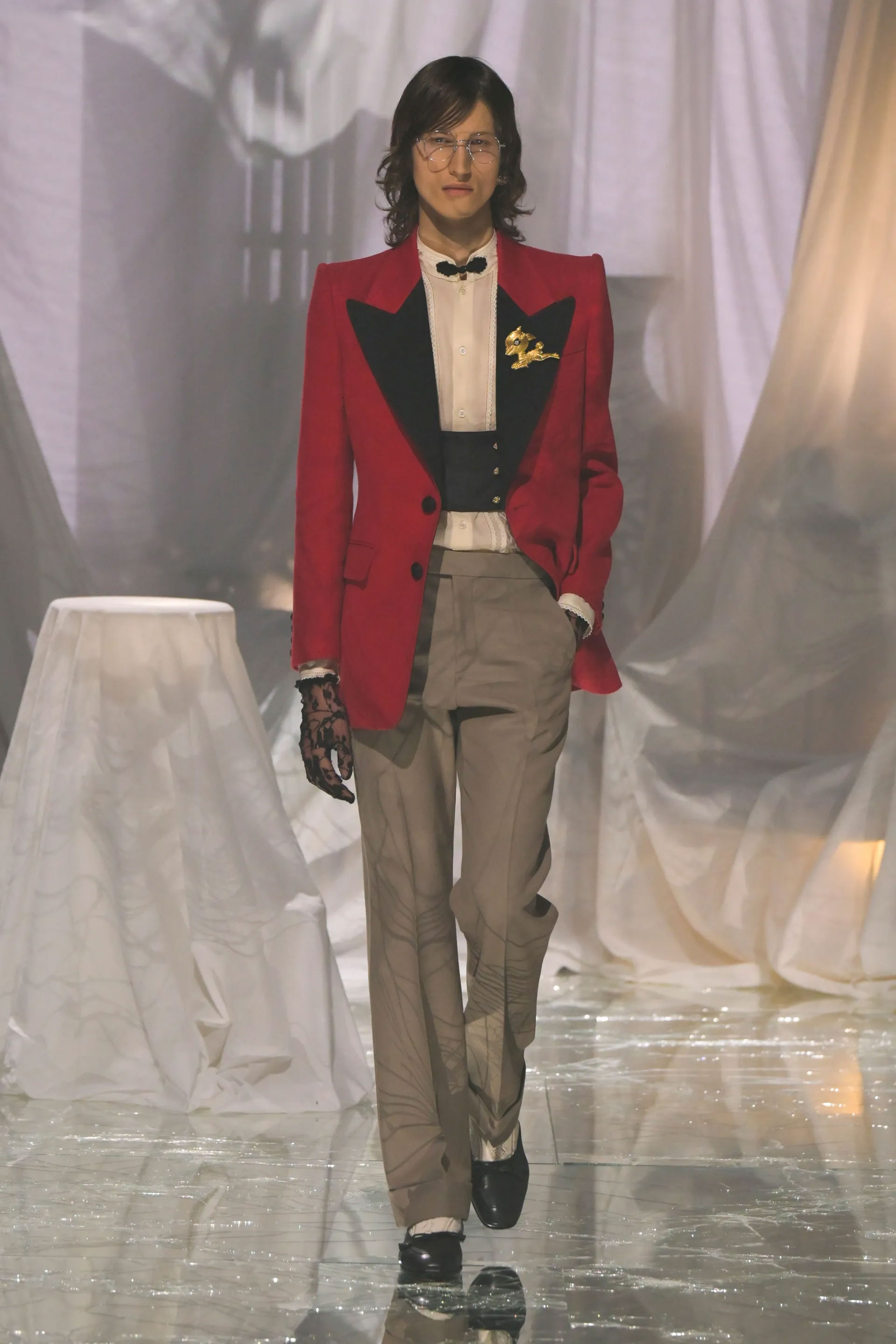 Перша частина колекції стала прямолінійним триб’ютом тому, як одягався засновник модного дому Ів Сен-Лоран. Моделі носили маскулінні двобортні оверсайз костюми, краватки й шкіряні куртки. Друга — віддавала данину еклектичному й піжамному стилю Лулу де ла Фалез, музі Іва Сен-Лорана. Зокрема, з масивними аксесуарами, мереживом, що визирало з-під барвистих суконь і спідниць, та лискучими жакетами.