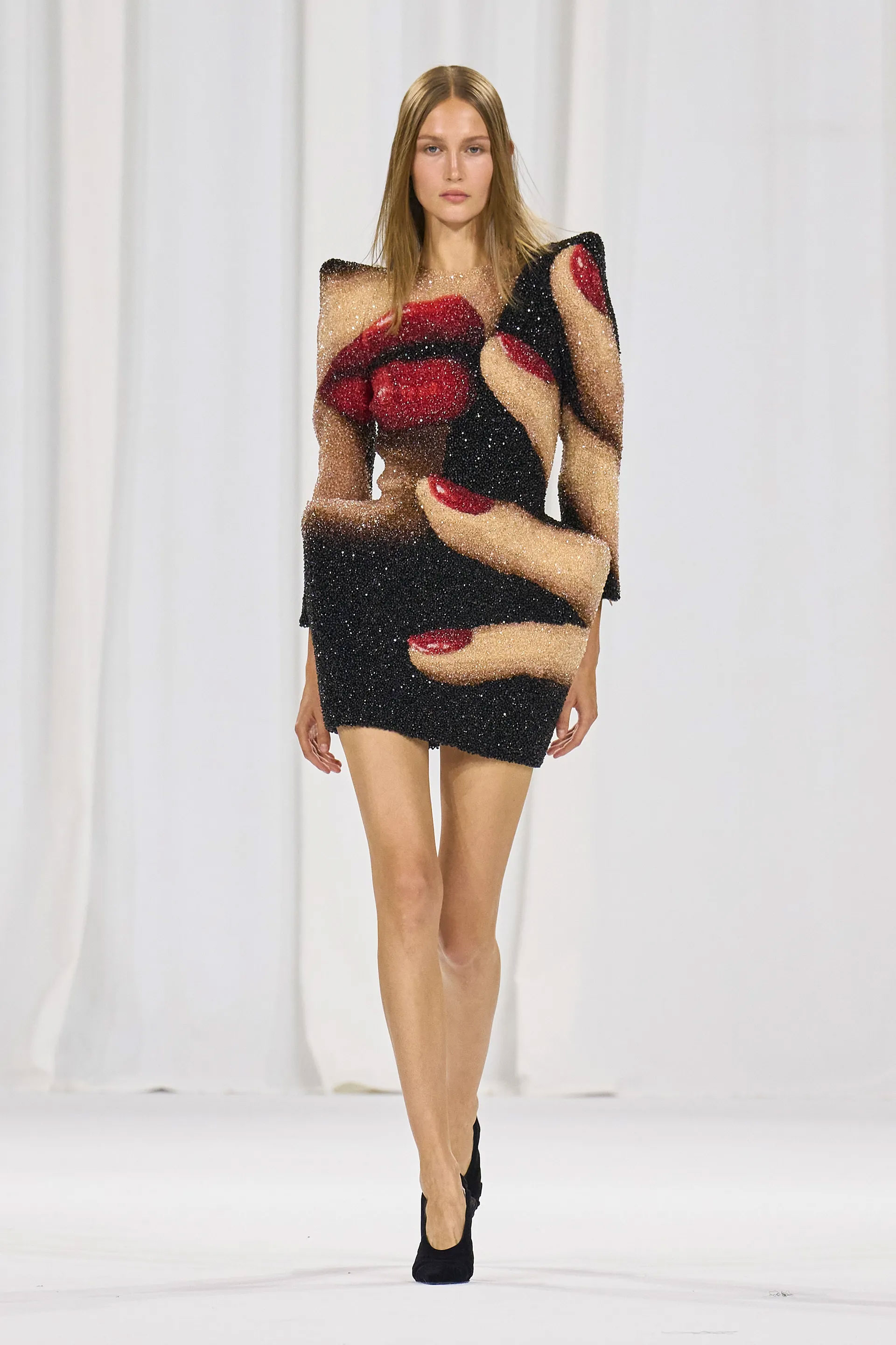 У колекції spring-summer 2025 креативний директор Олів'є Рустен об’єднав красу й моду. Це була відверта й сюрреалістична комбінація. Інкрустовані кришталем обличчя, а також великі губи, руки й очі, з’явилися на сукнях, топах, штанах та жакетах. Зона стегон і плечей вбрань вирізнялася гострістю, що нагадувало про культовий силует П’єра Бальмена Jolie Madame, флакони ароматів трансформувалися в сумки, а палітра колекції відсилала до різноманіття відтінків у б’юті-лінійці Balmain.