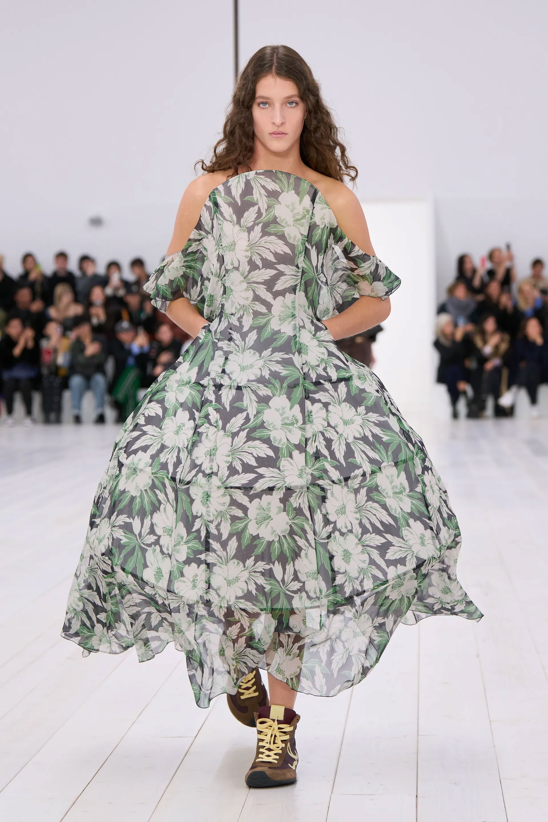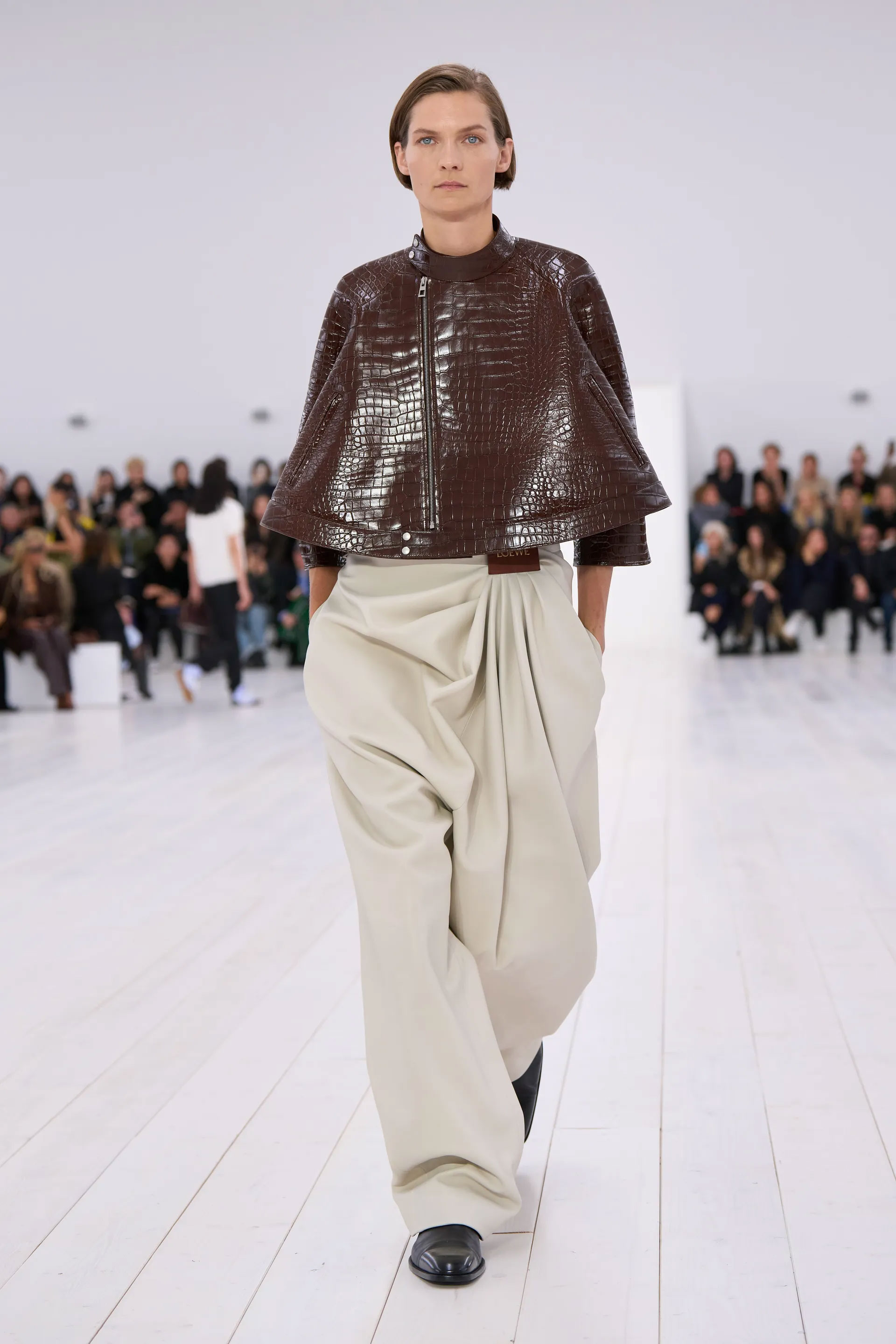 Протягом майже 10 років у Loewe дизайнер Джонатан Андерсон експериментує з одягом і тим, чим він є, обираючи несподівані матеріали та силуети. Нова колекція spring-summer 2025 не стала винятком. У локації показу розмістили роботу з птахом «Єдине місце, де ти приходив до мене, було уві сні» мисткині Трейсі Емін. Одяг уособлював політ фантазії. Короткі пальта створили з перламутру, принт на футболках із портретами Моцарта, Баха, картинами Мане й Ван Гога — з пір’я, лелітки декорували трикотаж, а сукні були закільцьовані.