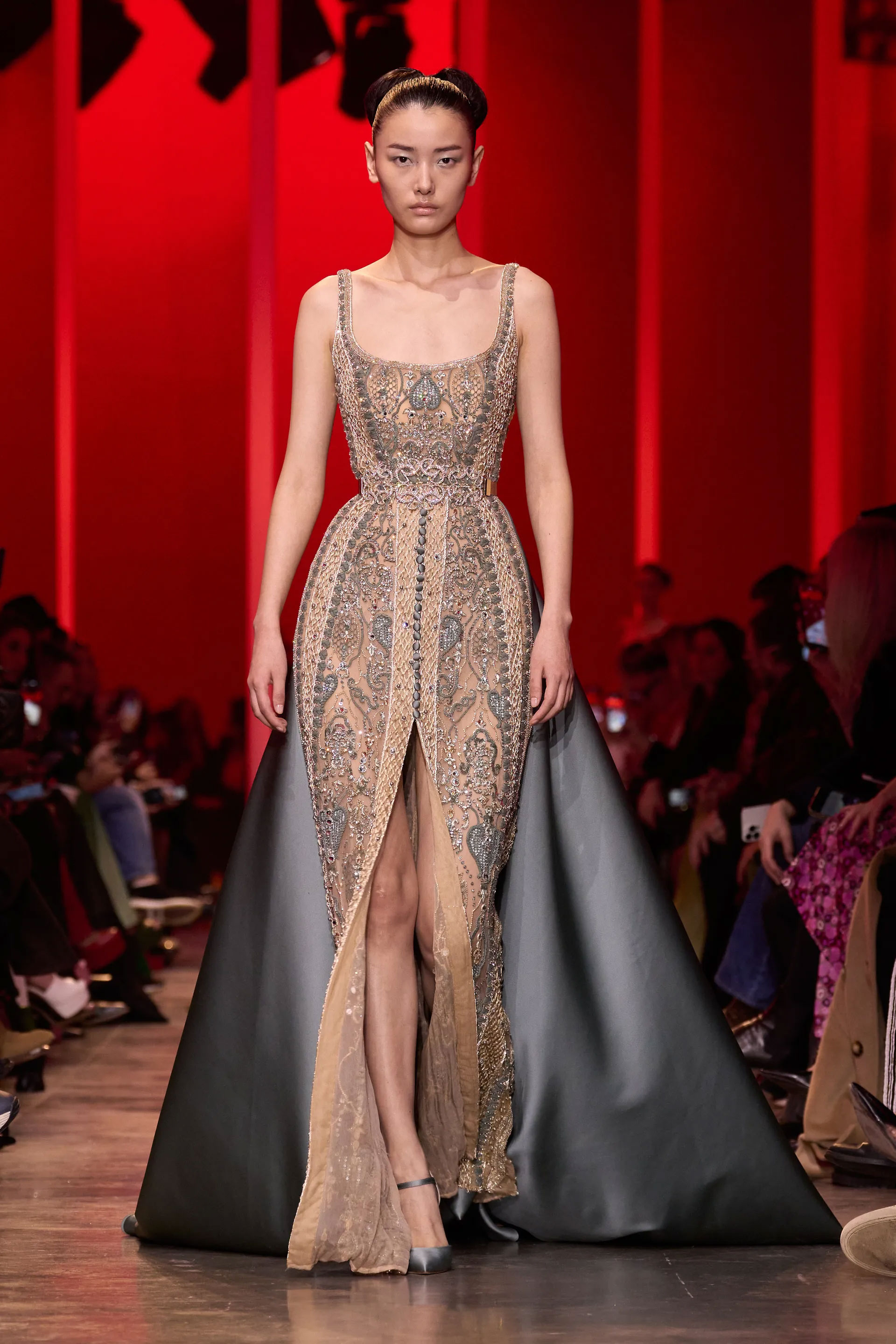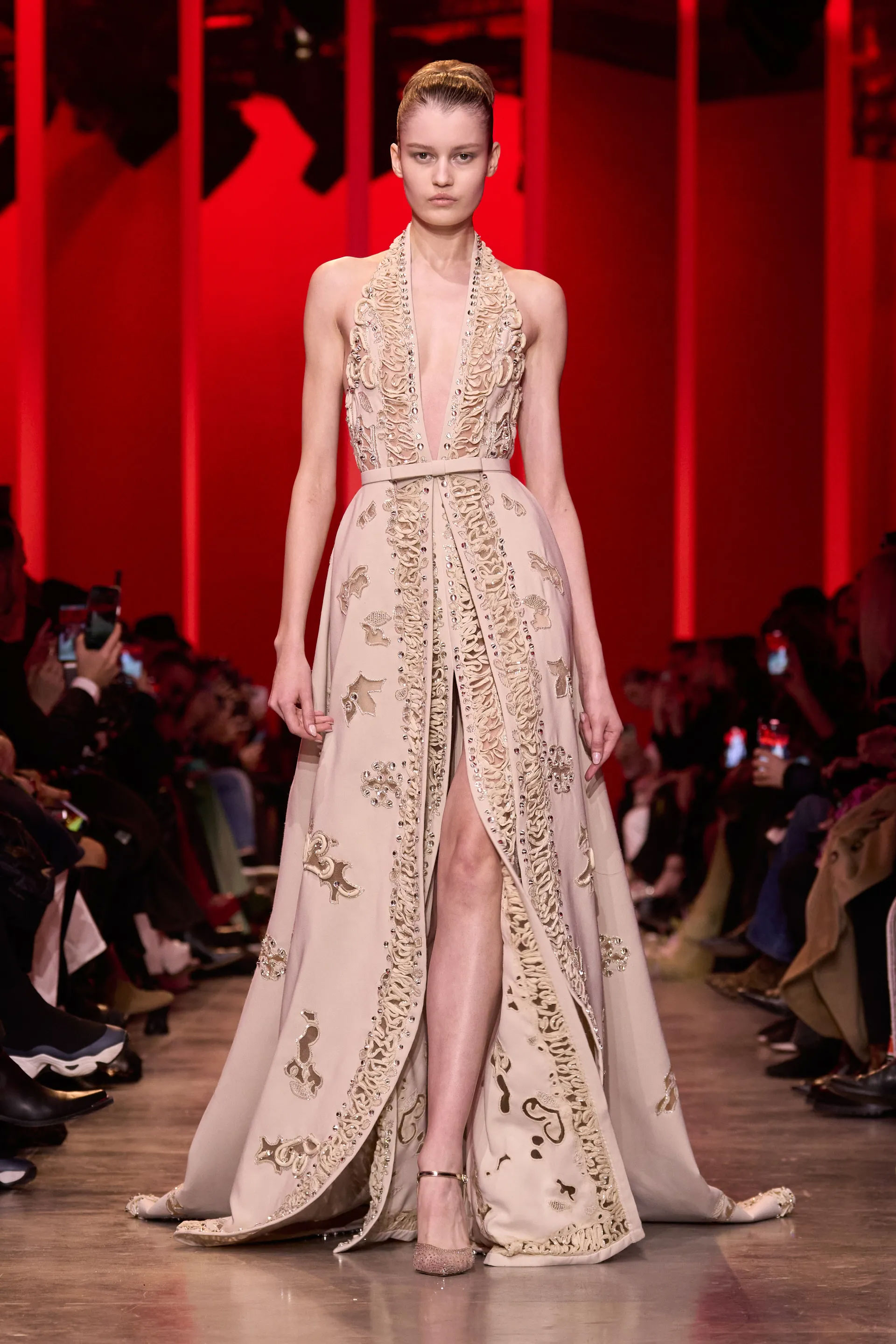 Нова кутюрна колекція Elie Saab втілювала магічність силуетів, поєднану з привабливістю скульптурних ліній і натхненням спекотним Марракешем. Традиційно креативний директор дому з ліванським походженням Елі Сааб створив ансамблі, які містили значну кількість золотистої вишивки, вишуканого мережива та сліпучих леліток. Лише три сукні з червоного шовку з фокусом на крої та фактурах стали винятком у лискучому параді. Без сумніву, елегантна вишуканість образів Elie Saab у категорії високої моди стане яскравою супутницею знаменитостей на майбутньому «Оскарі»