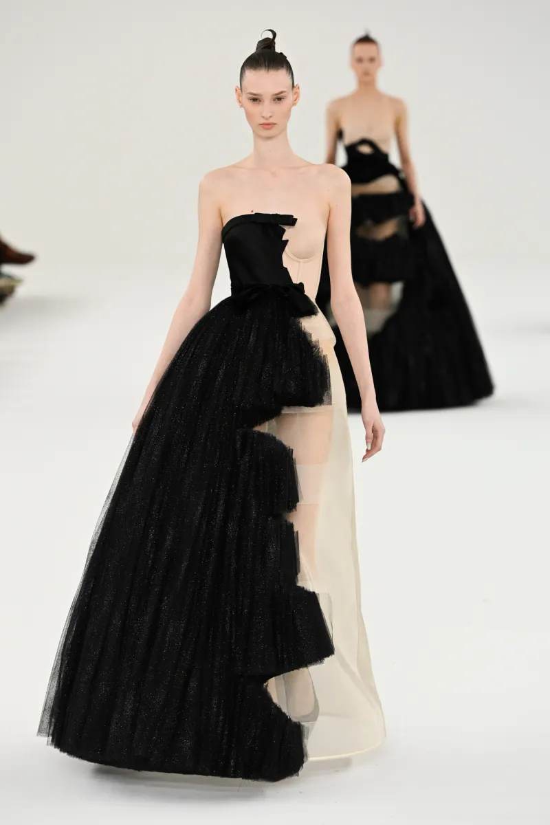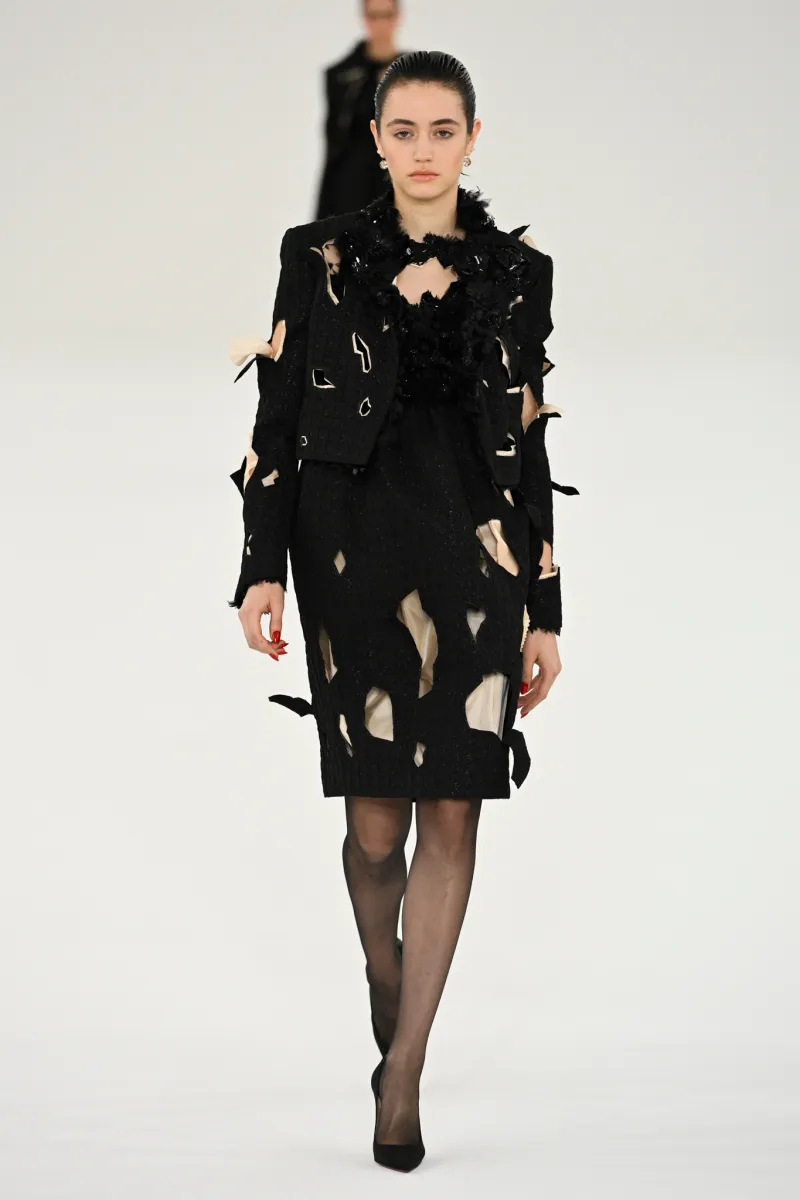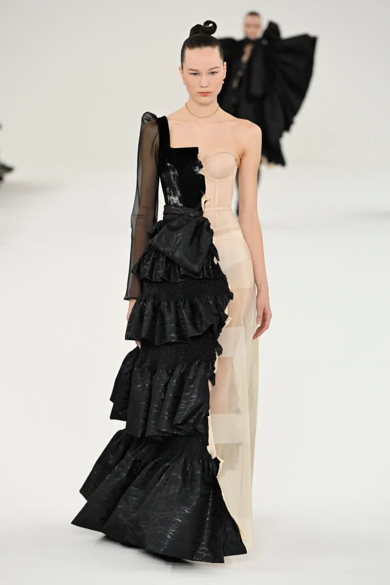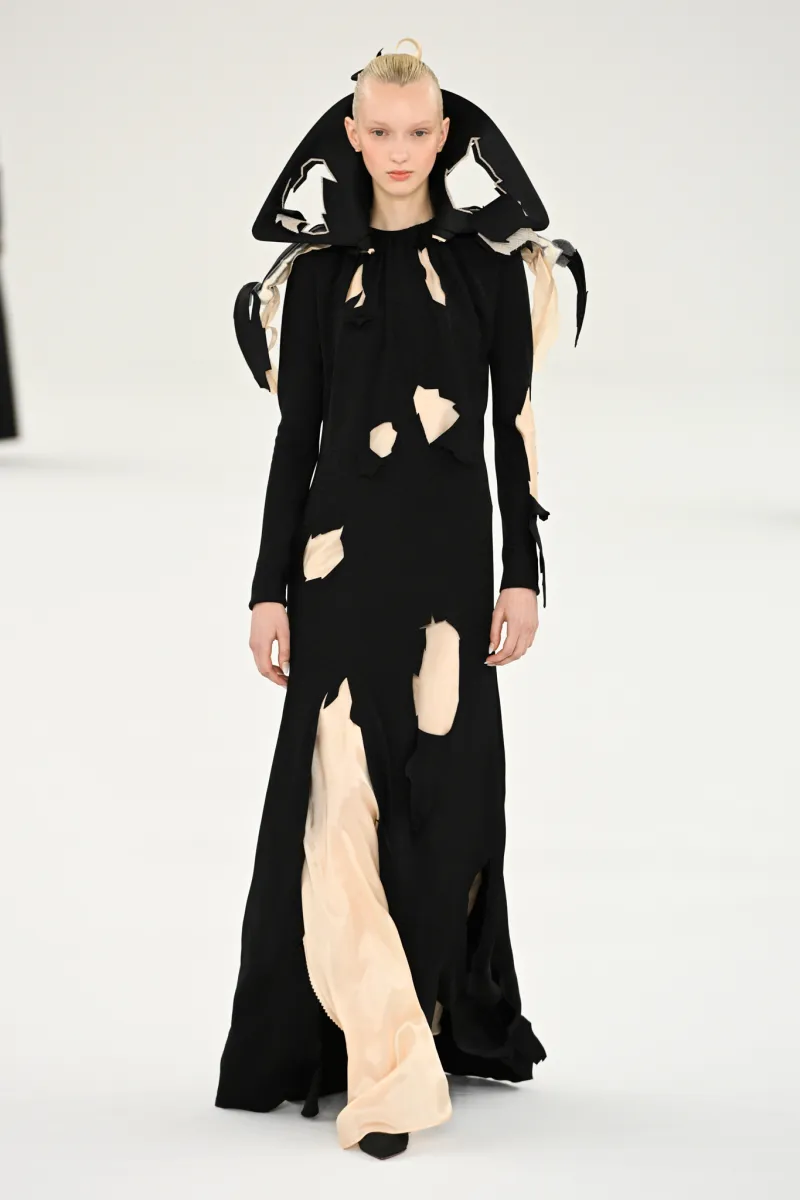 Чи можливо контролювати хаос? Здається, Victor & Rolf знають відповідь. Покремсані образи в колекції Haute Couture spring-summer – 2024 мали вручну оброблені краї, оголяючи найнесподіваніші частини жіночого тіла. Загалом бренд представив 28 монохромних образів, виконаних у різноманітних фактурах: оксамиті, атласі, лелітках тощо.