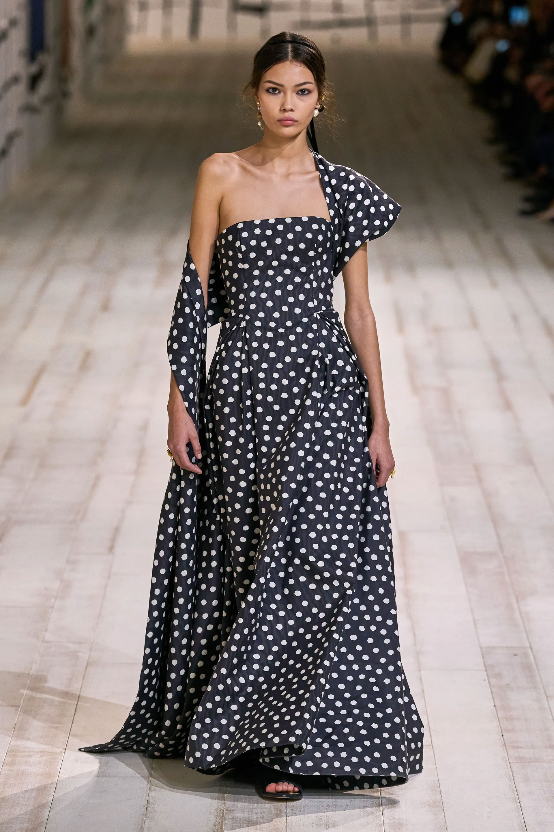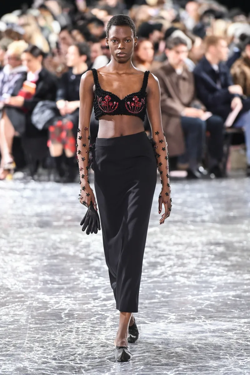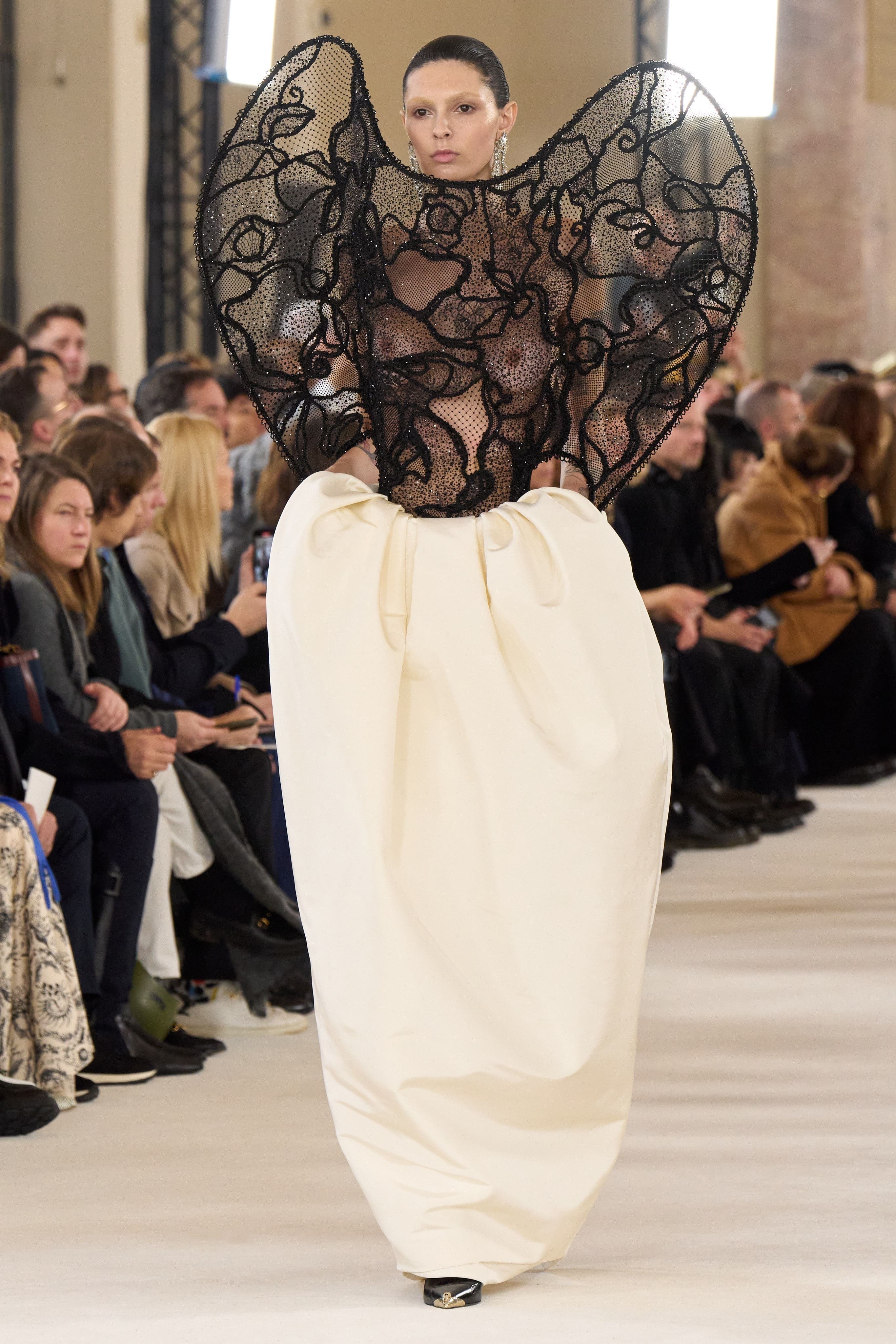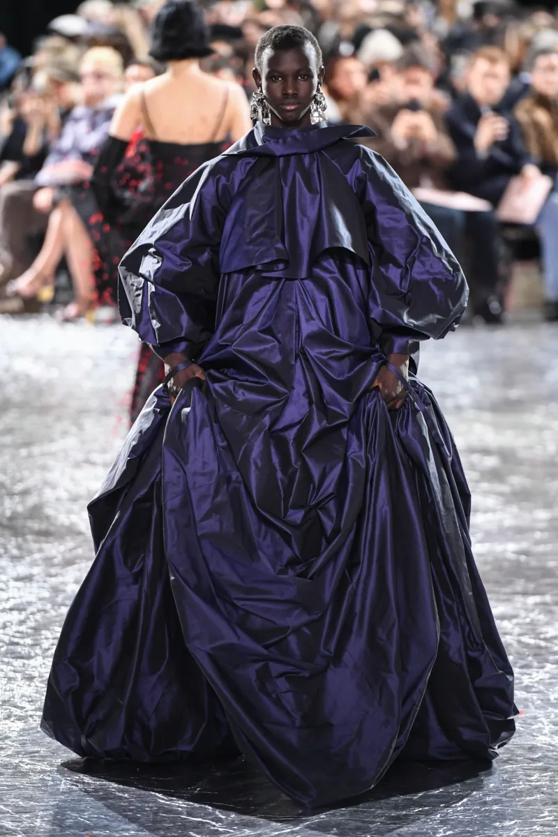 Чи можливо контролювати хаос? Здається, Victor & Rolf знають відповідь. Покремсані образи в колекції Haute Couture spring-summer – 2024 мали вручну оброблені краї, оголяючи найнесподіваніші частини жіночого тіла. Загалом бренд представив 28 монохромних образів, виконаних у різноманітних фактурах: оксамиті, атласі, лелітках тощо.