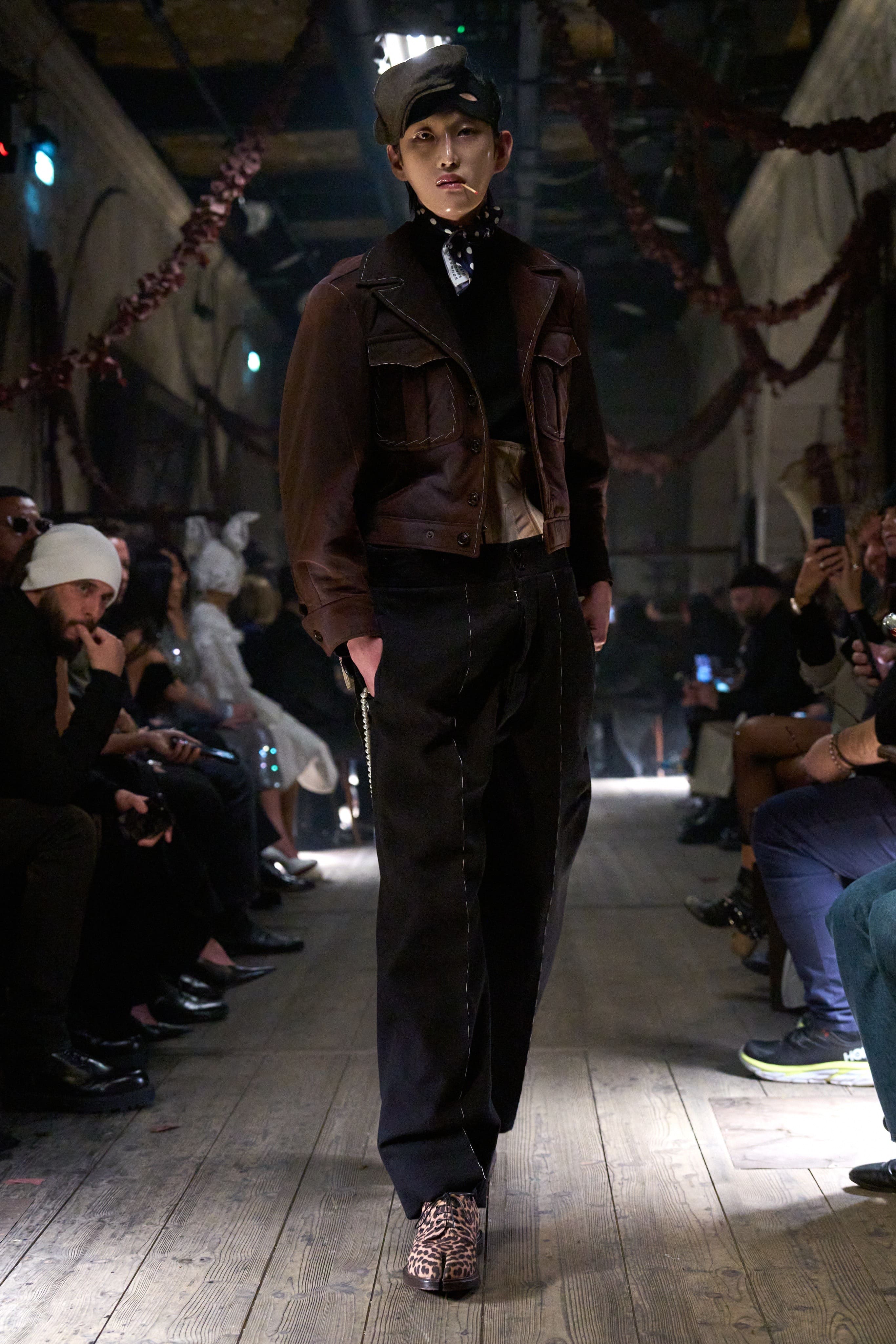 Джон Гальяно блискавично завершує Тиждень високої моди в Парижі з сенсаційною колекцією і готичним перформансом для Maison Margiela. Подія відбувалася в склепінчастому складі під мостом Александра III,  де моделі під тьмяне сяйво місяця драматично кружляли навколо зашкарублих столиків кафе, плакатів з оголошеннями про розшук, розбитих ламп і побитого більярдного столу. Розігрувалася кримінальна драма.