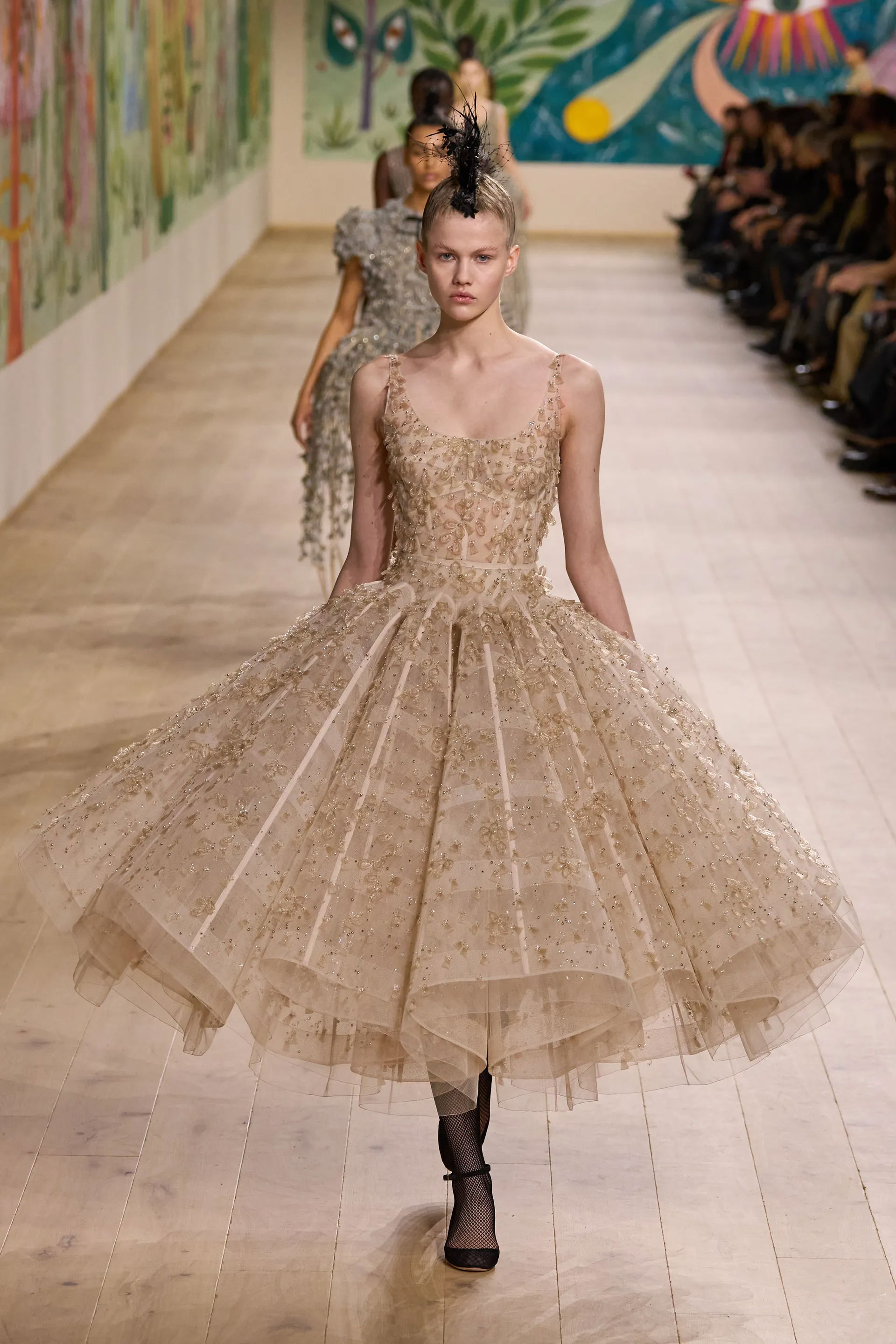 «Аліса в Дивокраї» Льюїса Керрола й сюрреалістична творчість художниці Дороті Теннін — такими були джерела натхнення креативної директорки Марії Грації К’юрі для нової кутюрної колекції Dior. Дизайнерка, що в останні місяці захопилася історією модою, спроєктувала місце «між дитинством та дорослістю, мрією і реальністю», як йдеться в нотатках до показу.