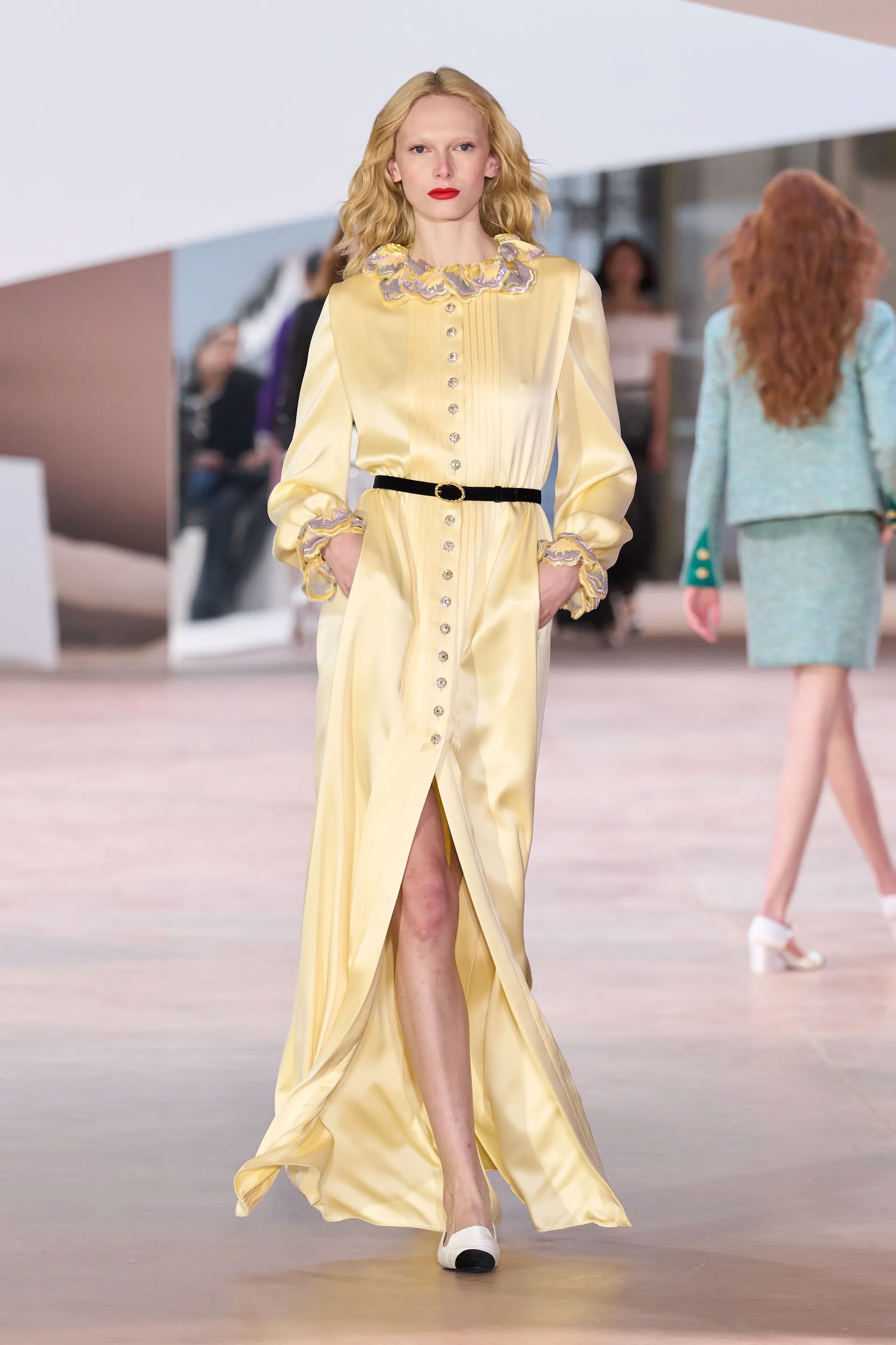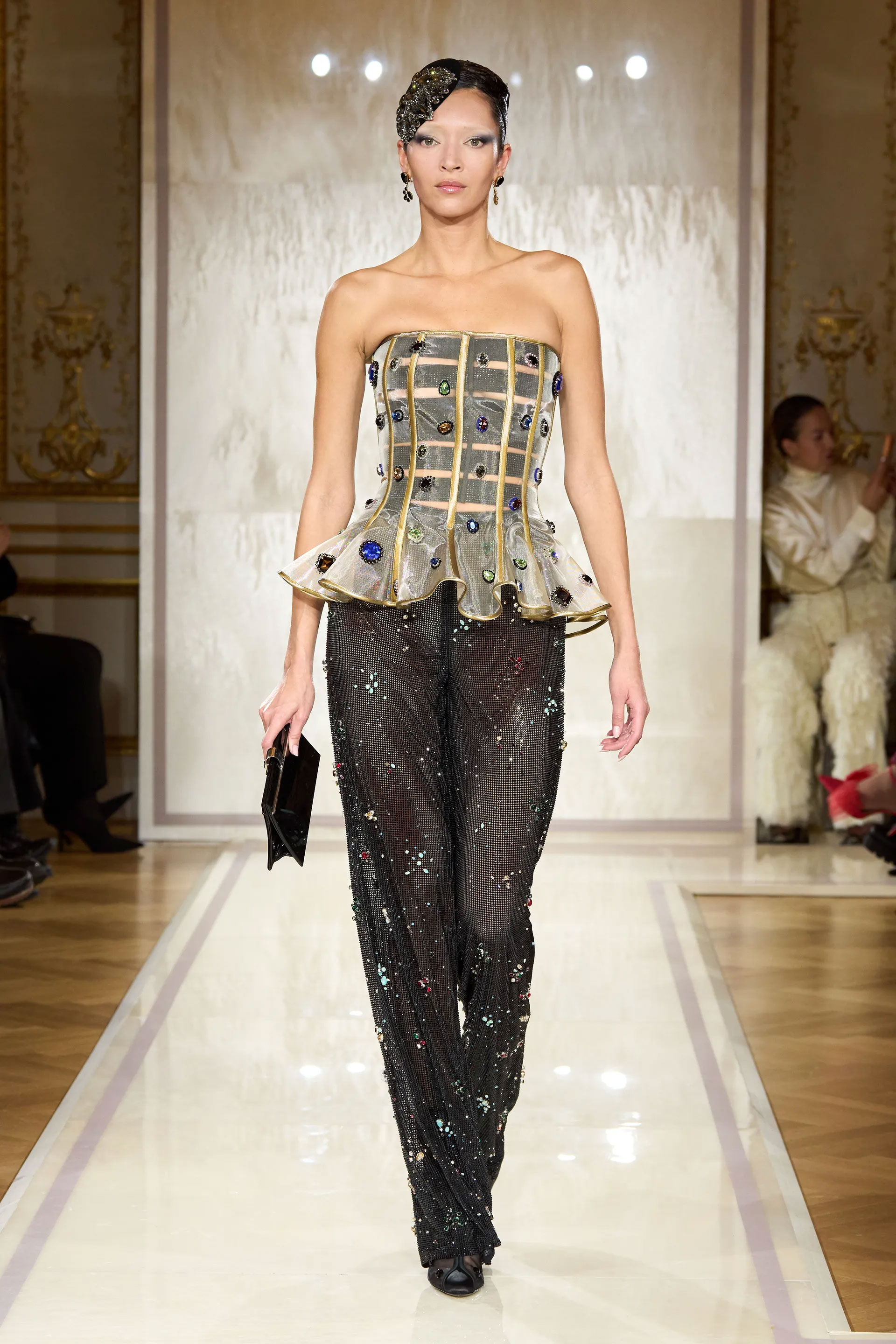 Серед інших образів кутюрної колекції — сукні максі та міні з атласу та тюля, довгі пальта, розшиті золотистими нитками для ефекту trompe l'oeil, сорочки та штани з квітковими мотивами, гіпюрові блузи та спідниці з бахромою з бісеру.