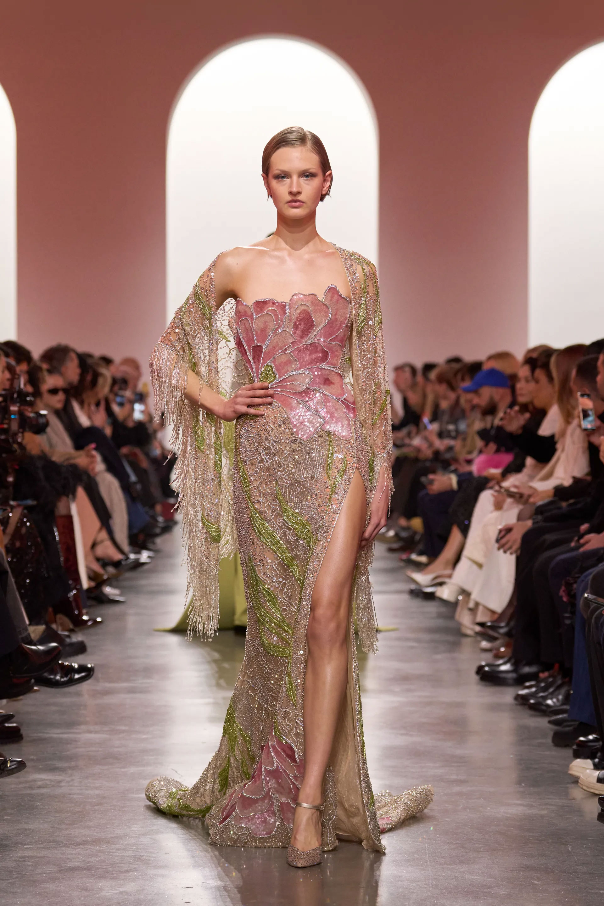 У листопаді дім ліванського дизайнера Елі Сааб відзначив 45-річчя з грандіозним показом «1001 сезон Elie Saab» у Саудівській Аравії, де з’явилися Селін Діон, Дженніфер Лопес і Каміла Кабельйо. Тепер кутюр’є повернувся в Париж із колекцією, натхненною імпресіоністичним садом, яку представили в національному музеї Токійський палац.