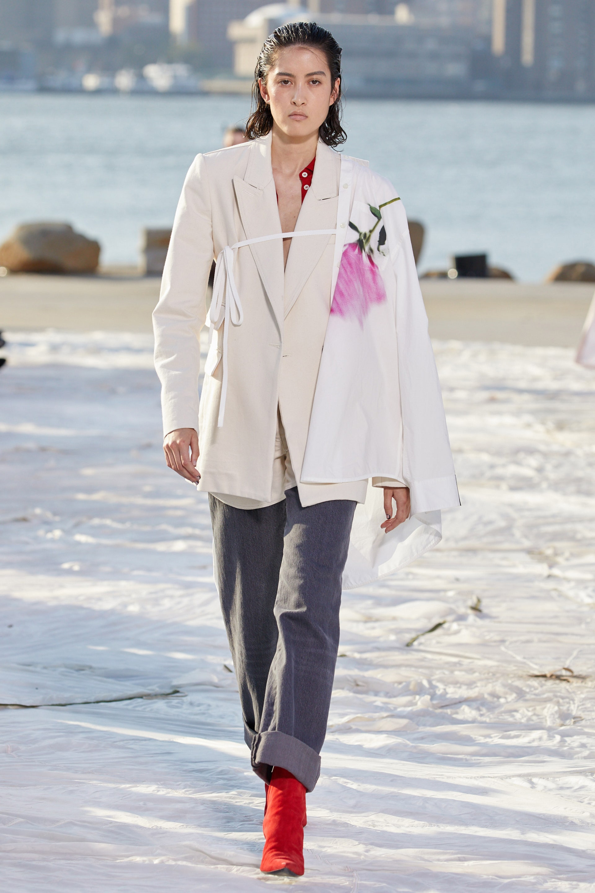 Одним из самых ожидаемых показов Недели моды в Нью-Йорке стало дебютное офлайн-шоу дизайнера Питера До, которое прошло неподалеку от судоходного пролива Ист-Ривер. С момента выхода первой коллекции в 2019 году у Peter Do сформировался свой "рецепт" роскошного минимализма. На фоне Манхэттена появились и знаковые для дизайнера костюмы-четверки, включающие облегченный плиссированный низ, идеально скроенные прямые пальто с утрированными цветочными аппликациями, неоновые блузы со стянутыми манжетами и невесомые трикотажные наряды из платьев макси и струящихся брюк.