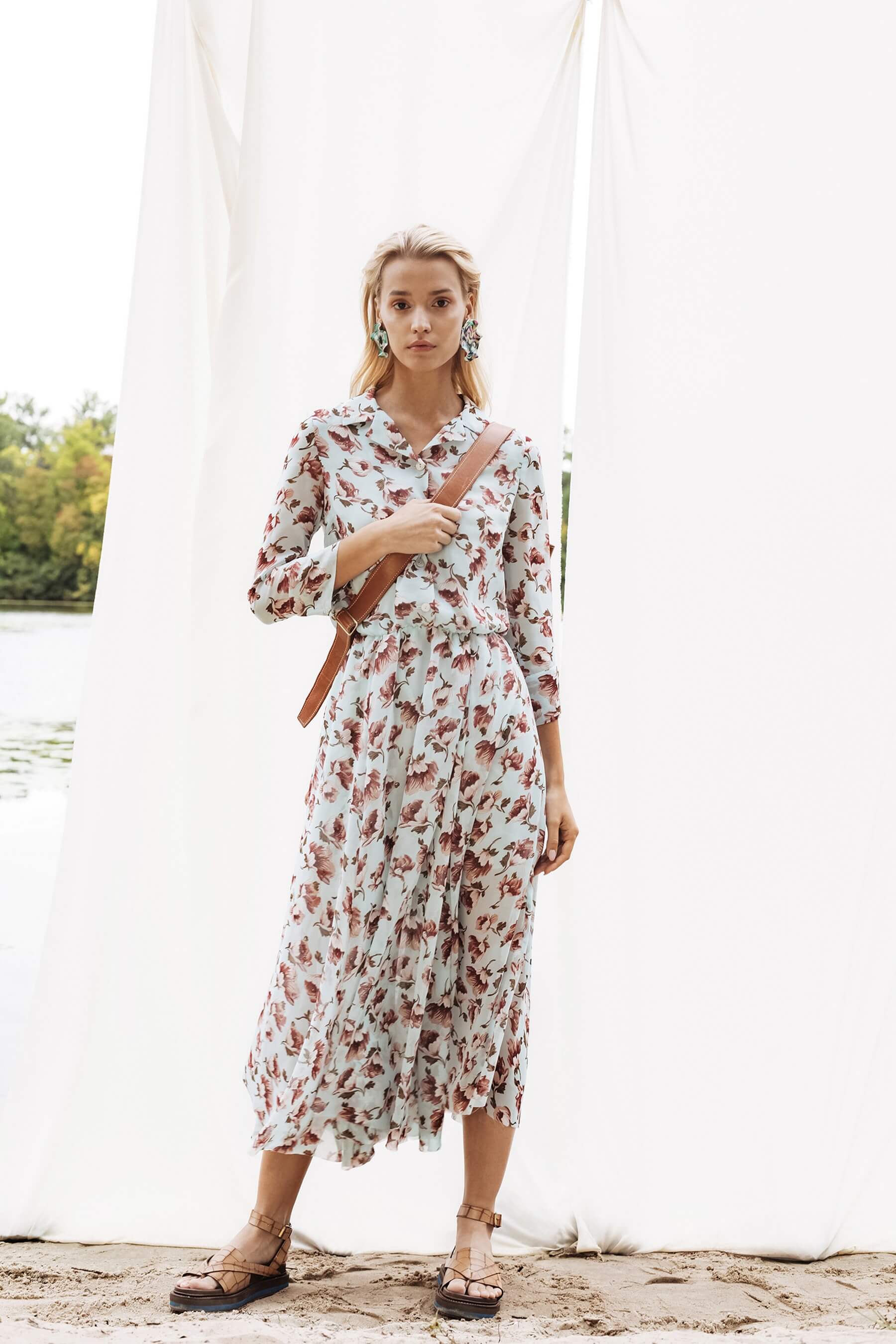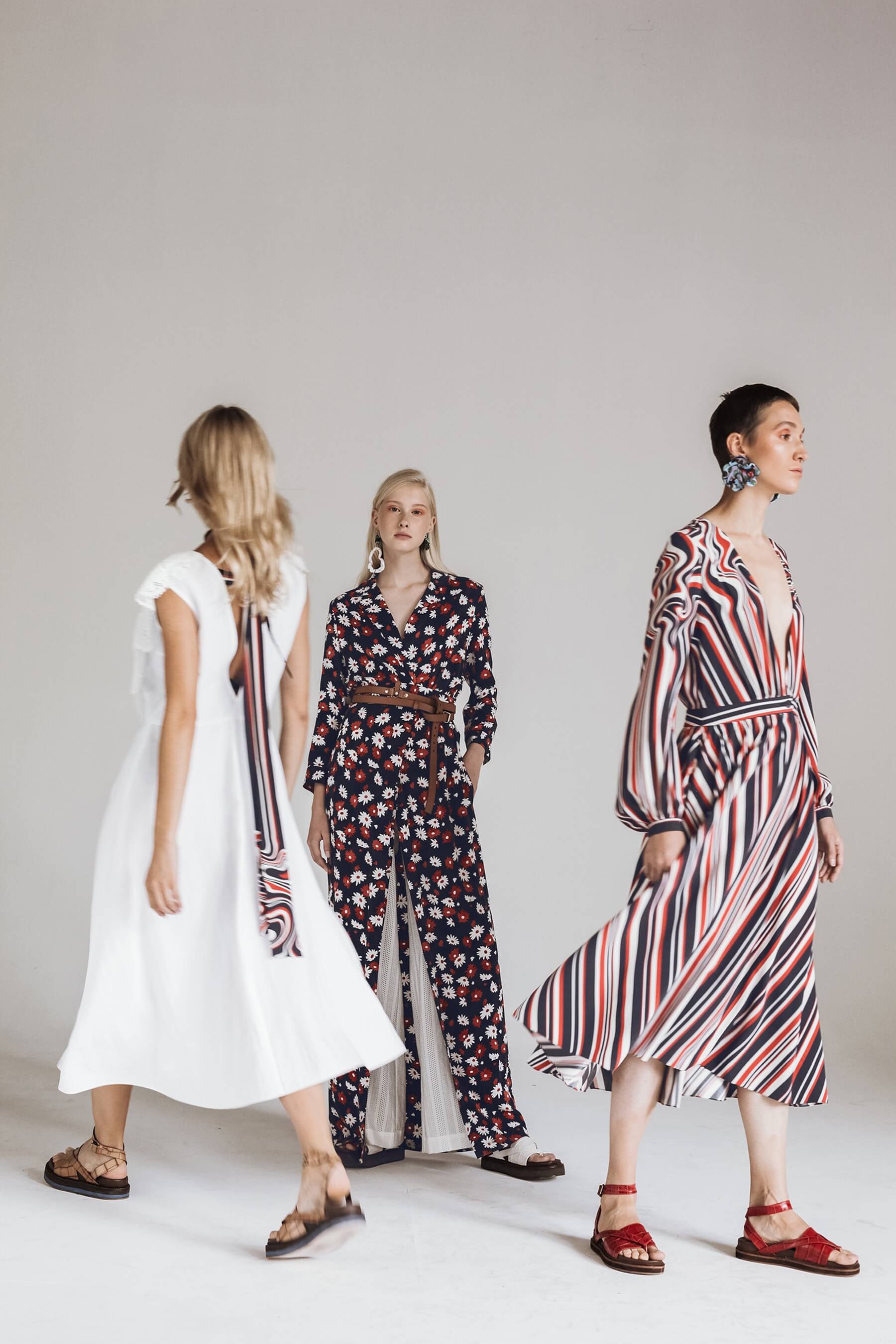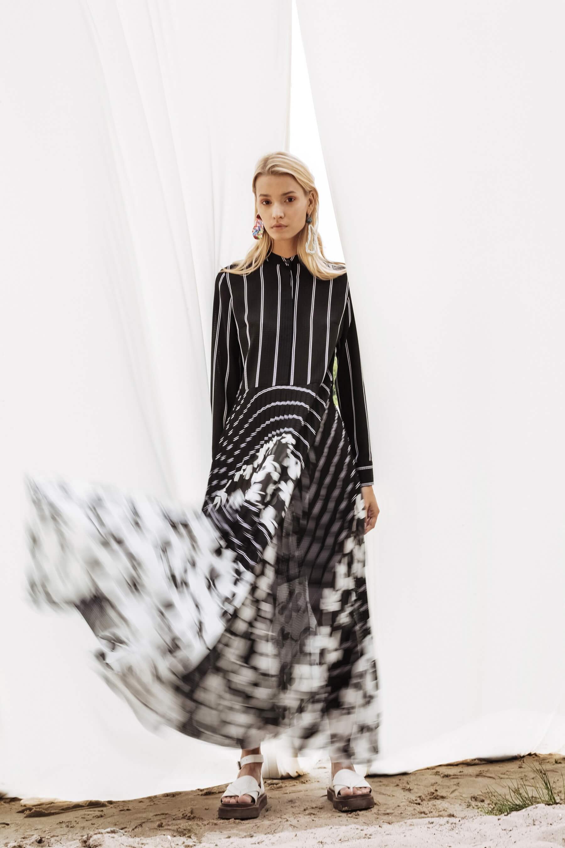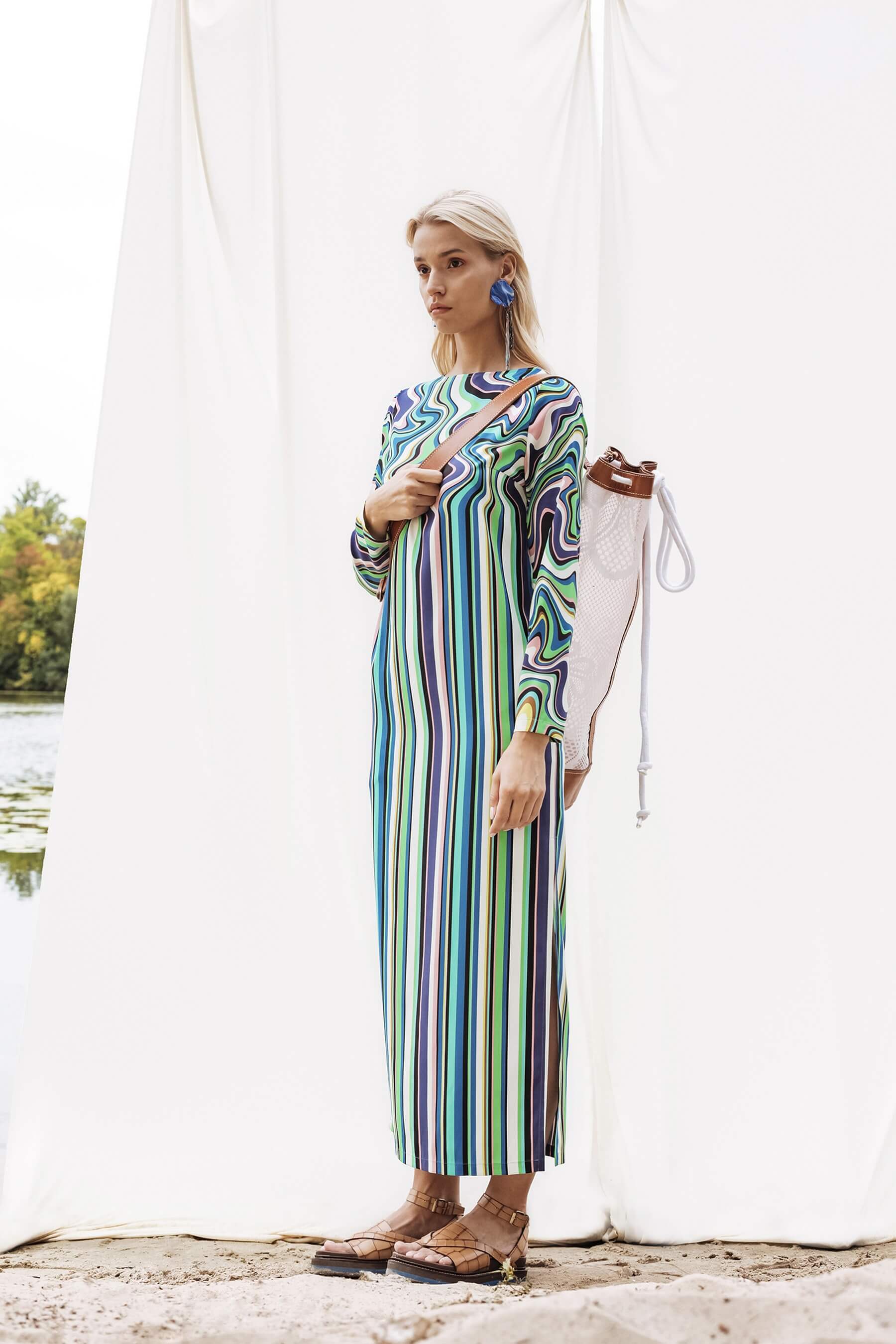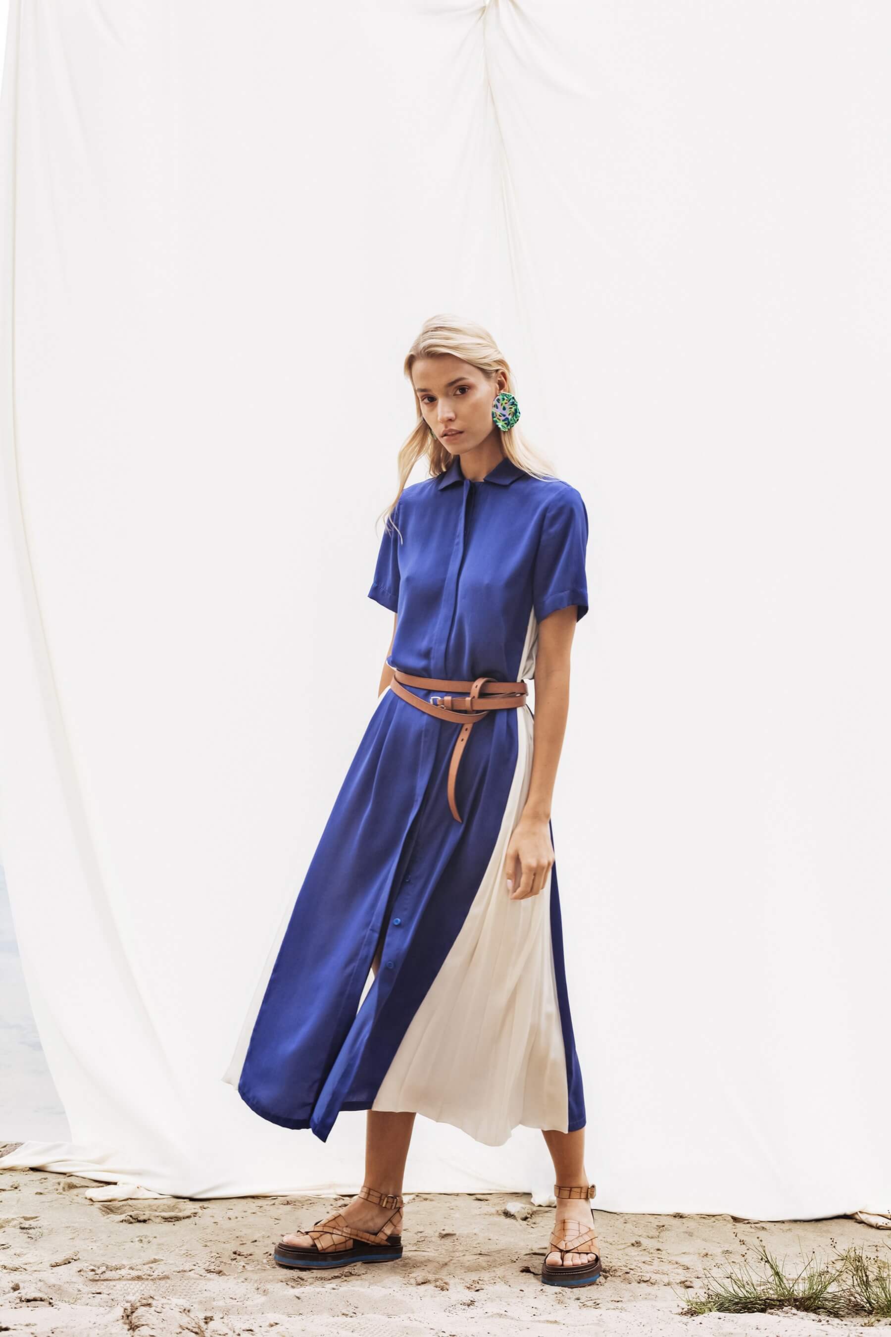 Побережья Нормандии и Бретани с их вольными ландшафтами и фактурами стали источниками вдохновения — нежные и лаконичные платья выполнены в цветах западного неба, пряностей французских южных рынков или вовсе имитируют дощатые фасады пляжных домиков в нормандском стиле "коломбаж" — синие, в полоску.