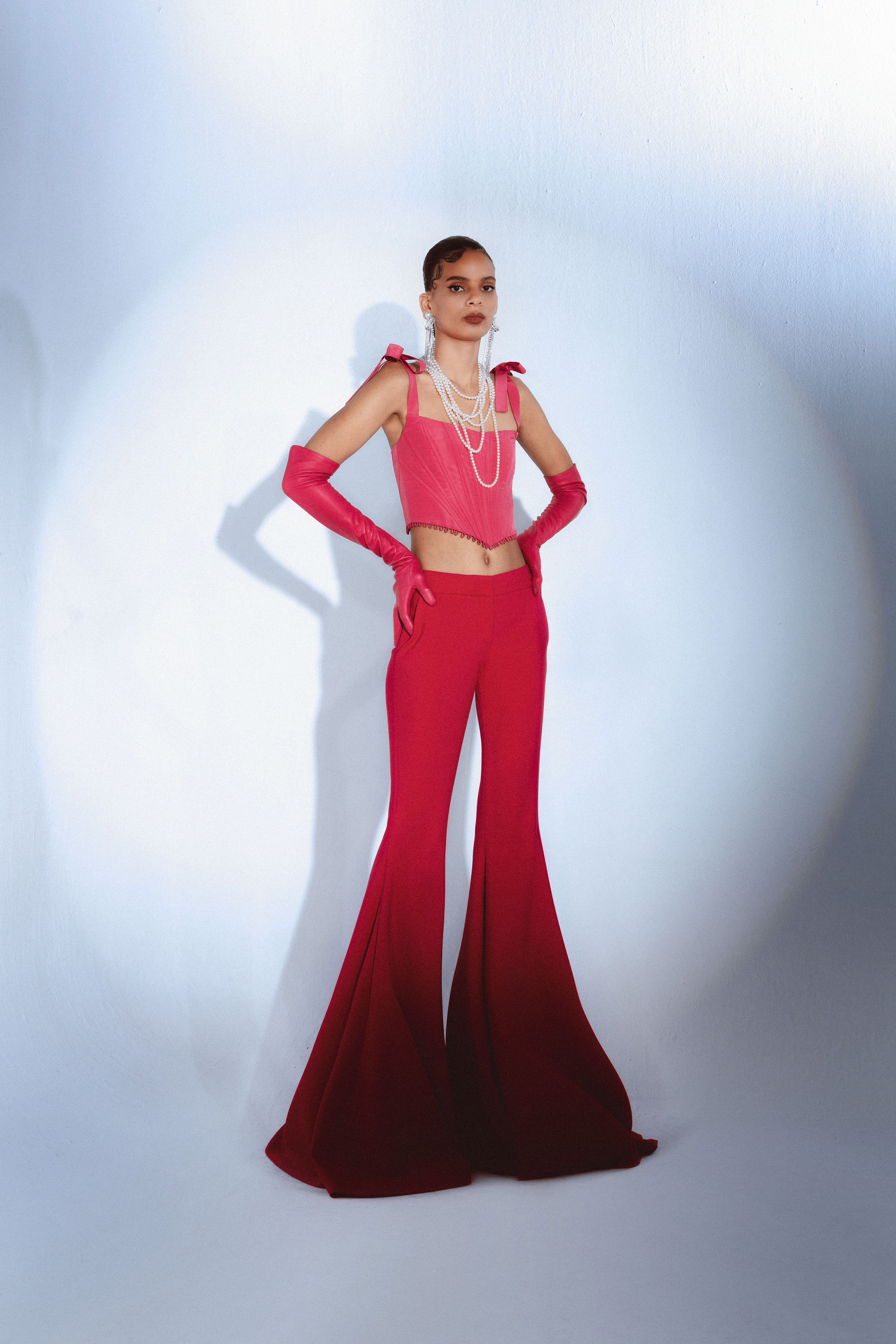 В его коллекции вещи, которые хочется носить «на выход»: нарядные платья с оборками (которые выглядят как «внебрачные дети» Эмануэля Унгаро и Бетси Джонсон), брючные костюмы и вариации смокингов, короткие платья-бюстье и штаны с пышным расклешенным низом. И хотя коллекция осенняя, она больше напоминает все же о лете. Во многом благодаря гороховым принтам и ярким вспышкам розового и красного цветов.