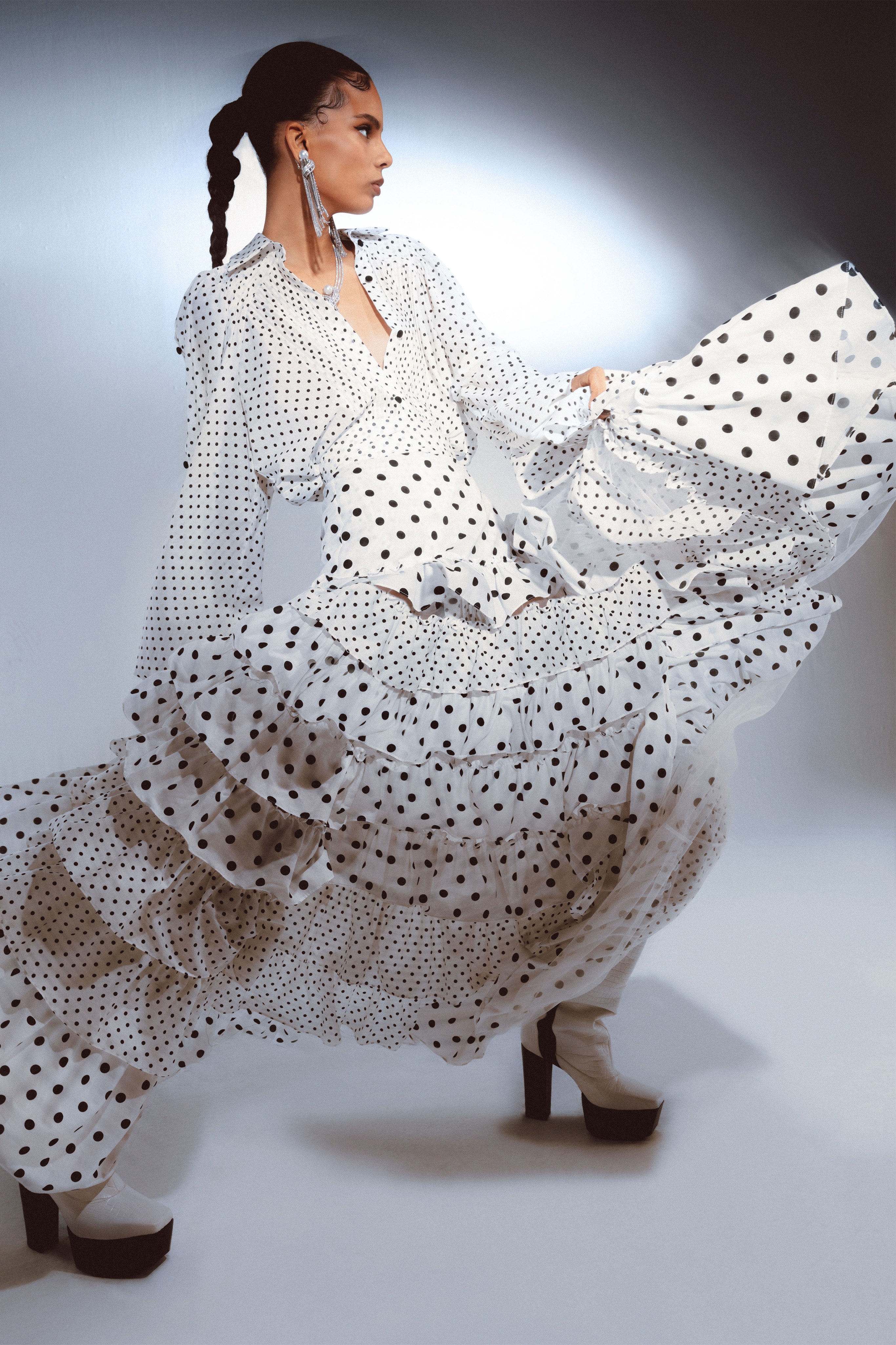 Вдохновением для Прабала Гурунга стали улицы Нью-Йорка, по которым дизайнер колесил во время локдауна. «Я катался от центра к окраинам и видел трансгендерных художников и драг-квин в платьях, словно взятых с выпускного 1980-х годов. Я видел радость и надежду. Они напомнили мне, почему я переехал в Нью-Йорк 20 лет назад».
