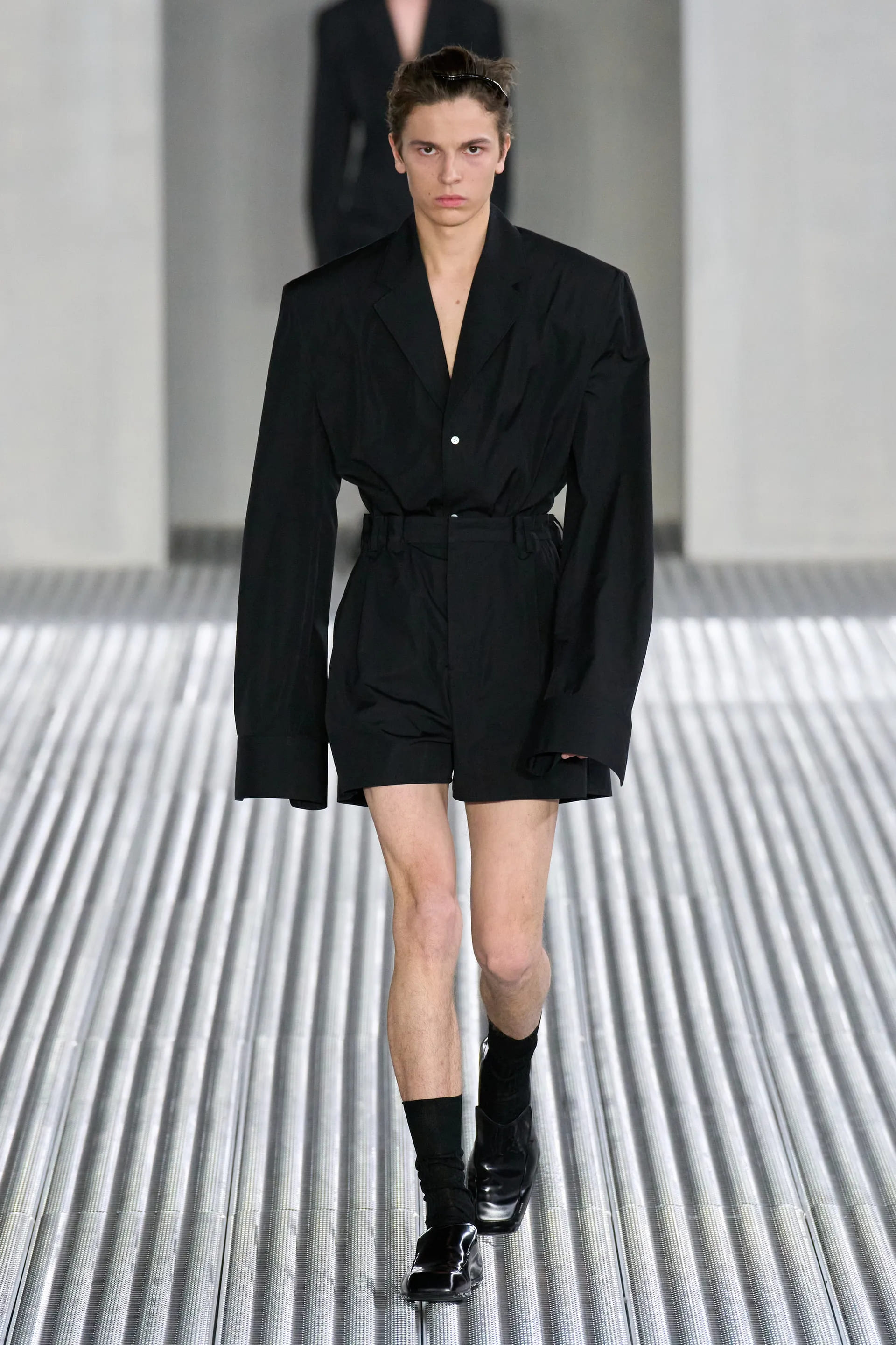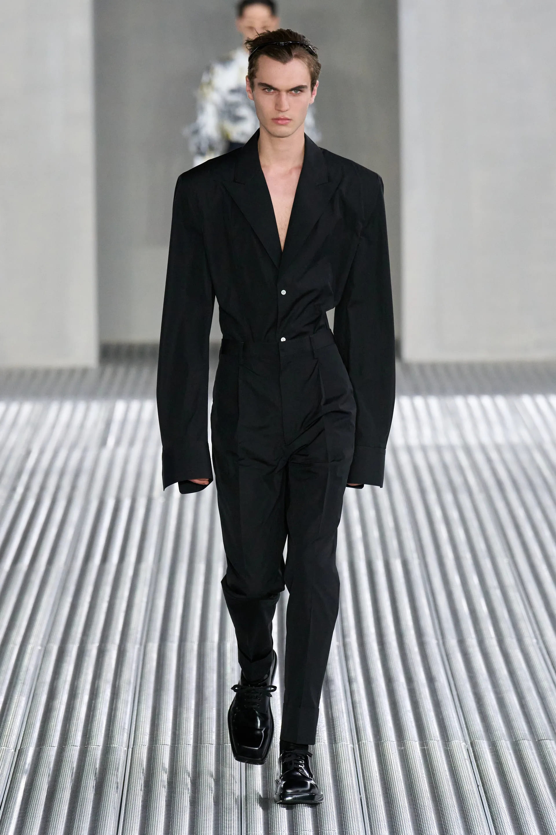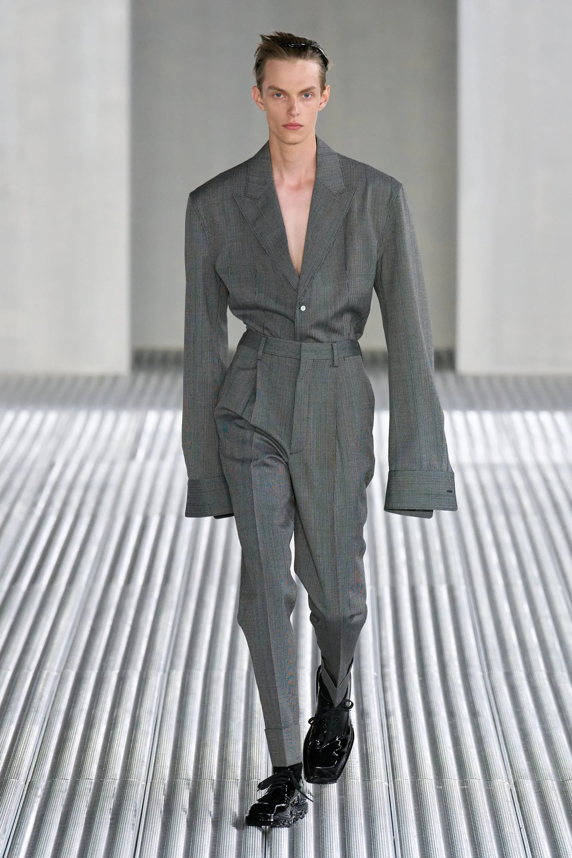 У новому сезоні Міучча Прада та Раф Сімонс досліджують свободу тіла. Цього разу дизайнери не вдаються до створення невагомих чоловічих спідниць або ж суконь. Навпаки, Прада та Сімонс експериментують з формами та текстурами класичного одягу, звертаючись до властивому Prada тейлоригну.