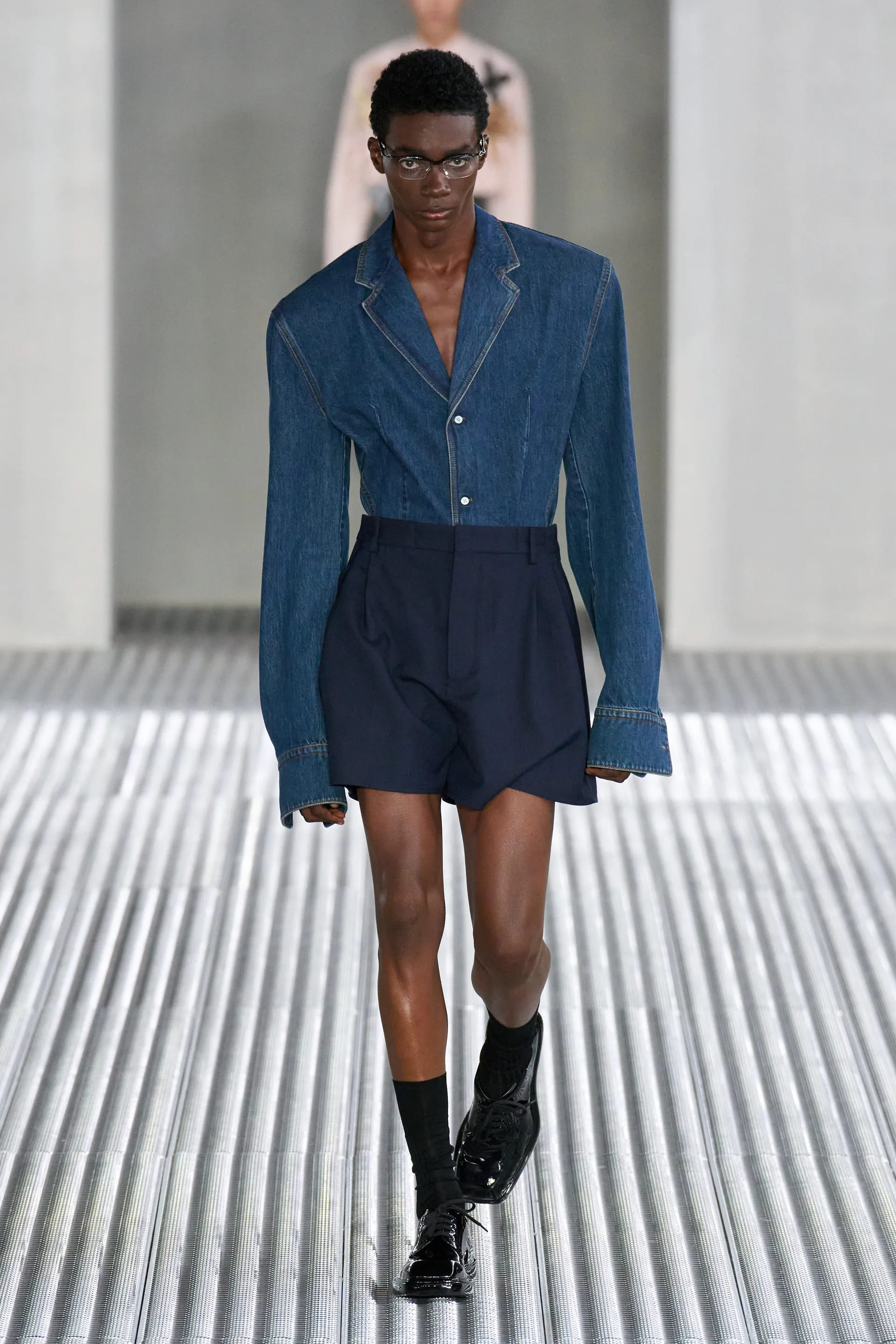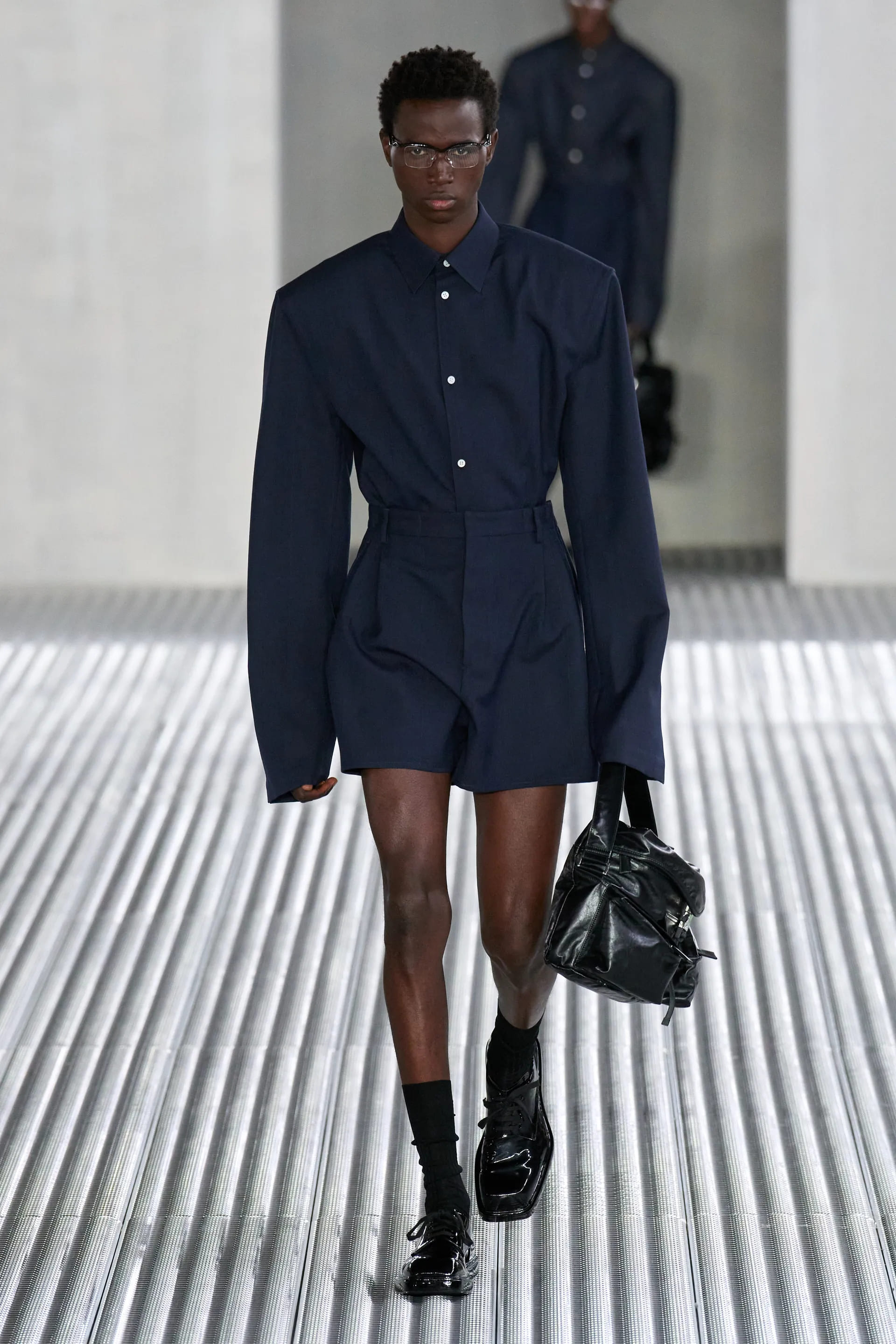 Сценографія шоу весна-літо — 2024 продовжувала ідею колекції. Показ нової колекції Prada пройшов в кімнаті зі Deposito of the Fondazione зі сталевими стінами. Шоу супроводжувалося треком Closer (“Ближче”) гурту Nine Inch Nails.