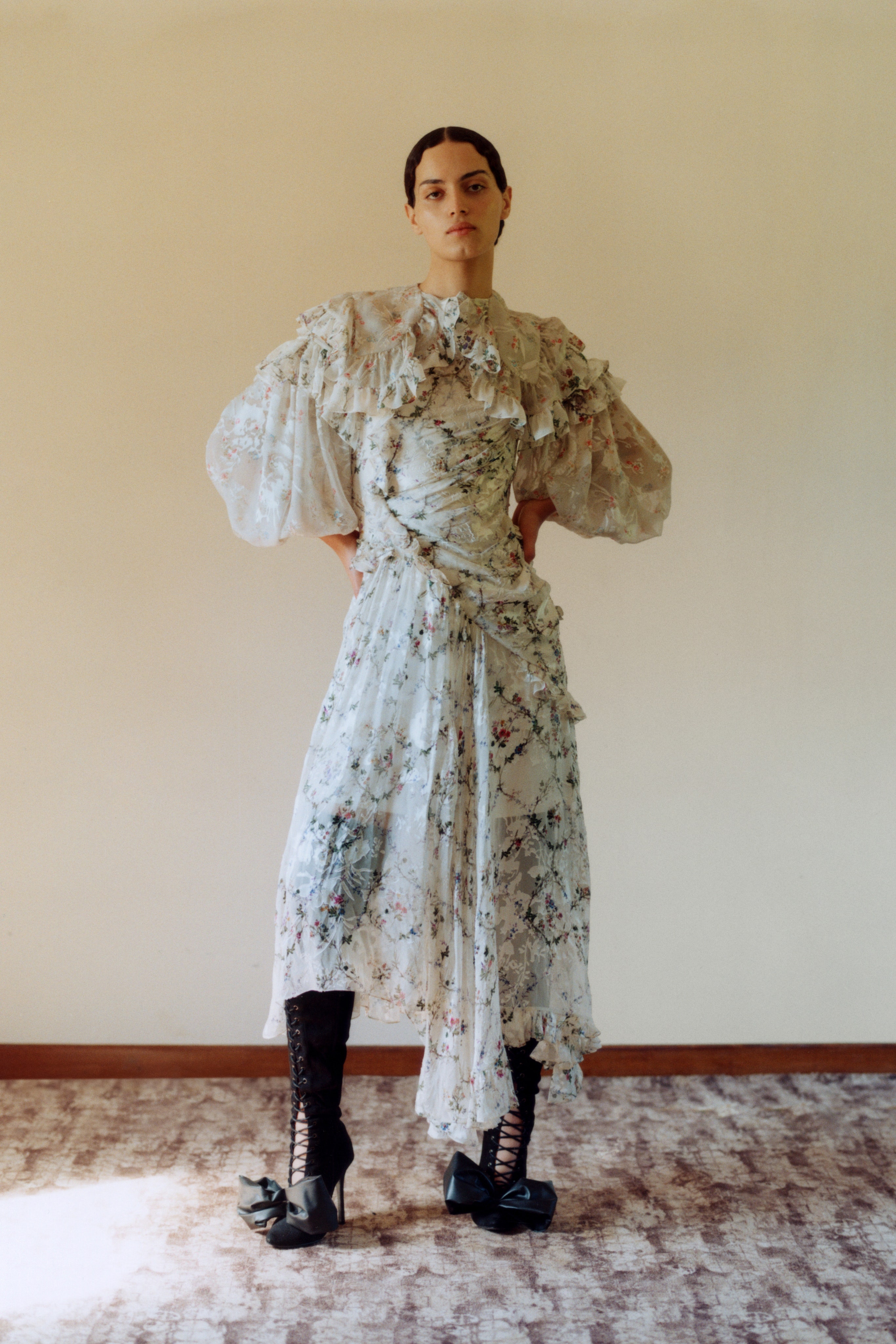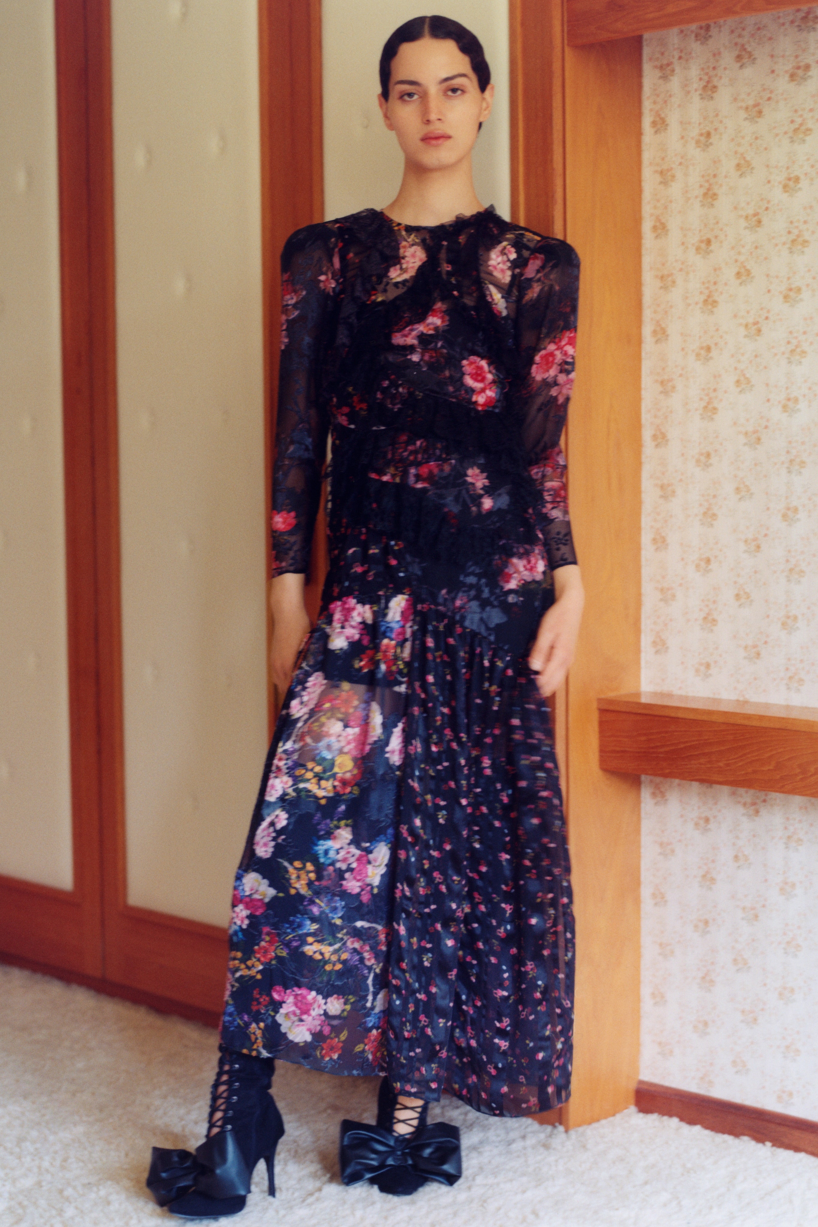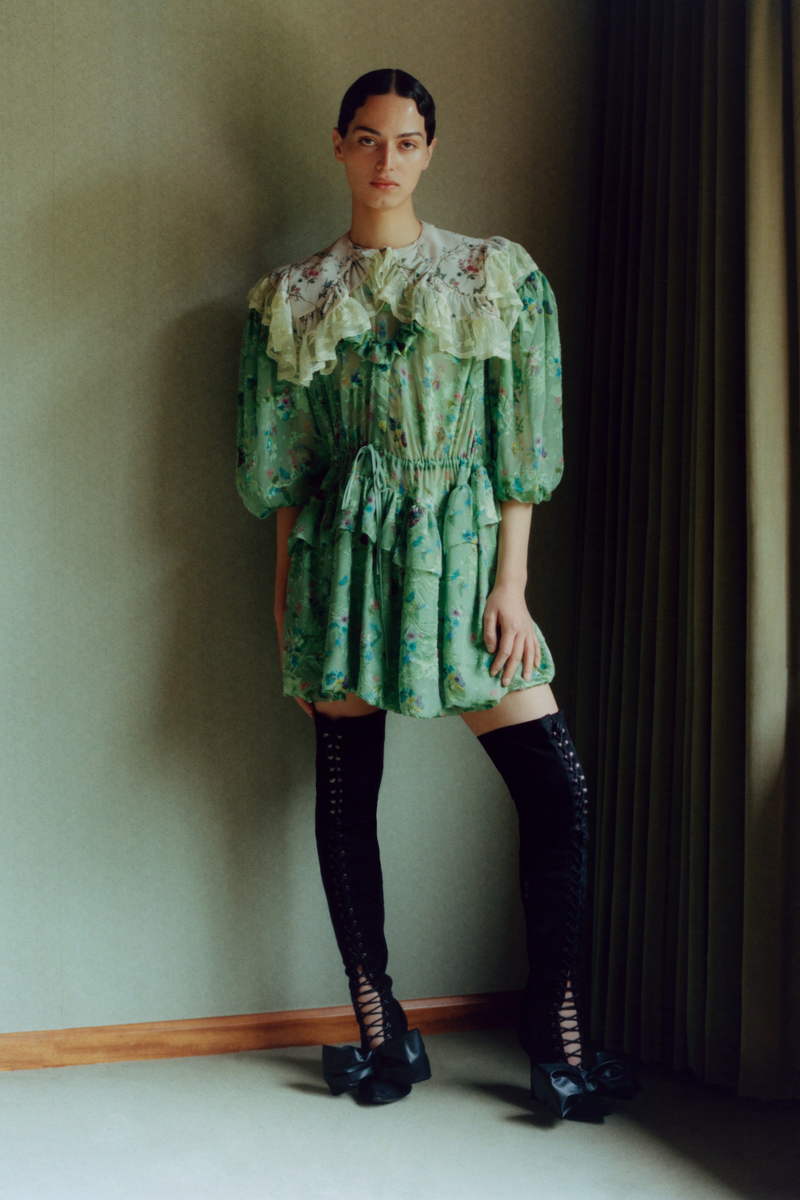Дизайнеры Джастин Торнтон и Теа Брегацци создавали предыдущие коллекции вместе со своими детьми, вплетали в наряды дорогие сердцу мотивы старинных сказок, образы вещей из детства, найденных в гараже. Круизная коллекция стала фантазией о беззаботности, маскараде и радости возвращения к празднику после темных дней. Так, дуэт смешал в одном флаконе стиль юной принцессы Дианы, с его нарочито громоздкими платьями и рукавами-буфами, отсылки к нарядам арлекинов и творческой молодежи 20-х. В коллекцию вошли свитеры в клетку аргайл, многоярусные платья в цветочный принт, наряды с пышными бархатными воротниками, двубортные жакеты и сияющие пайетками платья для вечеринок. Образы дополнили волнообразные укладки в стиле танцевальной и кабаре-моды 20-х, туфли и ботфорты с пышными бантами и облегающие шляпки в сборках. Ключевыми моделями стали нательные комбинезоны из разноцветных лоскутков ткани и остроумный макинтош из песочного габардина с бахромой на кожаных рукавах и поясом карнавальной шахматной расцветки.