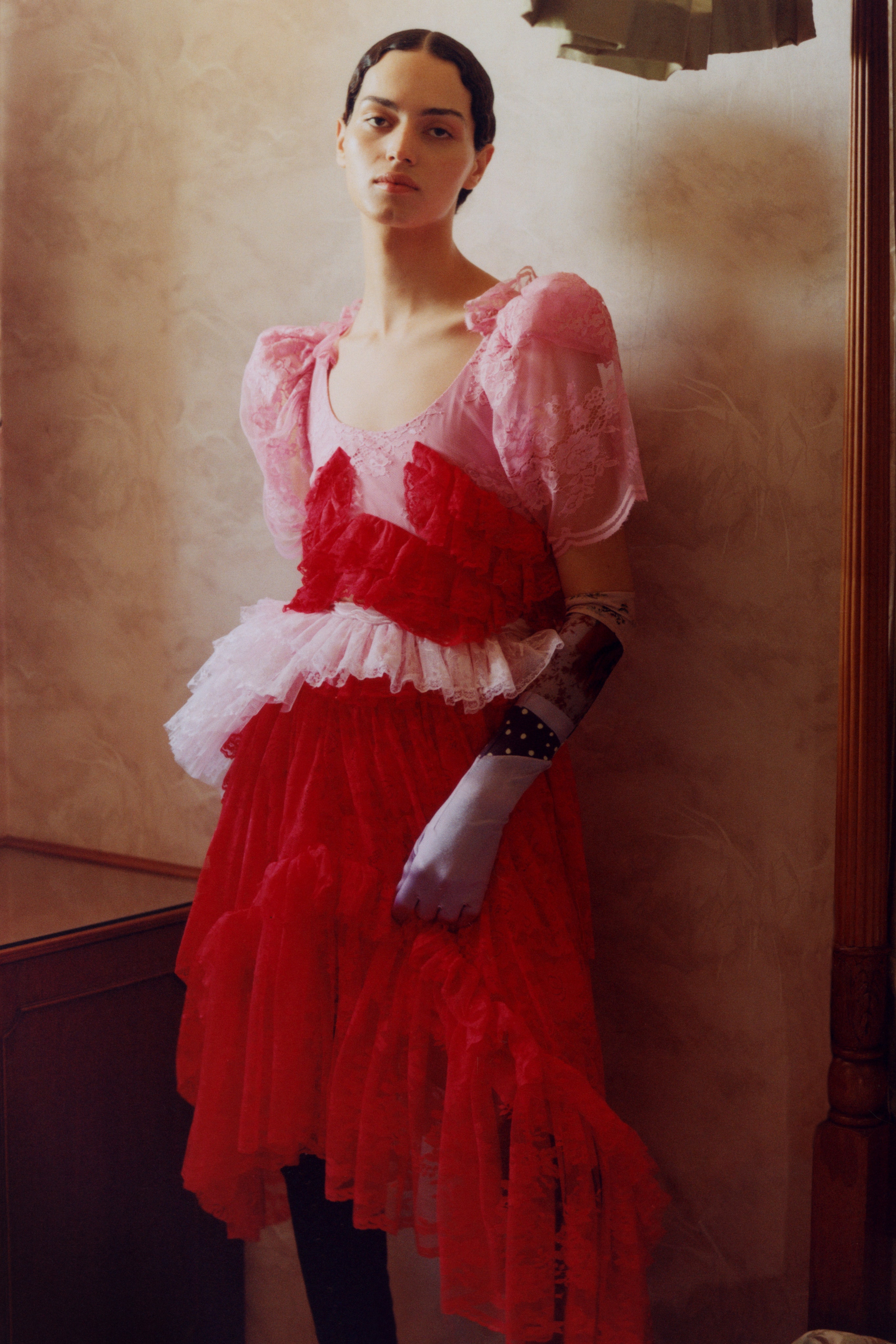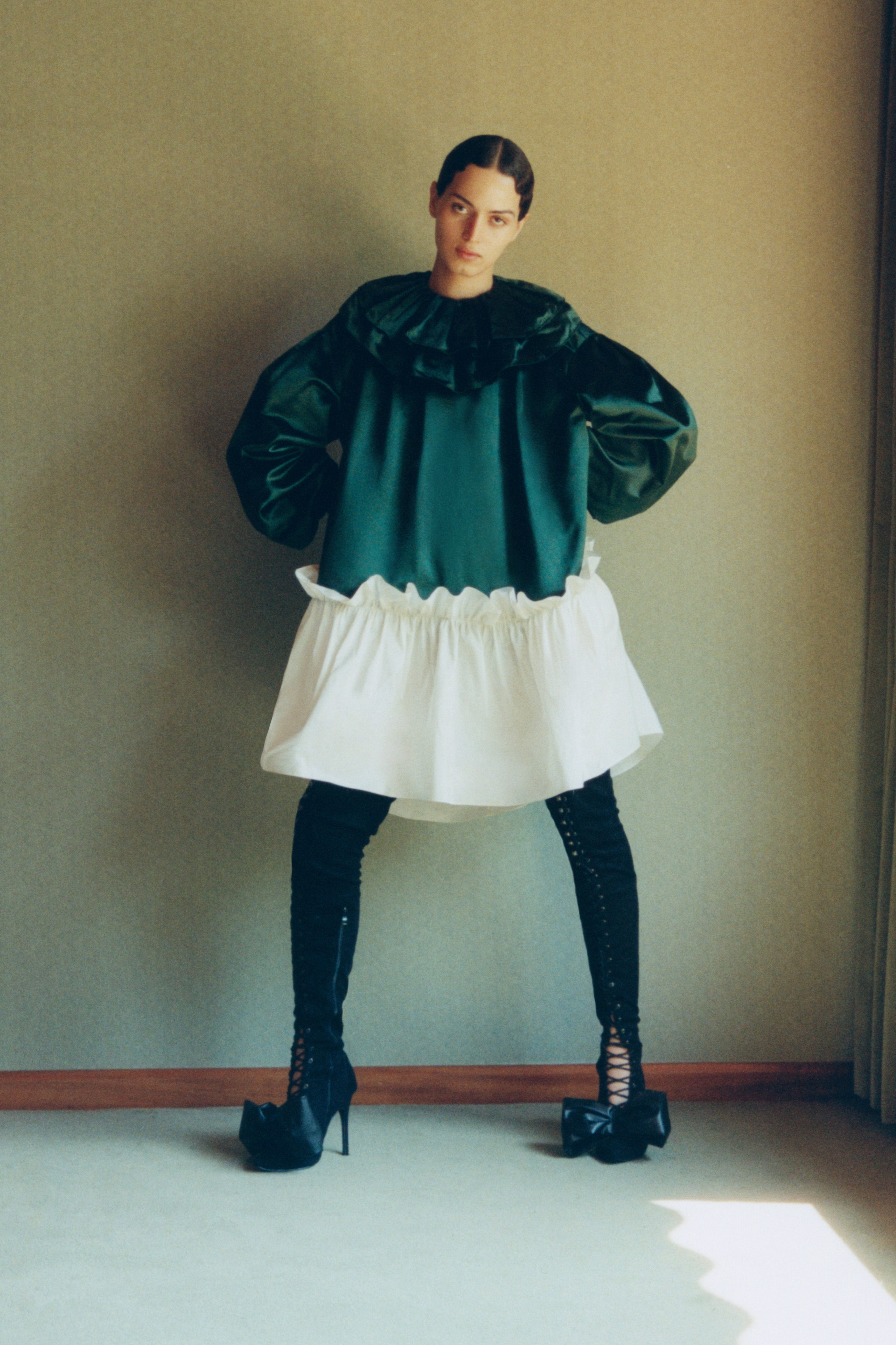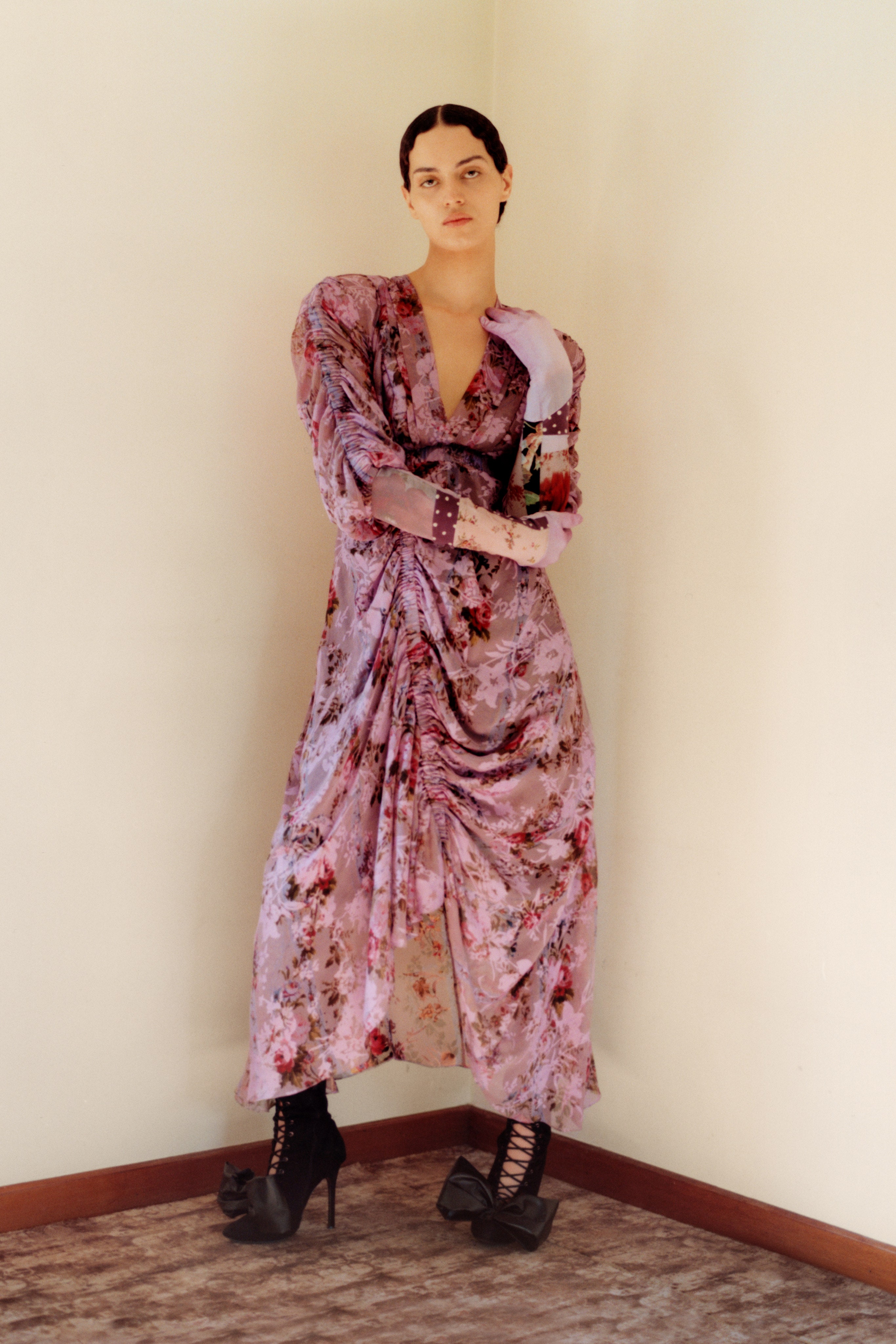 Дизайнеры Джастин Торнтон и Теа Брегацци создавали предыдущие коллекции вместе со своими детьми, вплетали в наряды дорогие сердцу мотивы старинных сказок, образы вещей из детства, найденных в гараже. Круизная коллекция стала фантазией о беззаботности, маскараде и радости возвращения к празднику после темных дней. Так, дуэт смешал в одном флаконе стиль юной принцессы Дианы, с его нарочито громоздкими платьями и рукавами-буфами, отсылки к нарядам арлекинов и творческой молодежи 20-х. В коллекцию вошли свитеры в клетку аргайл, многоярусные платья в цветочный принт, наряды с пышными бархатными воротниками, двубортные жакеты и сияющие пайетками платья для вечеринок. Образы дополнили волнообразные укладки в стиле танцевальной и кабаре-моды 20-х, туфли и ботфорты с пышными бантами и облегающие шляпки в сборках. Ключевыми моделями стали нательные комбинезоны из разноцветных лоскутков ткани и остроумный макинтош из песочного габардина с бахромой на кожаных рукавах и поясом карнавальной шахматной расцветки.