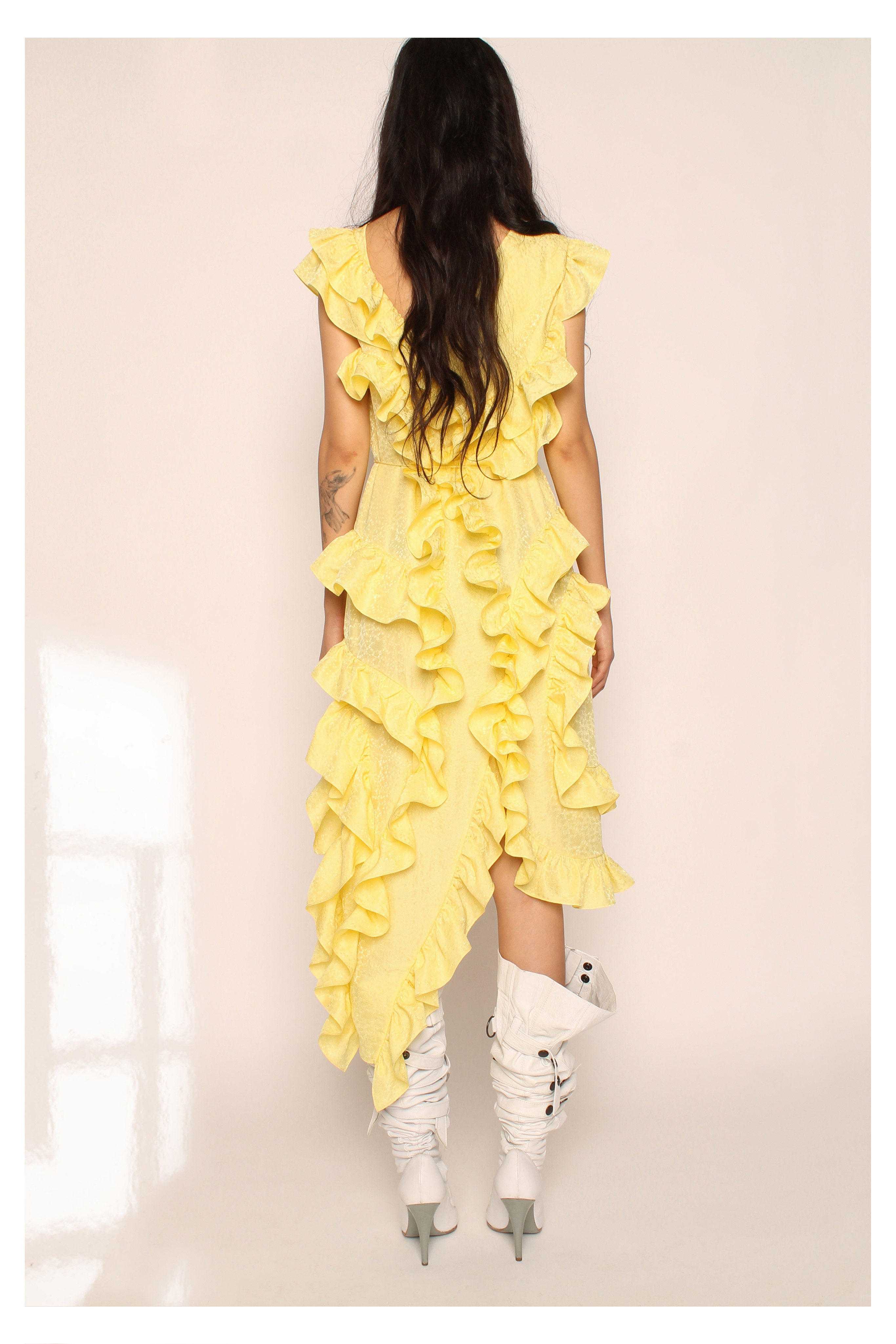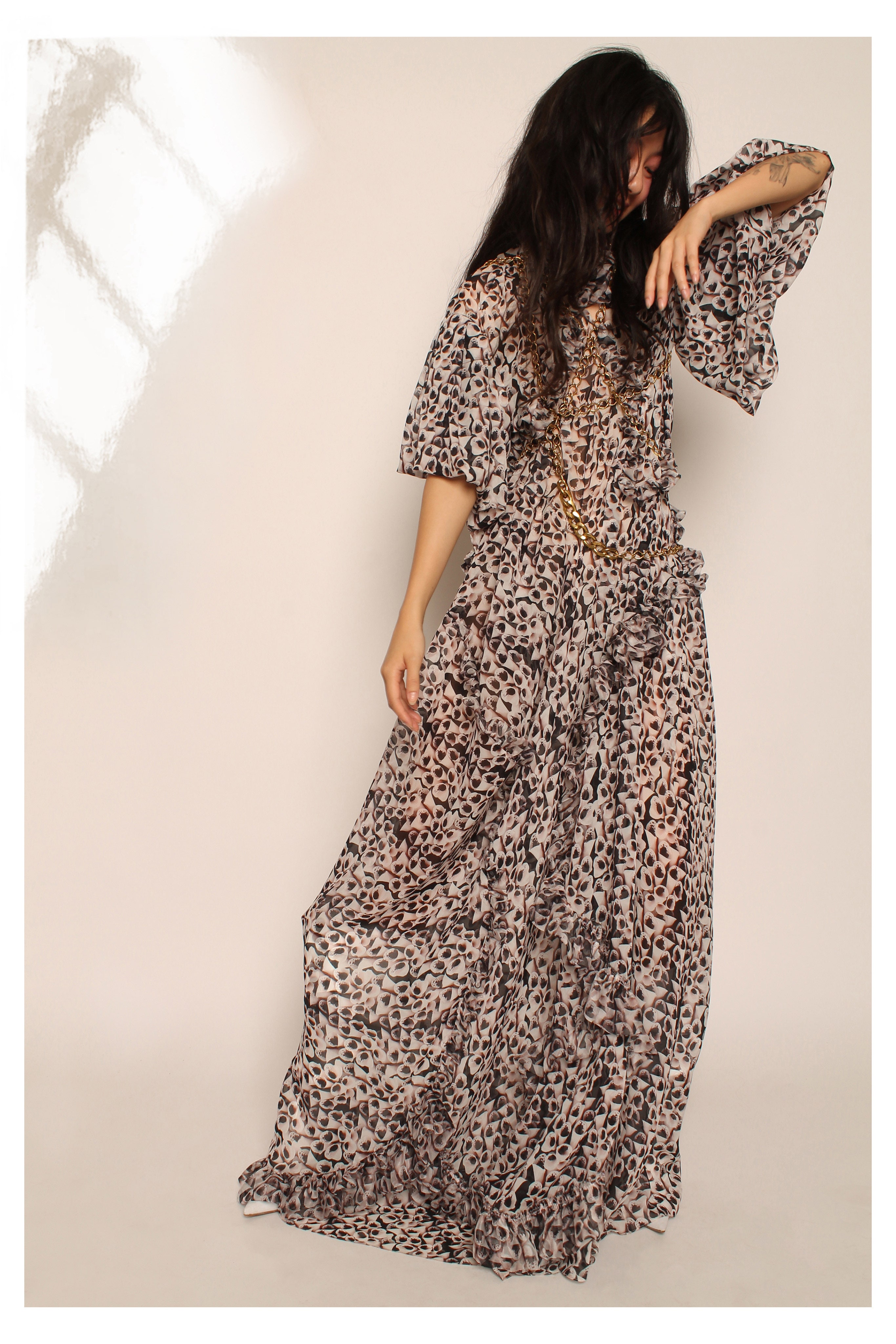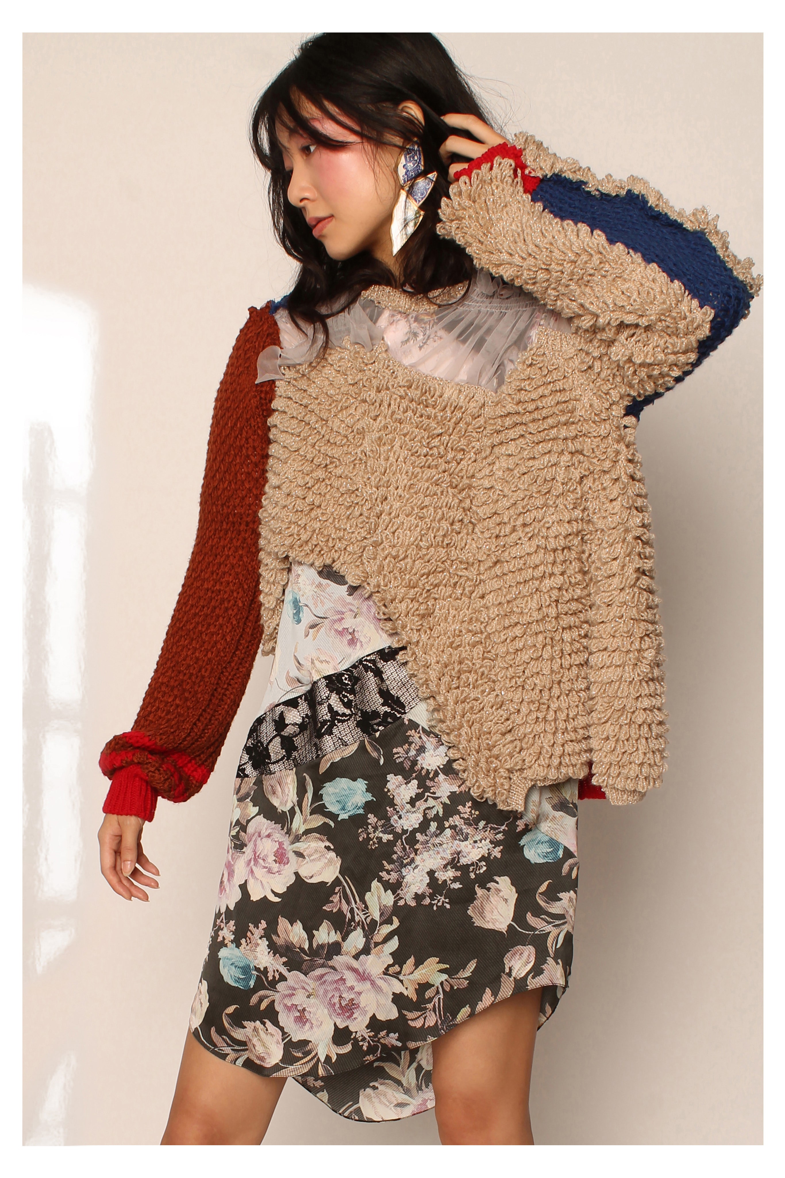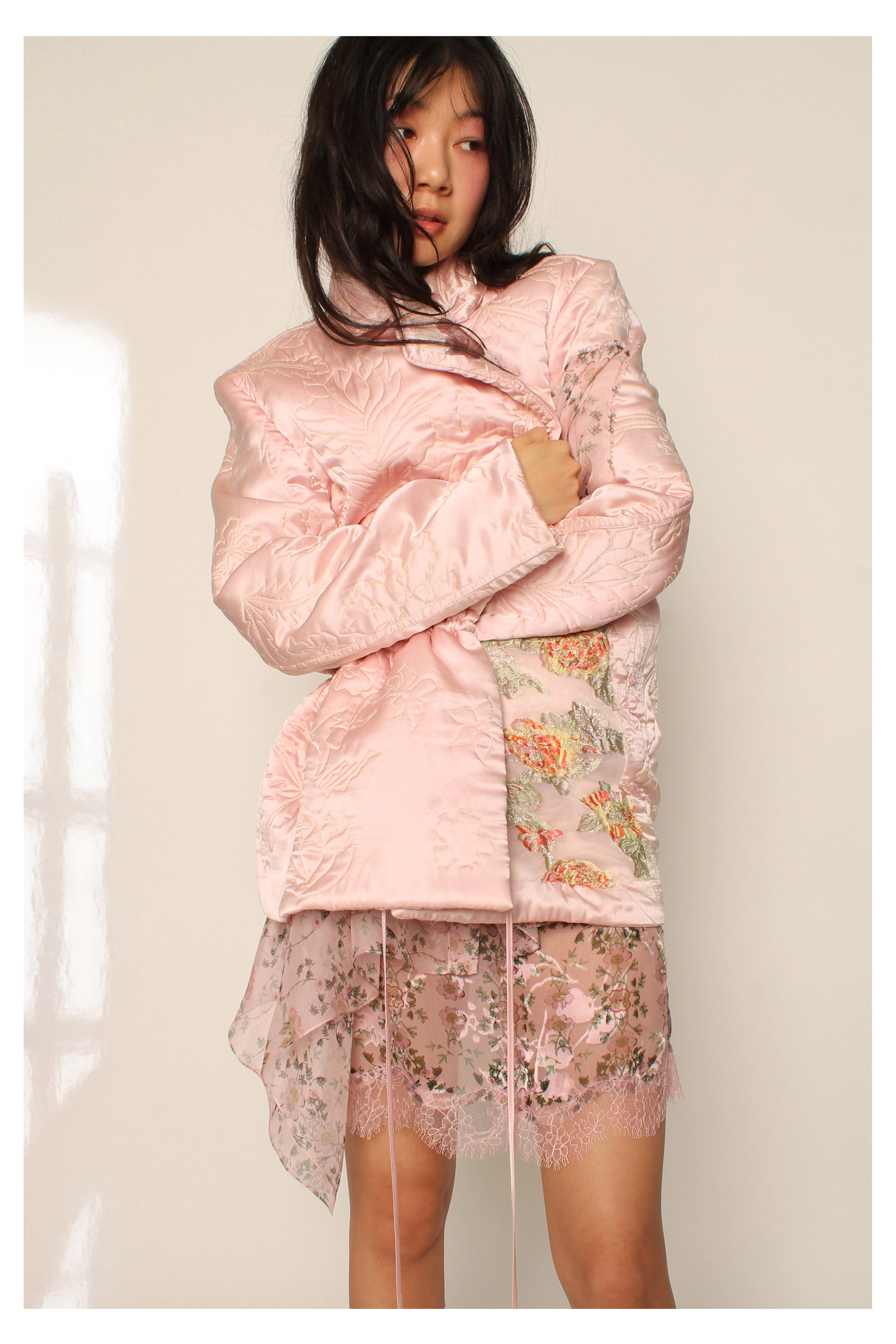 Так и сама коллекция получилась будто созданной из кусочков самых разных предметов и материалов. На работу с техникой пэчворк Джастина вдохновила работа художника Буке Де Фриза – кувшин с осколками фарфора. Поиски вдохновения привели дизайнеров к японской реставраторской технике кинцуги. Швы на облегающих лоскутных платьях выделены белой и серебряной нитью, уютные оборки и рюши усеяны мелкими цветами, а двухцветные сложные тренчи подвязаны поясами-бантами. Топы в лоскутной технике перемежаются с просторными оверсайз-платьями, а ключевым аксессуаром коллекции стали бандажные жилеты, также сшитые из отрезов тканей.