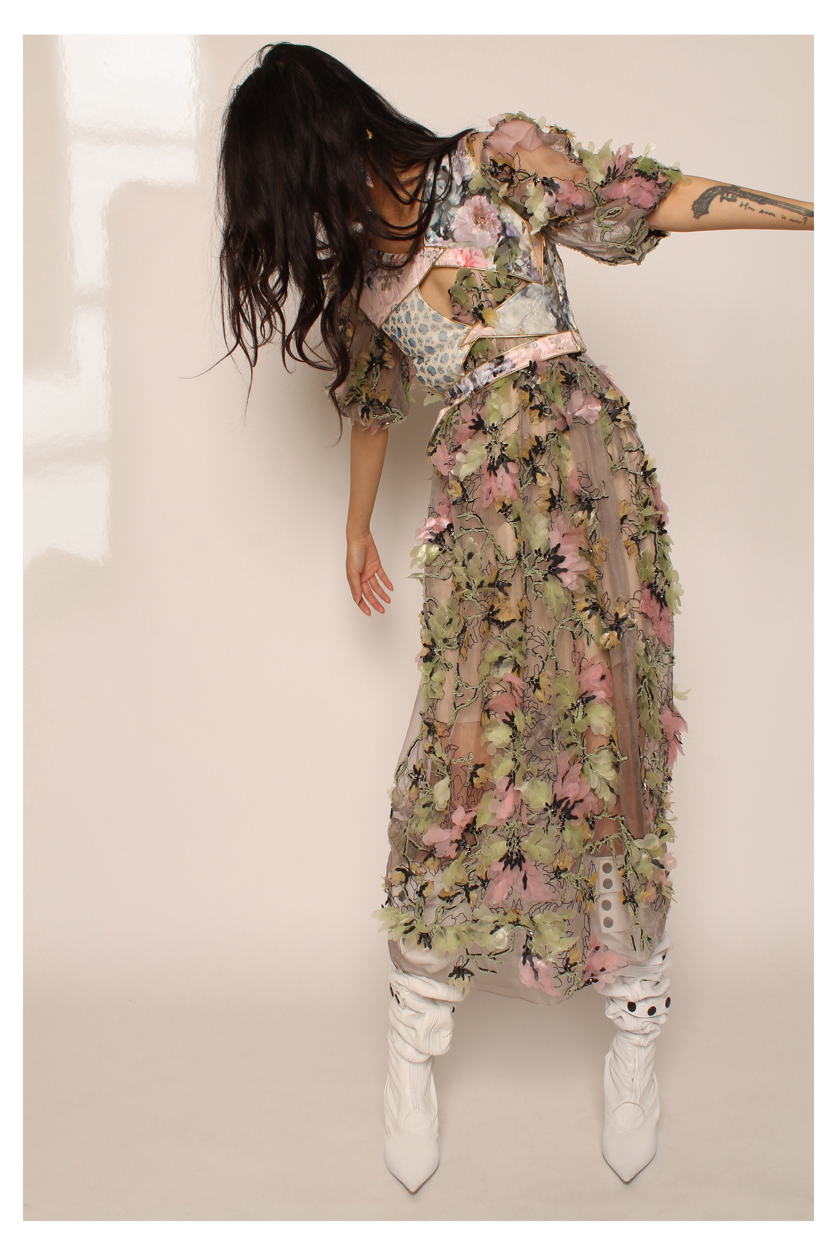 Теа Брегацци и Джанстин Торнтон, как и все, провели весну и лето в самоизоляции, дома, вместе со своими детьми. Когда перед дизайнерами встал вопрос совмещения работы и семейного досуга, решено было создавать коллекцию совместно. Так, дочери Фав и Блайт получили в распоряжение остатки материалов от прошлых коллекций, маленькую швейную машину и манекен. Фав придумала форму пышного топа, который скопировали для весенней коллекции её родители, а 8-летняя Блайт создала серьги из битого фарфора, склеив его и покрыв стыки золотой эмалевой краской. "Блайт получила инструкции поэкспериментировать с природными красителями – это была свекла", – с улыбкой комментировал Джастин. Семья создавала мудборды, на которые каждый крепил что-нибудь милое сердцу и глазу: обрезки кружев, старые вещицы, найденные в гараже, цветы и фотографии.