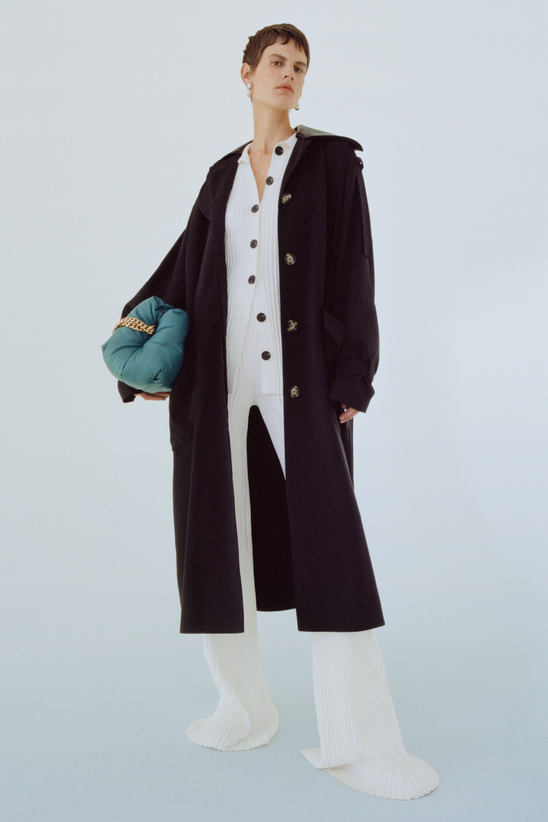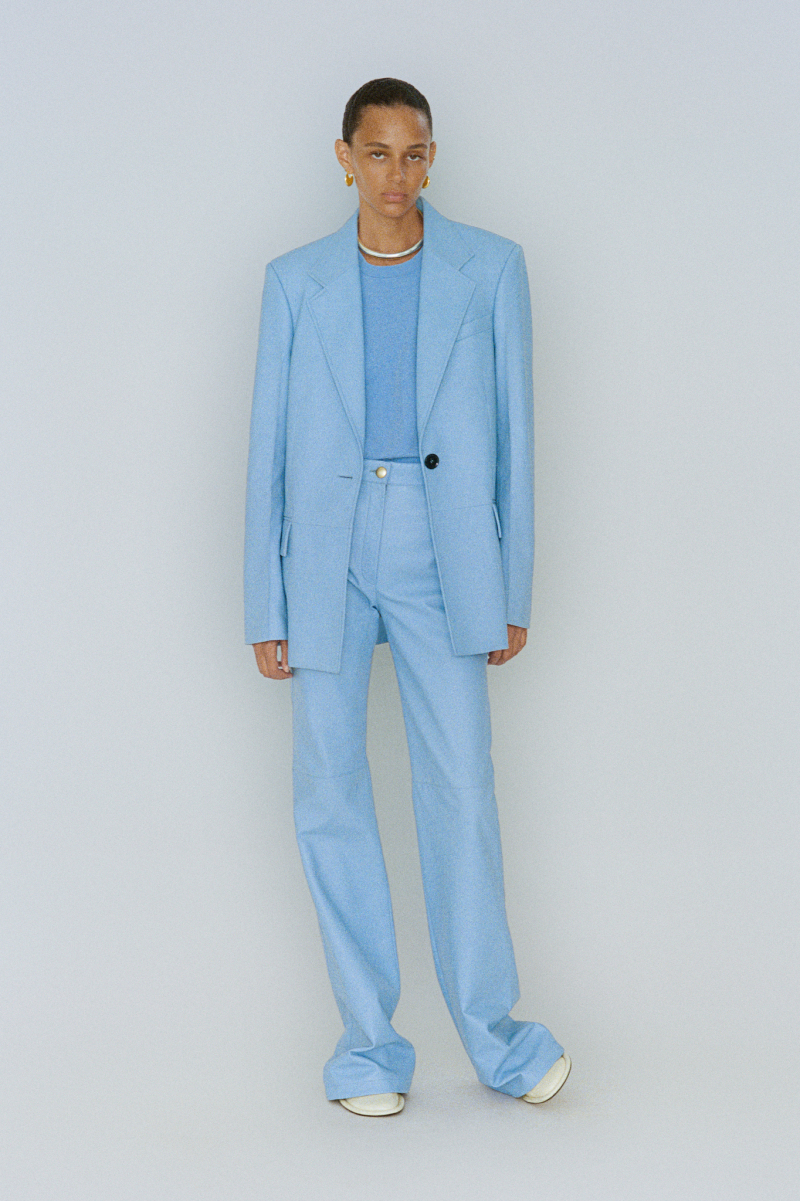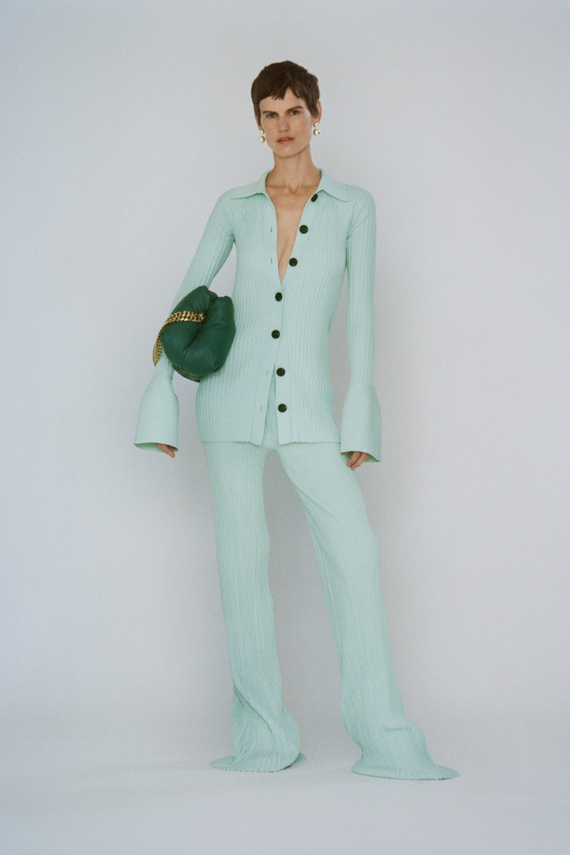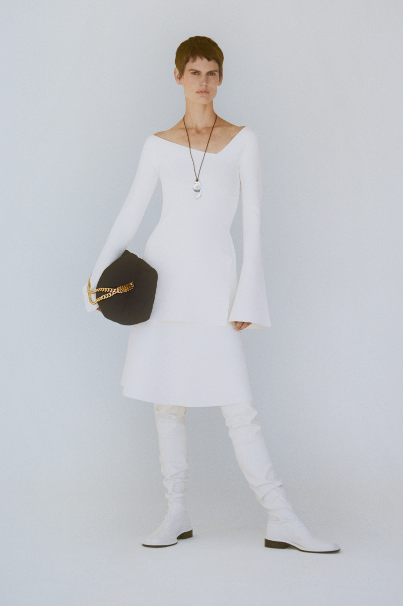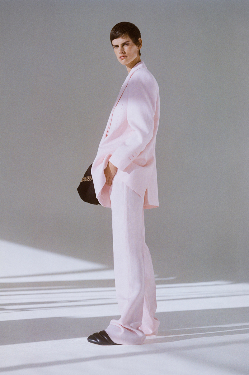 Будущей весной героиня модного дома будет носить белоснежные комбинезоны с отворотами, просторные блейзеры и платья безупречных силуэтов, тонкие кардиганы из шерсти с блестящими пуговицами и уютные брючные костюмы, напоминающие мужскую пижаму.