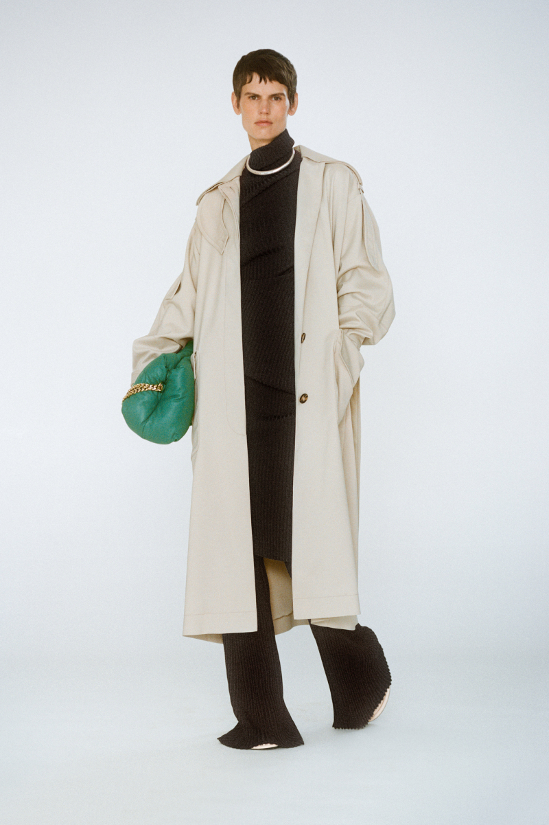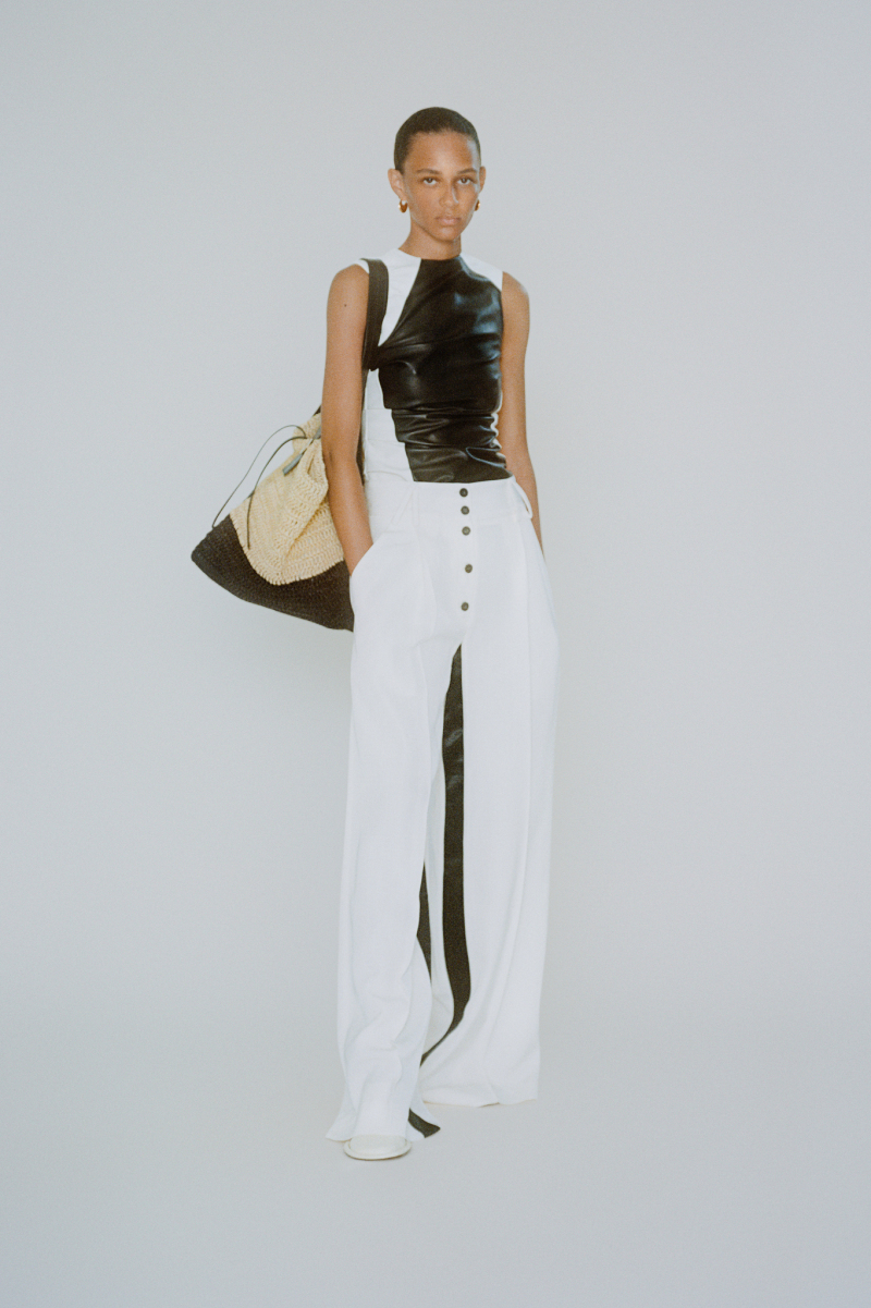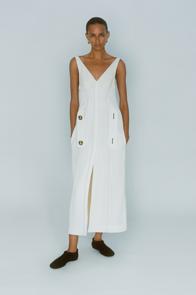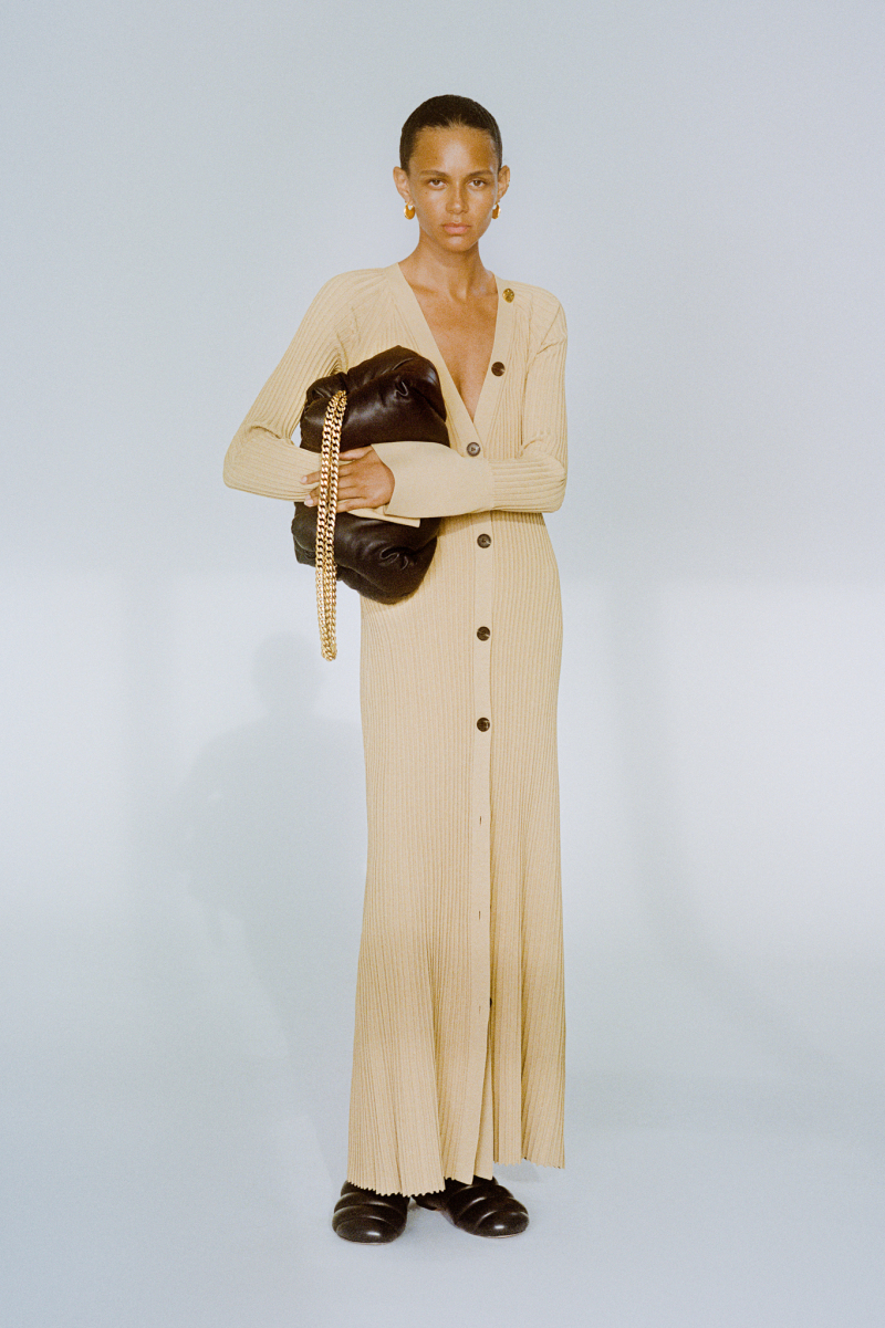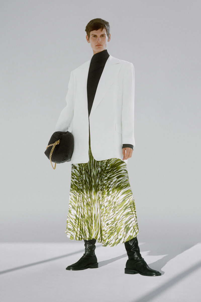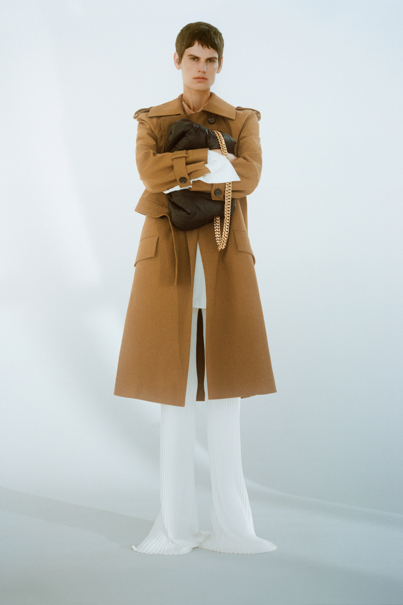 Будущей весной героиня модного дома будет носить белоснежные комбинезоны с отворотами, просторные блейзеры и платья безупречных силуэтов, тонкие кардиганы из шерсти с блестящими пуговицами и уютные брючные костюмы, напоминающие мужскую пижаму.