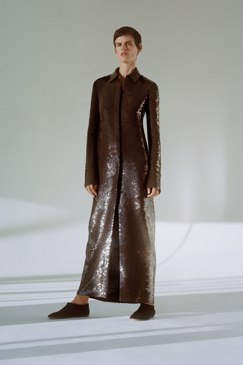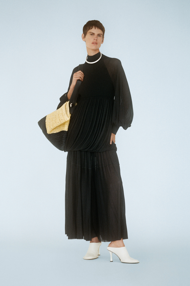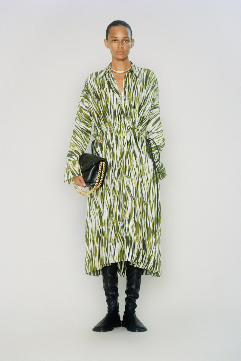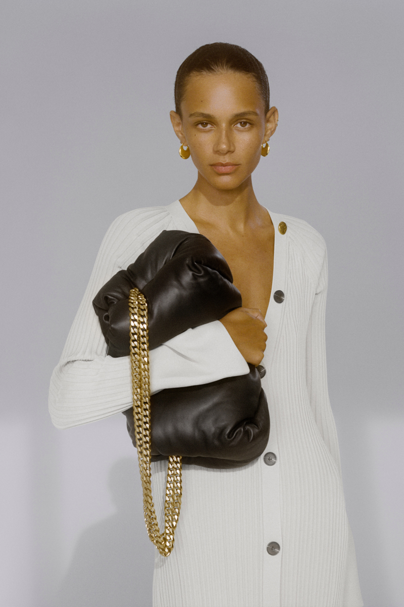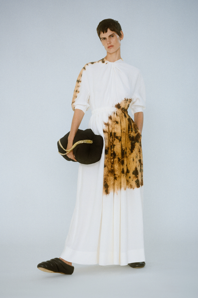 Будущей весной героиня модного дома будет носить белоснежные комбинезоны с отворотами, просторные блейзеры и платья безупречных силуэтов, тонкие кардиганы из шерсти с блестящими пуговицами и уютные брючные костюмы, напоминающие мужскую пижаму.