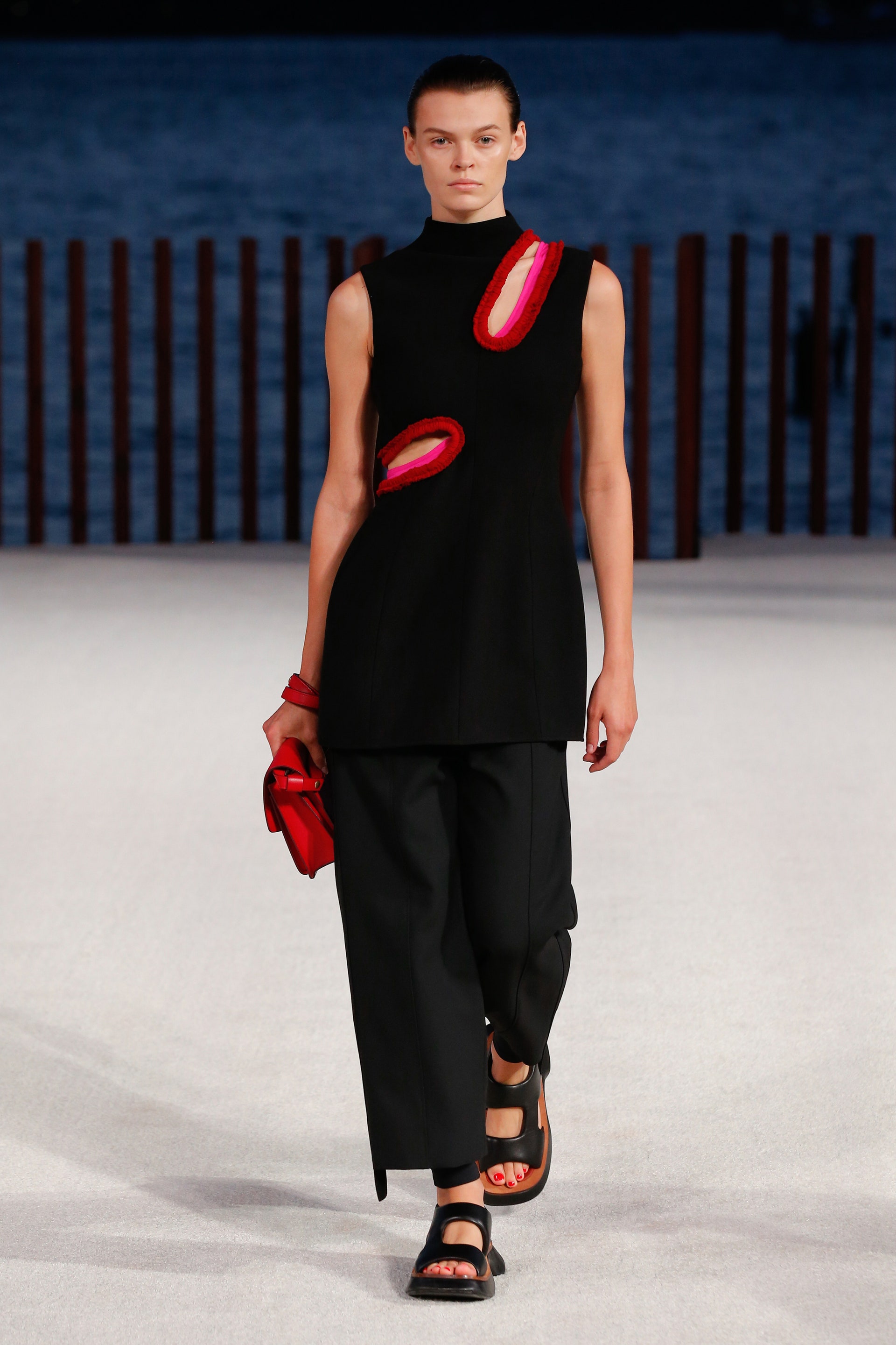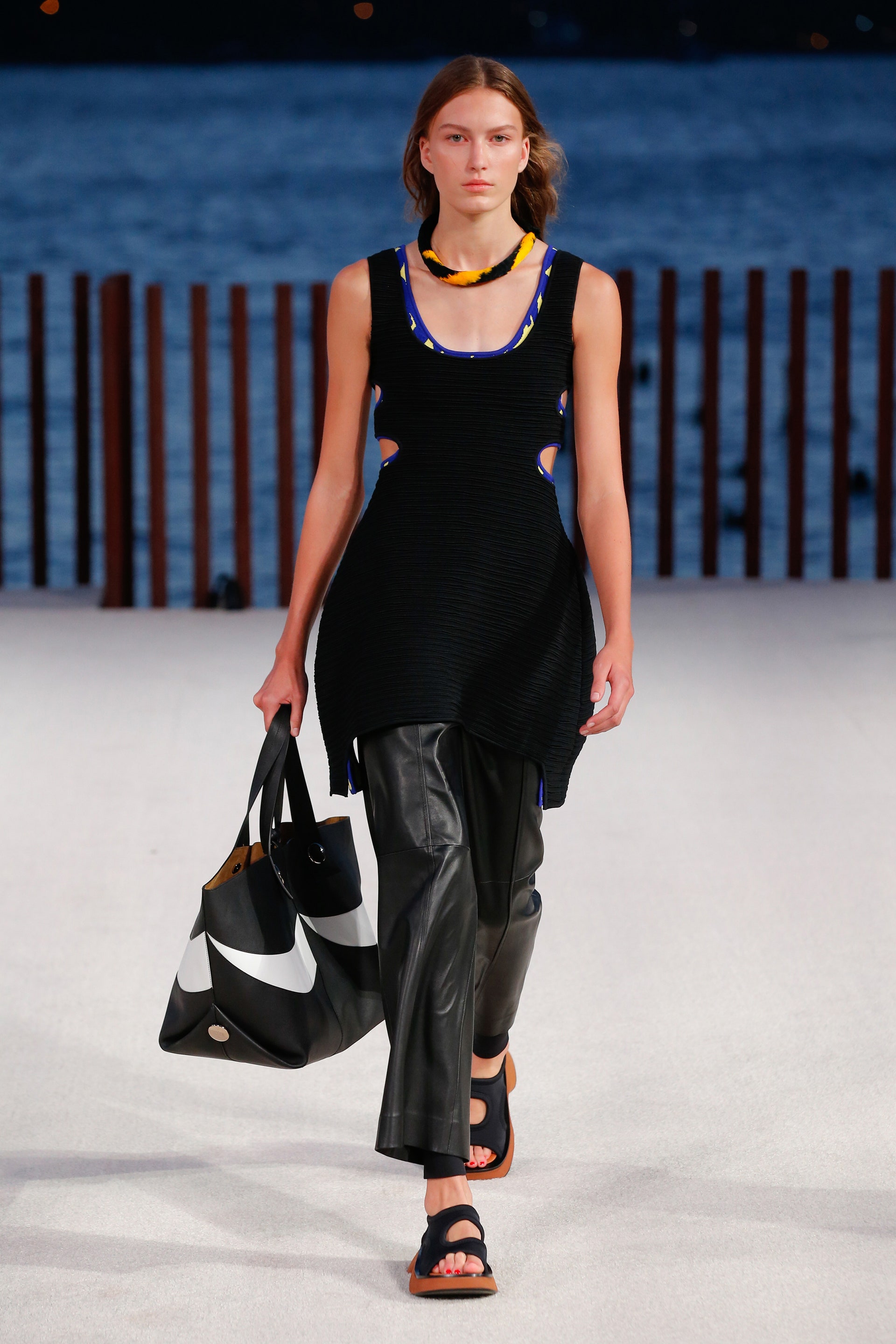 Дизайнеры Лазаро Эрнандес и Джек Маккалоу показали новую коллекцию своего бренда на нью-йоркской Неделе моды. Вдохновением для дуэта стали путешествия, а также культурный климат Гавайских островов, на которых Джек и Лазаро провели уик-энд. Так, в коллекции читаются отсылки к серф-культуре: костюмы-двойки имеют контрастные вставки, как на гидрокостюмах, а ярких оттенков платья выполнены в виде водолазок с объемными швами. Облегающие велосипедные шорты и платья с вырезами украсила волнистая бахрома, а на отдельных вещах расположились круглые прорези, которыми знаменит бренд. Будущую весну дизайнеры решили провести под знаком экзотического приключения, раскрасив тренчи в тигровые полоски, а свободные платья — в цветочный принт. Вместе с тем Proenza Schouler невозможно представить без минималистичных комбинезонов, архитектурных топов и вечерних платьев из тонкого трикотажа, которые и в новом сезоне выглядят так же актуально, как и в предыдущих.