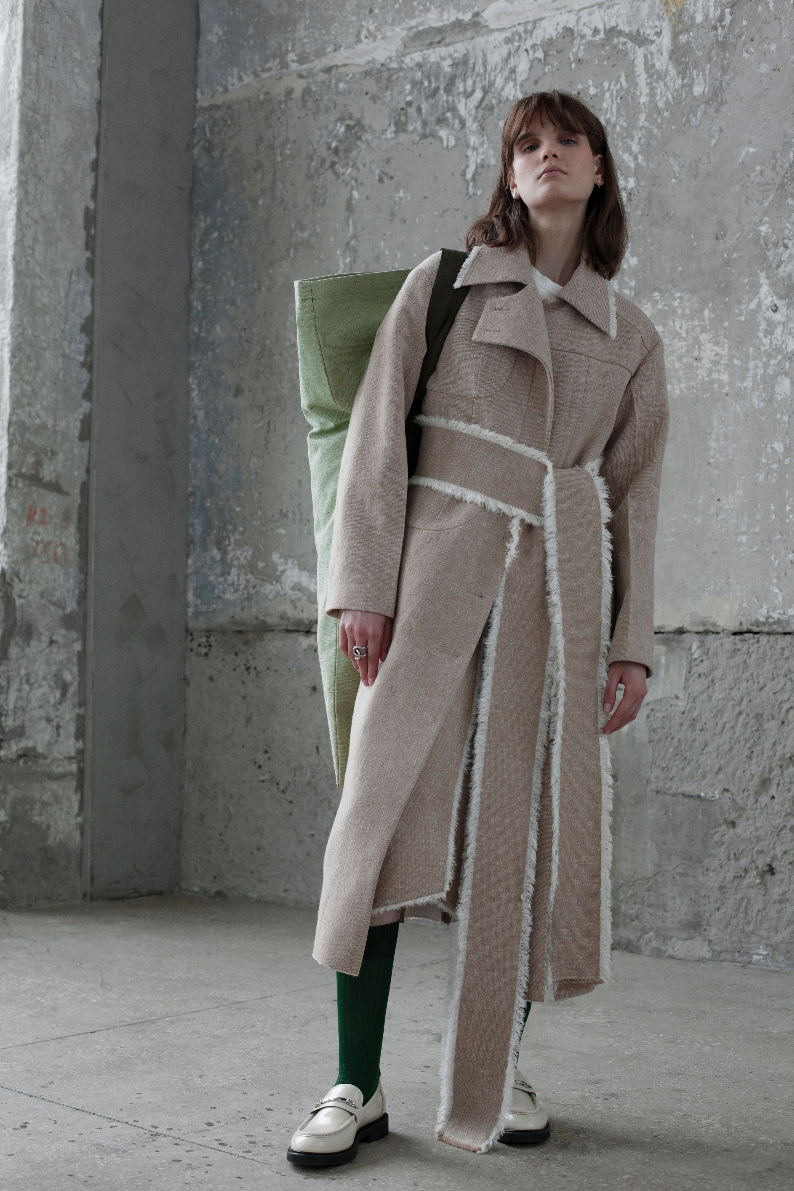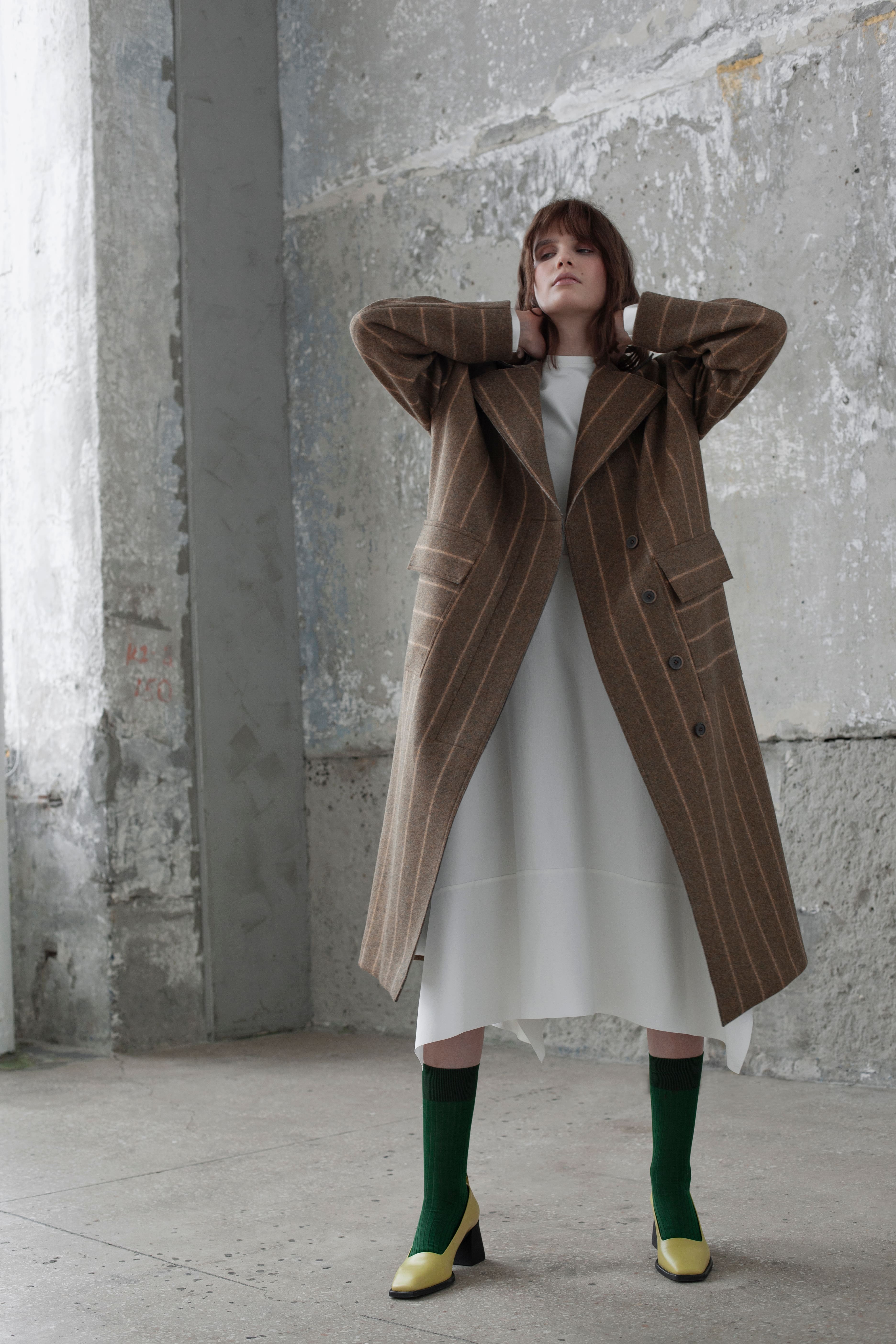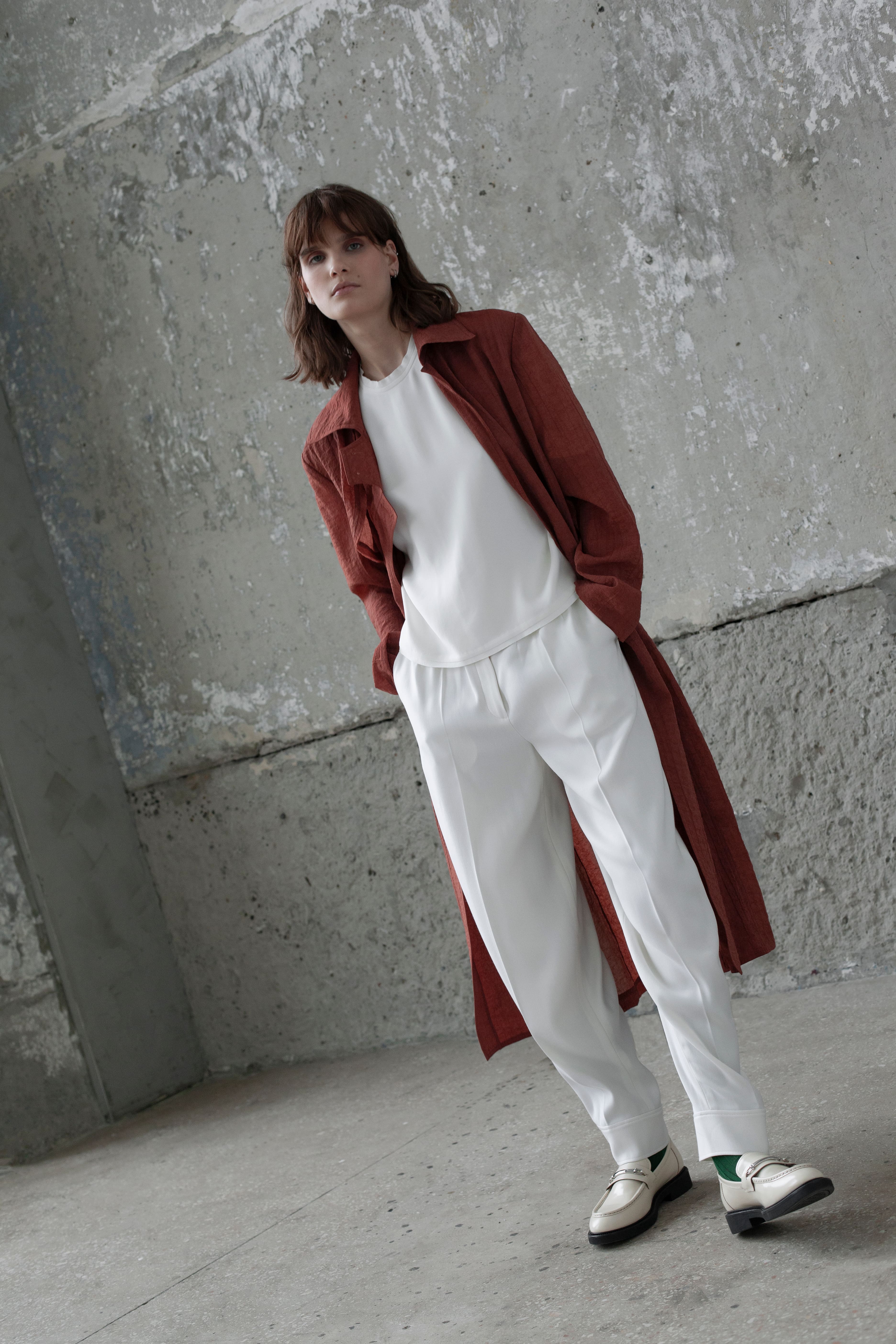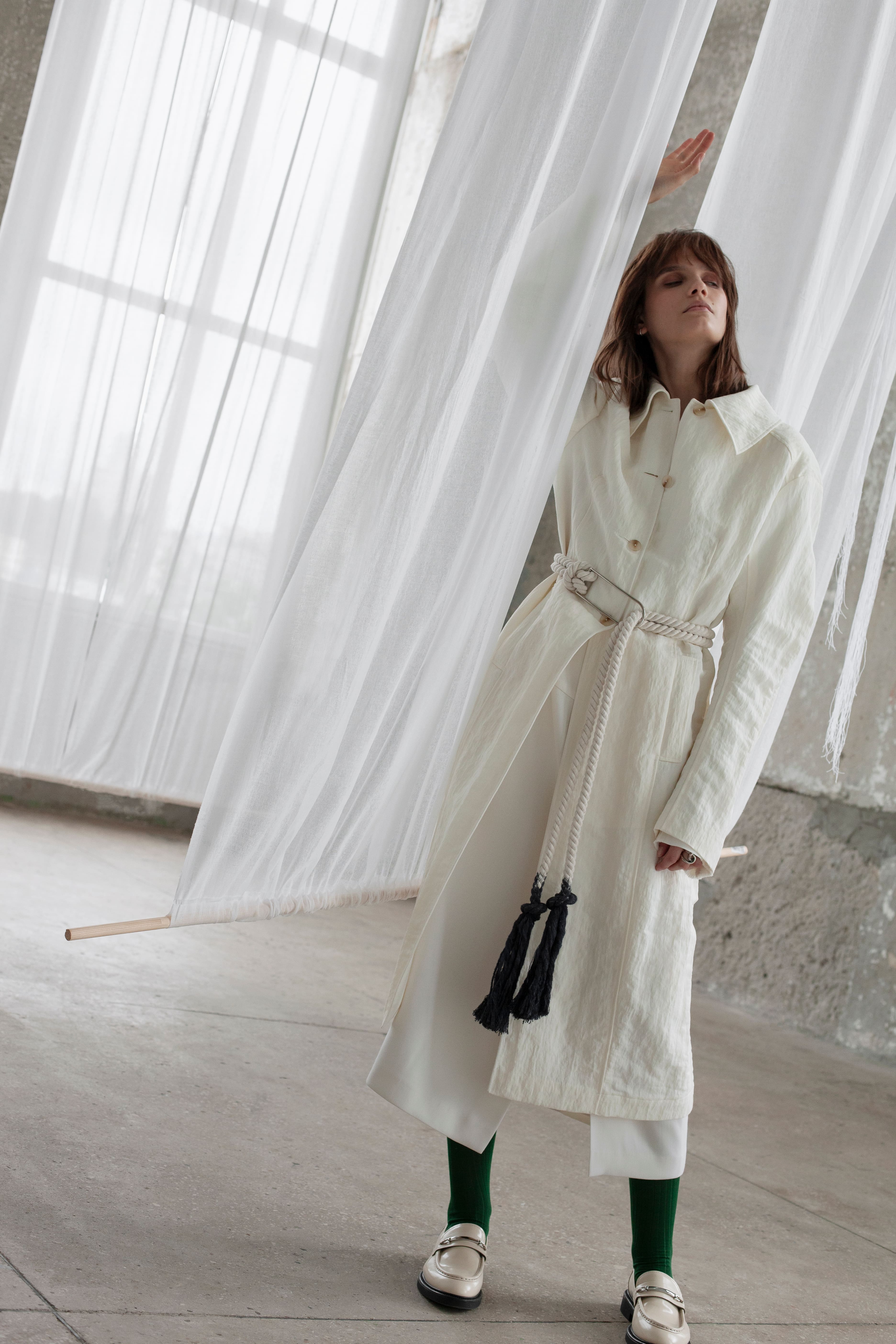 В коллекцию вошли легкие платья, туники и костюмы из натуральных тканей светлых оттенков, которые легко можно комбинировать с вещами из предыдущих коллекций бренда. Деликатные вкрапления буколической эстетики в виде канатного пояса, "мохнатой" окантовки некоторых изделий, рубашки в крошечных цветах или пастушьей сумки-рюкзака придают коллекции особый дух уюта. Умиротворение сообщают пальто-халаты из мягкого велюра, которые так полюбились поклонникам бренда прошлой весной, что решено было вернуть их в новый сезон, оттенки утренних трав и молока, костюмы и стеганные вручную детали. Нежные платья с корсетными вставками легко комбинируются с кашемировыми пальто в полоску, светлые свободные брюки — с объемными пиджаками. Коллекция не привязана к определенному времени года, лето в ней мягко переходит в теплую осень, а вещи изготовлены таким образом, чтобы в них было комфортно прохладным августовским вечером и ясным днем теплого сентября.