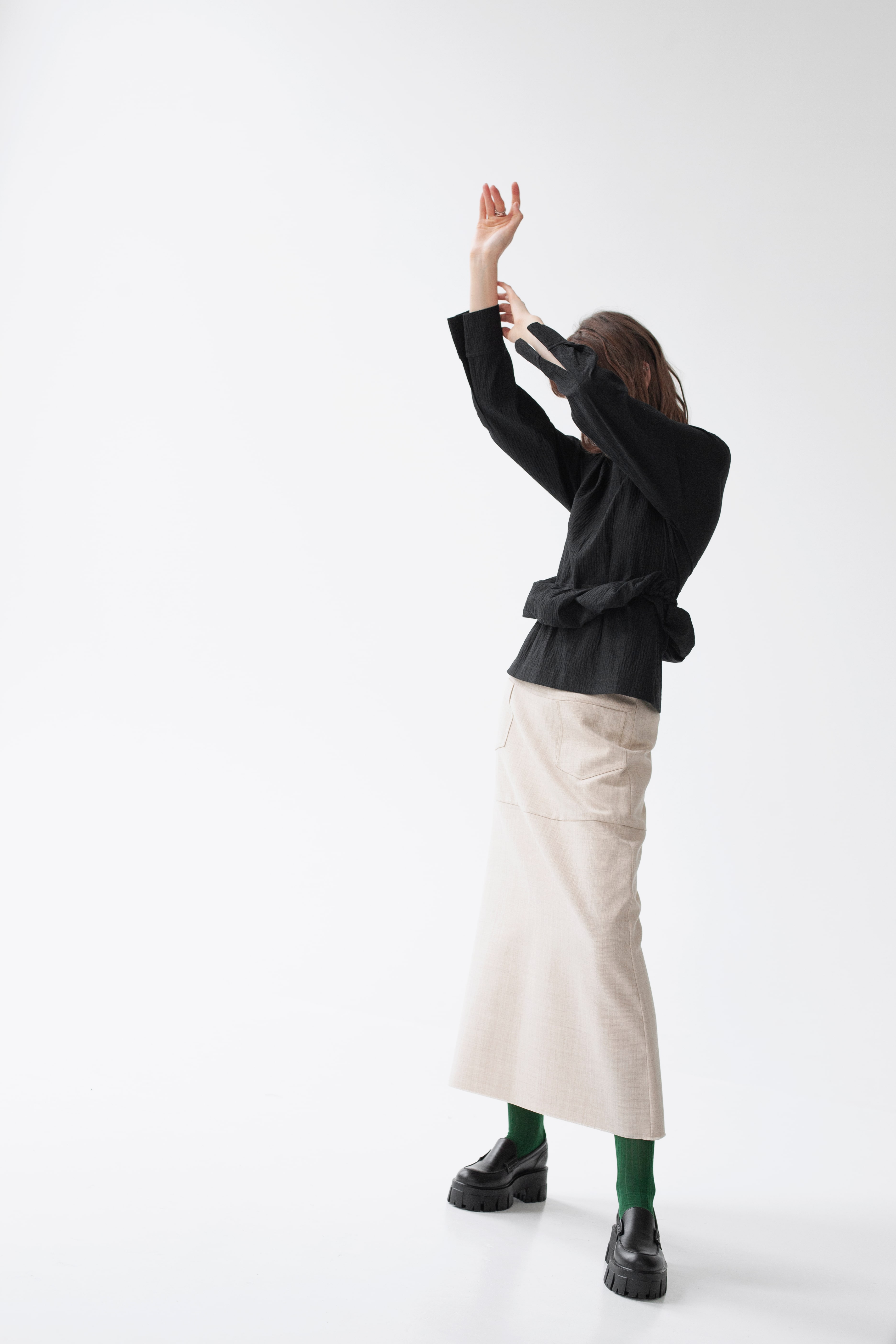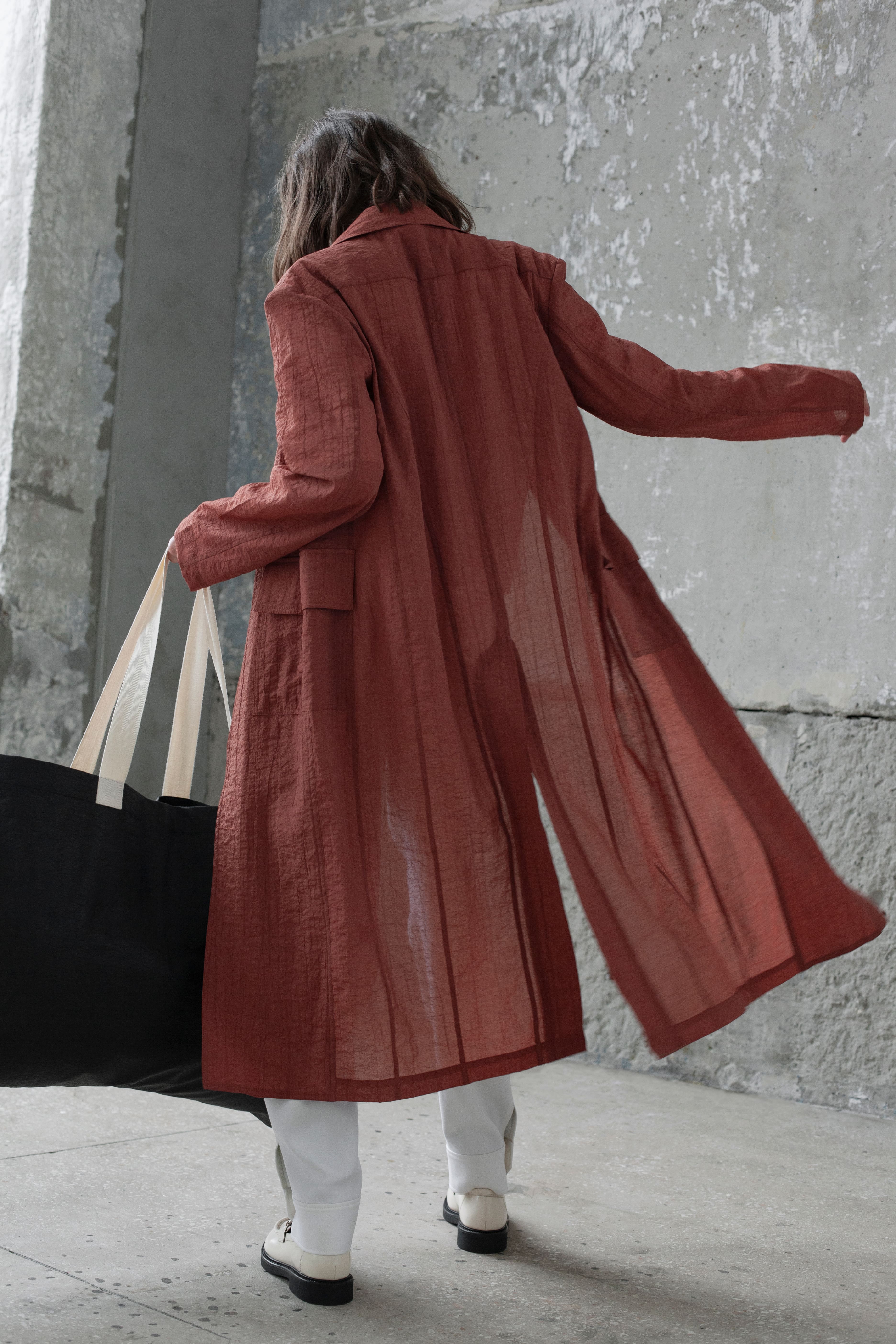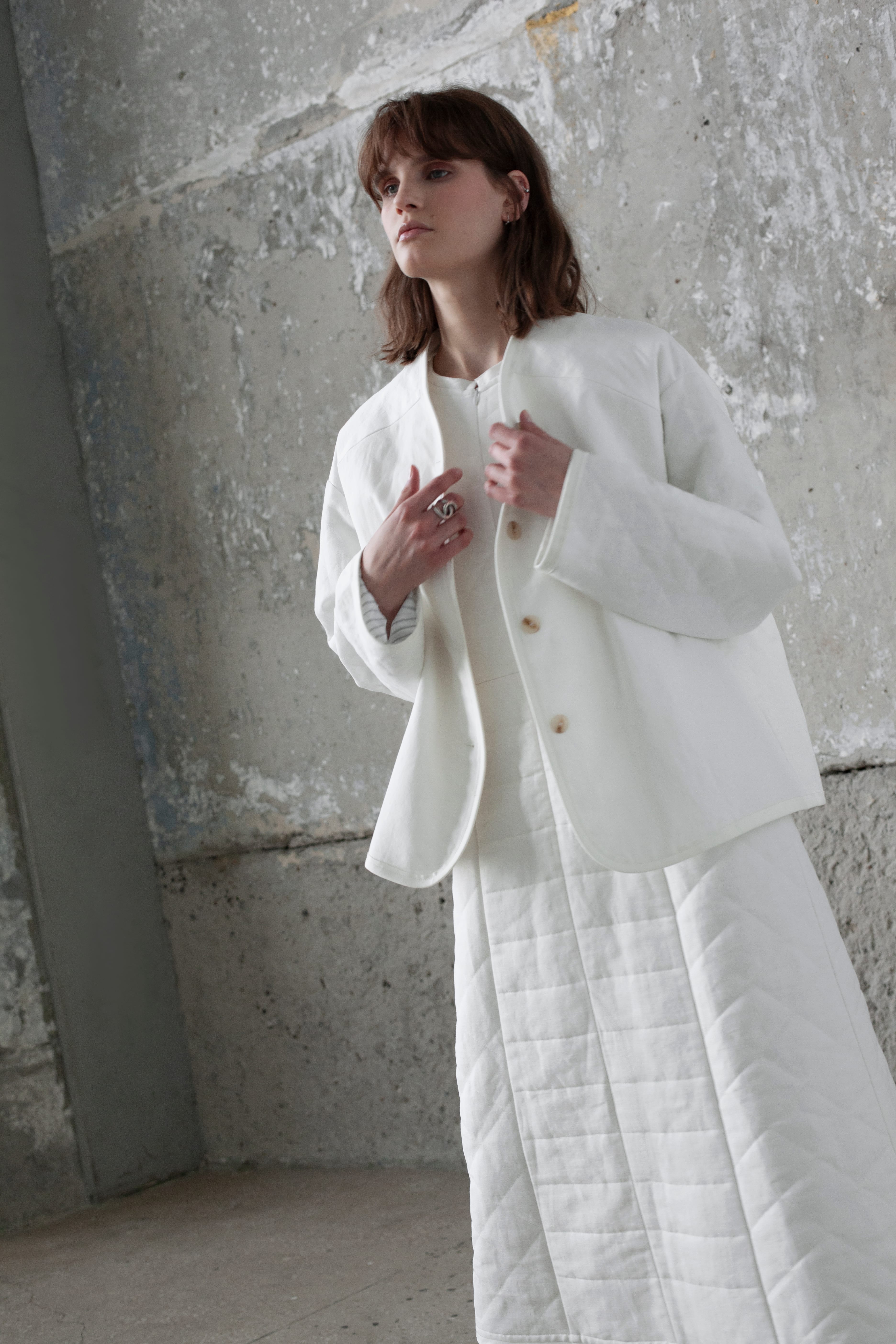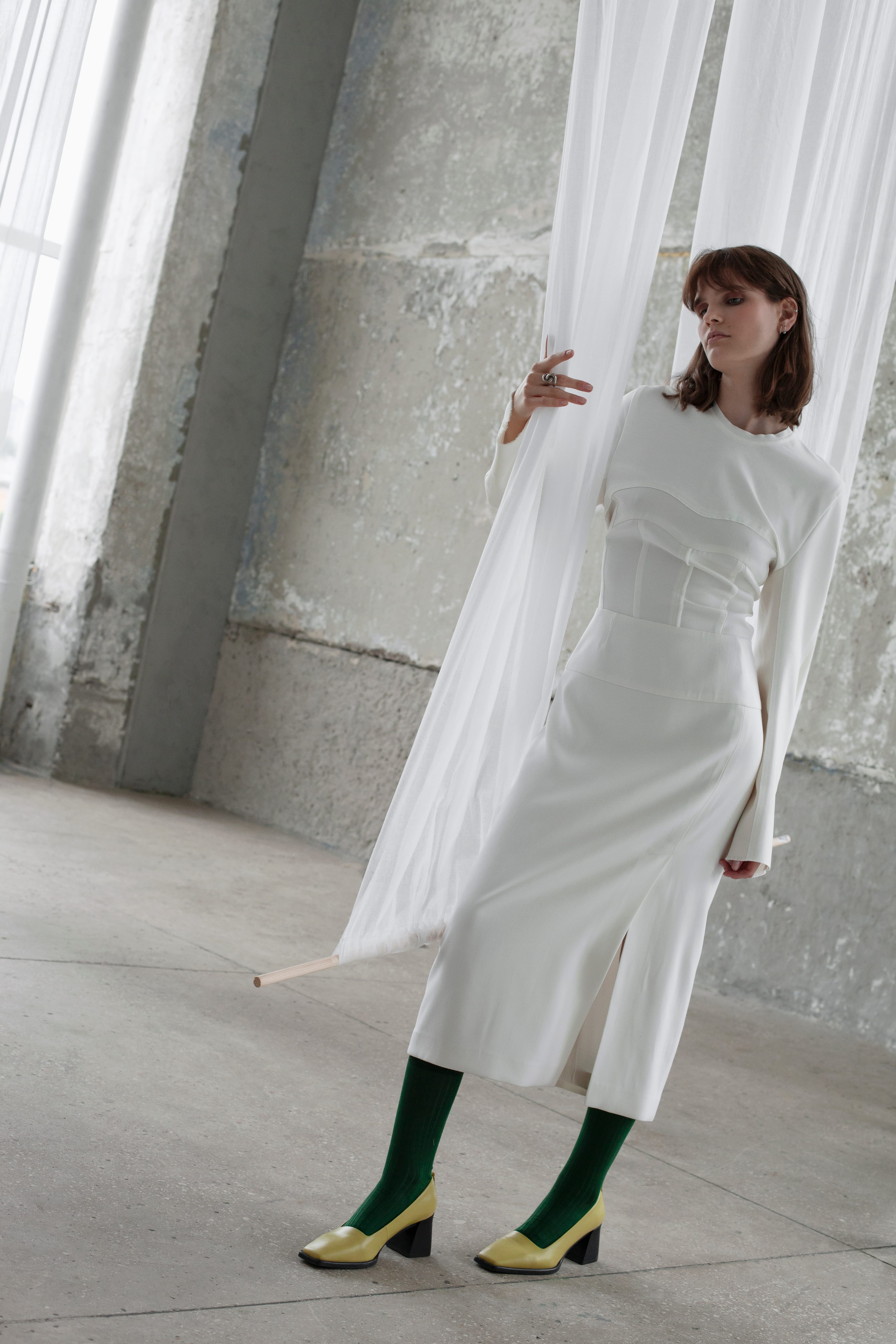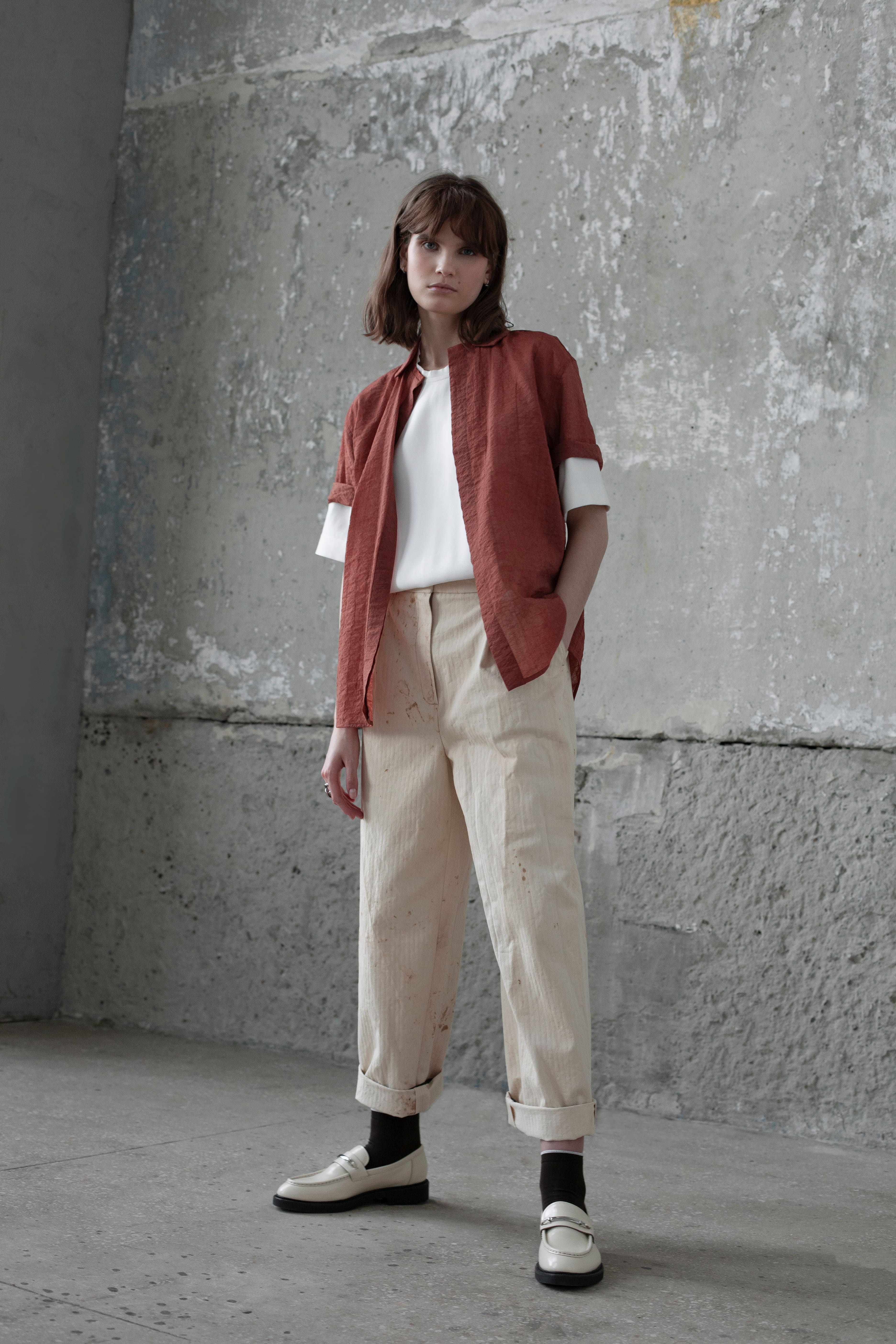 В коллекцию вошли легкие платья, туники и костюмы из натуральных тканей светлых оттенков, которые легко можно комбинировать с вещами из предыдущих коллекций бренда. Деликатные вкрапления буколической эстетики в виде канатного пояса, "мохнатой" окантовки некоторых изделий, рубашки в крошечных цветах или пастушьей сумки-рюкзака придают коллекции особый дух уюта. Умиротворение сообщают пальто-халаты из мягкого велюра, которые так полюбились поклонникам бренда прошлой весной, что решено было вернуть их в новый сезон, оттенки утренних трав и молока, костюмы и стеганные вручную детали. Нежные платья с корсетными вставками легко комбинируются с кашемировыми пальто в полоску, светлые свободные брюки — с объемными пиджаками. Коллекция не привязана к определенному времени года, лето в ней мягко переходит в теплую осень, а вещи изготовлены таким образом, чтобы в них было комфортно прохладным августовским вечером и ясным днем теплого сентября.