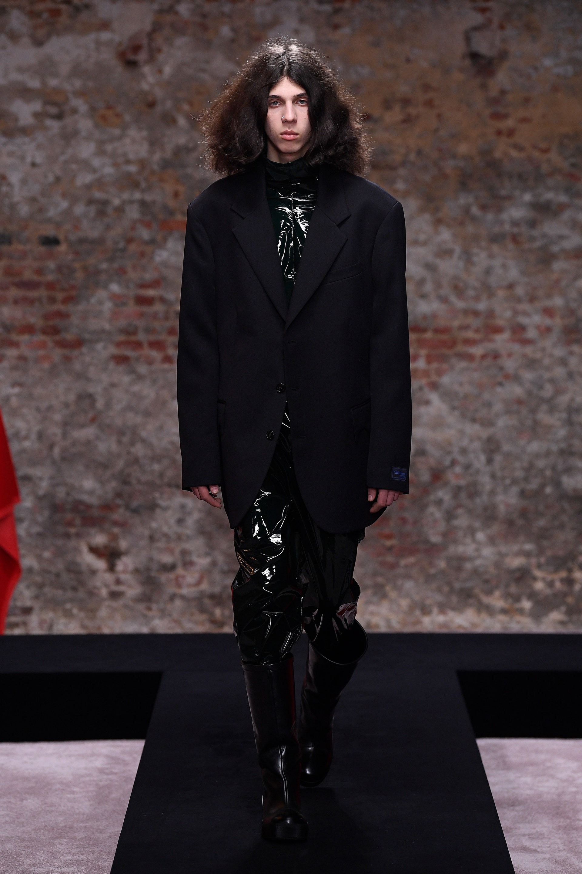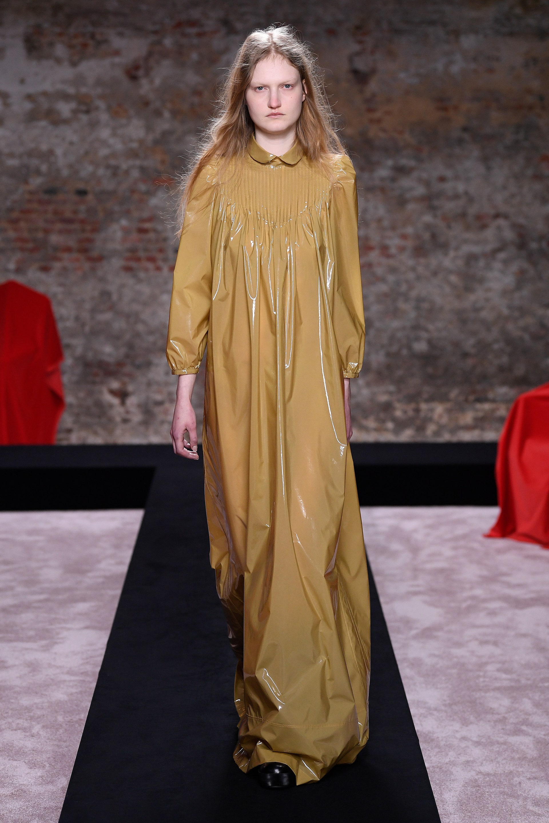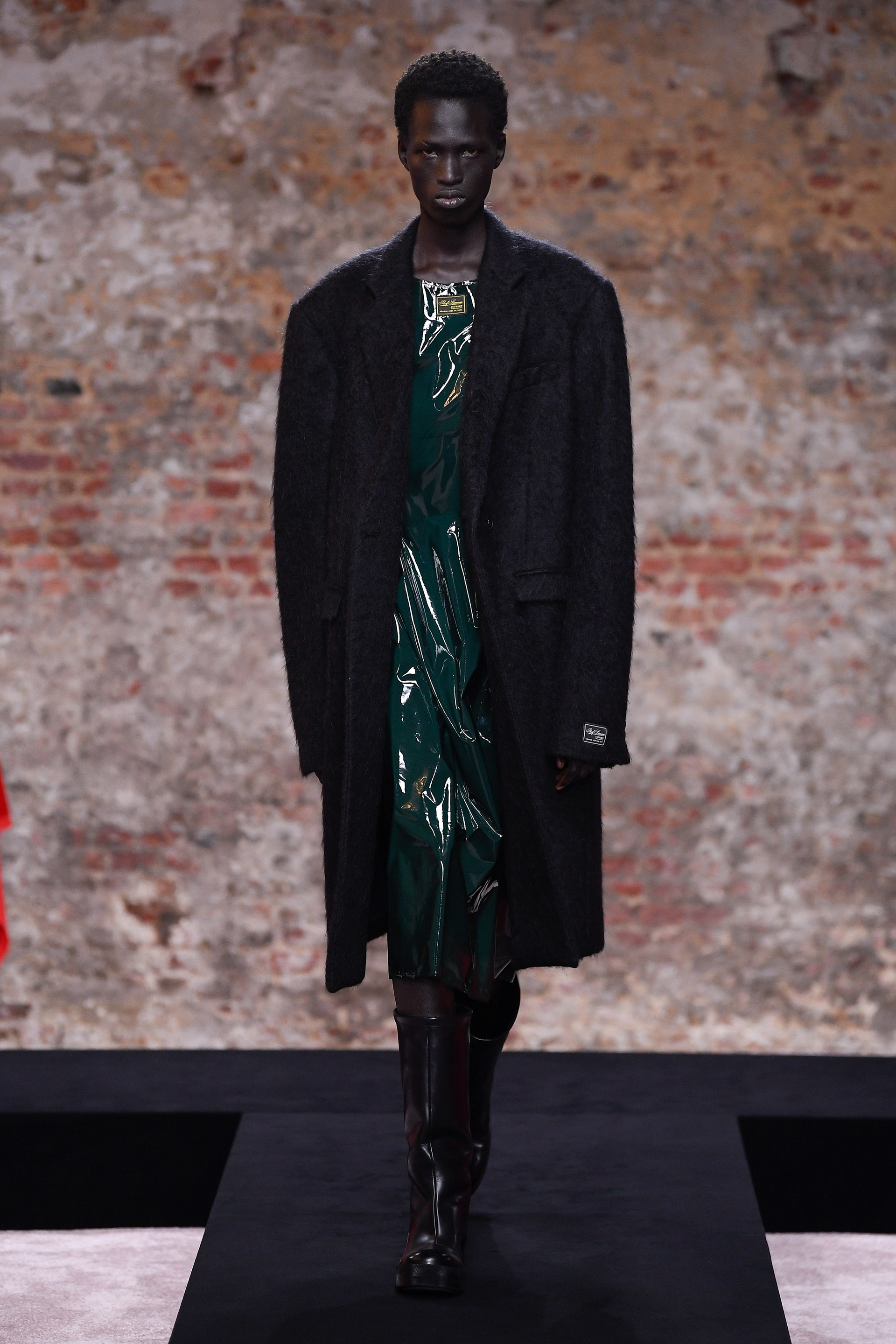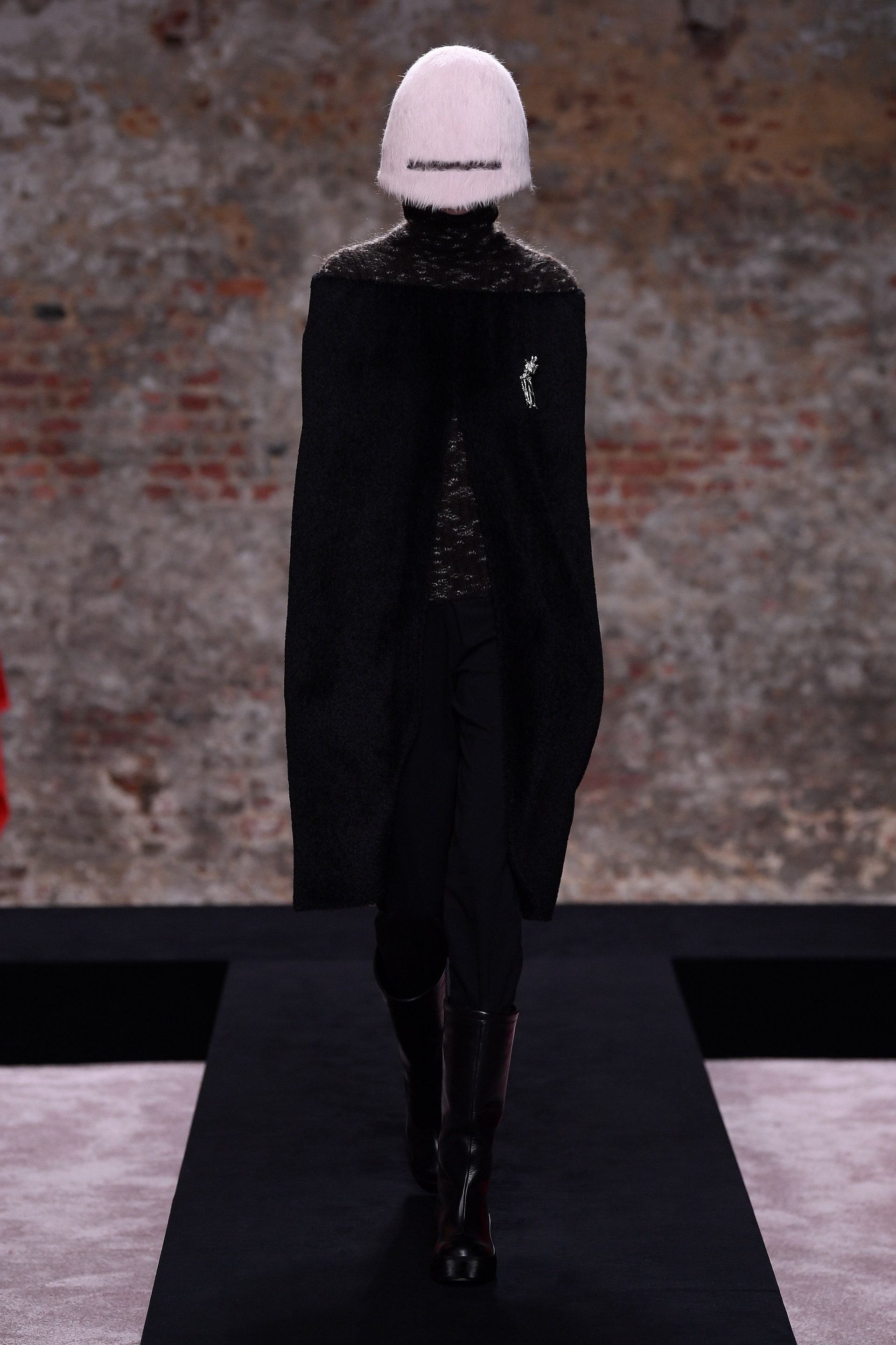 Осенняя коллекция Рафа Симонса выглядит так, будто дизайнер глубоко погрузился в мир сумрачного романтизма. Мы уже видели украшения в виде кистей скелетов в весеннем шоу, готические сетчатые топы и средневековые накидки. В новом сезоне Средневековья стало еще больше, а атмосфера показа сгустилась до напряженной атмосферы фильма ужасов.