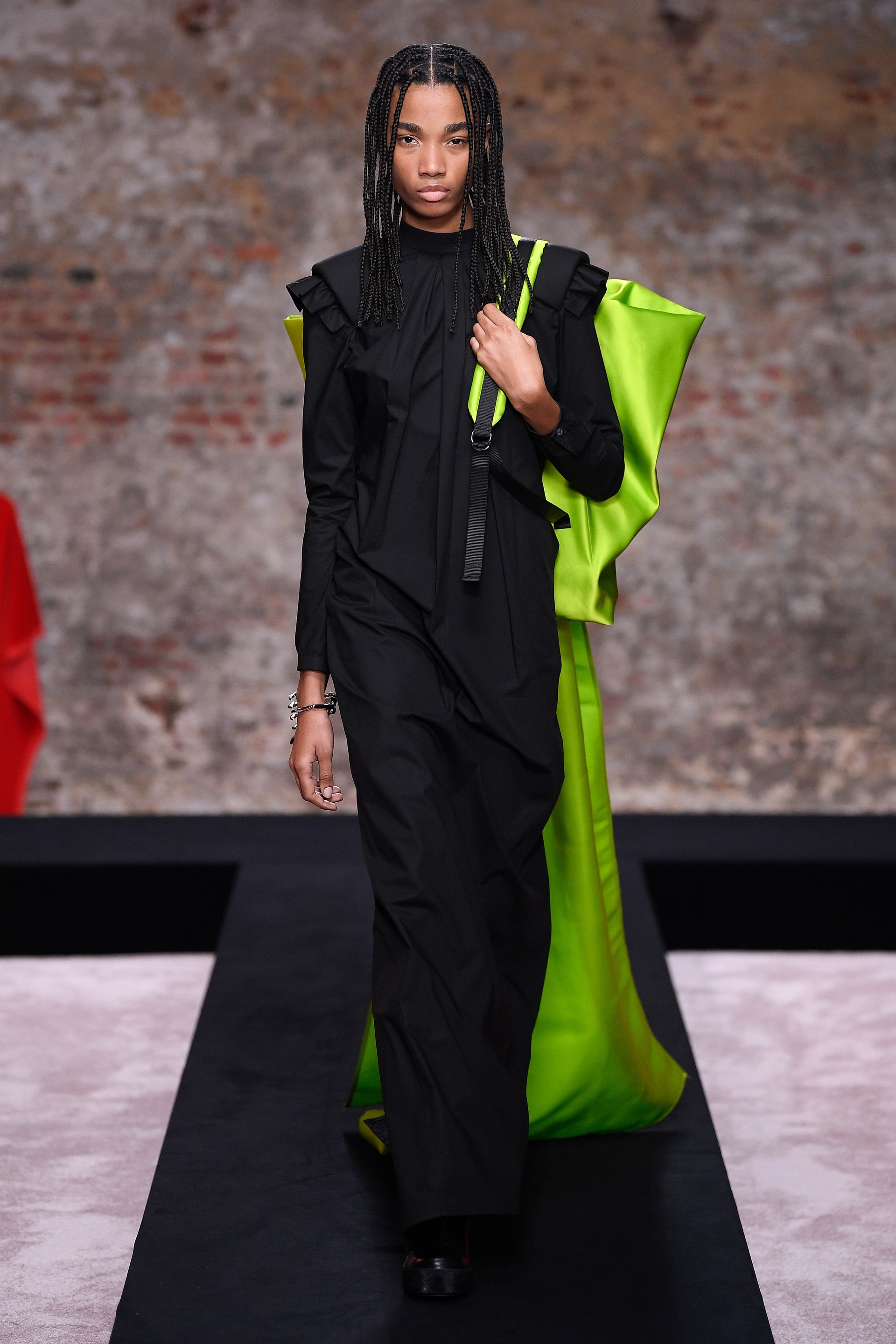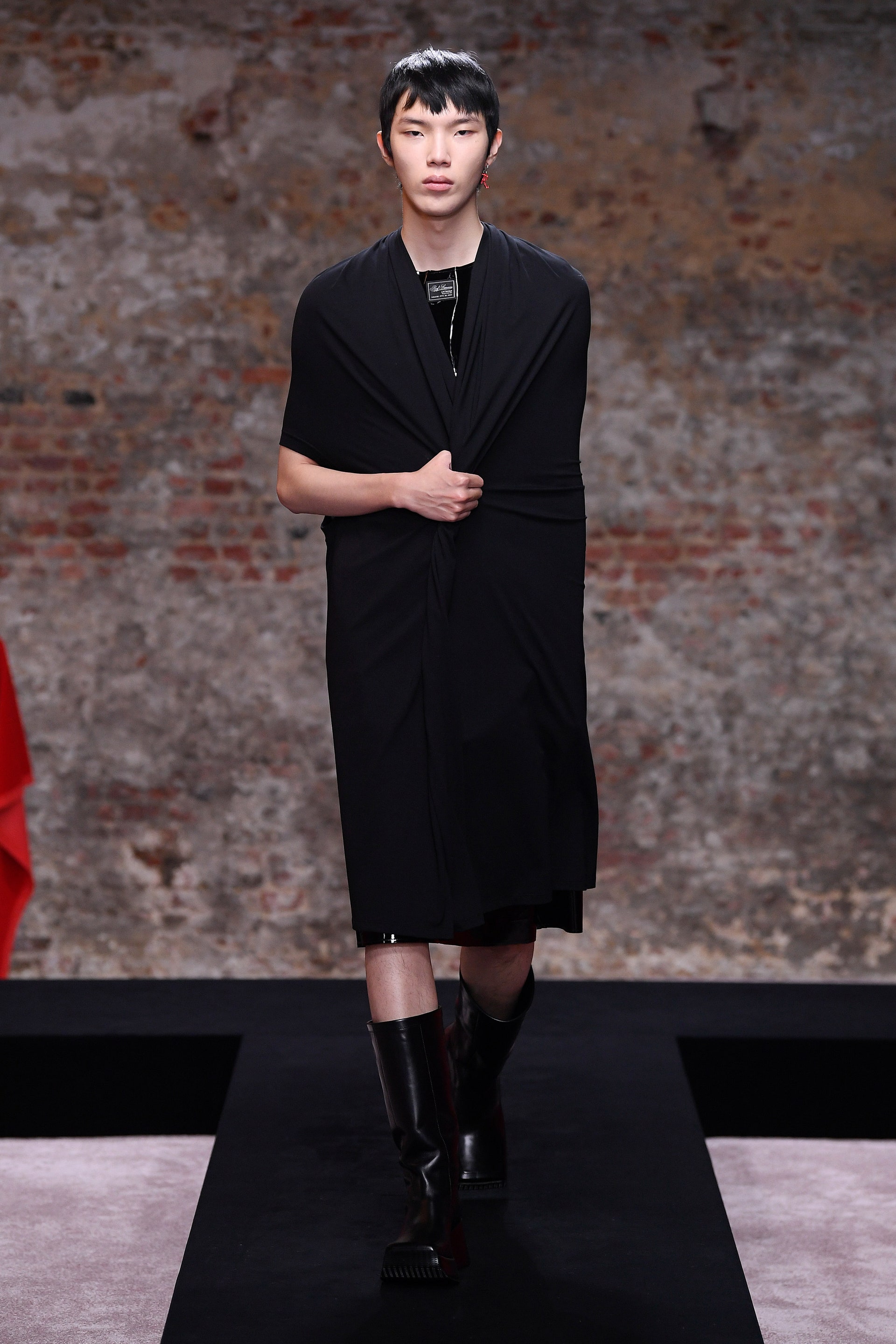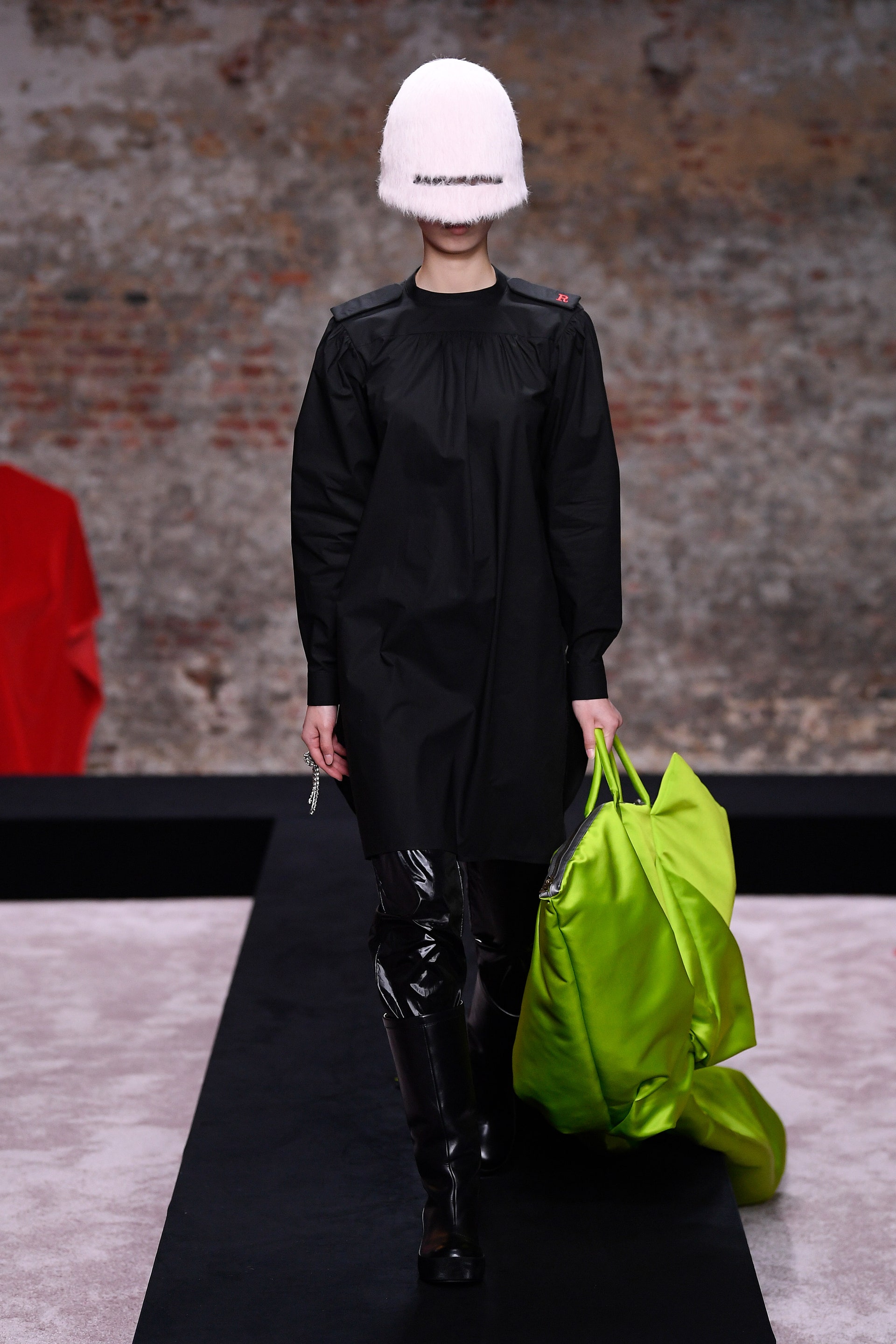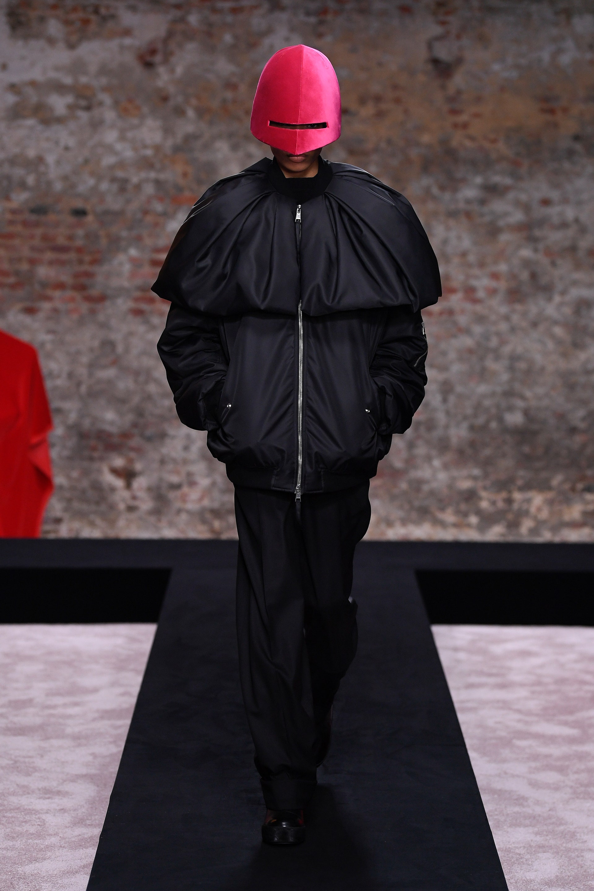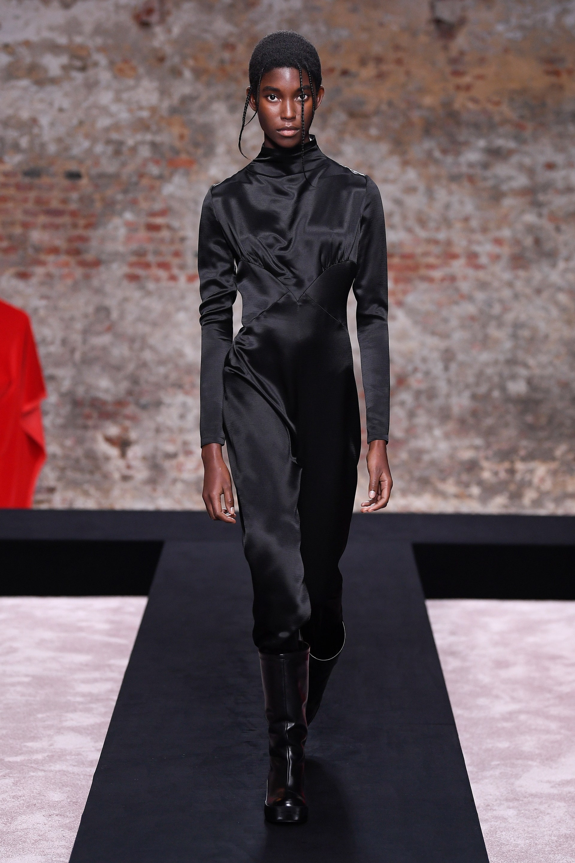Осенняя коллекция Рафа Симонса выглядит так, будто дизайнер глубоко погрузился в мир сумрачного романтизма. Мы уже видели украшения в виде кистей скелетов в весеннем шоу, готические сетчатые топы и средневековые накидки. В новом сезоне Средневековья стало еще больше, а атмосфера показа сгустилась до напряженной атмосферы фильма ужасов.