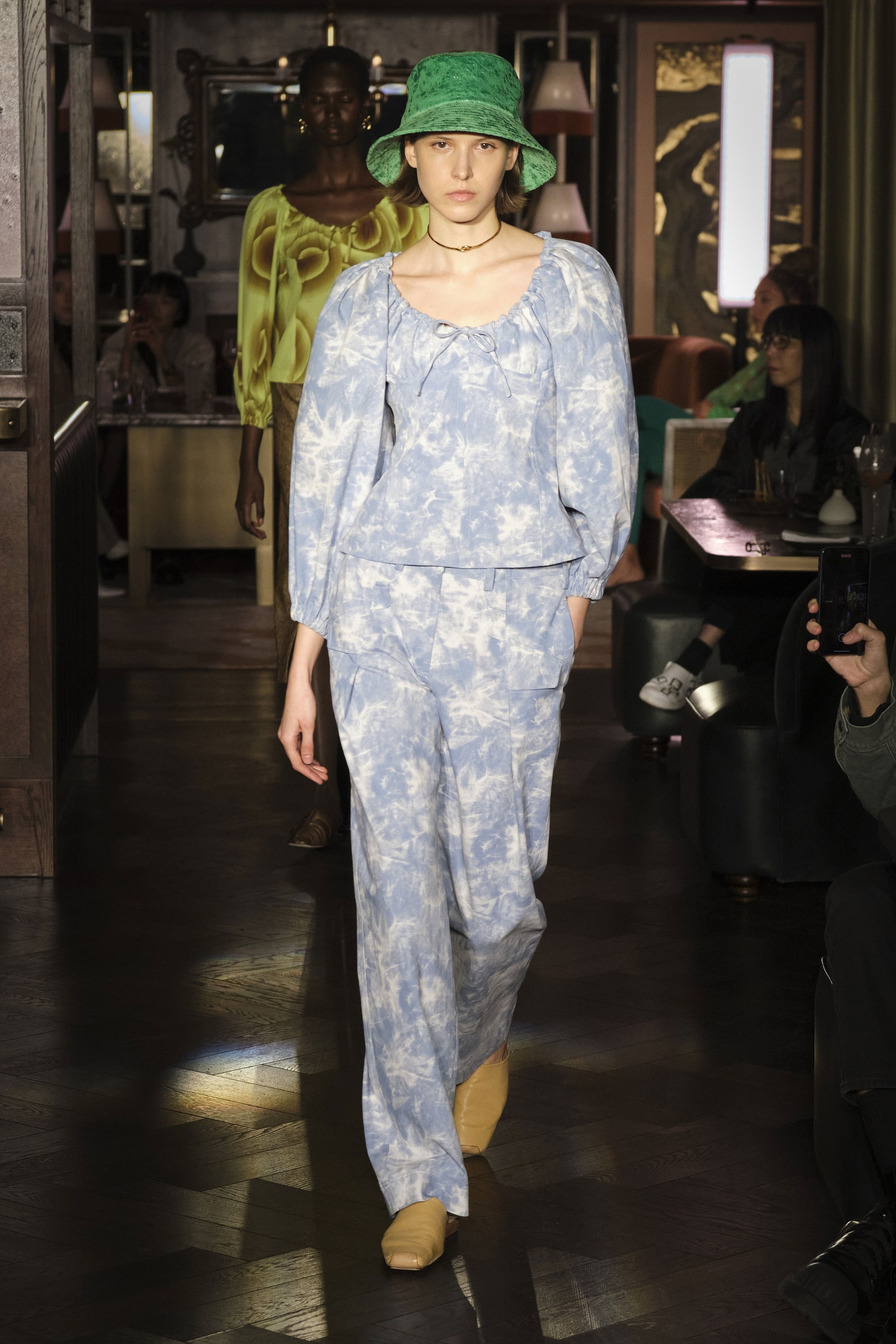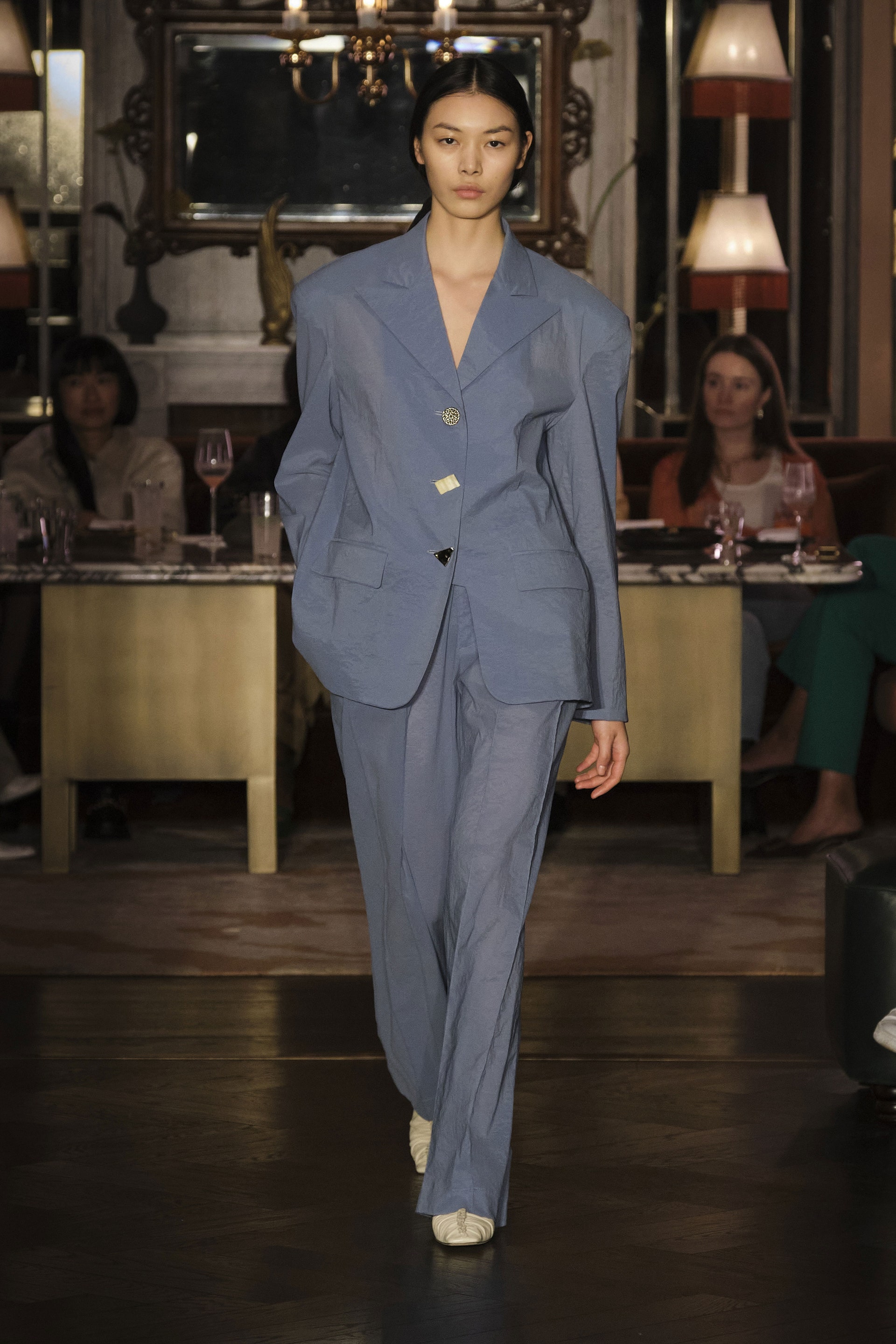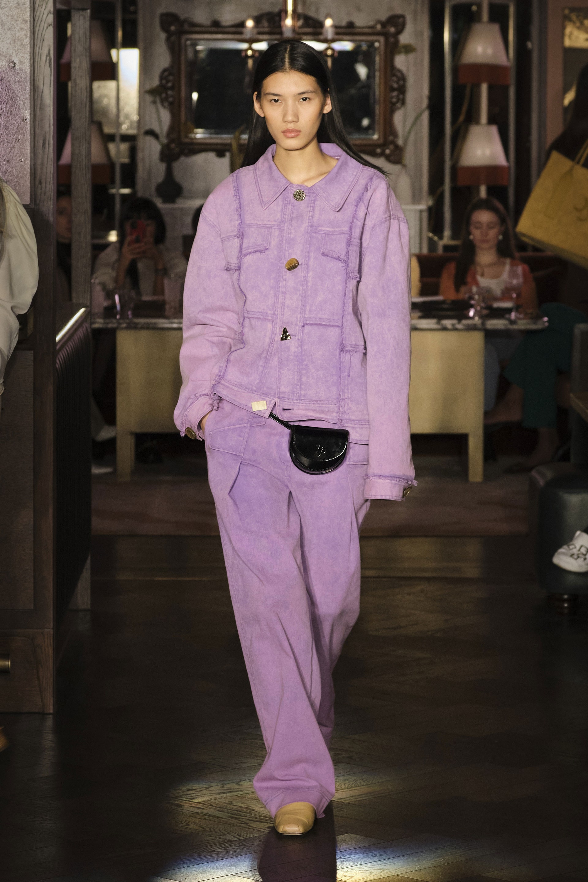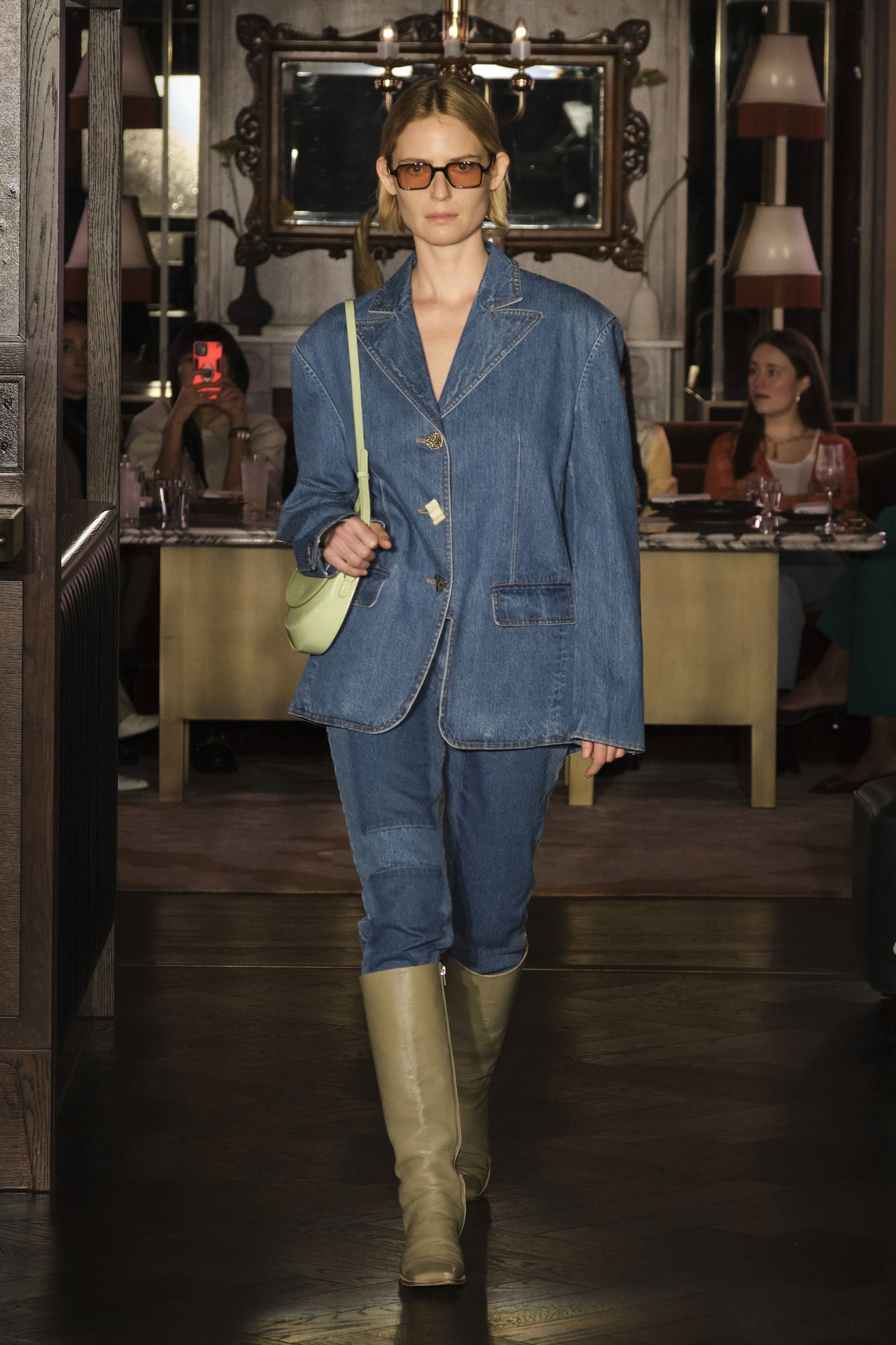 Целью Пио было уйти от подражания эпохе в сторону современной интерпретации, и у неё получилось. Вещи из "потертого" денима отсылали к кодам рабочей одежды, платье-рубашка с лишней парой рукавов лишь отдаленно напоминает повседневные платья гарсонеток, а принт в стиле ар-деко оцифрован и имеет психоделический оттенок. Коллекция дополнена полноценной линейкой сумок: от войлочных и миниатюрных поясных до красочных наплечных.
