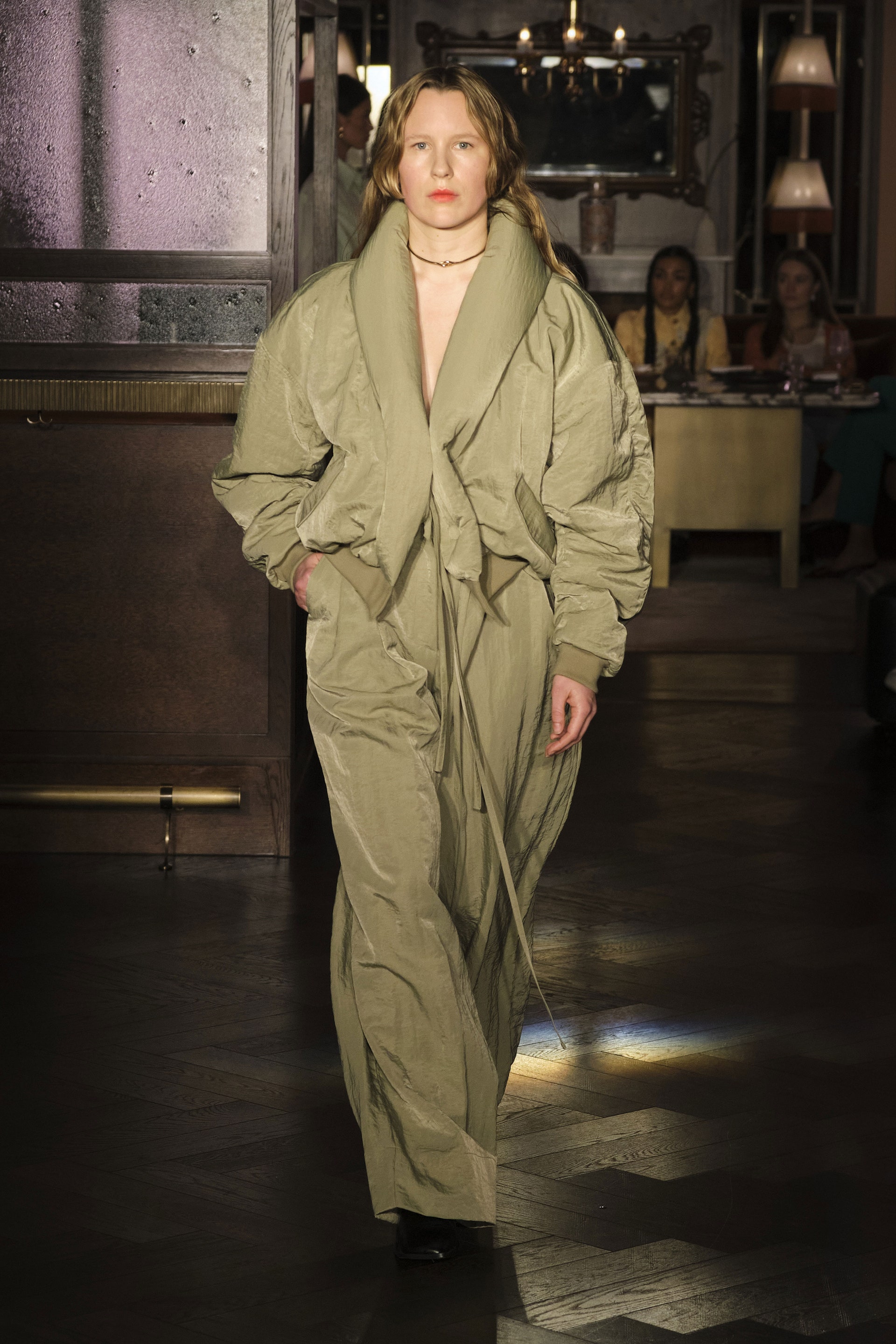 Дизайнер Реджина Пио провела шоу на Неделе моды в Лондоне. Свою новую коллекцию она посвятила гедонистической моде 20-х, которая была пропитана духом свободы, предшествующим стоицизму 30-40-х. Дизайнер создала линию стеганых пальто-халатов с пышными воротами, подобных роскошным манто голливудских див, цветочные сарафаны и нарочито архаические блузы с отложными воротниками, а также деликатные блузы с бантами.