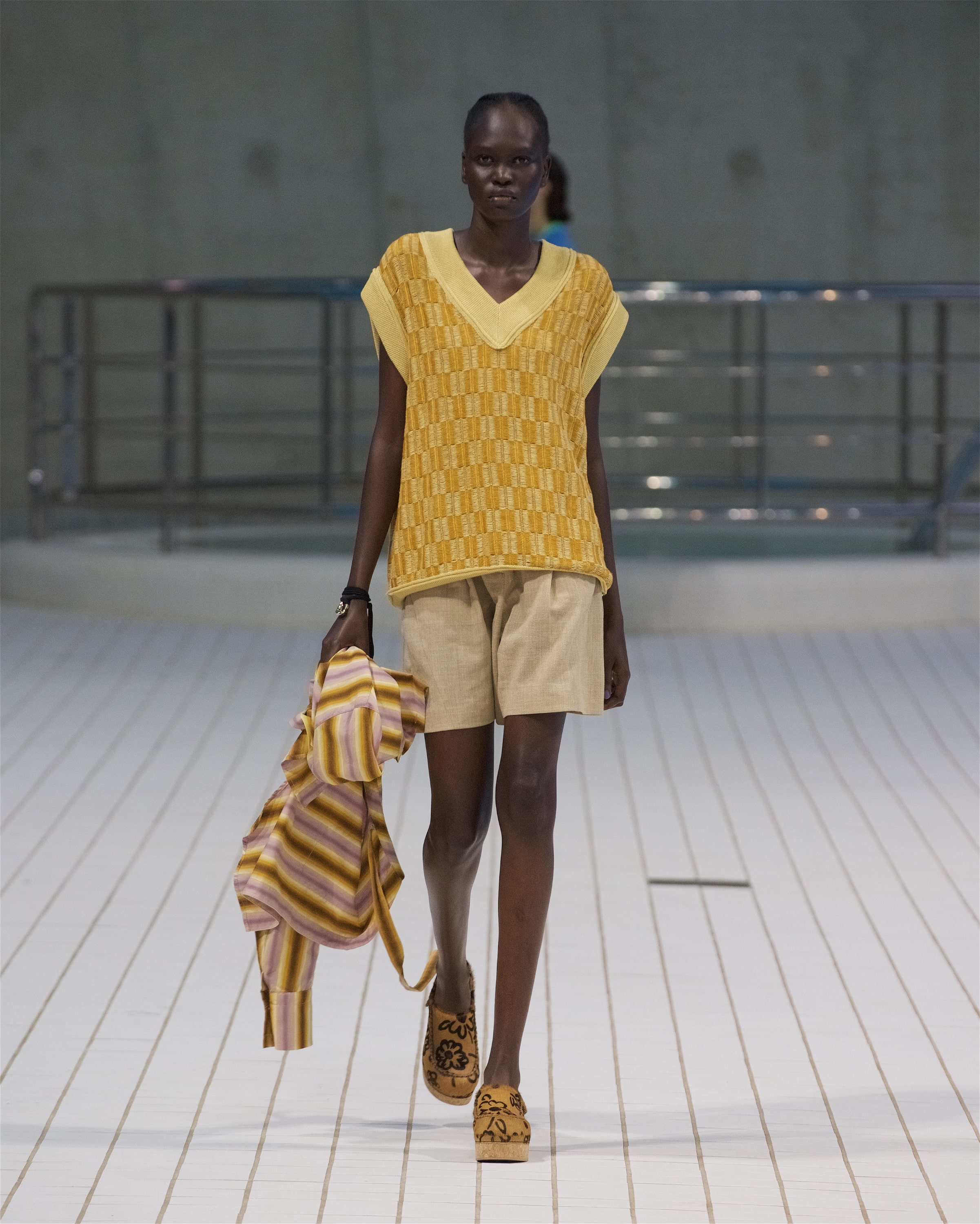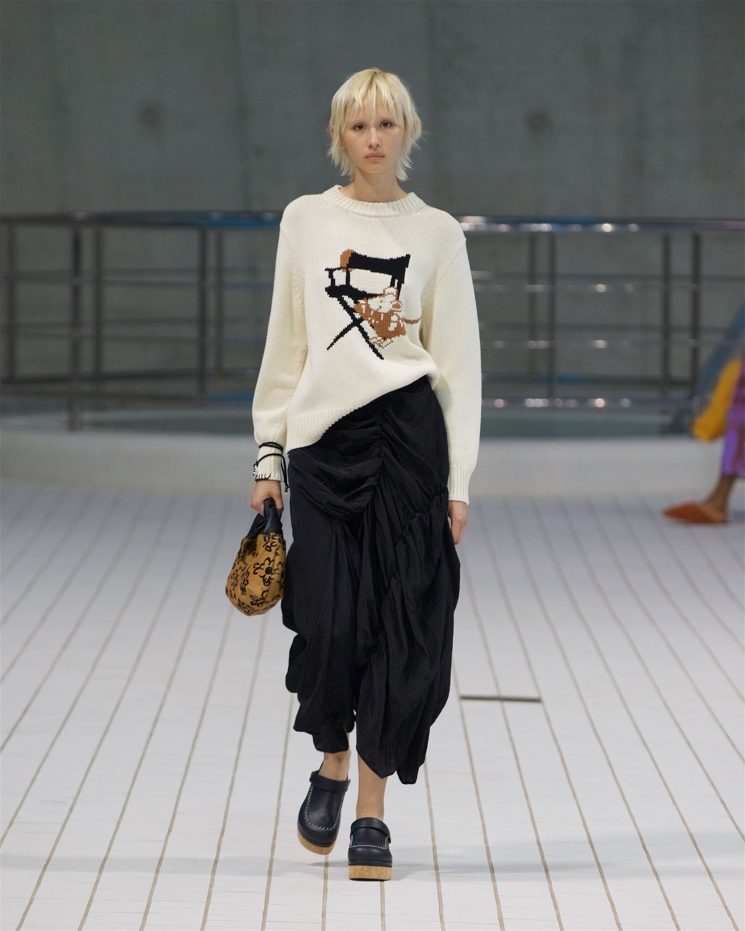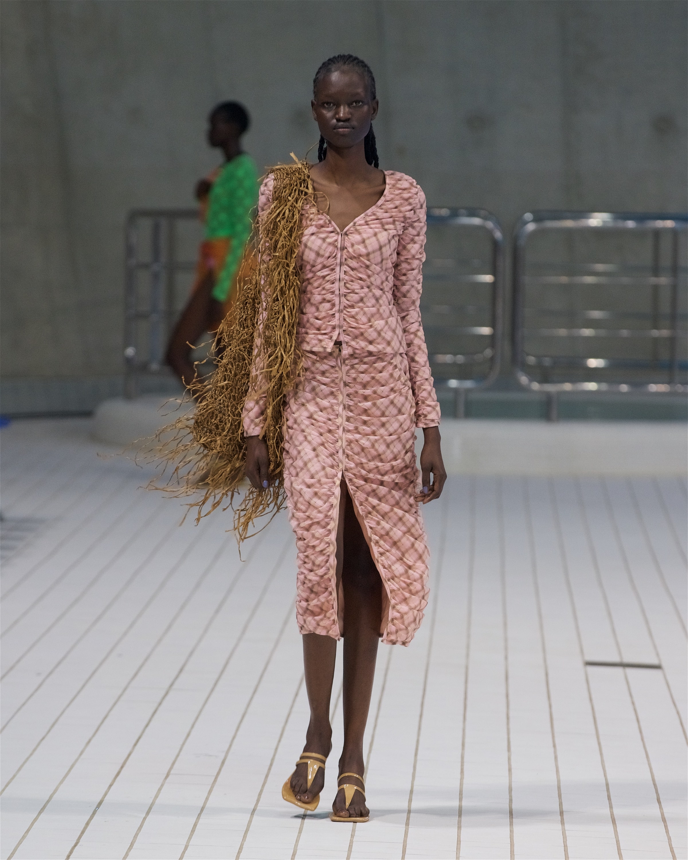 В одном из образов можно заметить расклешенные брюки из рафии, которые вторят шелестящим плечевым сумкам коллекции. Оверсайз-тренчи, красочные драпированные платья и приспущенные на плечах жилеты — всё, по версии самой Пио, напоминает о временах, когда мы могли свободно путешествовать, не зная ограничений, чувствуя себя беззаботно в раскованной одежде, не стесняющей мыслей и движений.