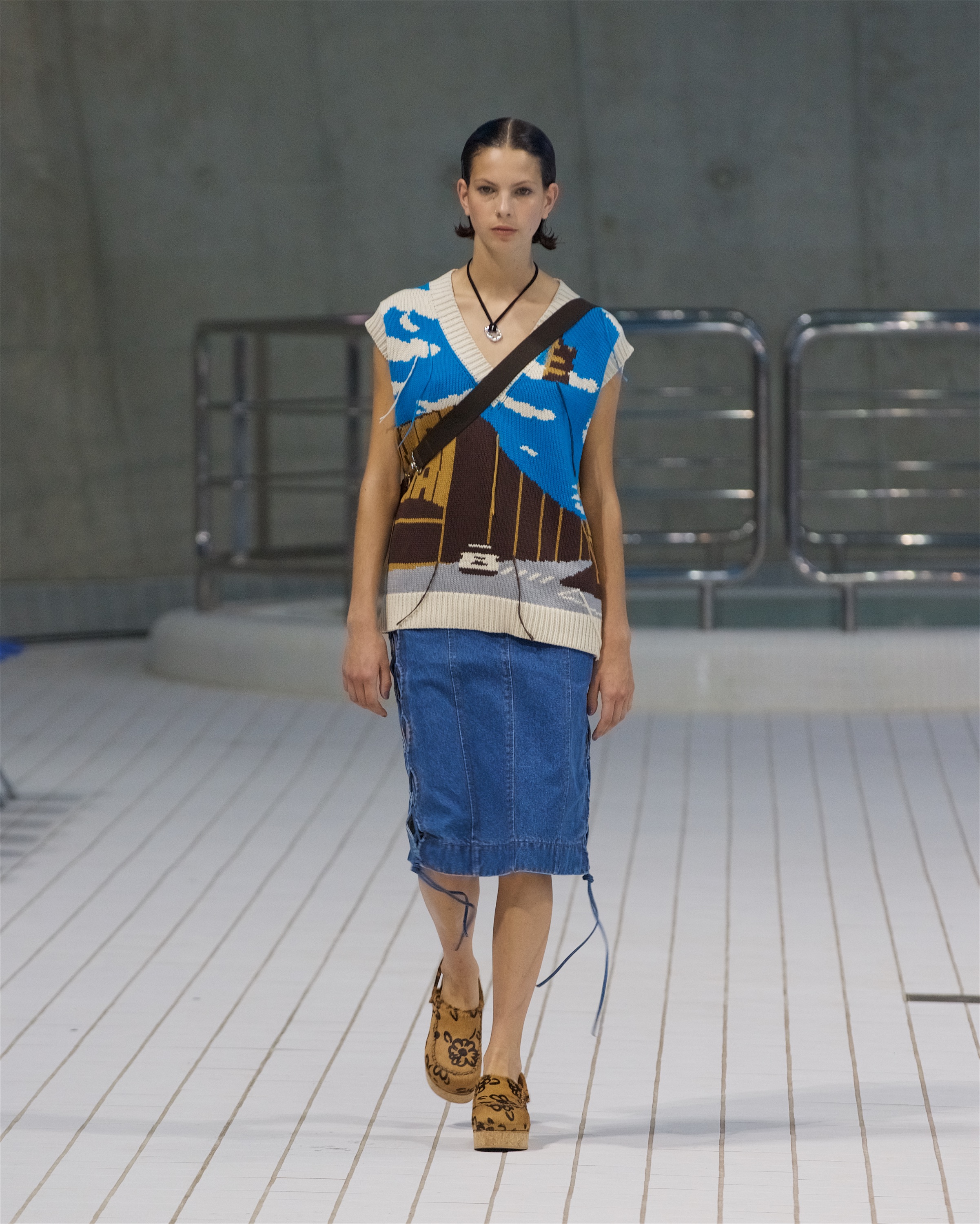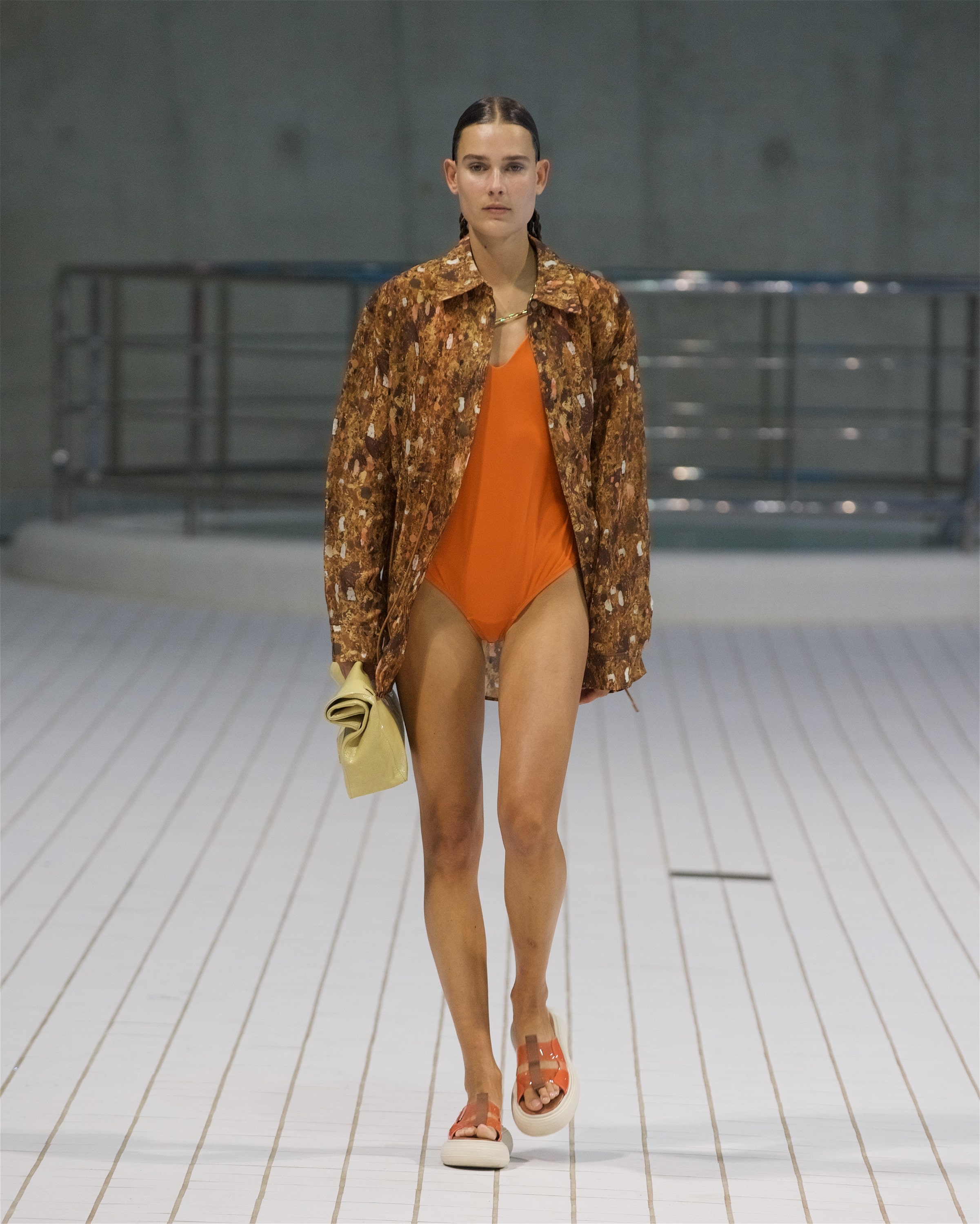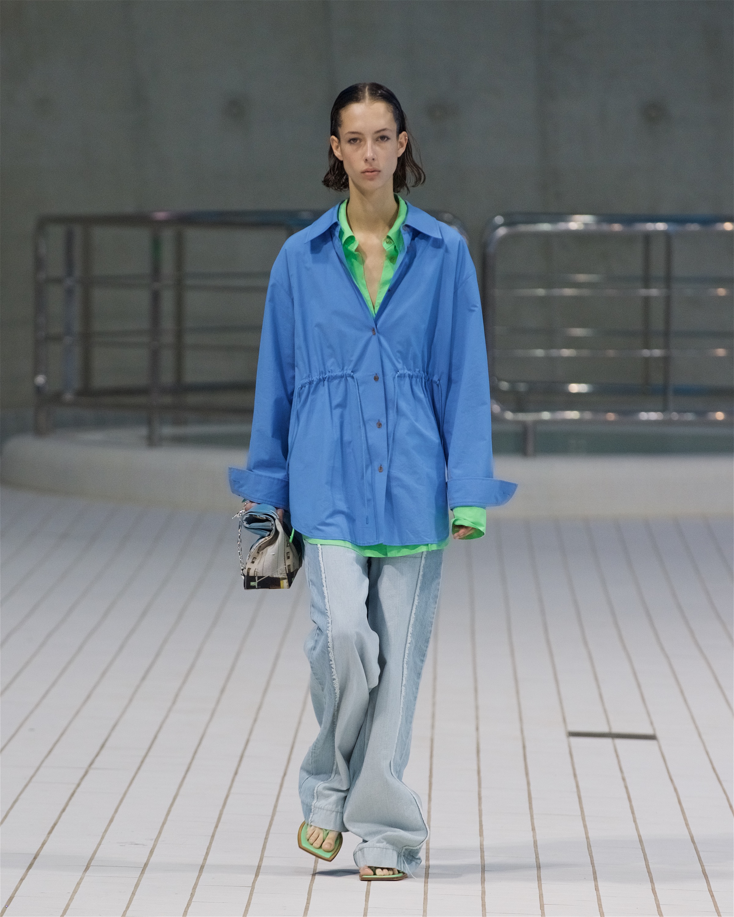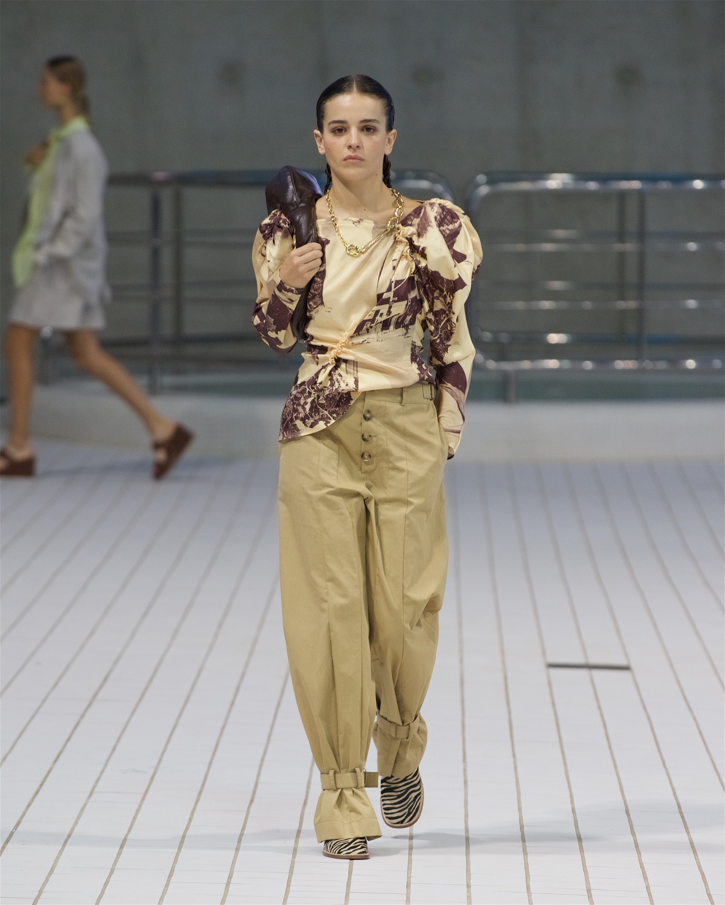В одном из образов можно заметить расклешенные брюки из рафии, которые вторят шелестящим плечевым сумкам коллекции. Оверсайз-тренчи, красочные драпированные платья и приспущенные на плечах жилеты — всё, по версии самой Пио, напоминает о временах, когда мы могли свободно путешествовать, не зная ограничений, чувствуя себя беззаботно в раскованной одежде, не стесняющей мыслей и движений.