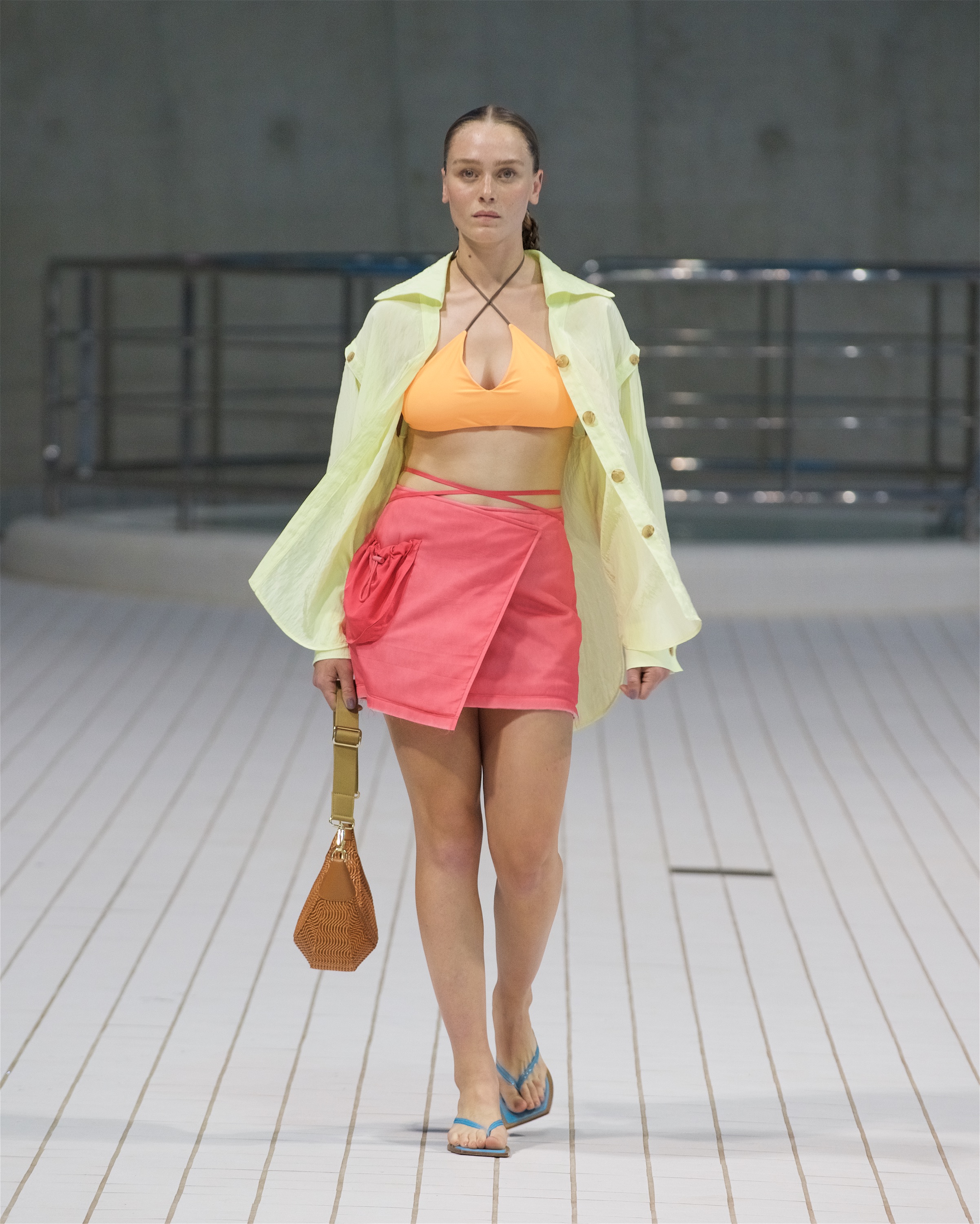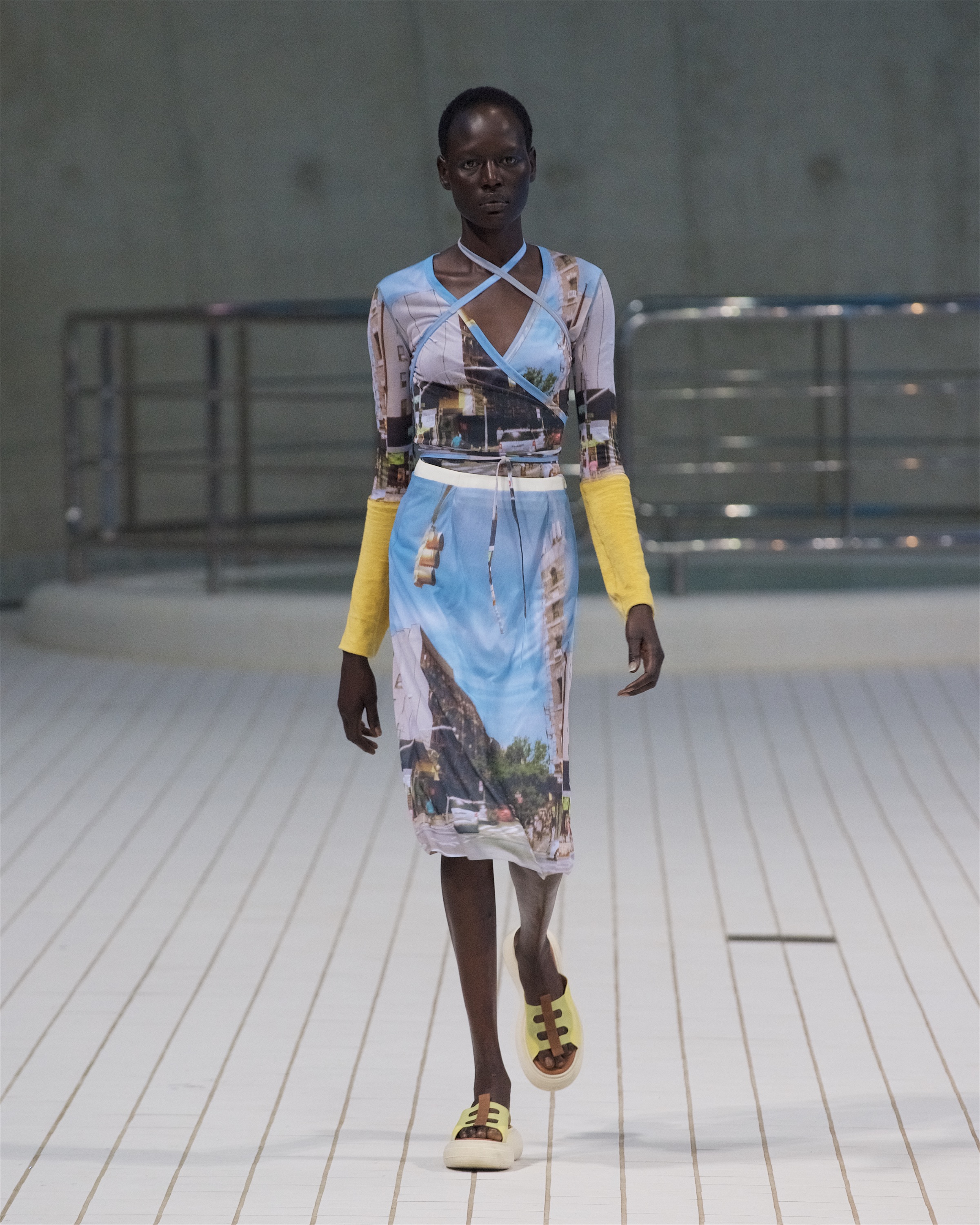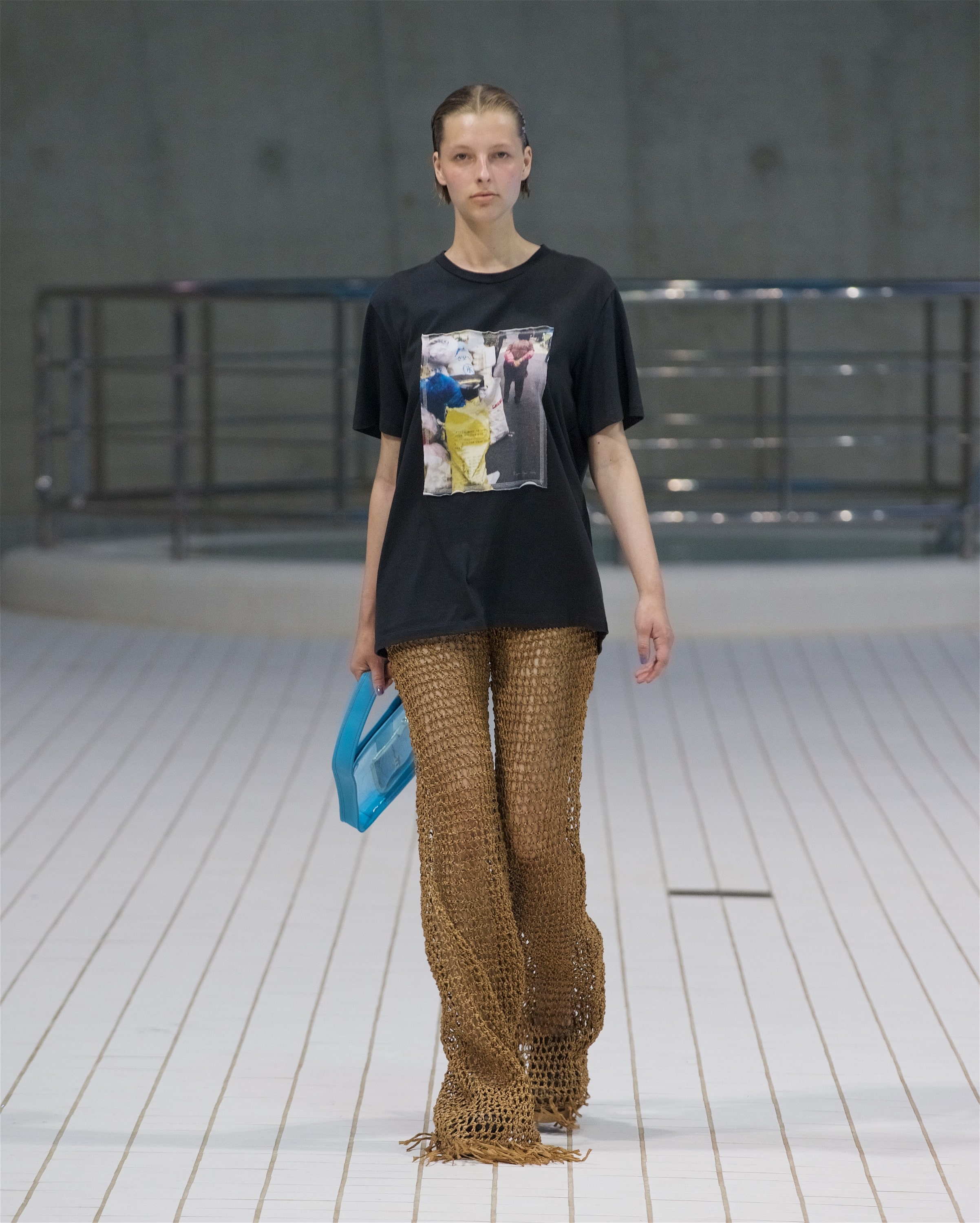 Коллекция также запомнилась гостям свежестью и легкостью, хотя и была традиционно эклектичной. Вместе с блузами из гипюра и яркими бикини модели носили повязанные на талии рубашки из органзы, струящиеся трикотажные брюки и топы дополняли функциональные парки защитных оттенков, а эластичные костюмы с юбками и футболки украшали городские пейзажи Нью-Йорка и Сеула, снятые Реджиной в подростковом возрасте.