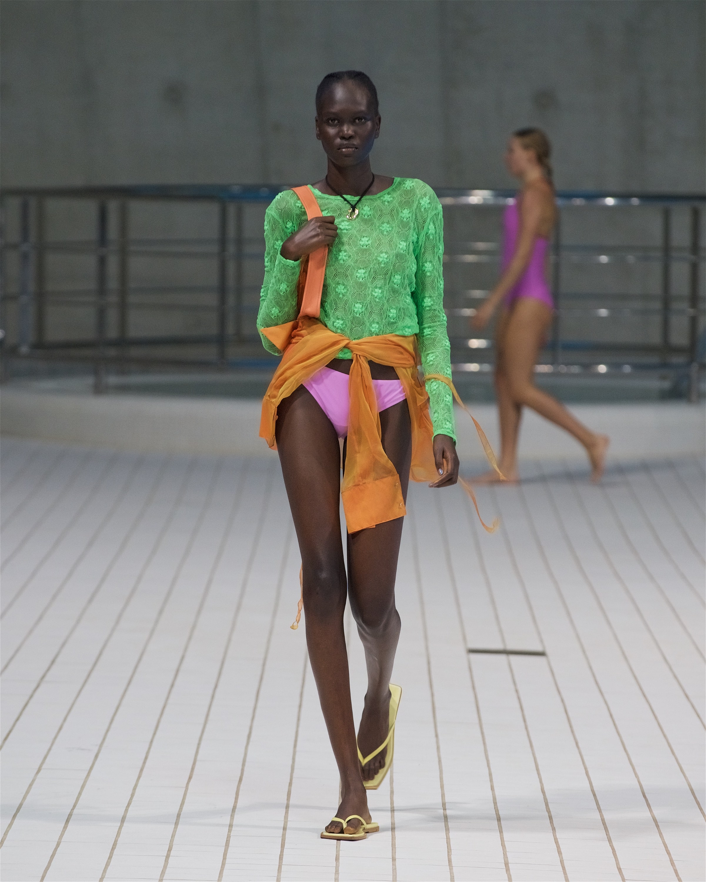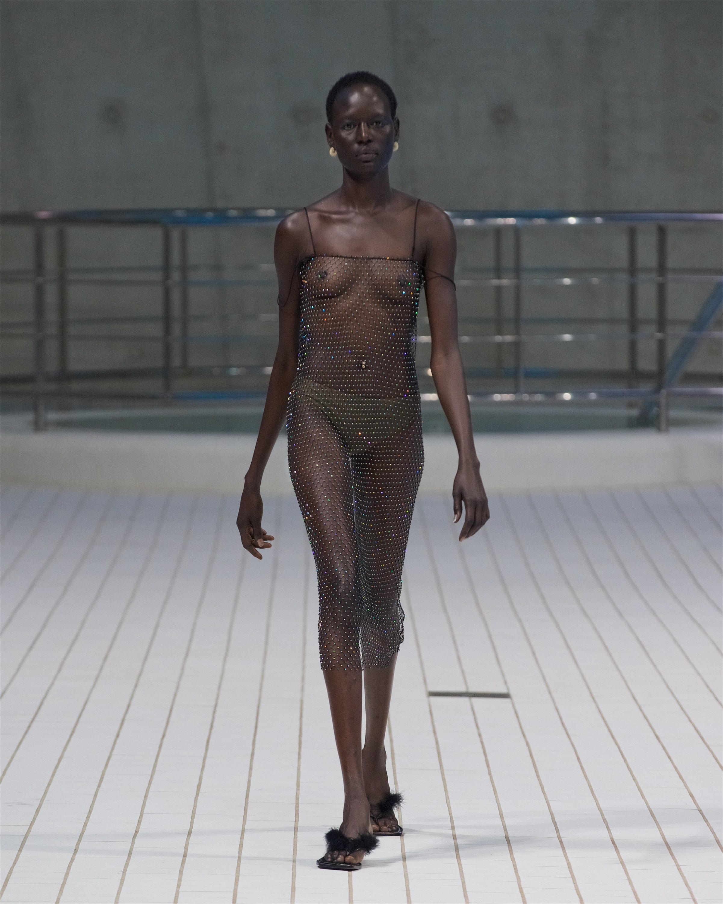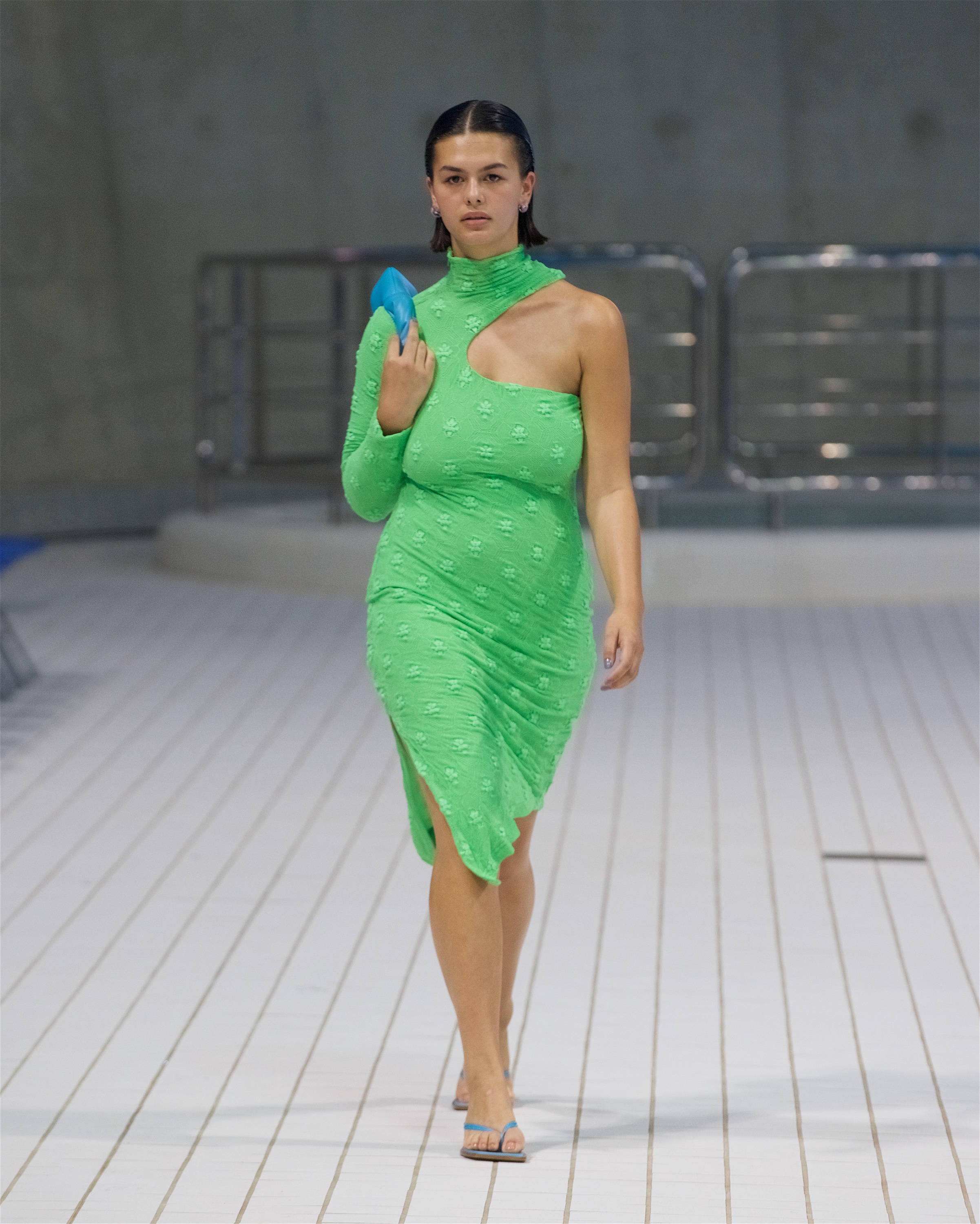 Реджина Пио провела первое живое шоу после долгого перерыва в связи с пандемией. И оно получилось впечатляющим. Показ в лондонском центре водных видов спорта открыли и сопровождали театрализованные выступления пловцов и водолазов олимпийской сборной Великобритании.