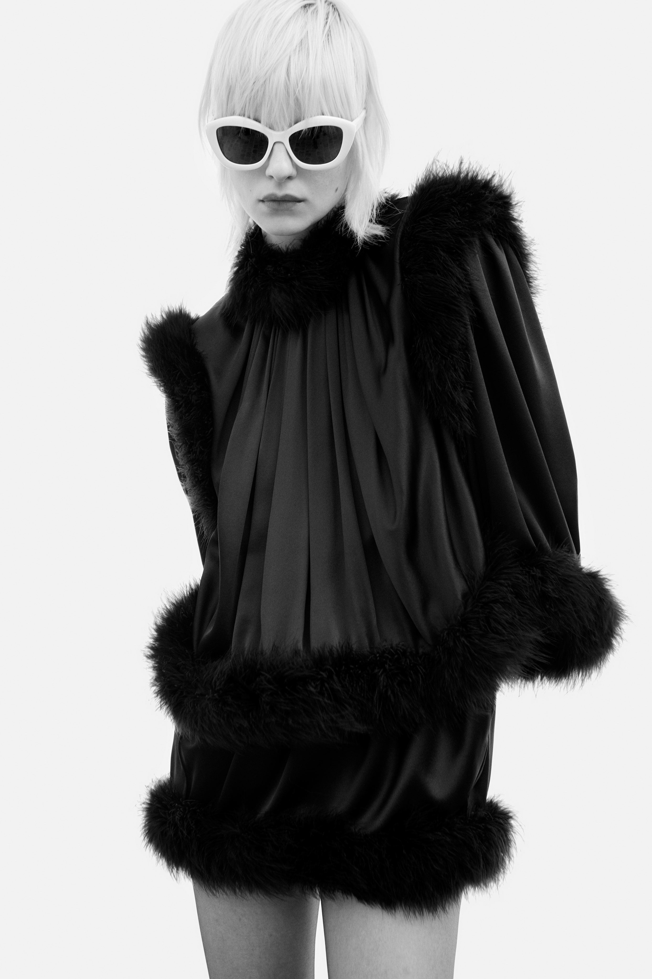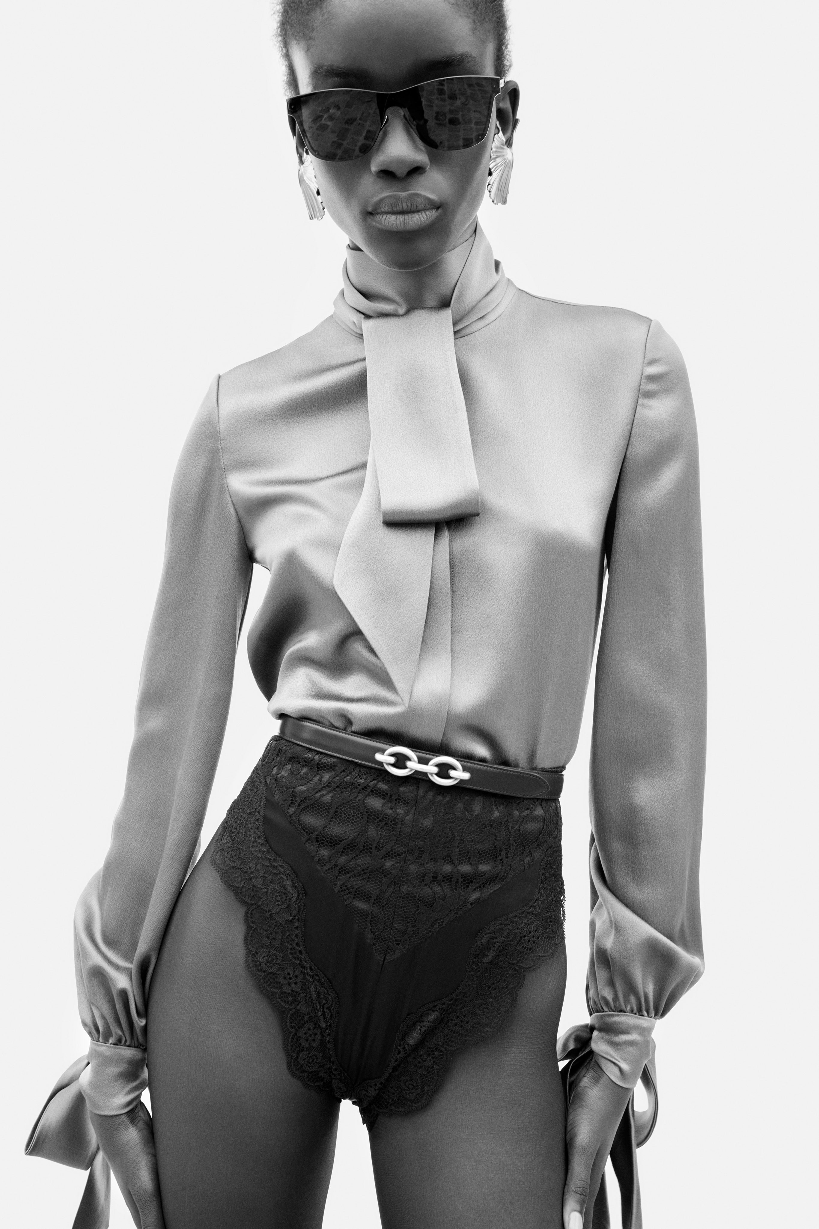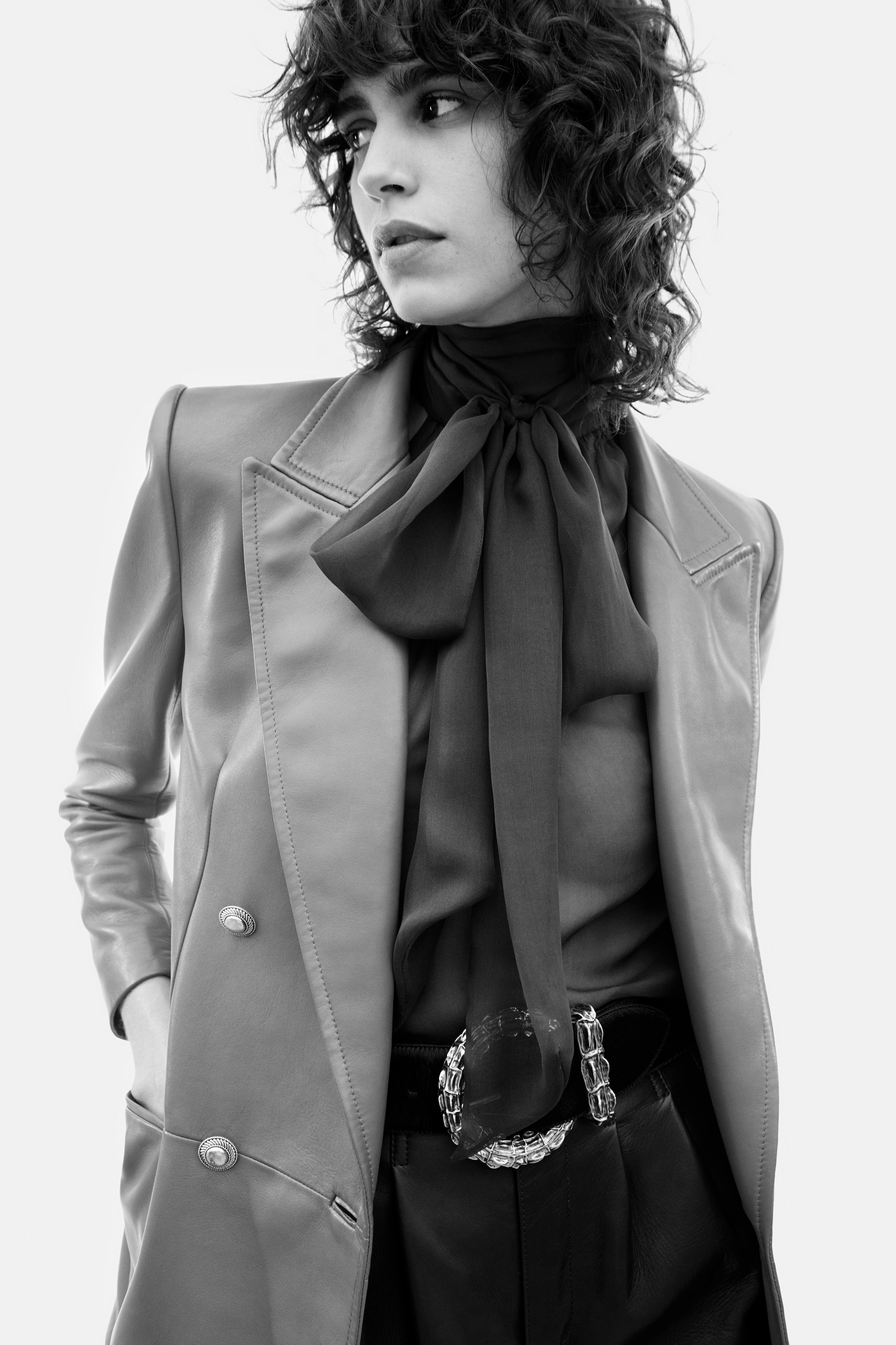Осенняя коллекция 2021 снова выполнена в спокойном ритме рок-н-ролльной романтики. Круизный лукбук и вовсе напоминает задумчивые фильмы Ингмара Бергмана, с их женскими лицами, длинными эмоциями и ахроматической гаммой кадра. На моделях — свободно ниспадающие шелковые и бархатные топы, жеманные шорты из сатина и деловые тренчи. Ожидаемые блузы с бантами в этот раз приобретают более выдержанное и даже аристократичное звучание, однако модели носят их не с буржуазными брюками-дудочками, а вместе с кружевным бельем в духе 70-х. Кожаные куртки, платья-комбинации, оборки, леопардовый и гороховый принт, как и всегда, занимают свое почетное место в коллекции и выглядят так, что хочется поскорее все это надеть и отправиться на веселую вечеринку, забыв об усталости и пандемии прошедшего года, как о сне.