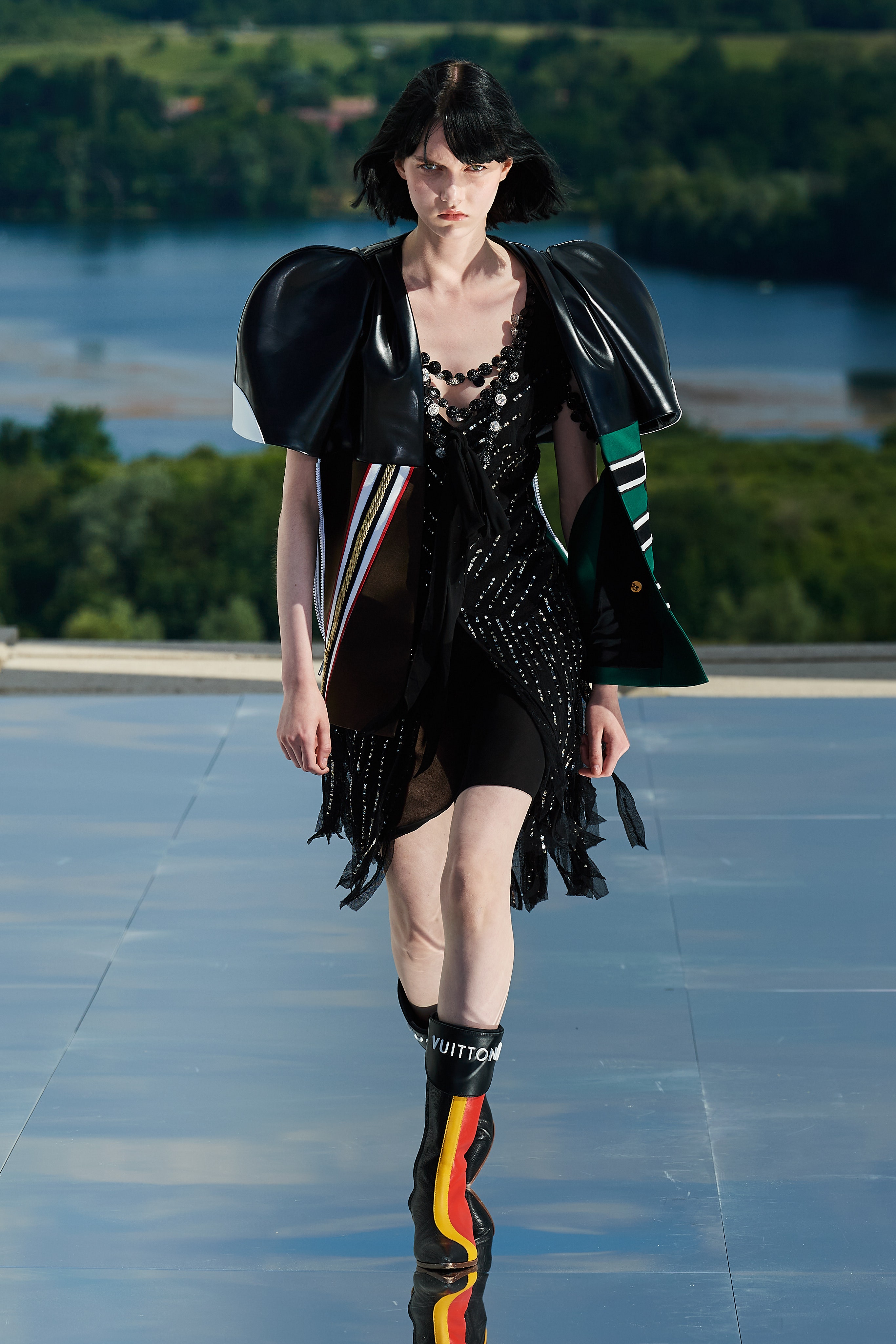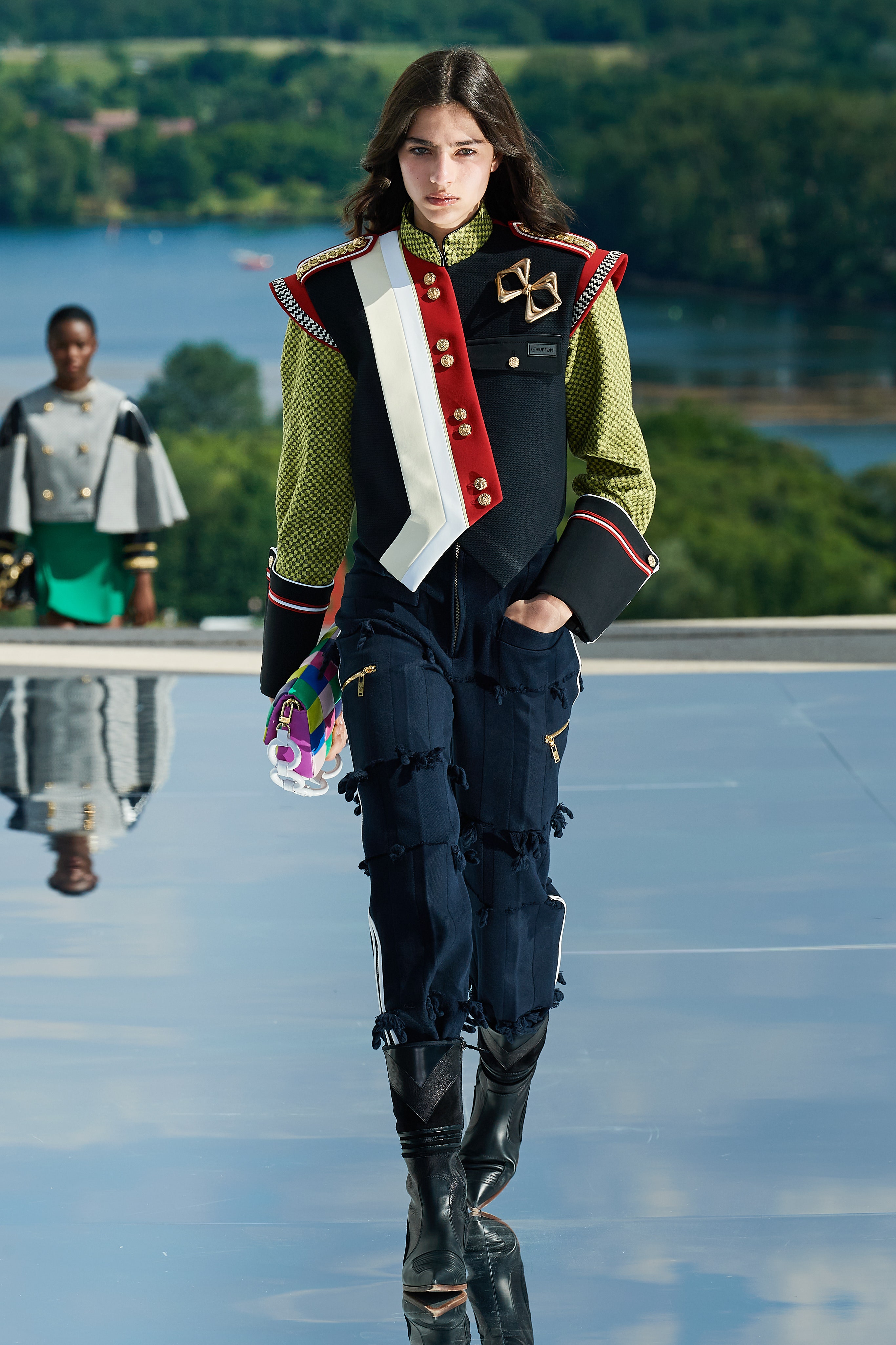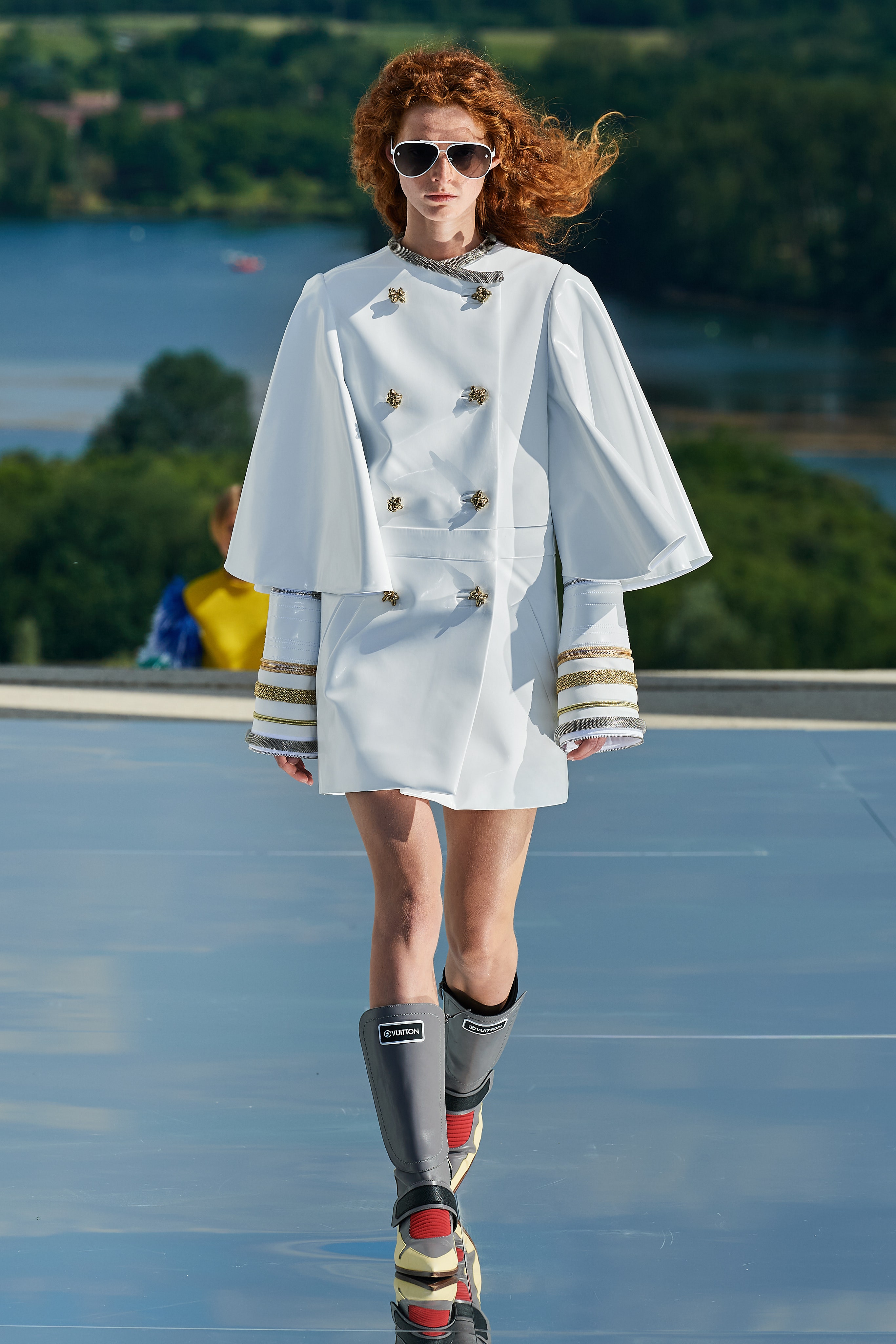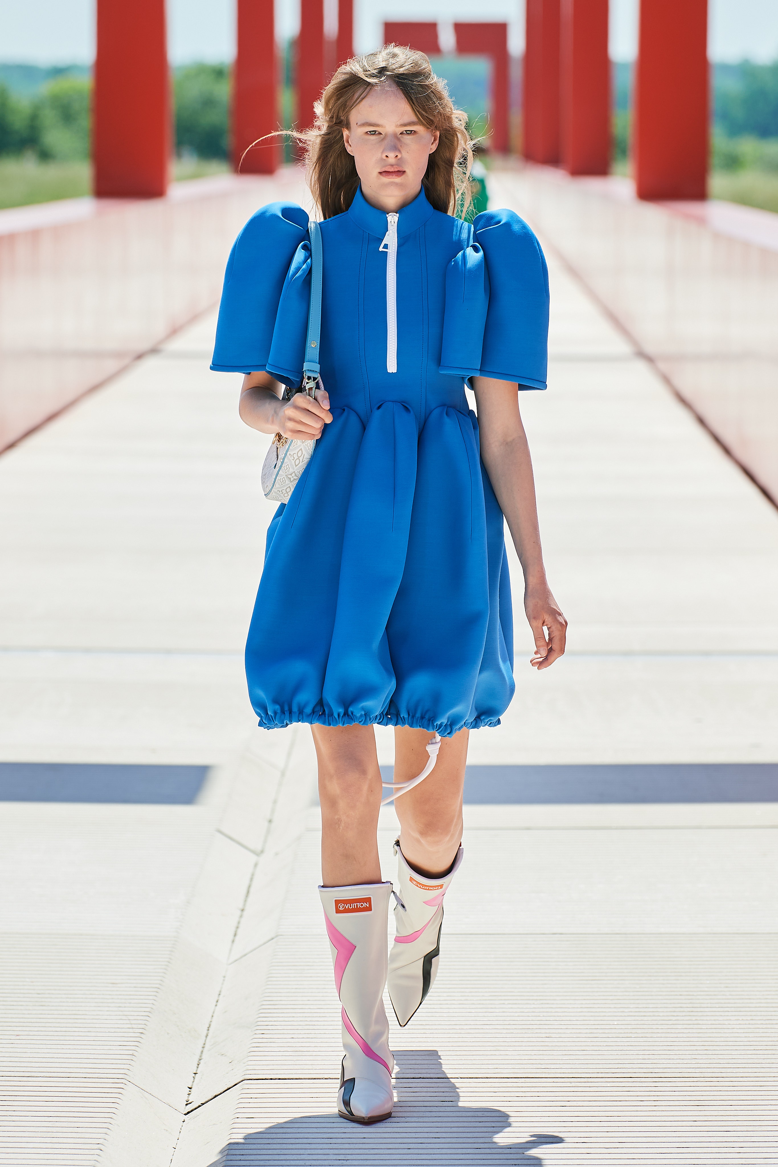 Николя Гескьер представил курортную коллекцию для дома Louis Vuitton в монументальном парке скульптур Axe Majeur, созданном израильским художником и экологом Дани Караваном. Величие и футуристическая стилистика строений парка перекликаются с любовью самого Гескьера к научной фантастике, космосу и фантазиям об антиутопической моде. Набирающая обороты повестка космического туризма, среди прочего, вдохновила дизайнера в работе над коллекцией.