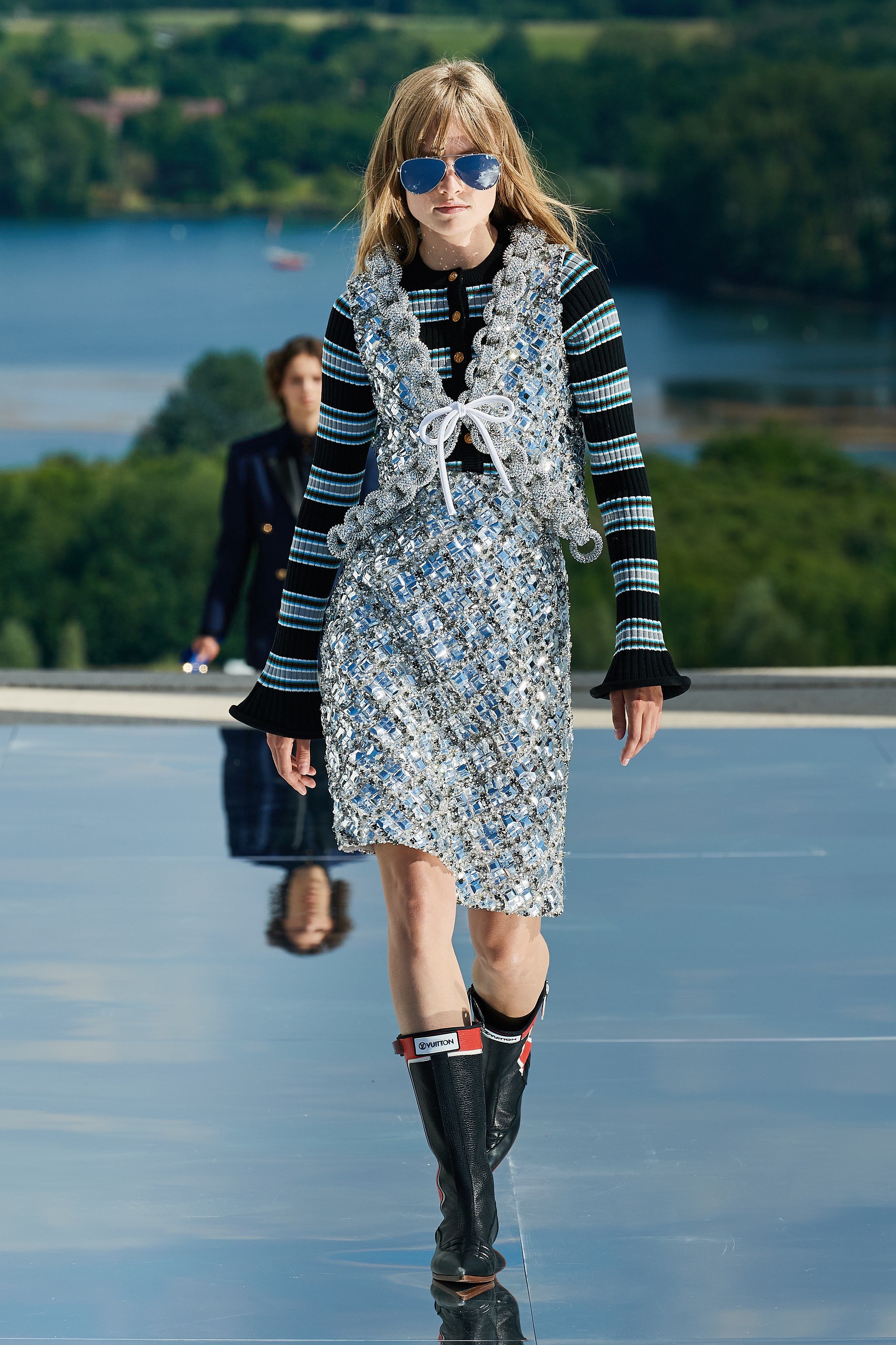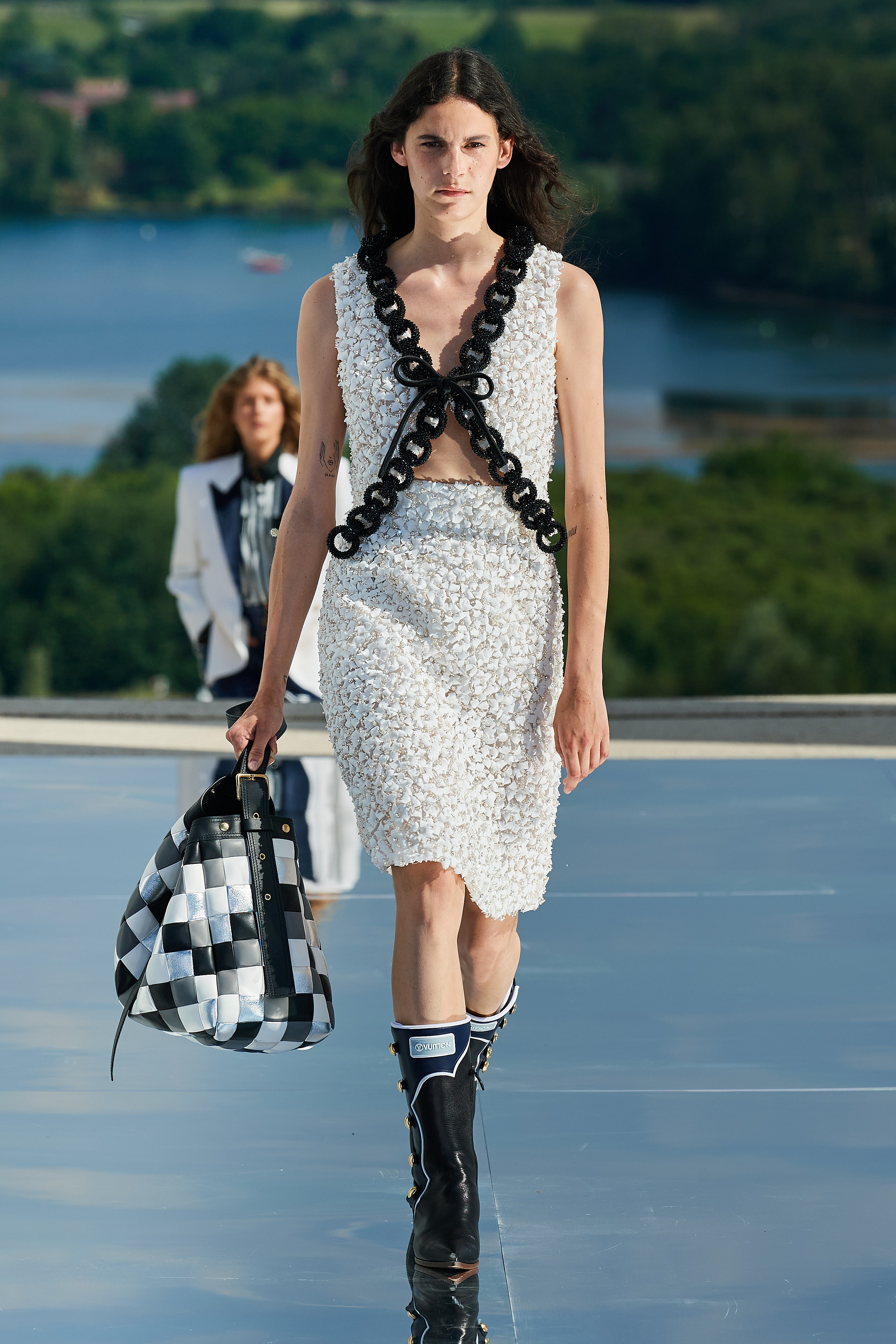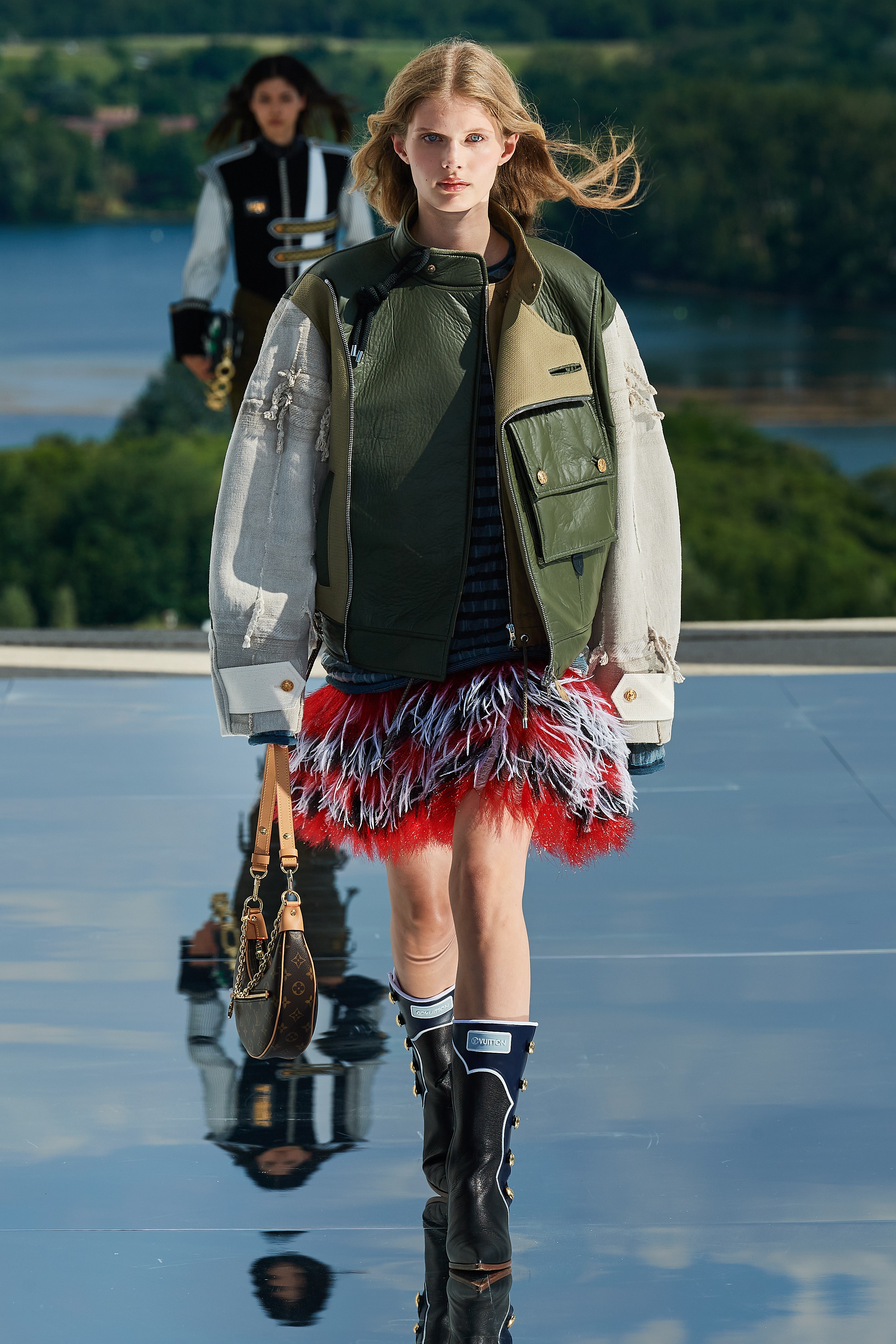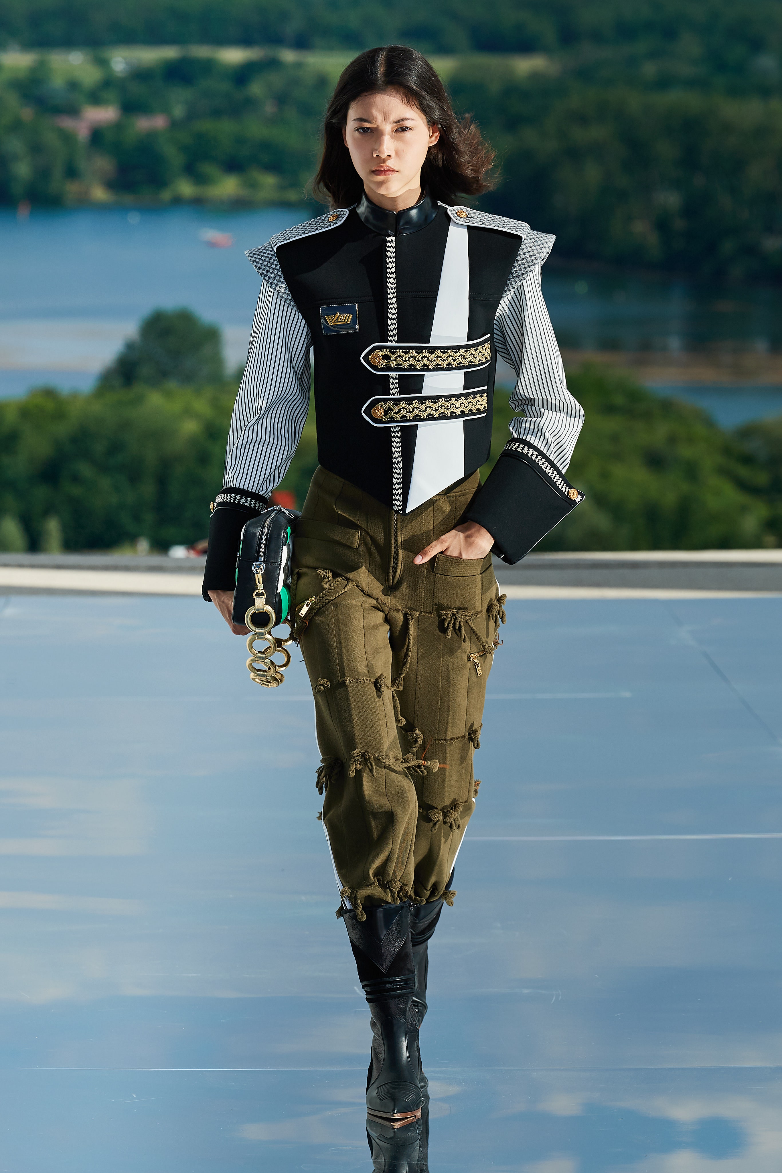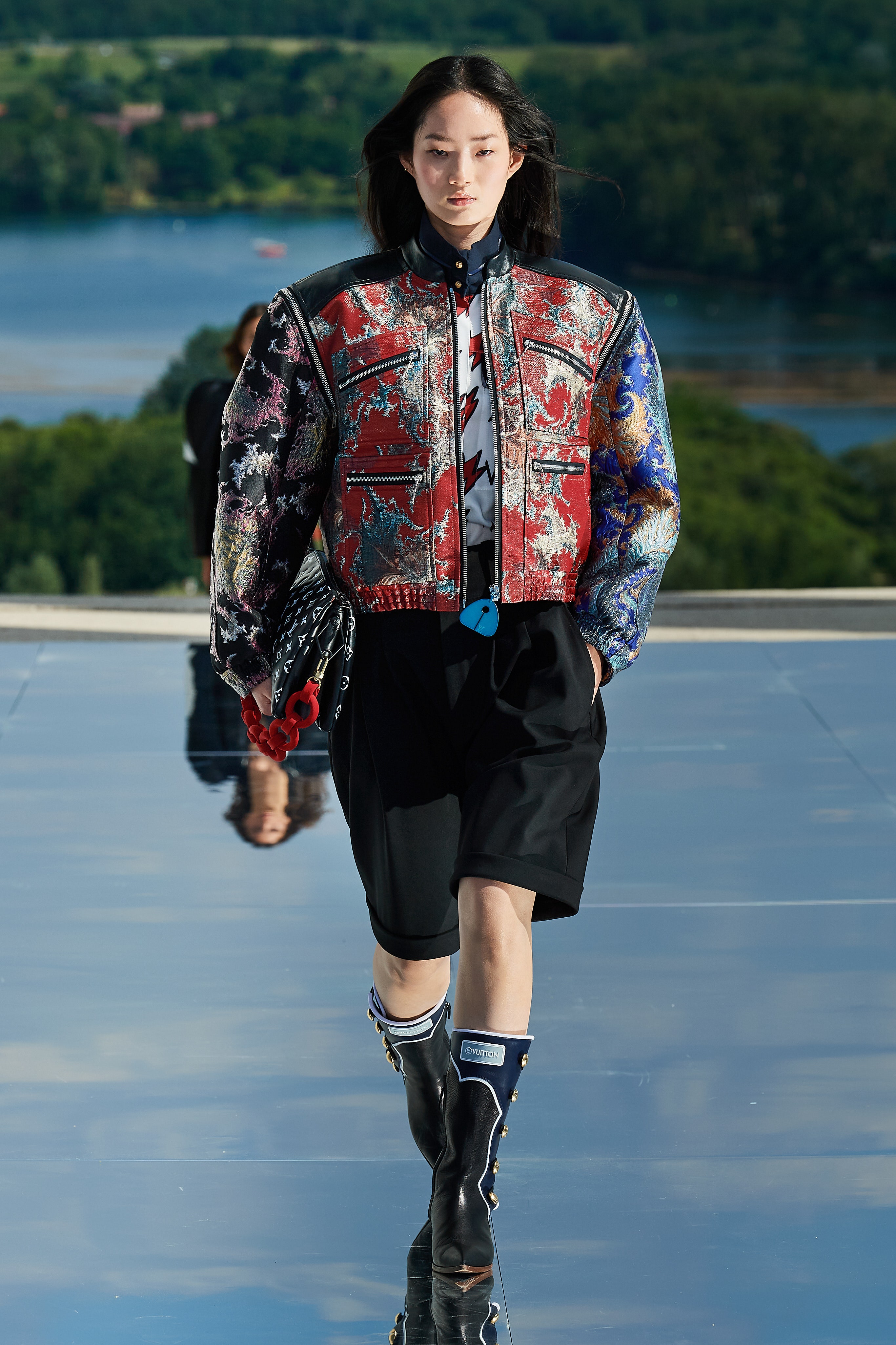 Николя Гескьер представил курортную коллекцию для дома Louis Vuitton в монументальном парке скульптур Axe Majeur, созданном израильским художником и экологом Дани Караваном. Величие и футуристическая стилистика строений парка перекликаются с любовью самого Гескьера к научной фантастике, космосу и фантазиям об антиутопической моде. Набирающая обороты повестка космического туризма, среди прочего, вдохновила дизайнера в работе над коллекцией.