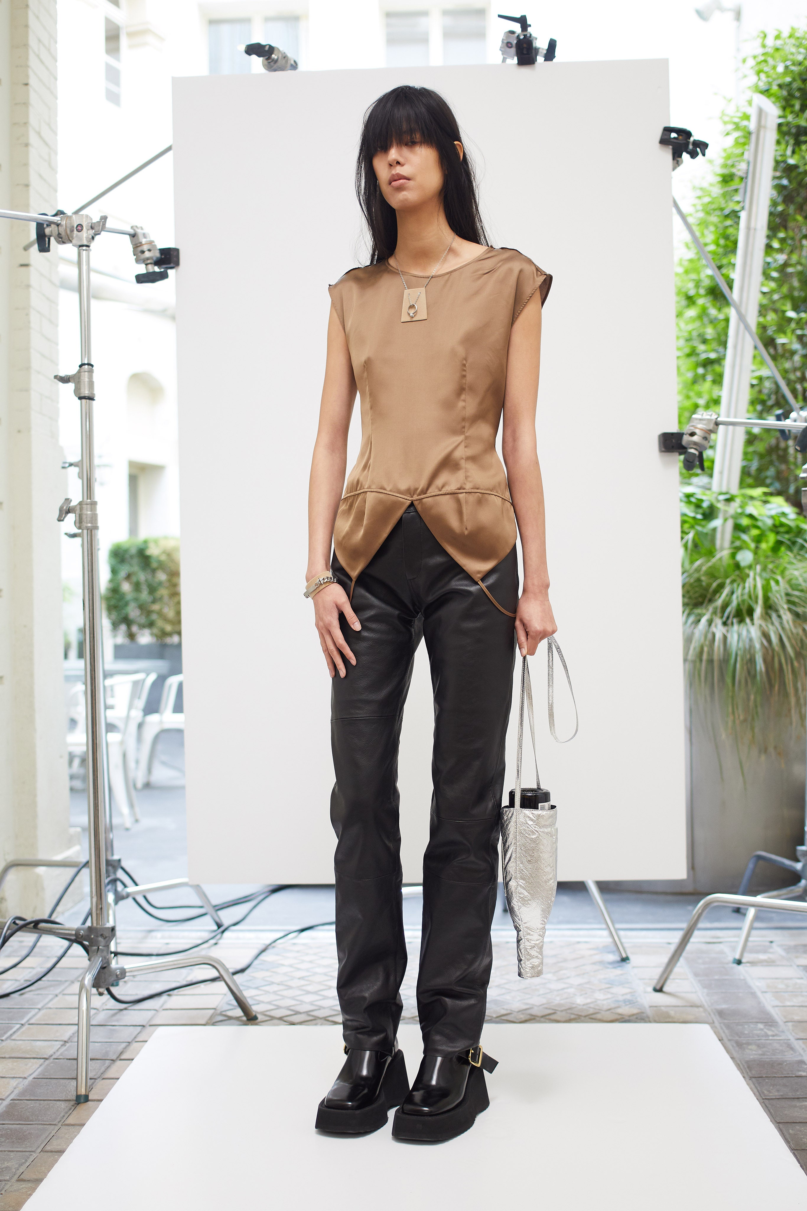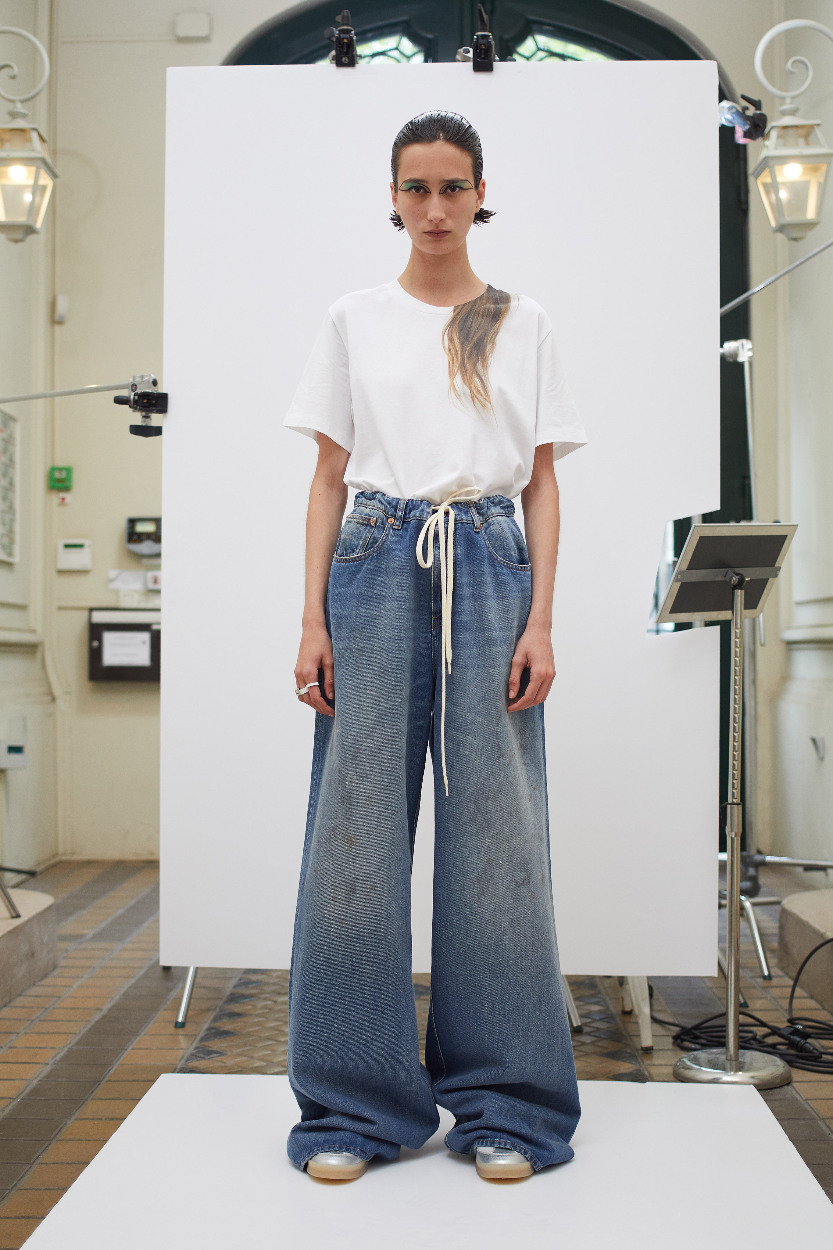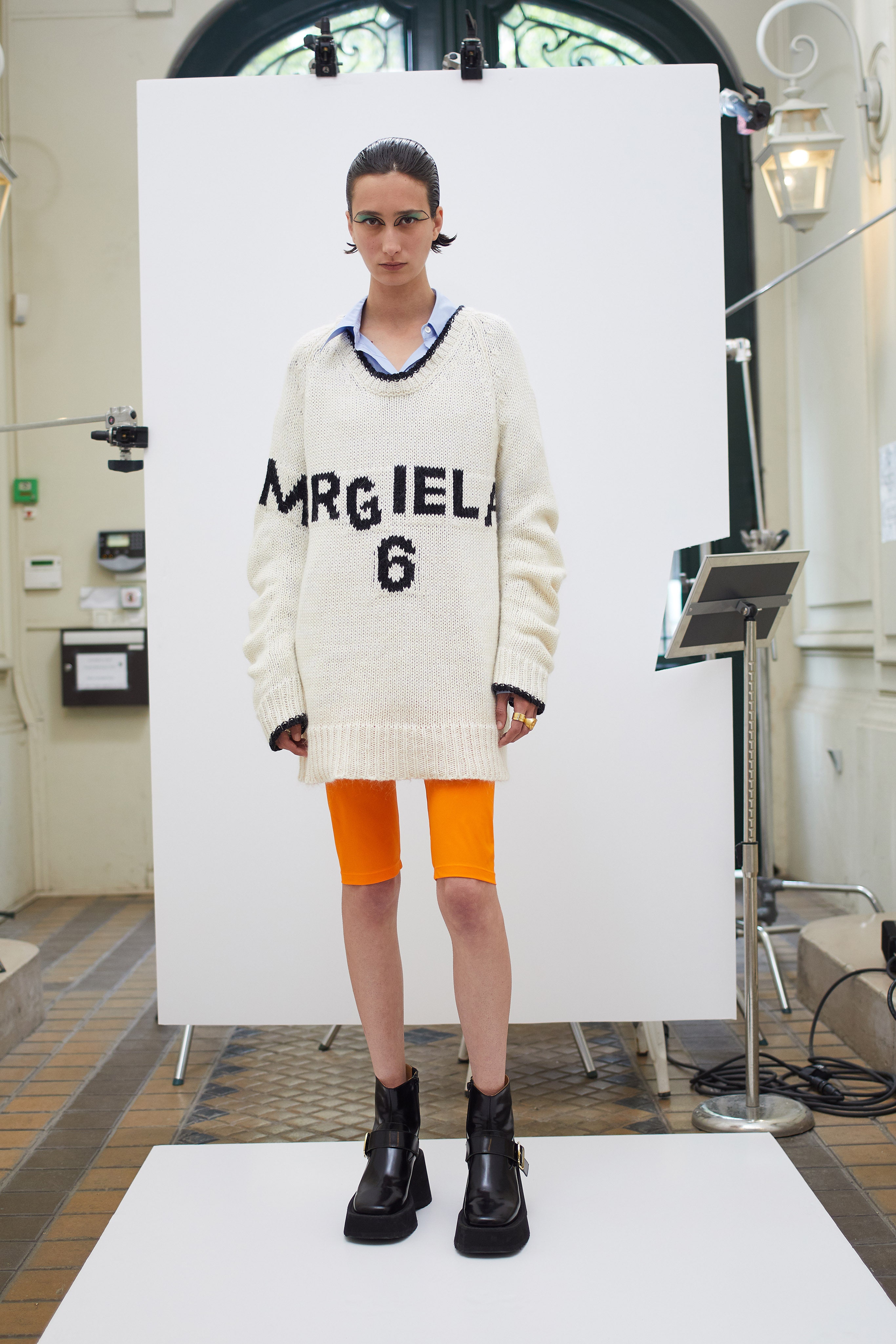 Команда модного дома неизменно бережно соблюдает традиции и наследие Мартина Маржелы, и из сезона в сезон поклонники бренда получают новую порцию авангардных и конструктивистских образов. Для будущего круизного сезона парадигму решили изменить и посвятили коллекцию французским сюрреалистам. Это не составляет резкого контраста с творчеством Маржелы, однако становится свежим штрихом в устоявшемся мудборде бренда. Так, источником вдохновения для команды стала игра Exquis Cadavres, которую придумали в 1910-20-х художники Андре Бретон и Марсель Дюшан (а увлекался этим даже Сальвадор Дали). Игра заключалась в том, чтобы собрать по частям образ, рисуя по очереди линии и заворачивая листок, чтобы передать соседу. Так, образы коллекции напоминают сконструированные таким способом фигуры: наслоение одежды — рубашек поверх водолазок, асимметричных юбок и архитектурных пиджаков, кожаных жилетов, ярких брюк и топов с рукавами от рубашек. Ироничную элегантность коллекции сообщает и "перевернутый" топ с лифом и бретелями, расположенными на бедрах.