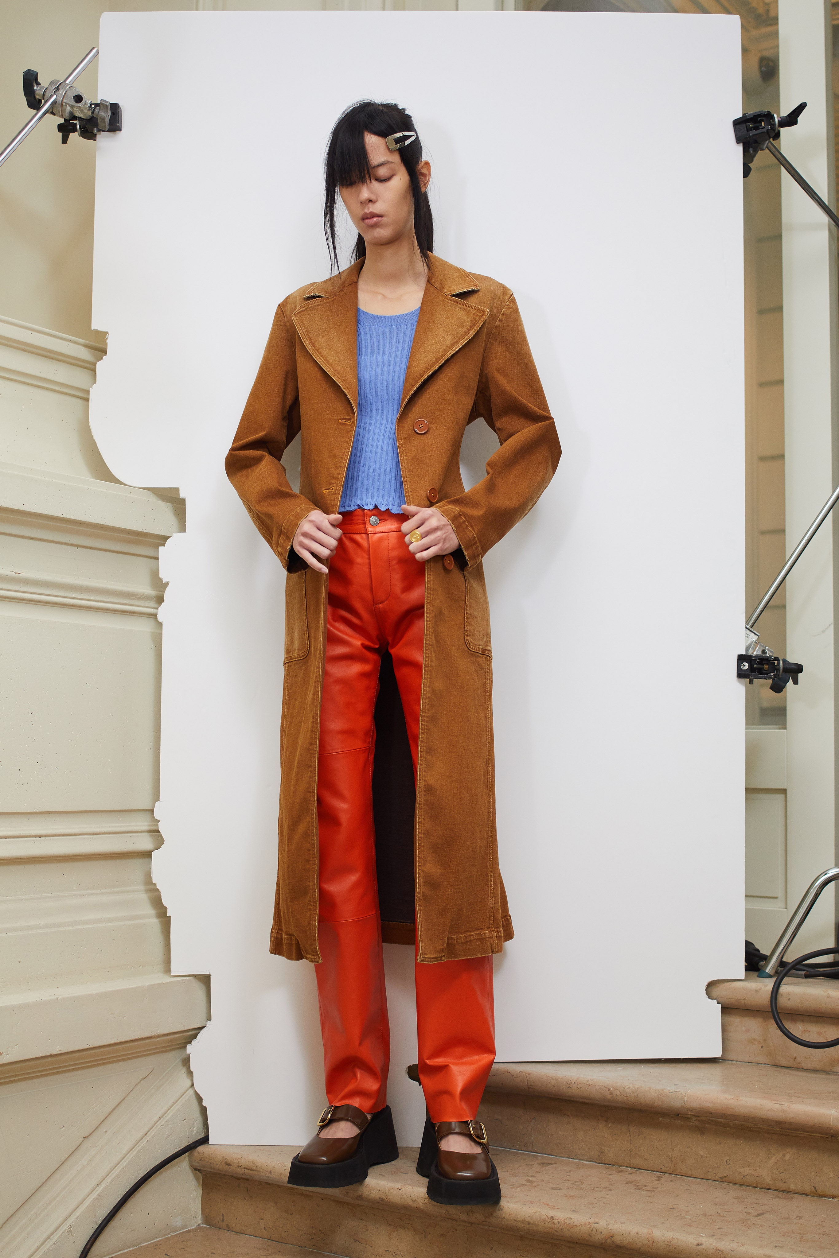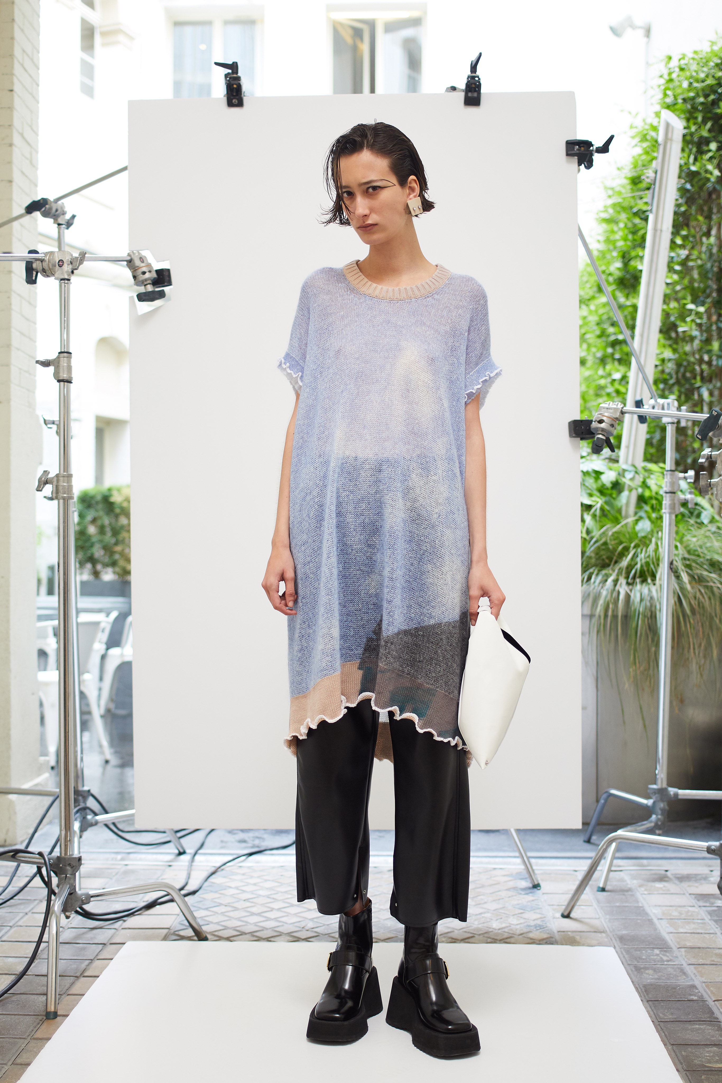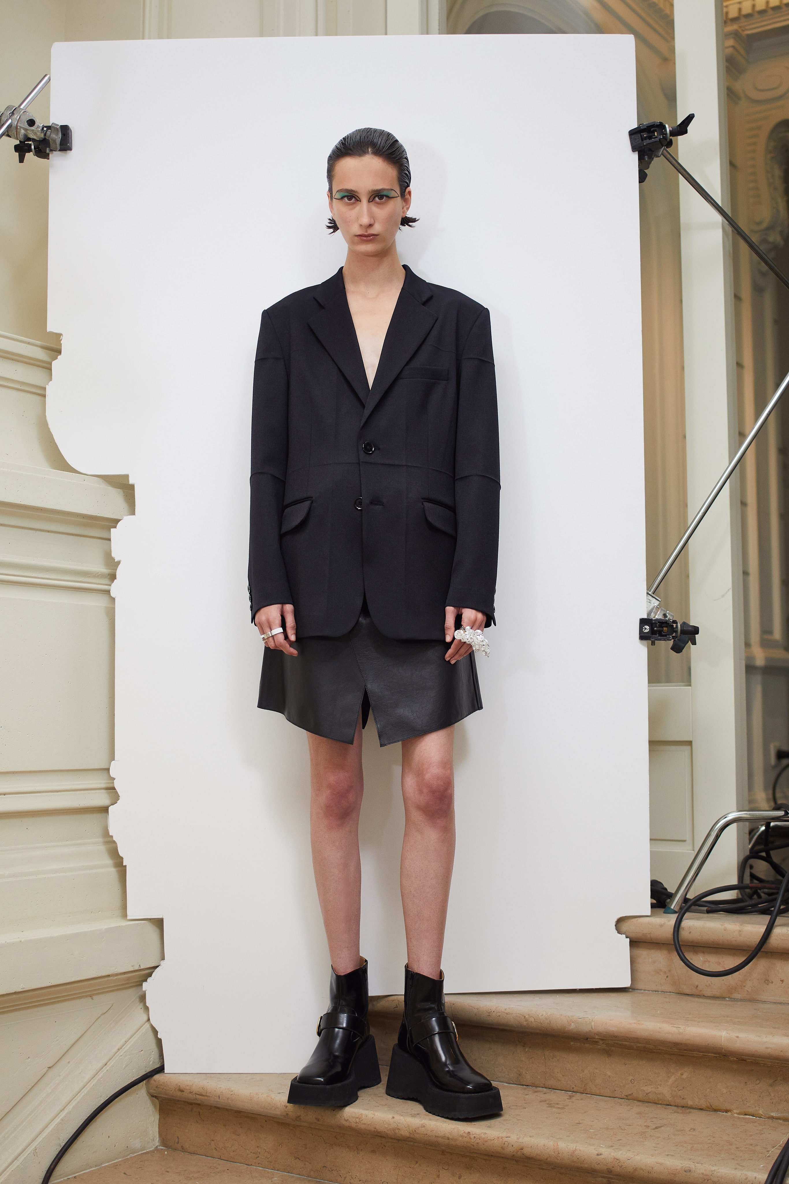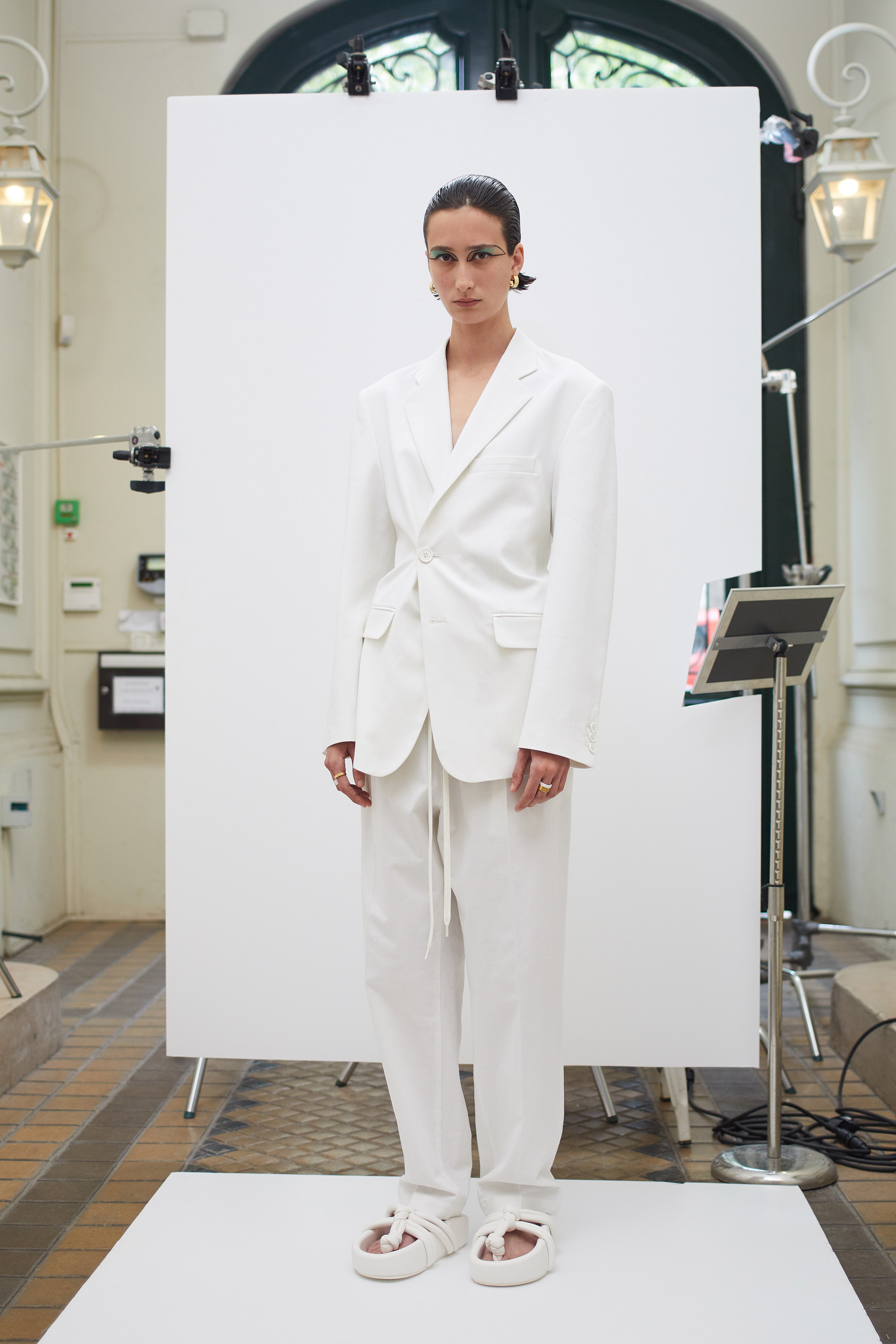 Команда модного дома неизменно бережно соблюдает традиции и наследие Мартина Маржелы, и из сезона в сезон поклонники бренда получают новую порцию авангардных и конструктивистских образов. Для будущего круизного сезона парадигму решили изменить и посвятили коллекцию французским сюрреалистам. Это не составляет резкого контраста с творчеством Маржелы, однако становится свежим штрихом в устоявшемся мудборде бренда. Так, источником вдохновения для команды стала игра Exquis Cadavres, которую придумали в 1910-20-х художники Андре Бретон и Марсель Дюшан (а увлекался этим даже Сальвадор Дали). Игра заключалась в том, чтобы собрать по частям образ, рисуя по очереди линии и заворачивая листок, чтобы передать соседу. Так, образы коллекции напоминают сконструированные таким способом фигуры: наслоение одежды — рубашек поверх водолазок, асимметричных юбок и архитектурных пиджаков, кожаных жилетов, ярких брюк и топов с рукавами от рубашек. Ироничную элегантность коллекции сообщает и "перевернутый" топ с лифом и бретелями, расположенными на бедрах.