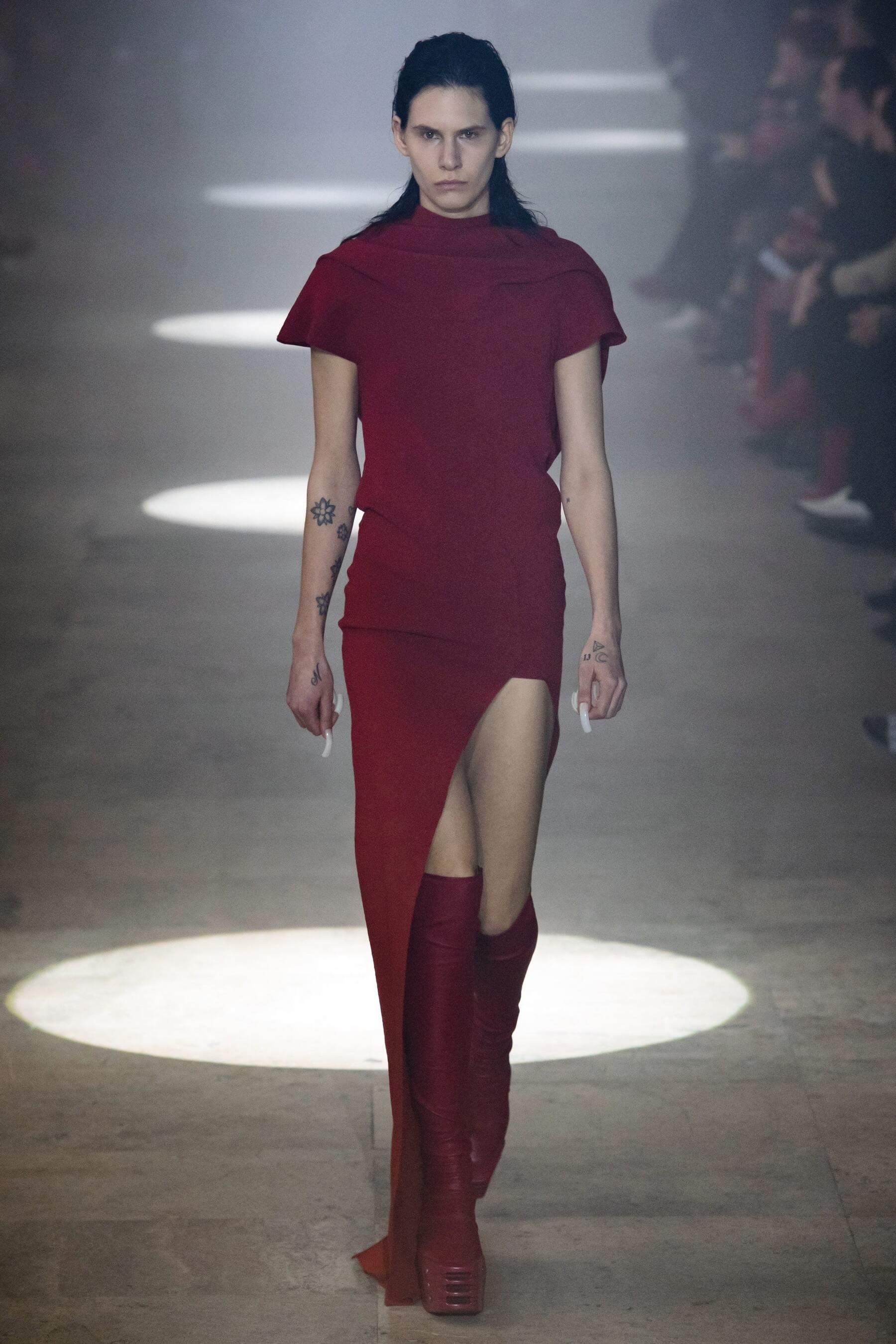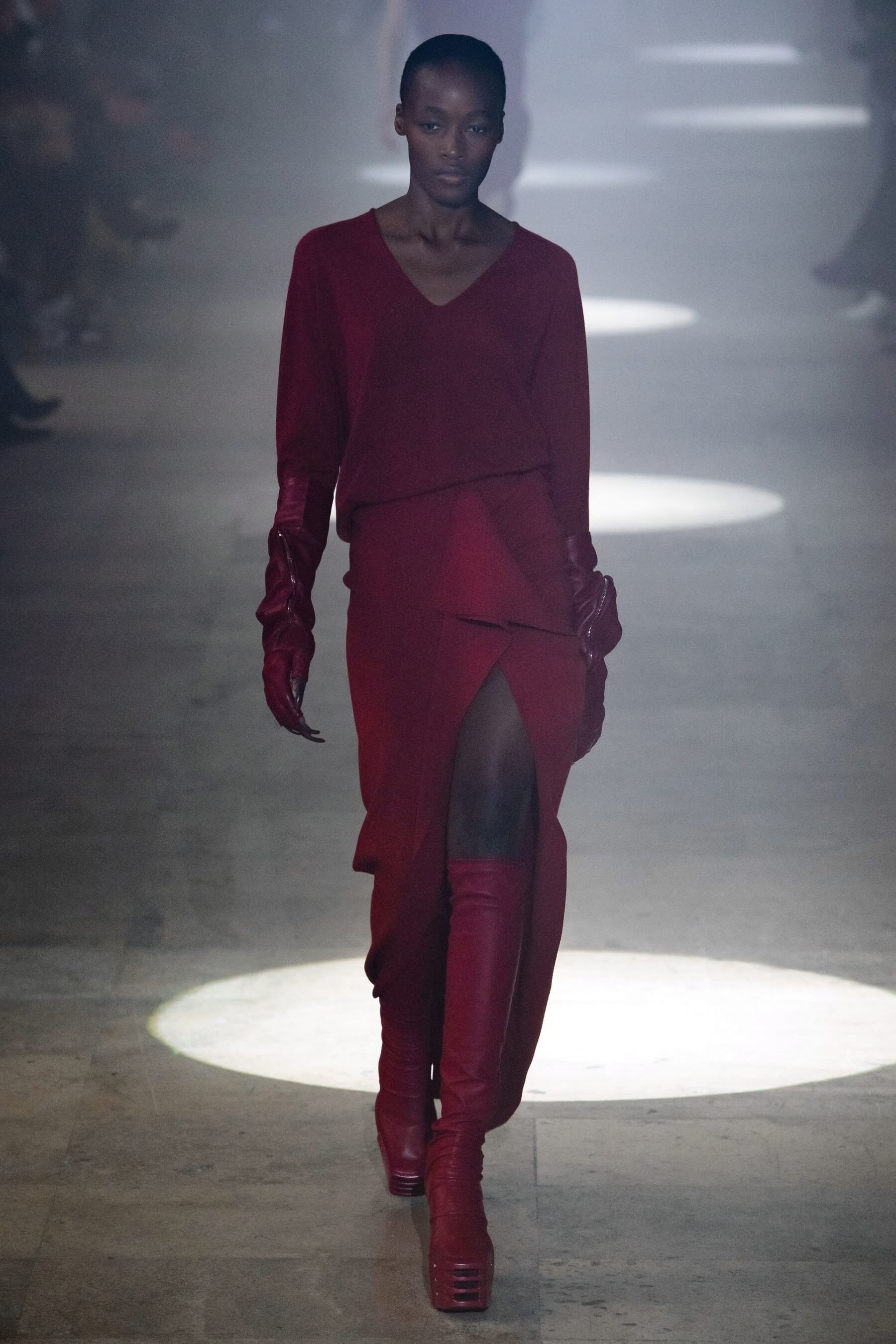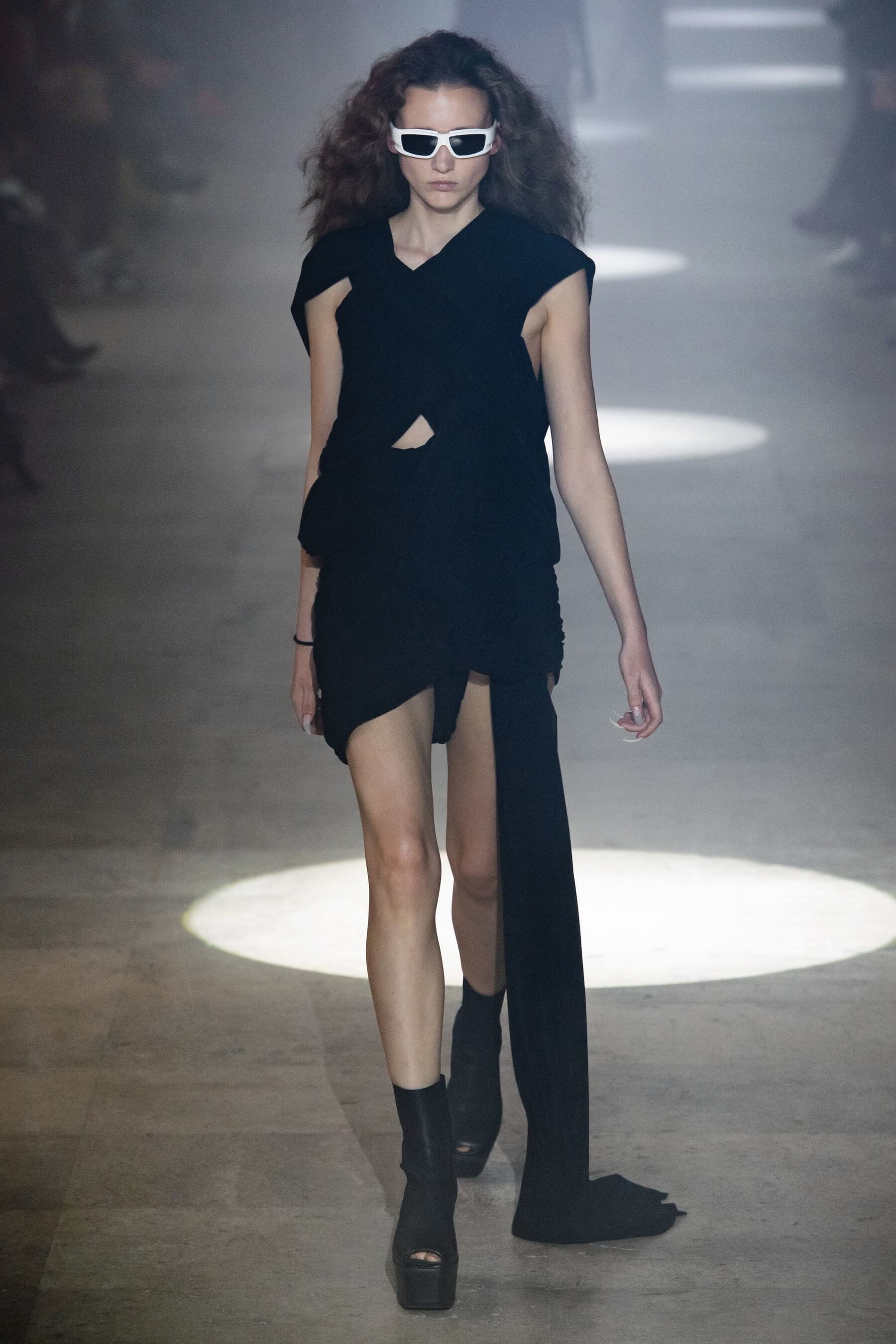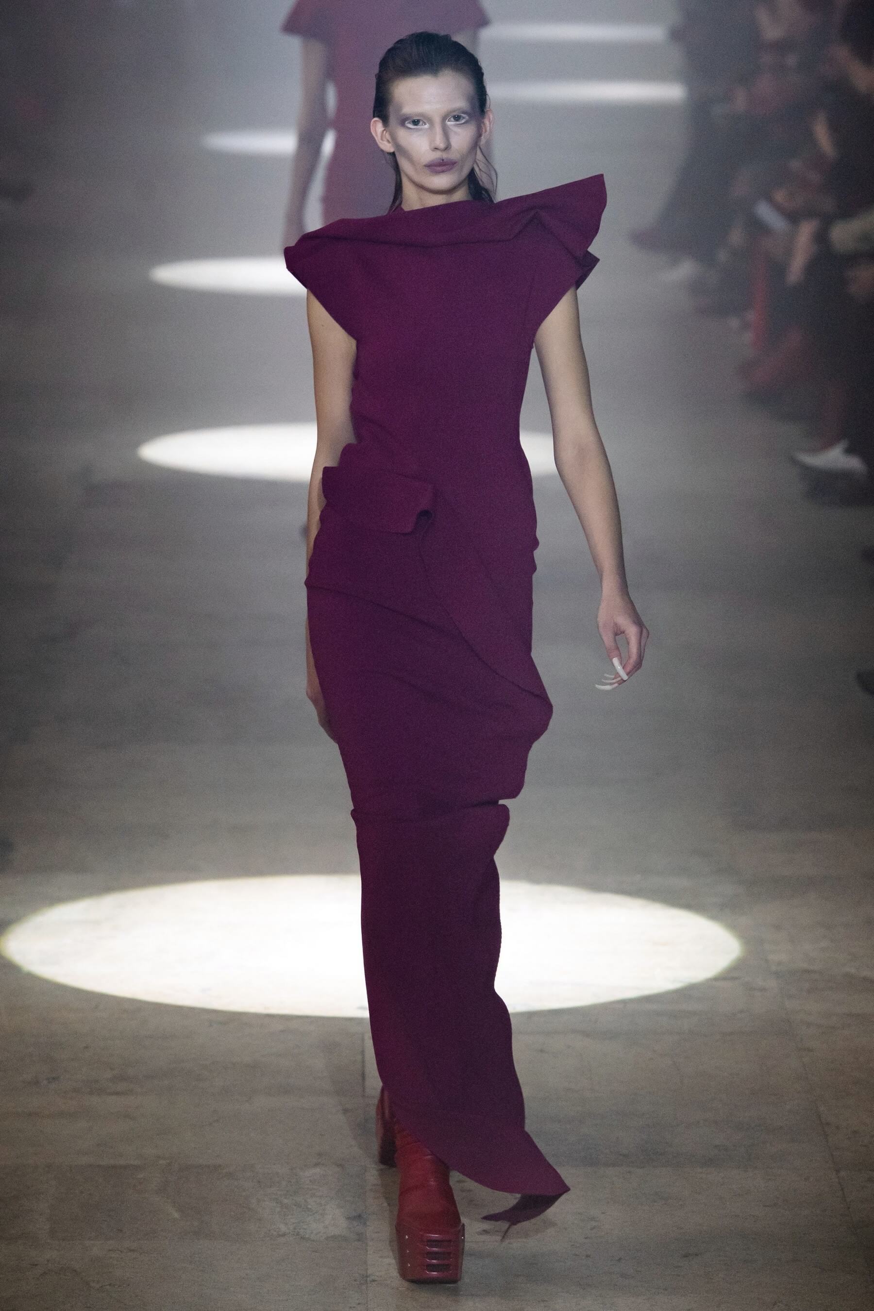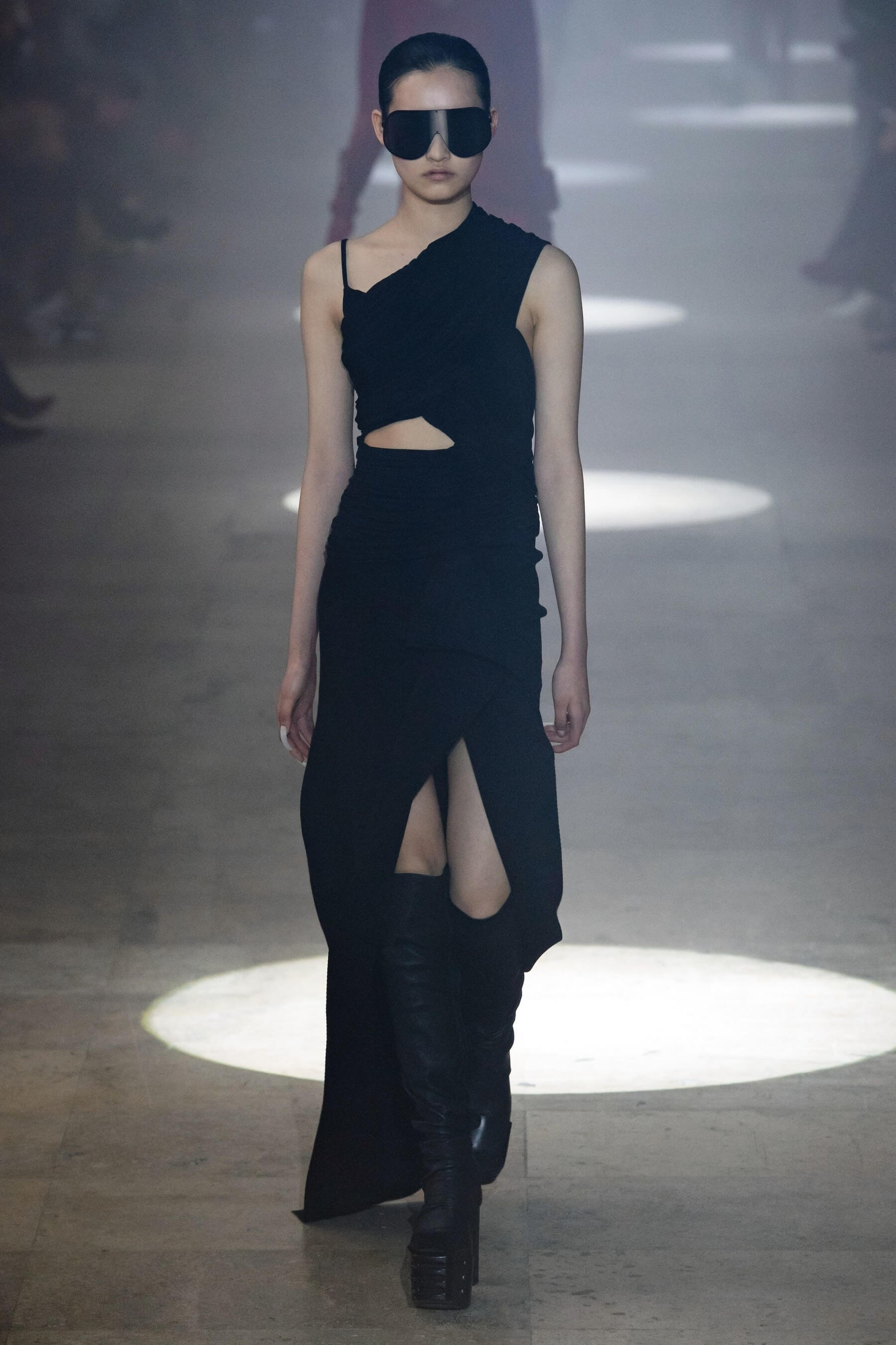 Король гротеска Рик Оуэнс показал новую коллекцию, в которую вошли лаконичные бомберы, пальто и брюки с накладными карманами, кожаные комбинезоны, драпированные платья и шубы с большими плечами.