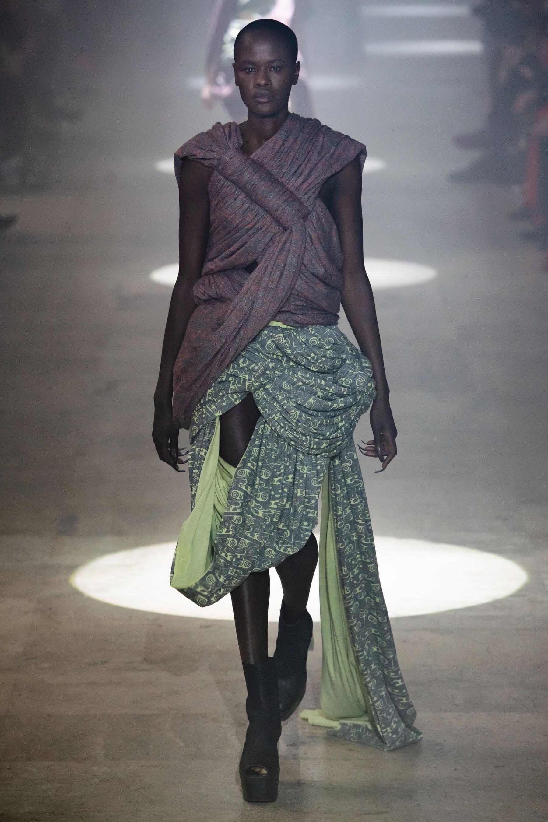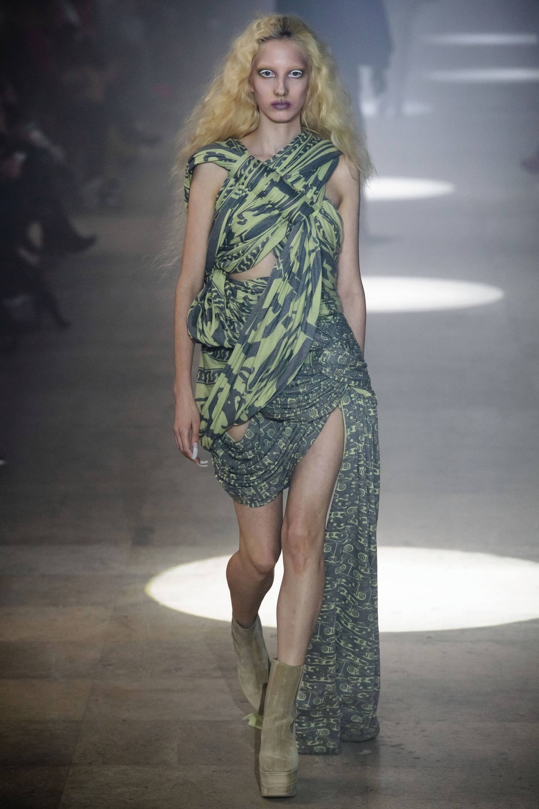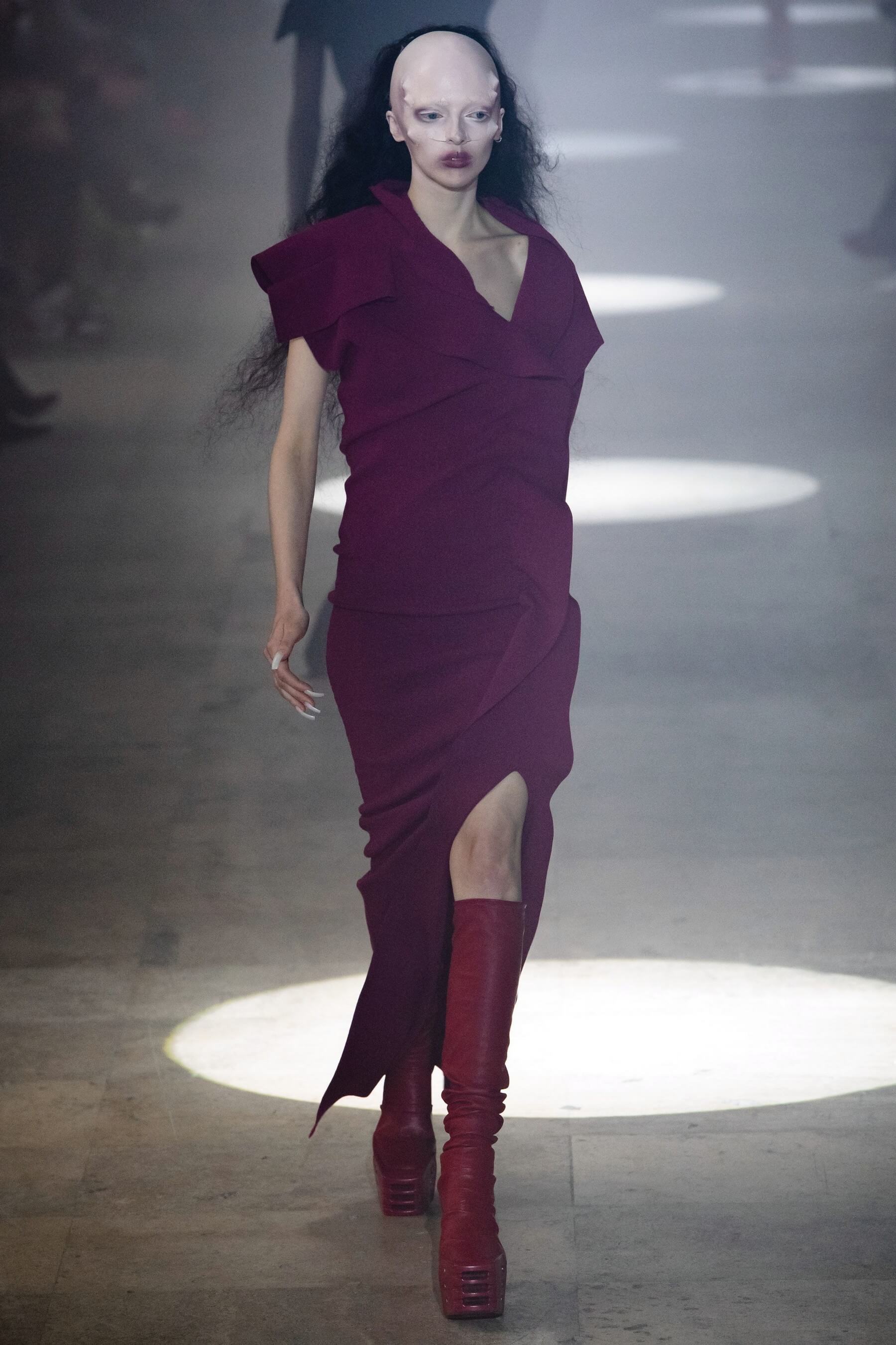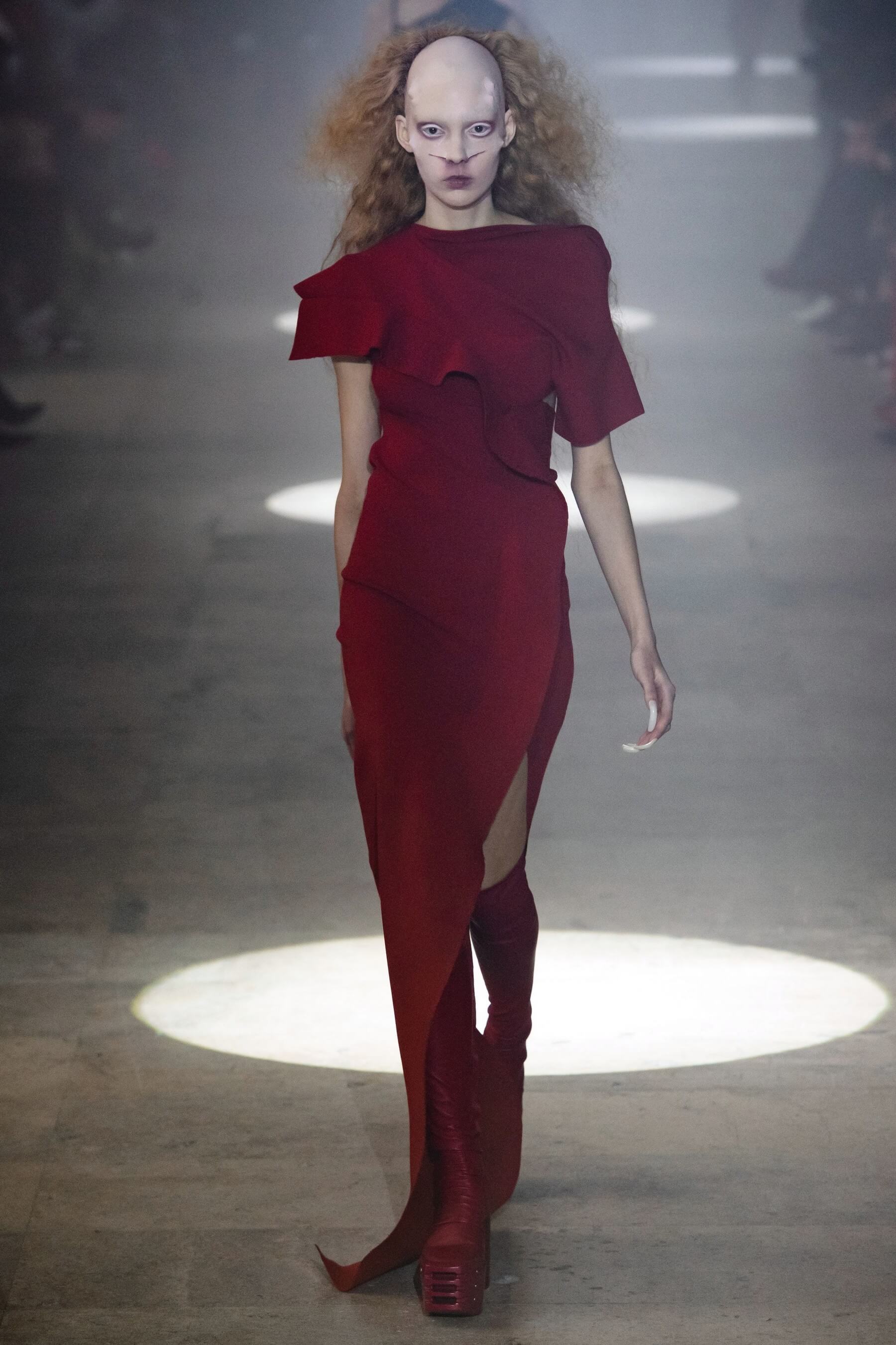 Сдержанность коллекции с лихвой компенсировали образы моделей — макабрический макияж явно позаимствован у эпатажной инстаграм-модели Salvia, которая использует свое тело для создания отталкивающих и завораживающих образов — гомункулов и суккубов. На глазах у моделей были черные склеральные линзы или контрастные футуристичные очки. Некоторые образы, как, например алое платье с косой оборкой, были по-своему романтичны и чувственны, а иные напоминали драпировки античных статуй.