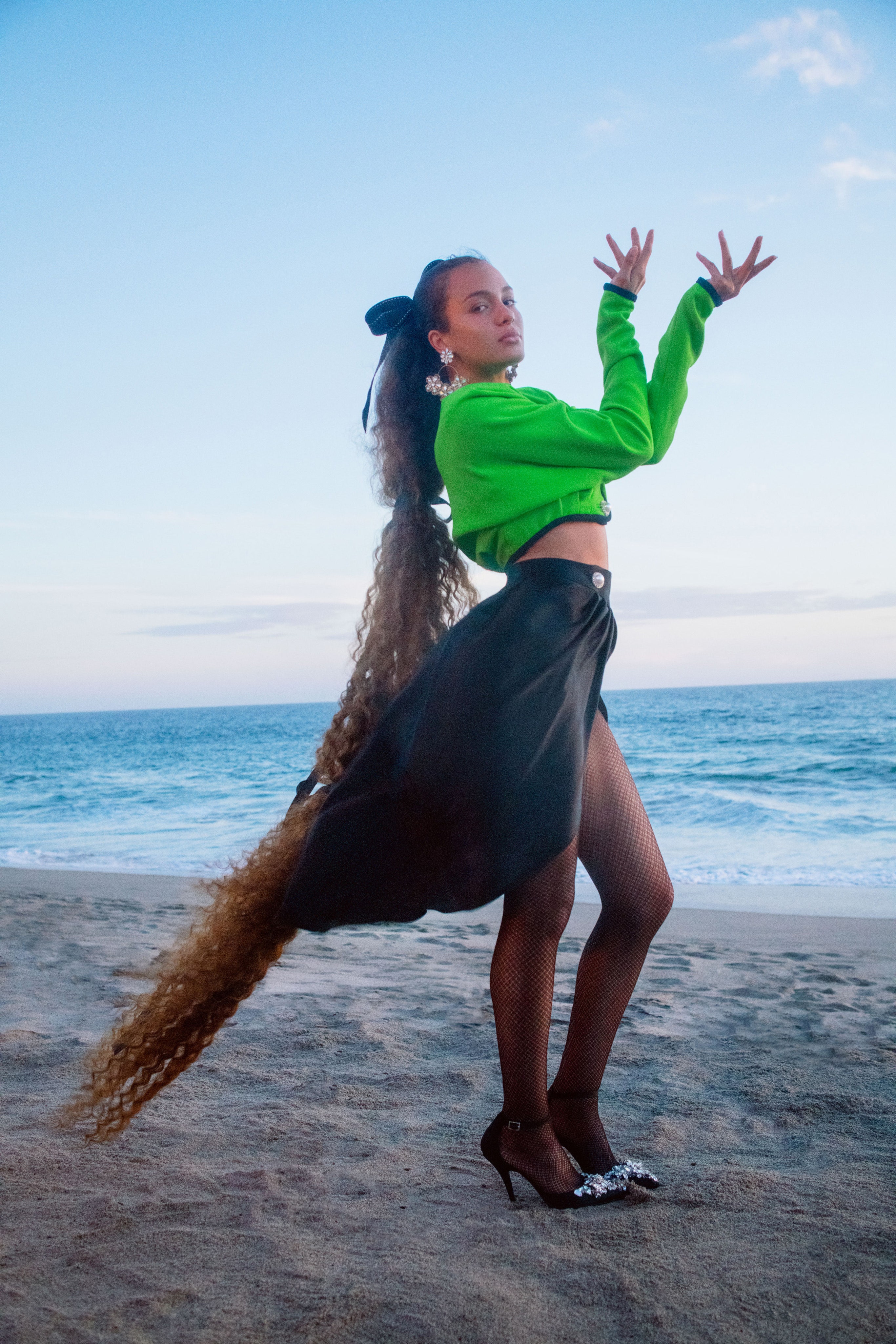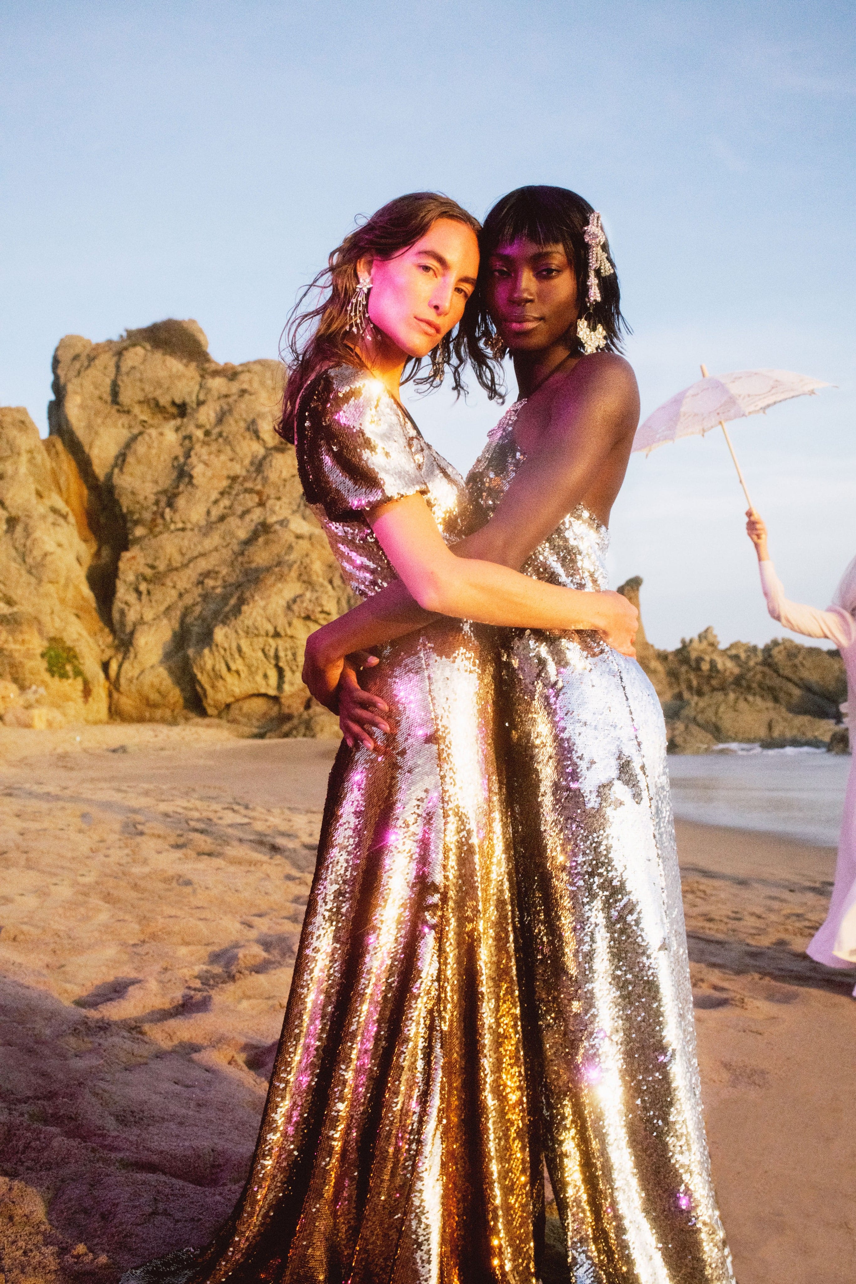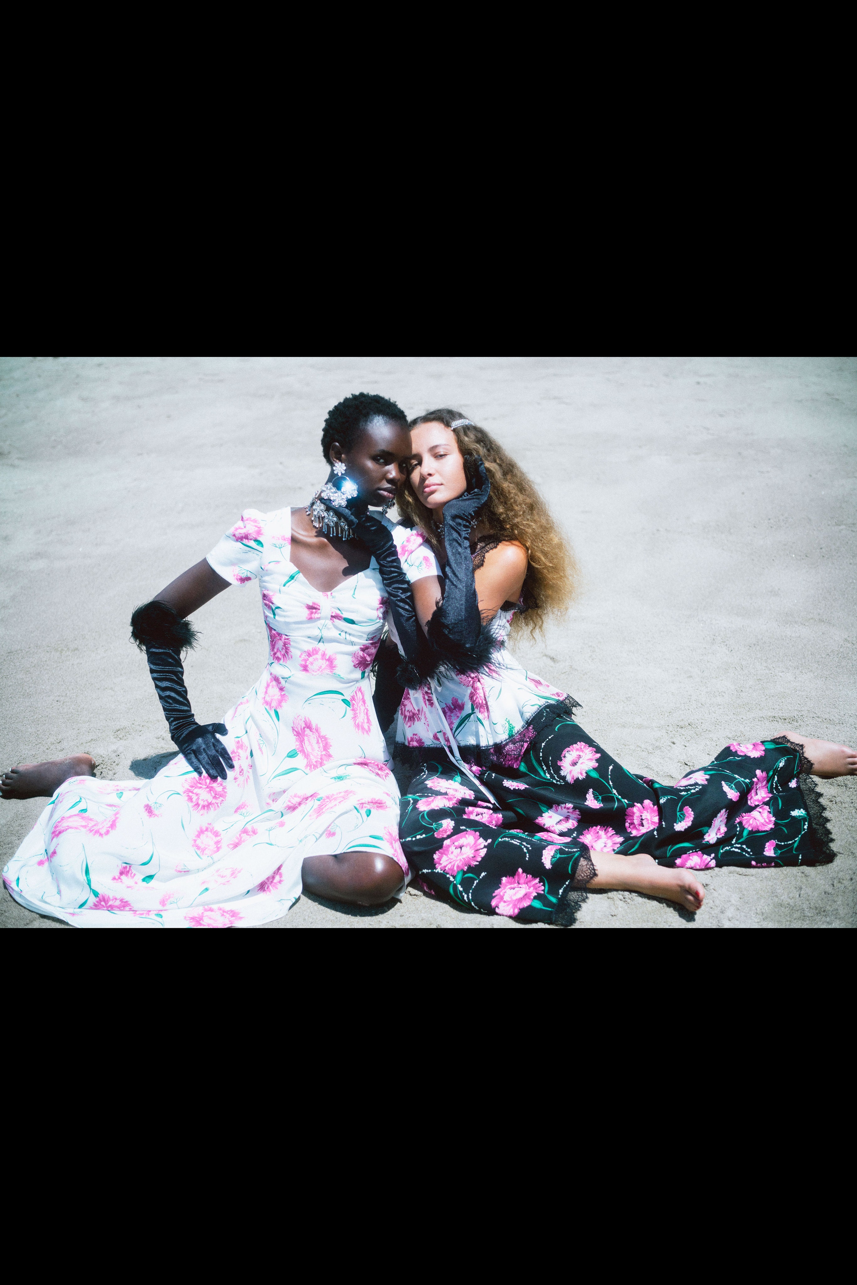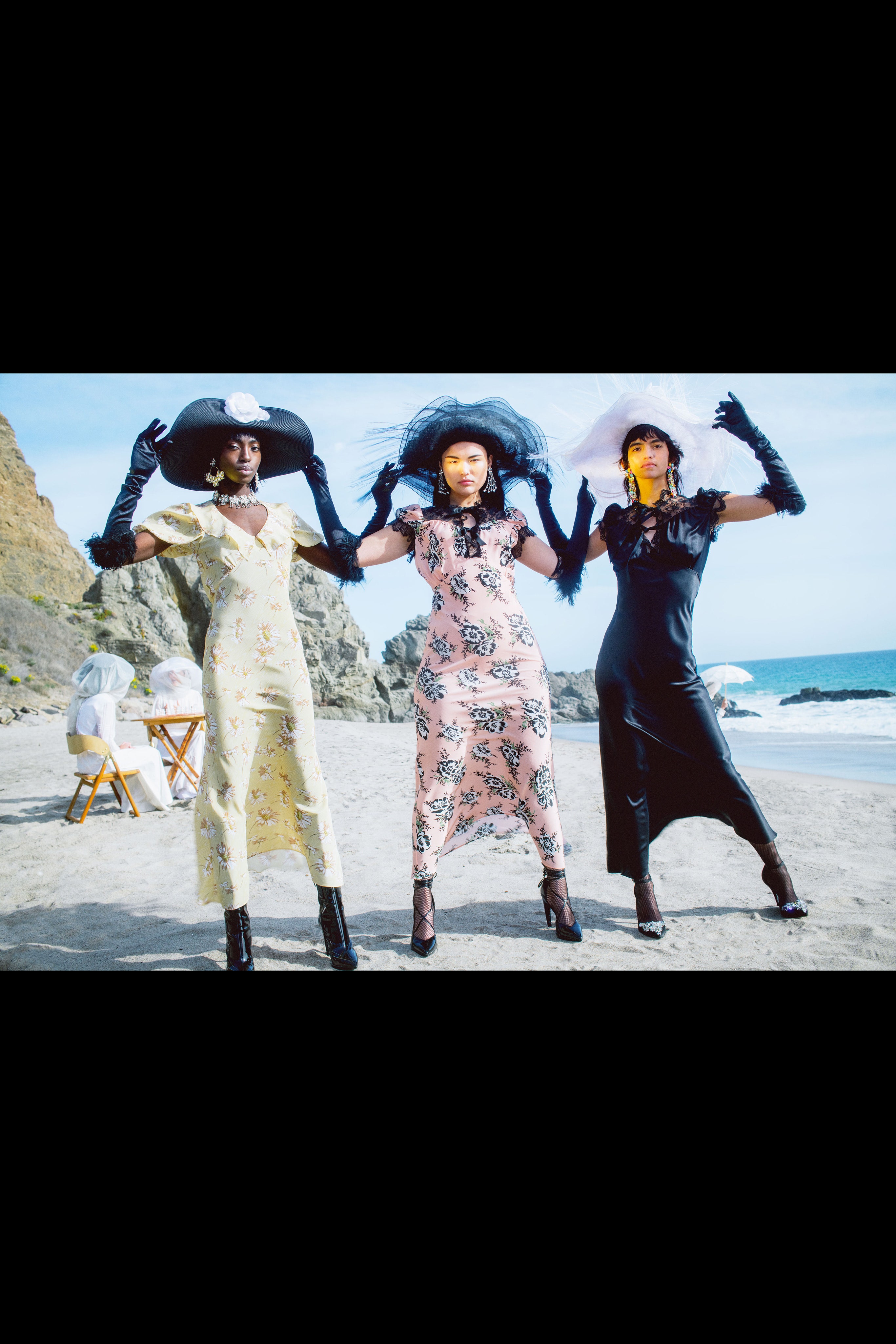 Так, эстетика бренда осталась всё такой же причудливой, но абстрактный её символизм приобрел большую денотативность — в коллекции будущей осени есть хорошо знакомые модникам со времен 90-х платья миди на бретелях, украшения в виде мультипликационных животных и узнаваемые отсылки к фильму: спортивные клубные куртки, сверкающие платья с разрезами и повседневные сарафаны в цветочный принт, а главное — актриса Алисия Сильверстоун, сыгравшая Шер Горовиц в "Бестолковых". Всегда немного декадентская эстетика Rodarte в новом сезоне более легкомысленна и игрива, и это то, что нужно всем модникам после целого года пижам и пледов.