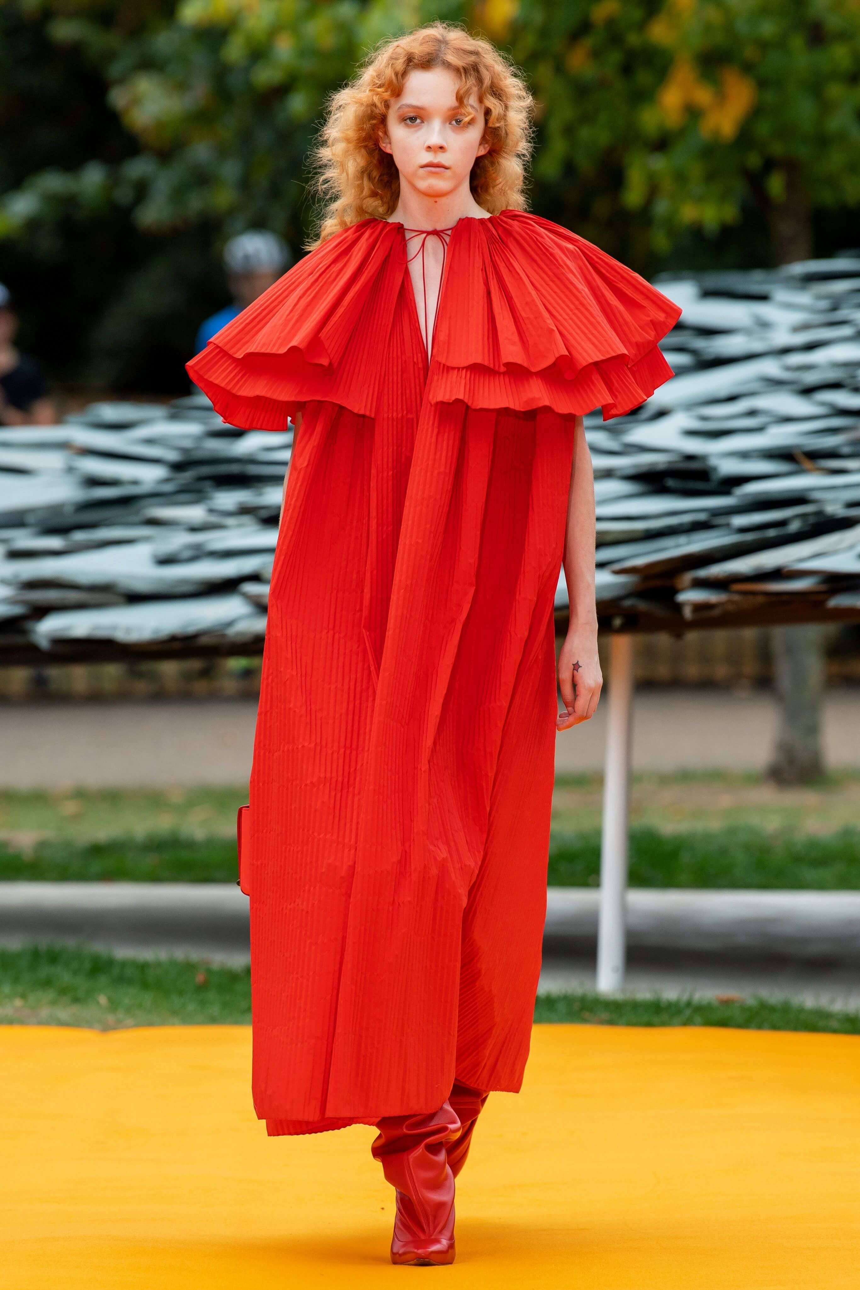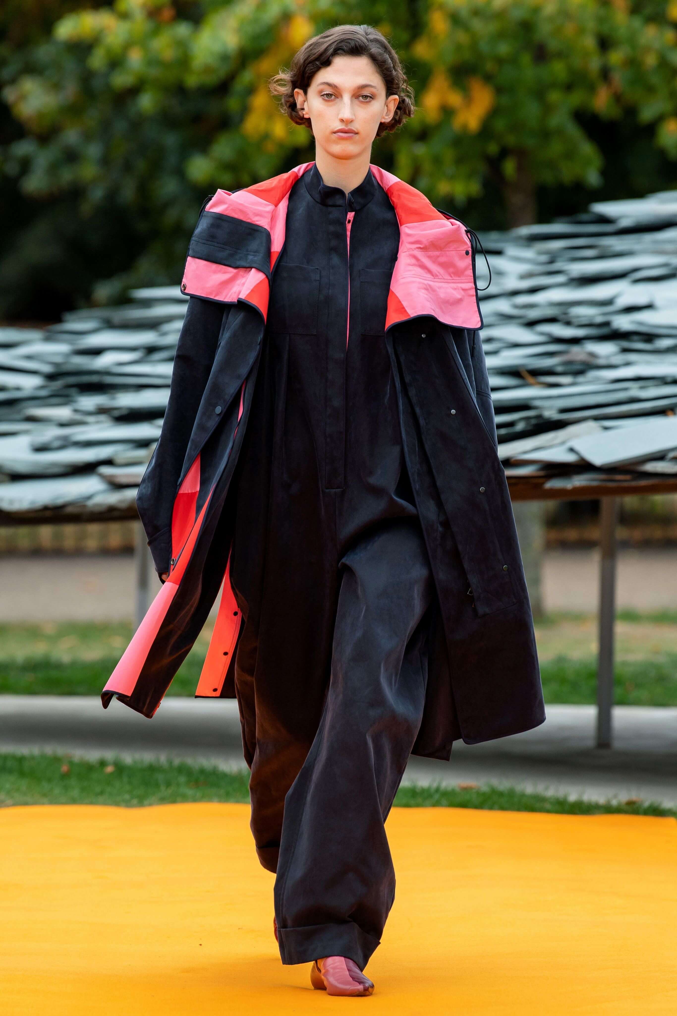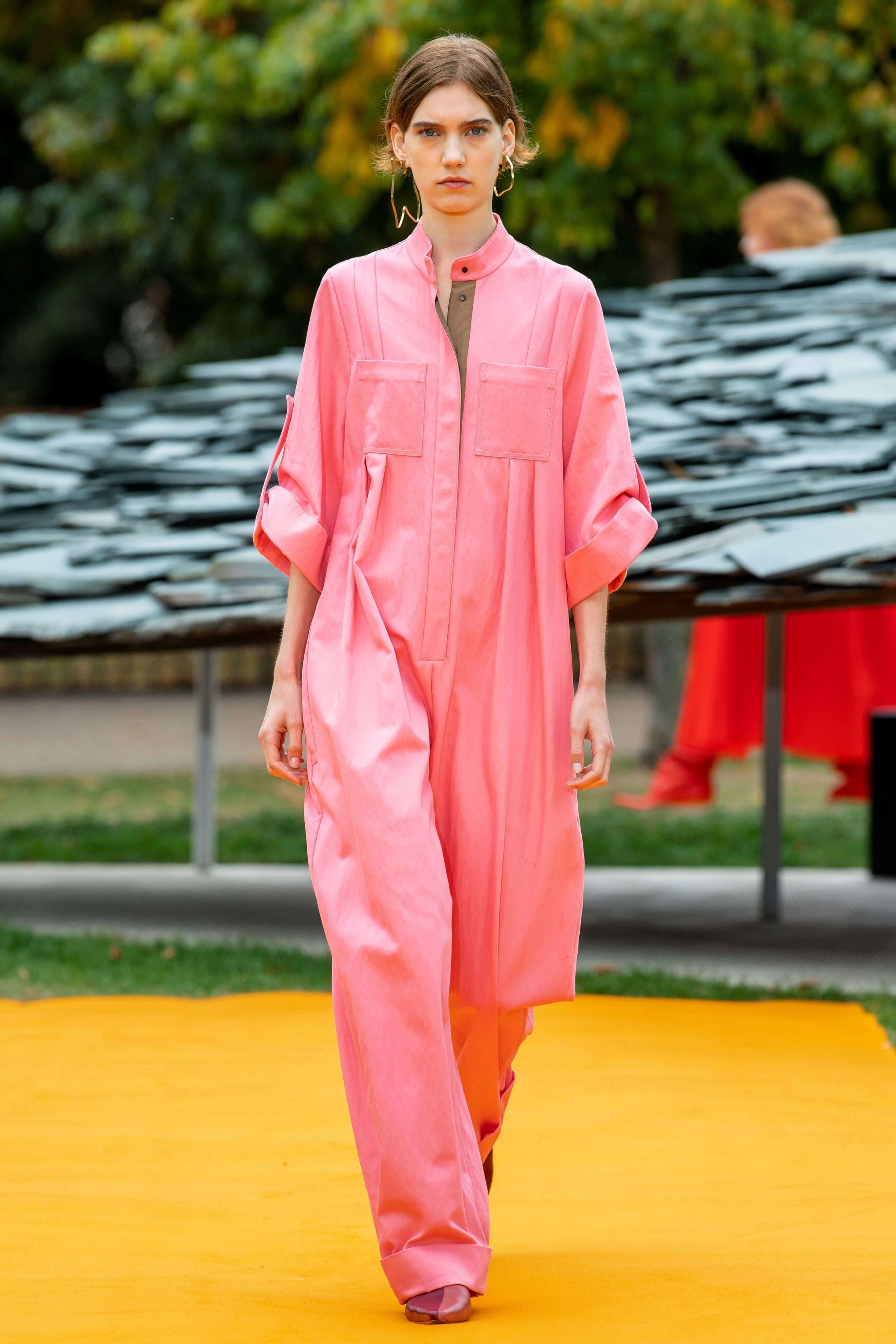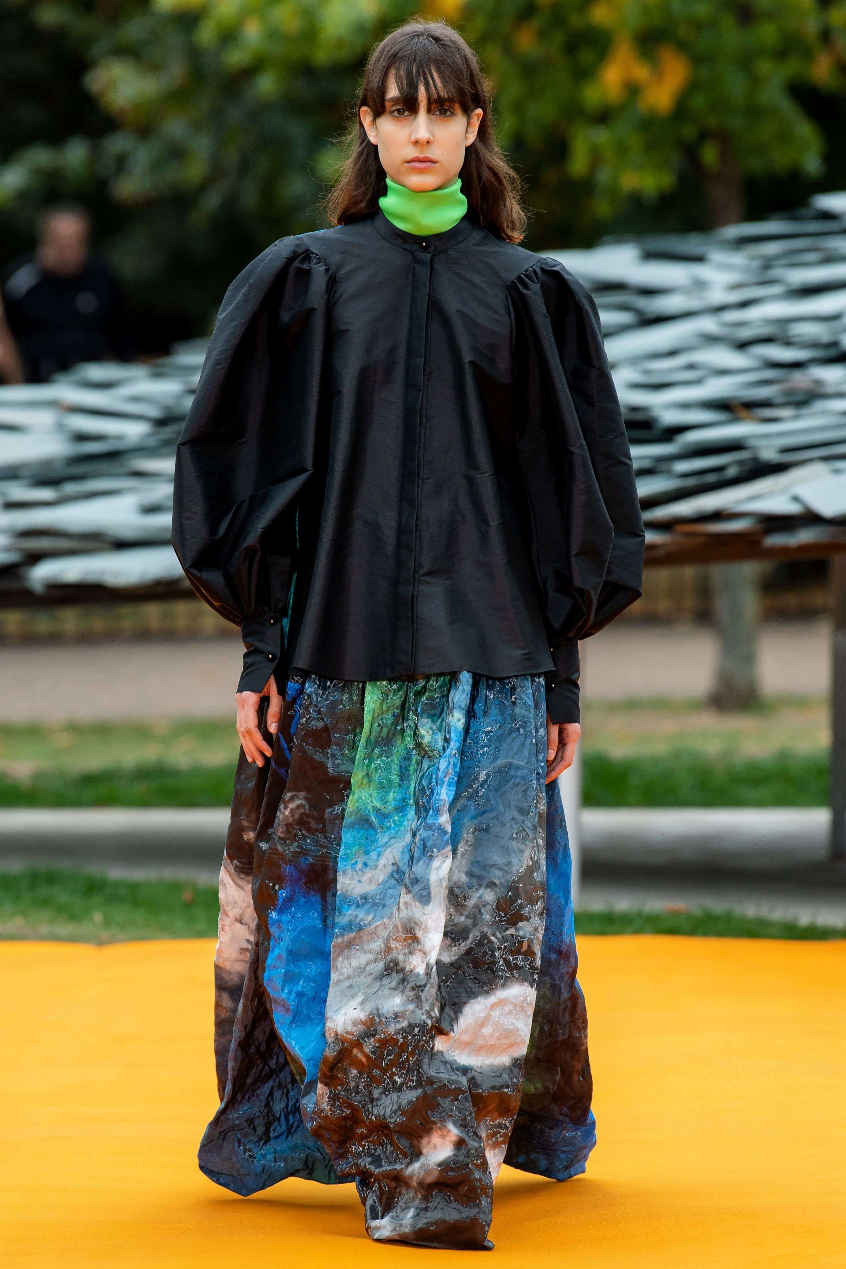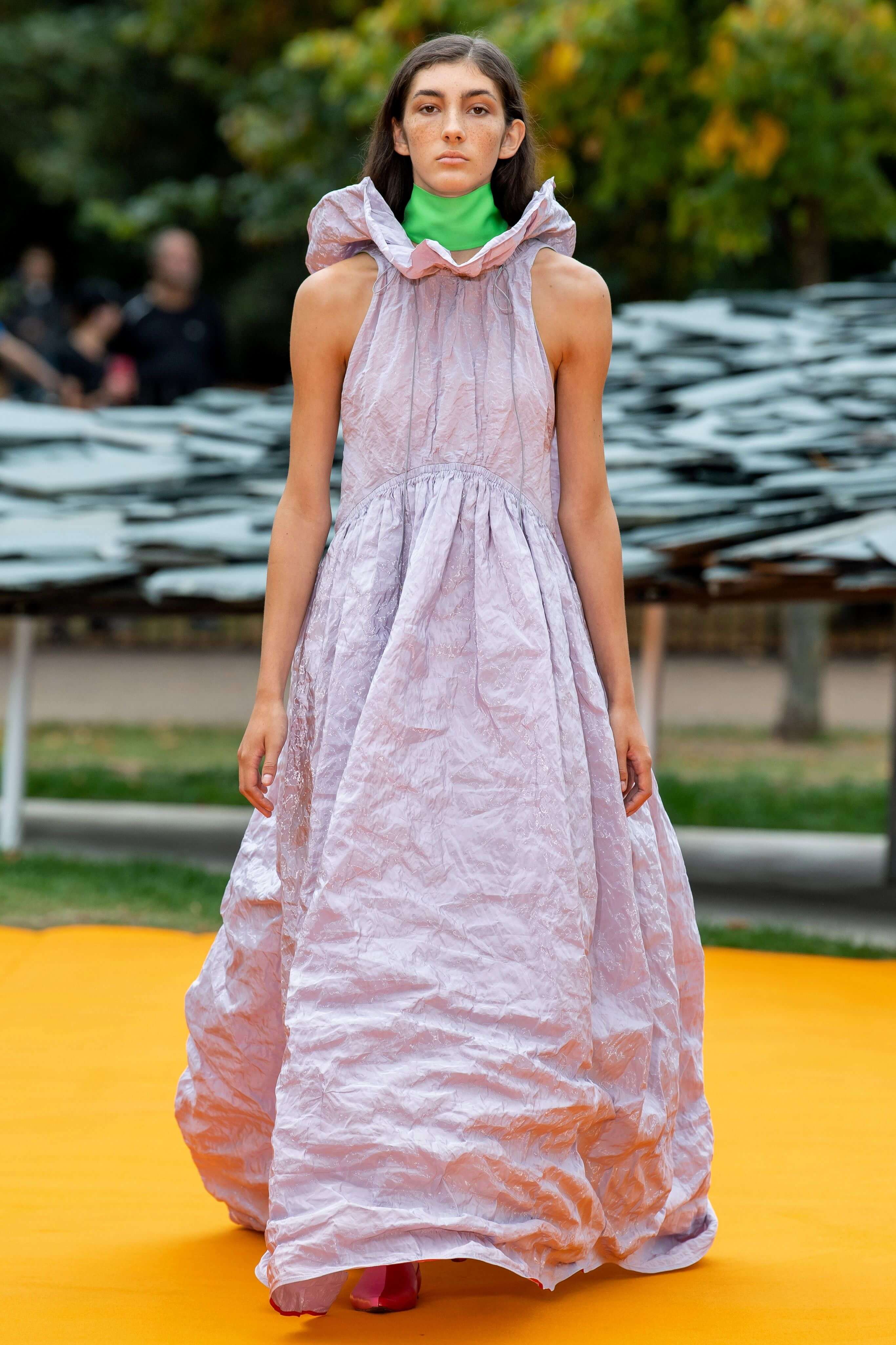 Дизайнер Роксанда Илинчич представила новую коллекцию, в которой есть одежда на все случаи жизни: изящные платья для вечеринок и струящиеся наряды для торжественных приёмов, благородные комплекты для светских выходов или деловых забот, требующих безупречного имиджа, а еще немного гротескные, но элегантные платья гиперболизированных форм, покрытые принтами, созданными художницей Мэри Уэзерфорд. Одним из источников вдохновения для дизайнера стали Парящие острова в Бискайском заливе — инсталляция художников Явашева Христо и его супруги Жанны-Клод. Искусственные архипелаги залива были покрыты розовой материей, оммаж Роксанды Илинчич — ярко-розовые платья и накидки. В коллекции также есть уютные серые костюмы из трикотажа, в которые хочется укутаться до самой макушки, эффектные, будто сделанные из мятой бумаги, платья макси и изысканные пальто чистых, зауженных силуэтов.