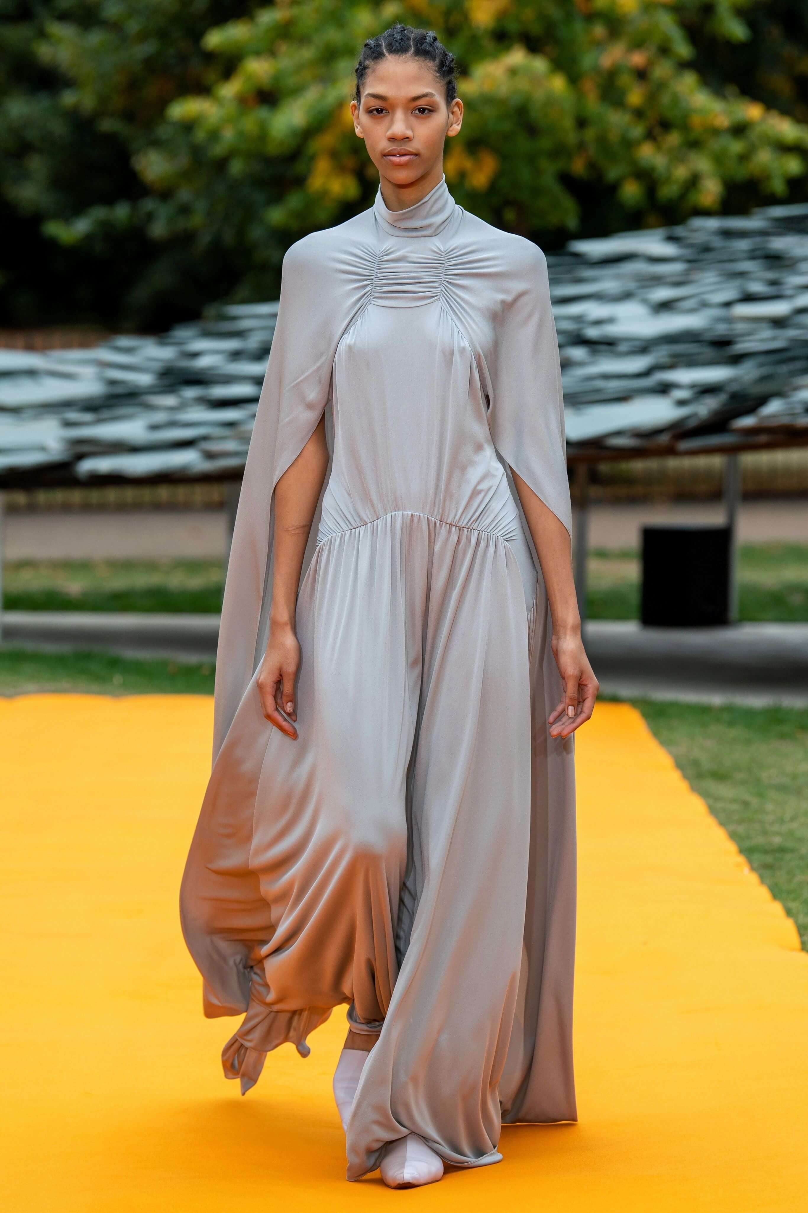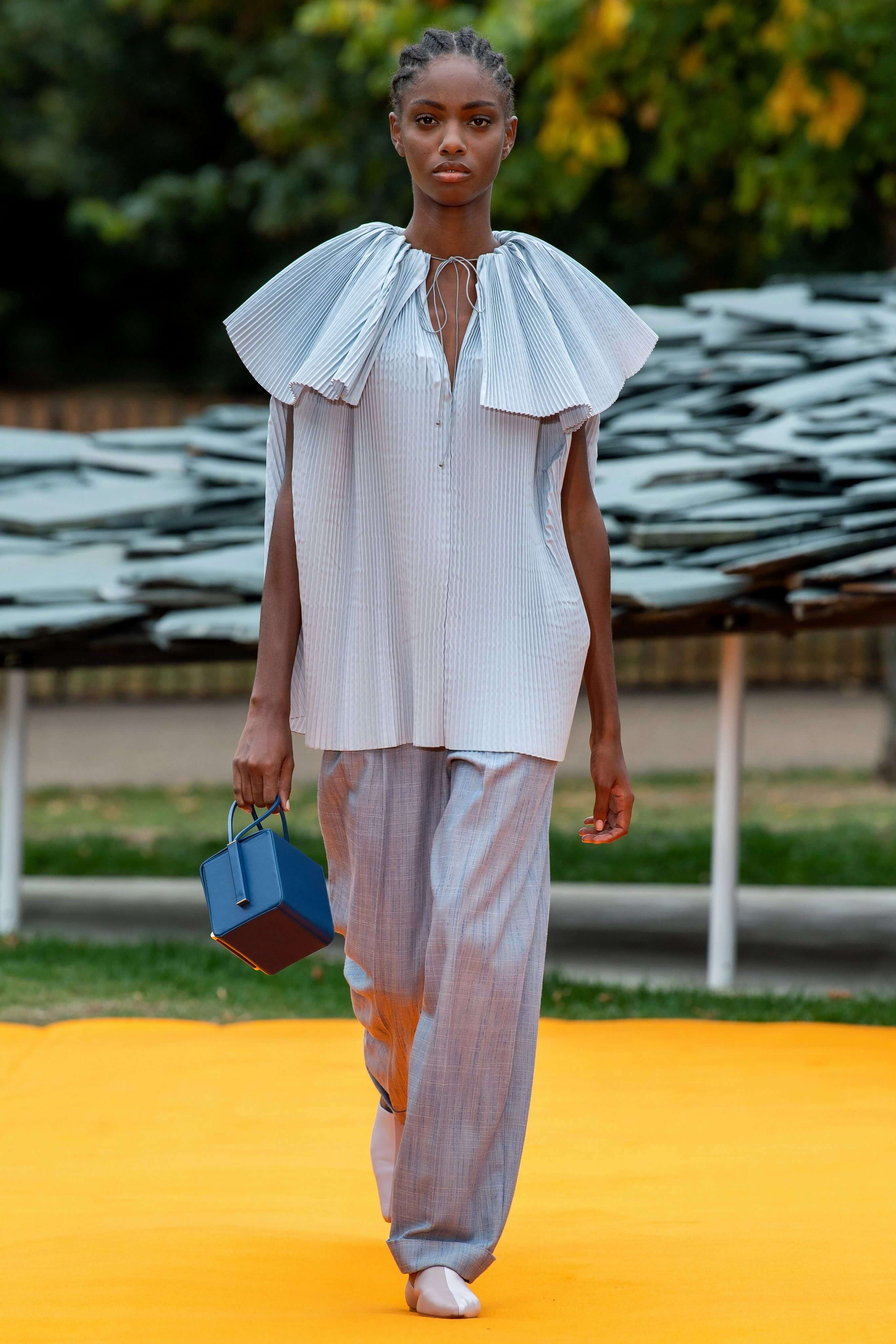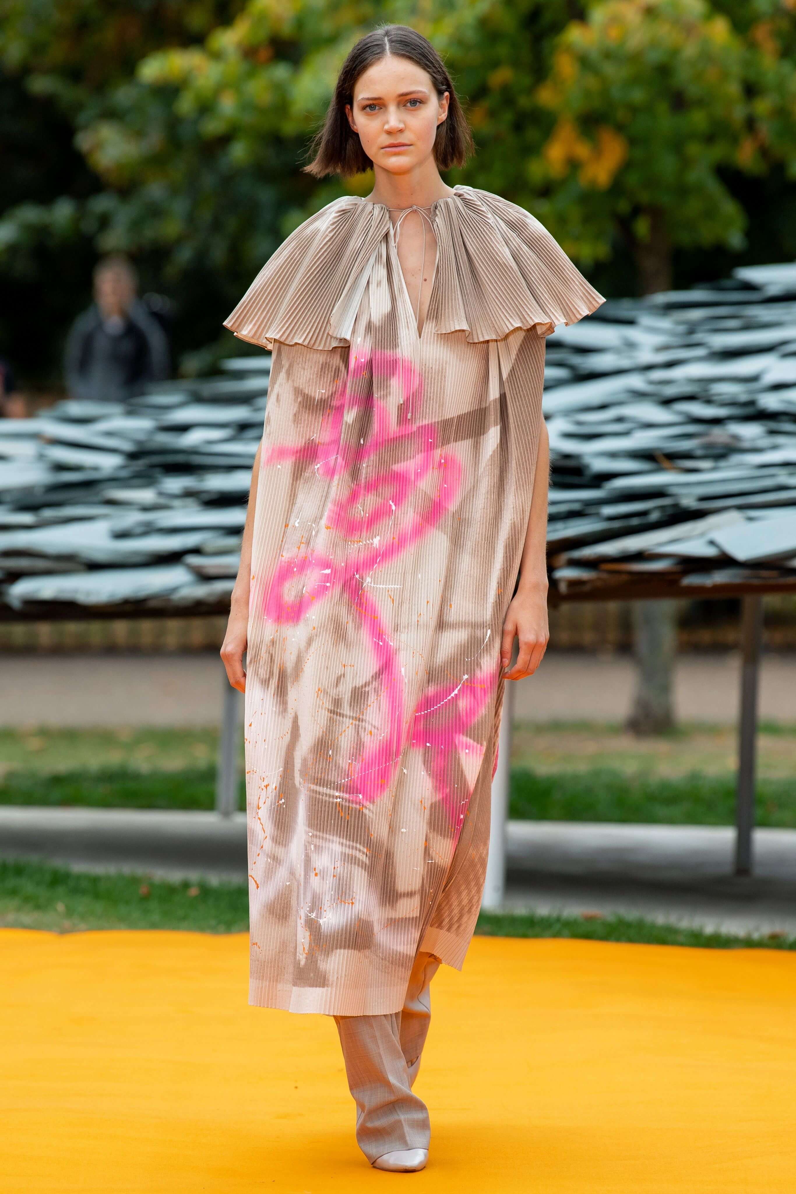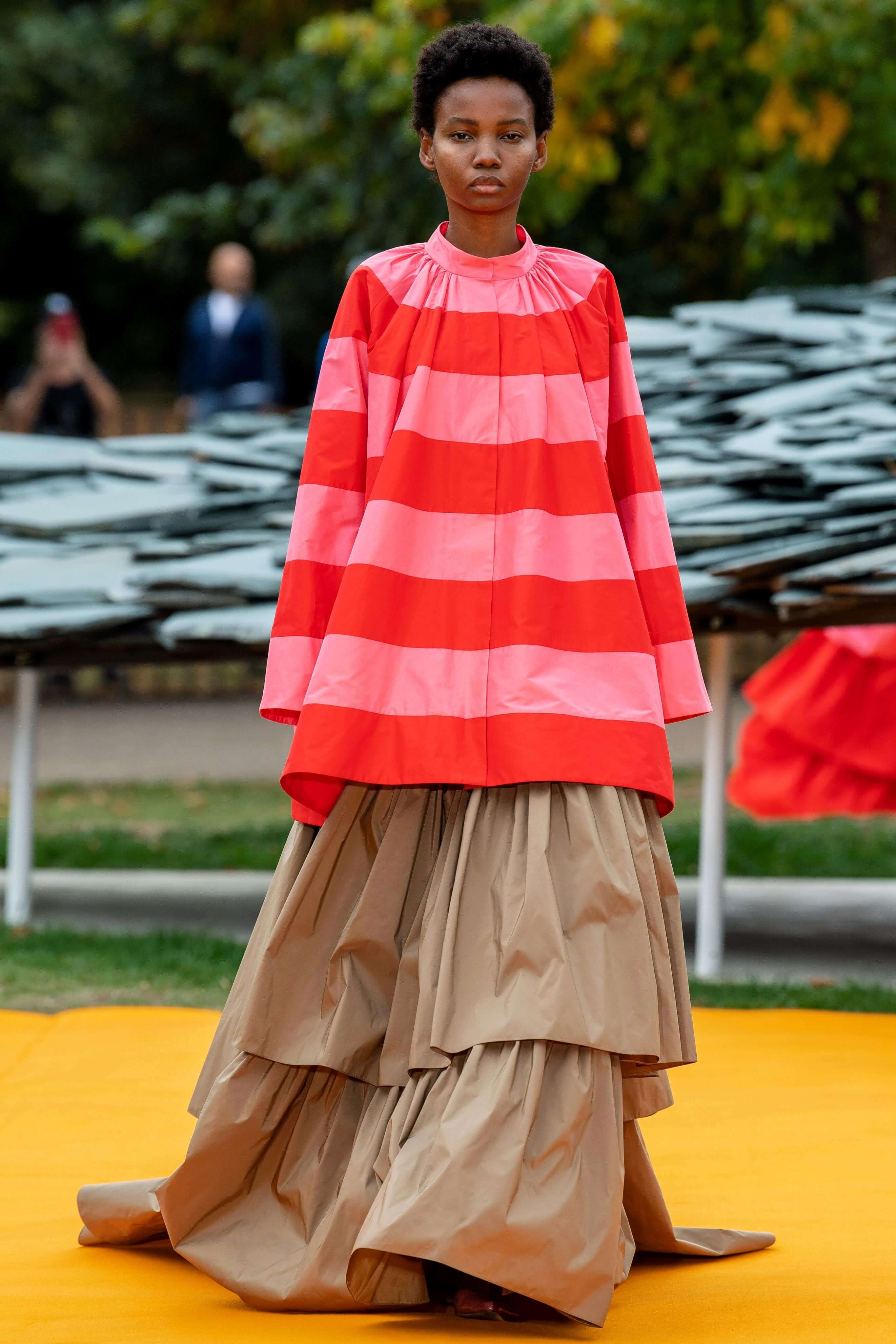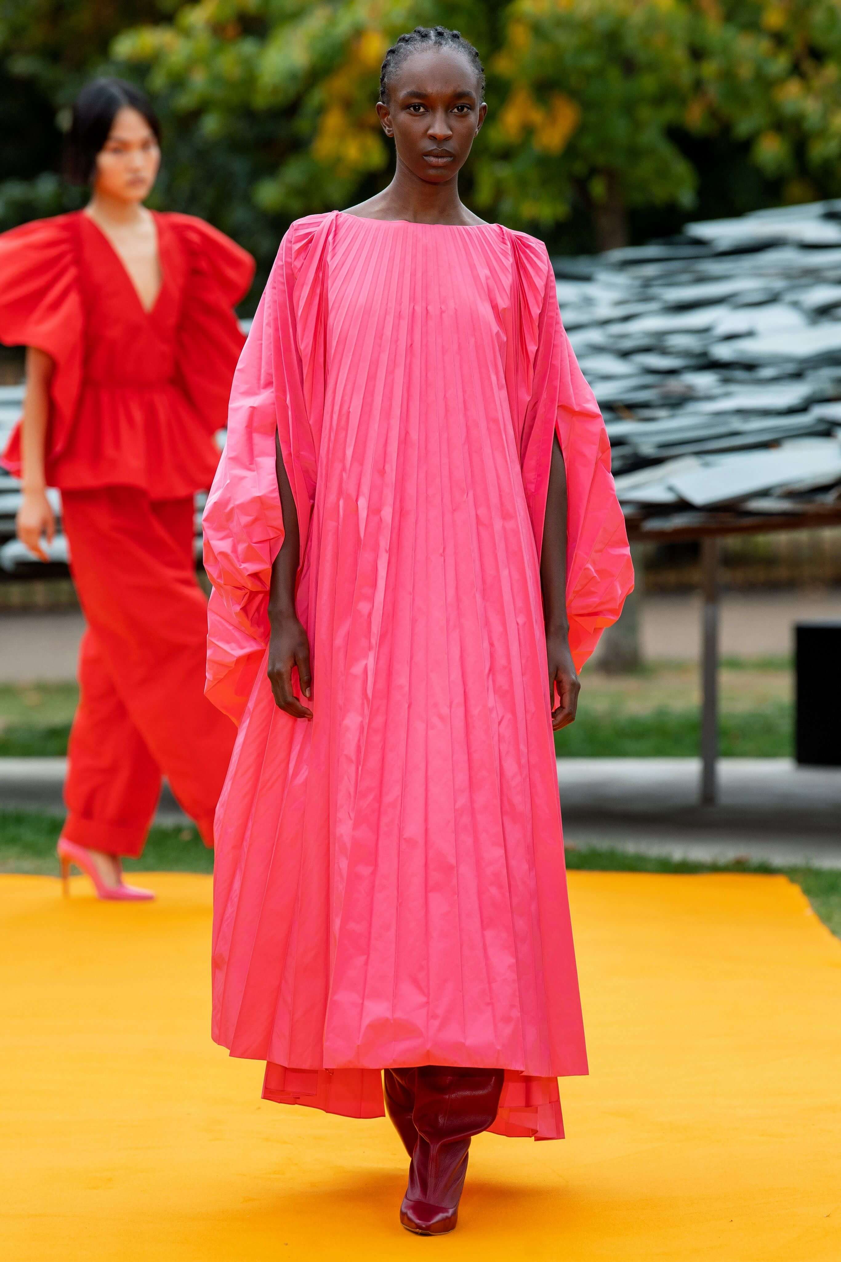 Дизайнер Роксанда Илинчич представила новую коллекцию, в которой есть одежда на все случаи жизни: изящные платья для вечеринок и струящиеся наряды для торжественных приёмов, благородные комплекты для светских выходов или деловых забот, требующих безупречного имиджа, а еще немного гротескные, но элегантные платья гиперболизированных форм, покрытые принтами, созданными художницей Мэри Уэзерфорд. Одним из источников вдохновения для дизайнера стали Парящие острова в Бискайском заливе — инсталляция художников Явашева Христо и его супруги Жанны-Клод. Искусственные архипелаги залива были покрыты розовой материей, оммаж Роксанды Илинчич — ярко-розовые платья и накидки. В коллекции также есть уютные серые костюмы из трикотажа, в которые хочется укутаться до самой макушки, эффектные, будто сделанные из мятой бумаги, платья макси и изысканные пальто чистых, зауженных силуэтов.
