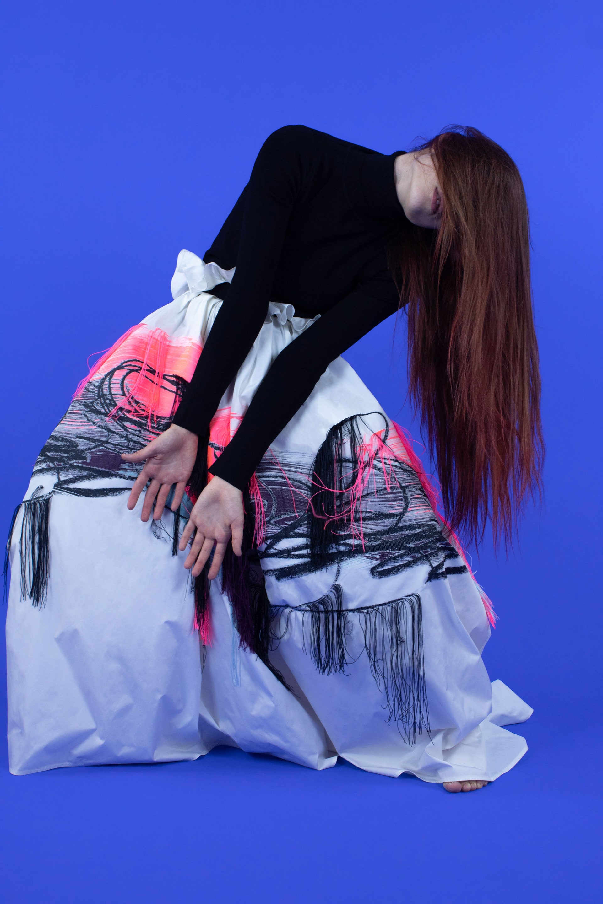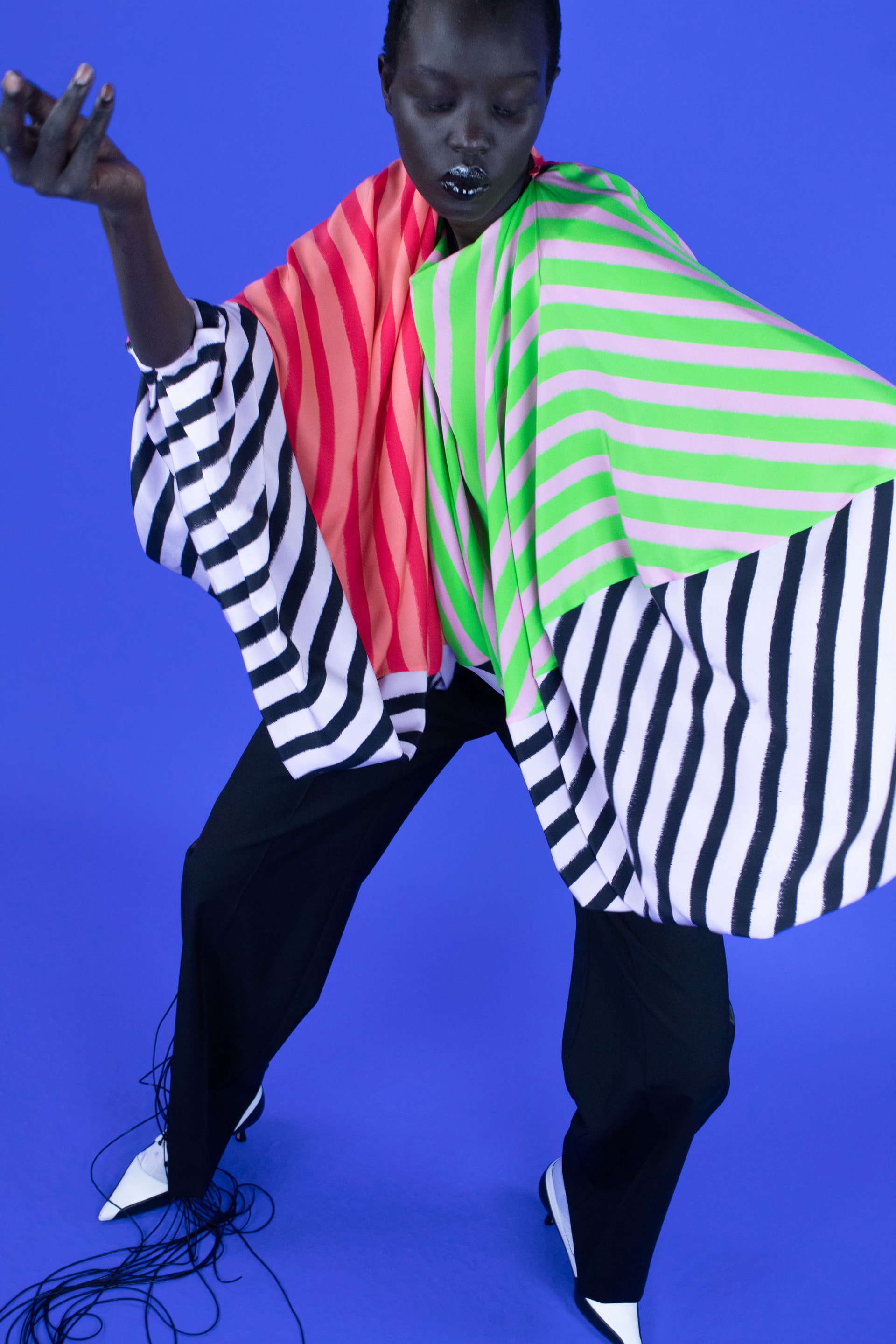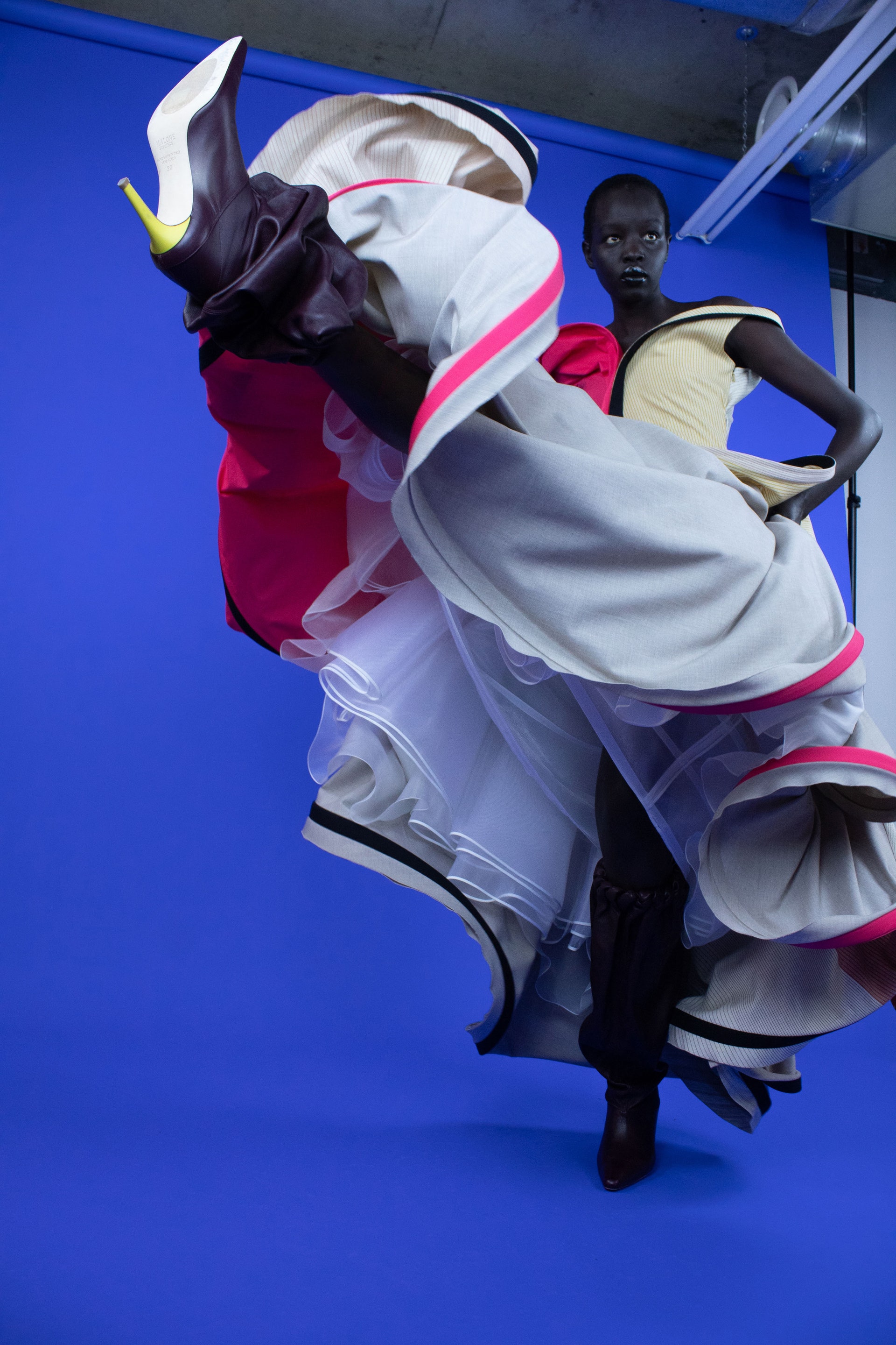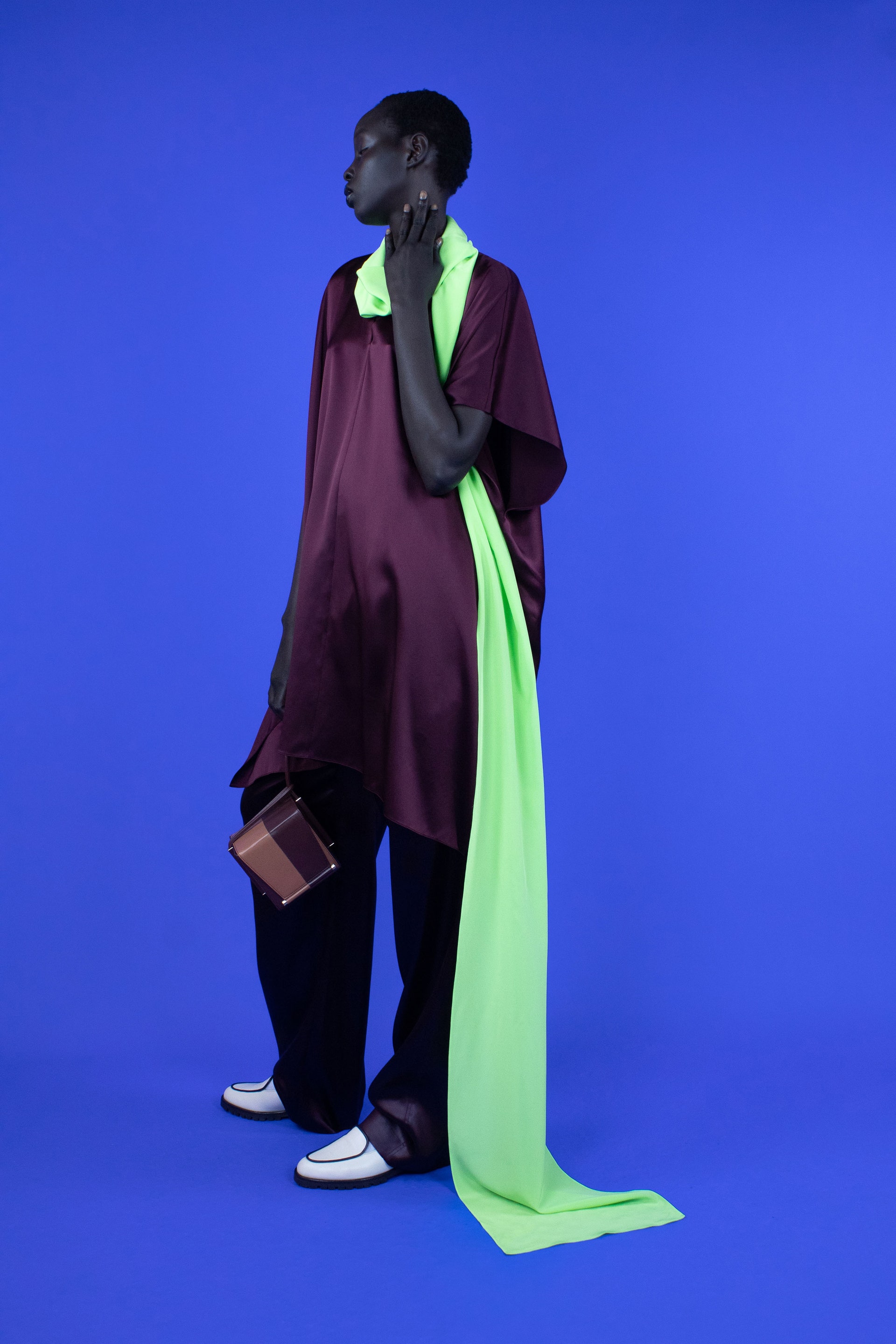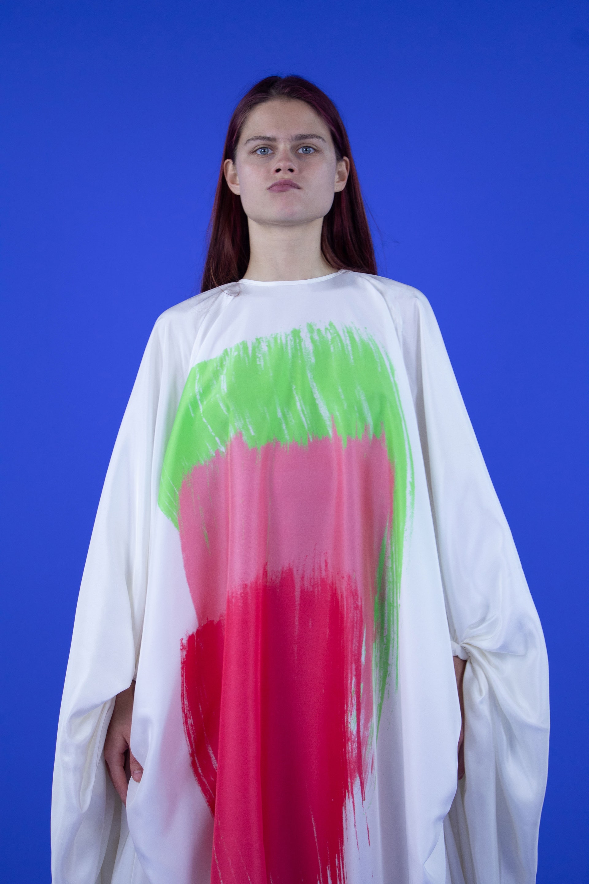 Дизайнер сократила коллекцию до 16 образов из 50, а представить её решила с помощью театрально-хореографической постановки, повествующей о борьбе женщин за свои права, их отношениях с обществом и самими собой. Под руководством хореографа Холи Блэки, модели и артисты исполняли танец и двигались по подиуму в пластифицированных многослойных юбках, напоминавших наряды кабаре-артисток кисти Анри де Тулуз-Лотрека, в лоскутных брючных костюмах, платьях с бахромой до пола и разноцветных макинтошах. Некоторые вещи покрывали экспрессивные широкие мазки краски, а иные содержали напечатанные выдержки из работ писательницы Джоан Дидион, освещающей темы социального распада общества. В коллекцию также вошли удлиненные шелковые блузы с яркими шлейфами, платья-кейпы и причудливые вязаные свитеры с ниспадающими нитями пряжи.