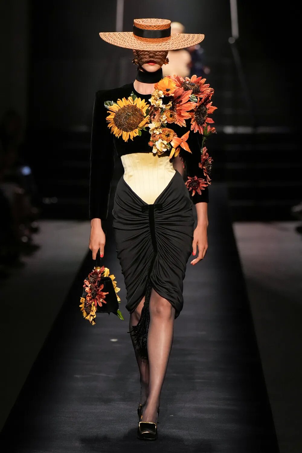 У кутюрній колекції осінь — 2022 Денієл Роузберрі також звернувся до архівів модного дому. Але цього разу — у новій, об’ємній інтерпретації. У 1940 році Ельза Скіапареллі створила сукню з аплікацією, що нагадувала мішечки з насінням квітів. Потім дизайнерка ще неодноразово зверталася за натхненням до флористики, інтерпретуючи квіти у своїх образах. У 2022 році Денієл продовжив модний спадок Schiaparelli з об’ємним декором у вигляді квітів. Лаванда, лілії, фіалки, а також соняшник (ми не могли не зробити на цьому акцент!) доповнюють образи кутюрної колекції, додаючи їй нового, більш романтичного та легкого вигляду.
