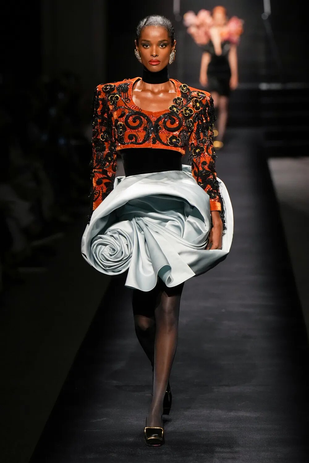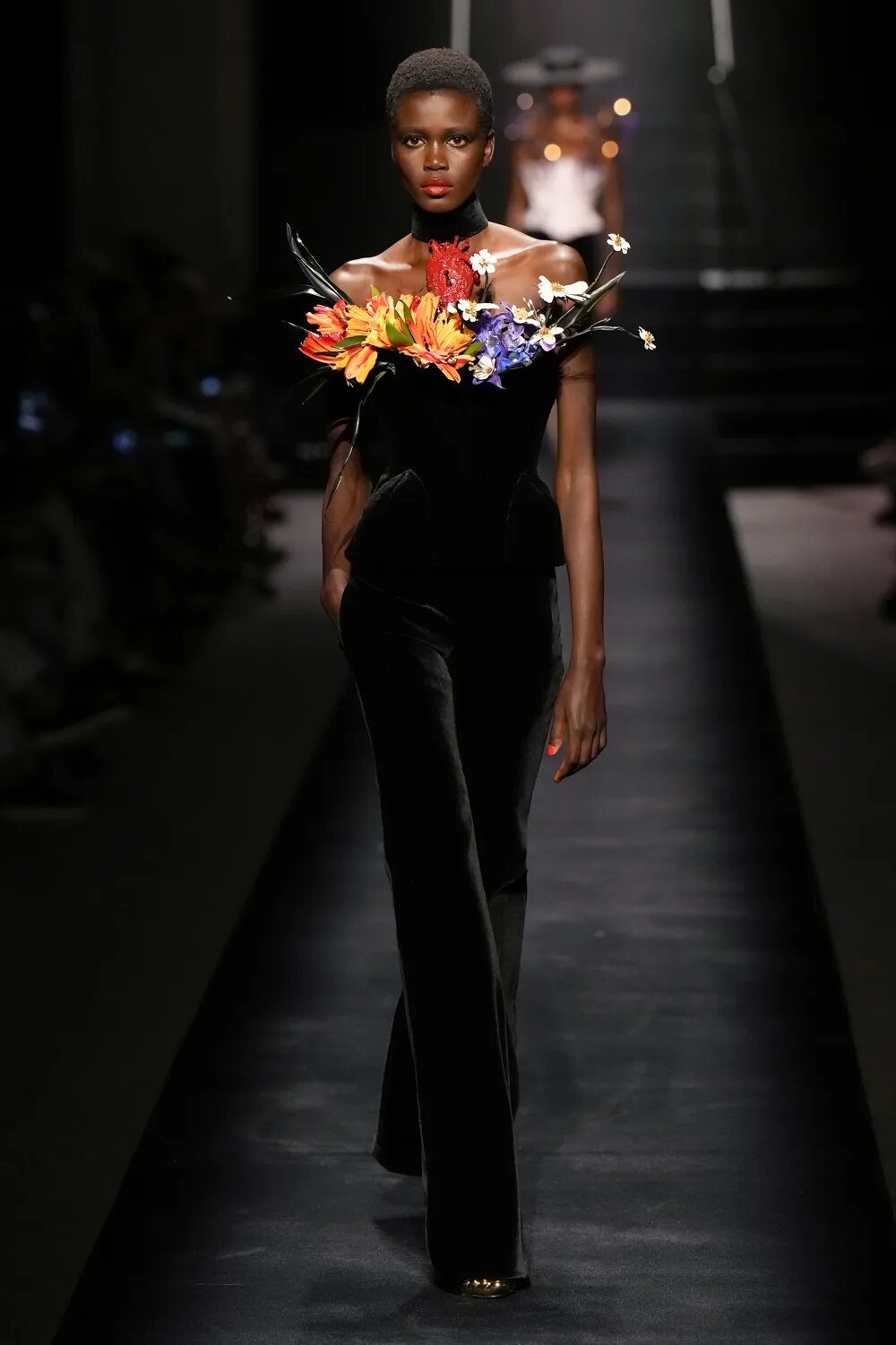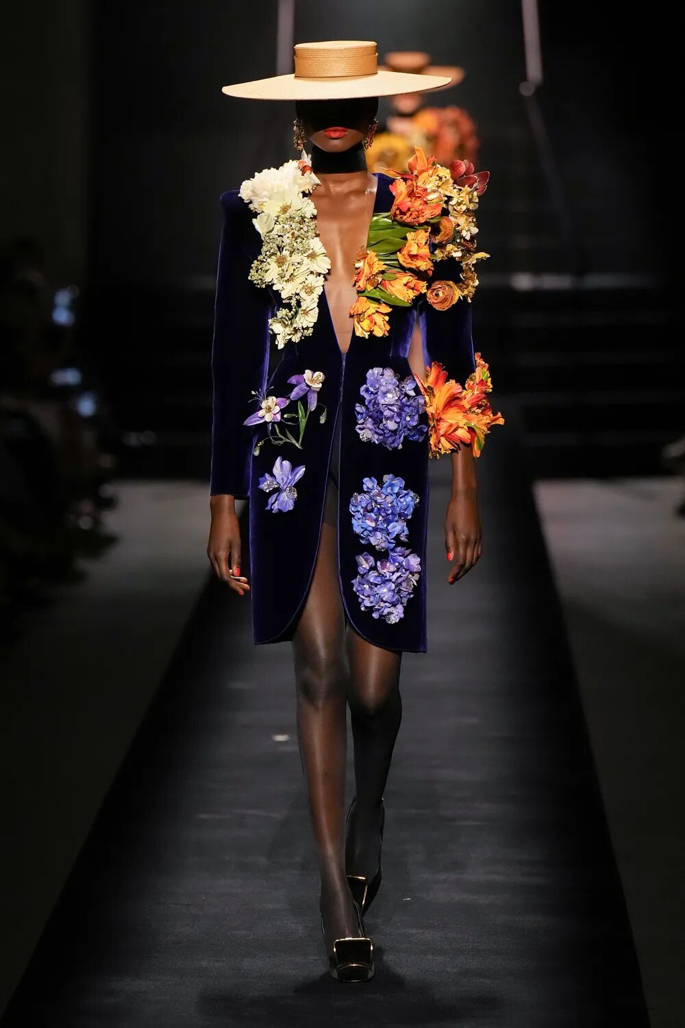 Як і в минулих колекціях, кутюр від Schiaparelli сміливо відштовхується від рамок дозволеного. Сміливі бра, підкреслена талія, але майже завжди стриманий низ — формула, якою Денієл Роузберрі керується вже не перший сезон. У кутюрній колекції осінь — 2022 Schiaparelli роблять ставку на чорне — на оксамит. Образи у червоній, синій та індіго-гамі сміливо виділяються з-поміж інших, контрастуючи зі стриманим total-black.