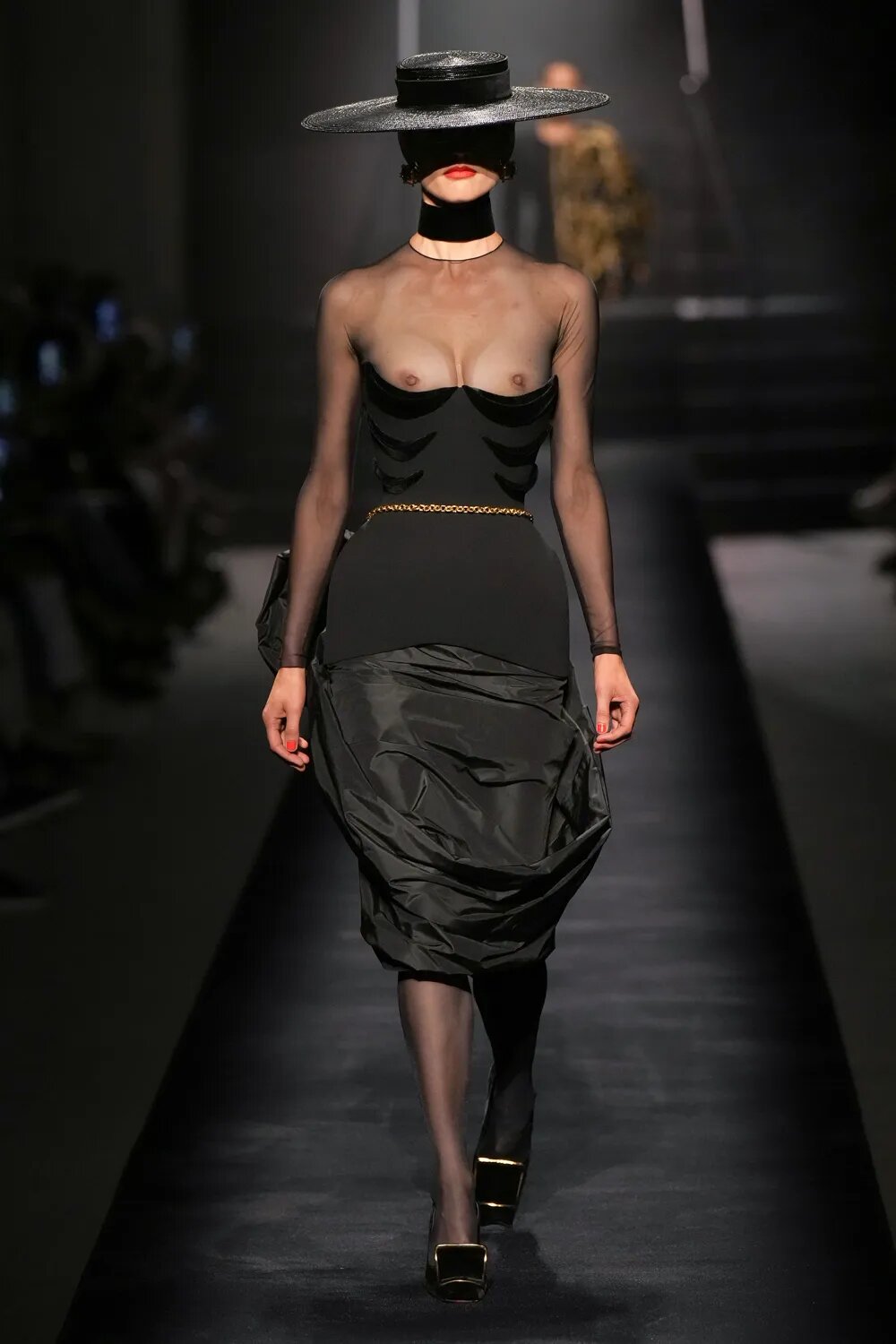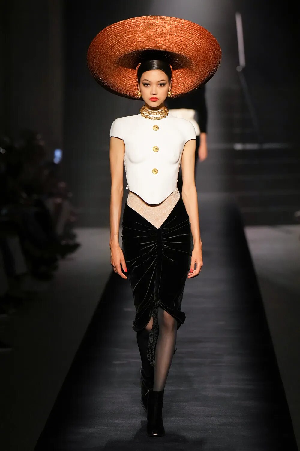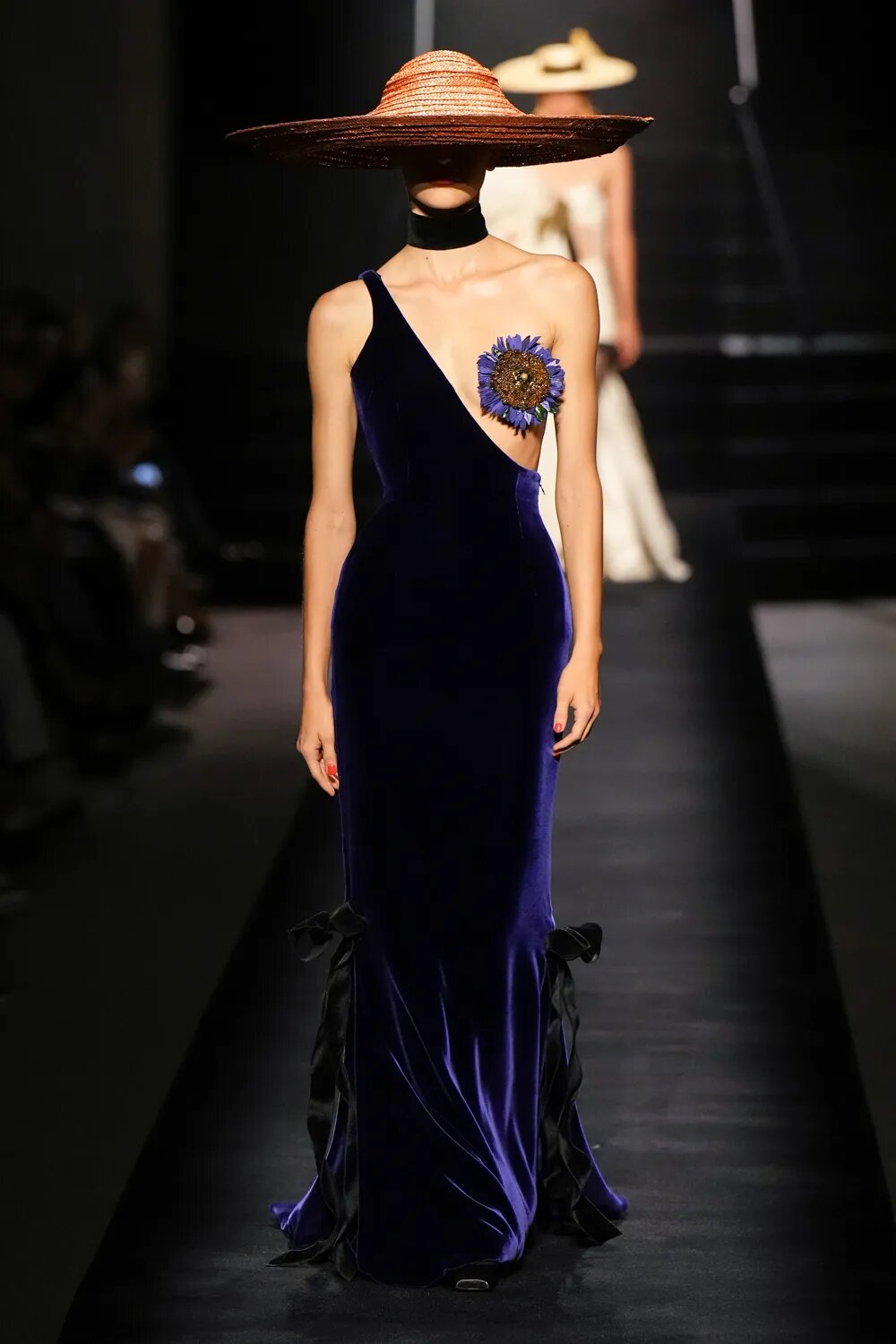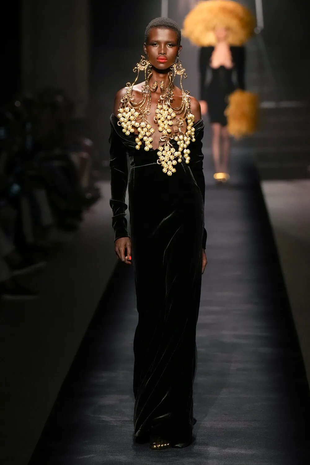 Як і в минулих колекціях, кутюр від Schiaparelli сміливо відштовхується від рамок дозволеного. Сміливі бра, підкреслена талія, але майже завжди стриманий низ — формула, якою Денієл Роузберрі керується вже не перший сезон. У кутюрній колекції осінь — 2022 Schiaparelli роблять ставку на чорне — на оксамит. Образи у червоній, синій та індіго-гамі сміливо виділяються з-поміж інших, контрастуючи зі стриманим total-black.